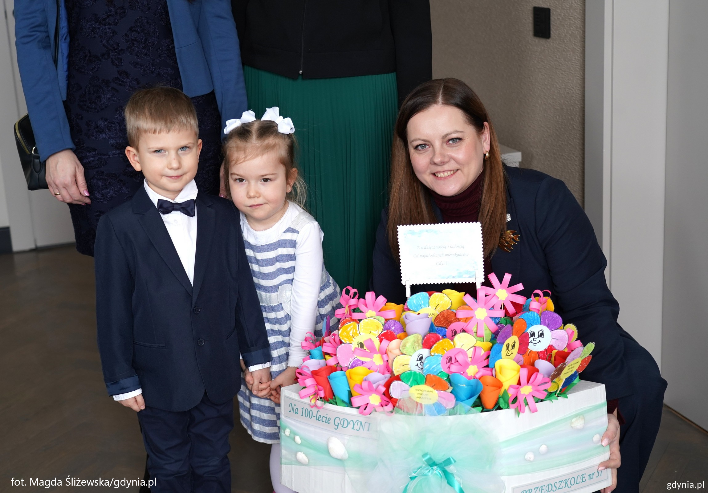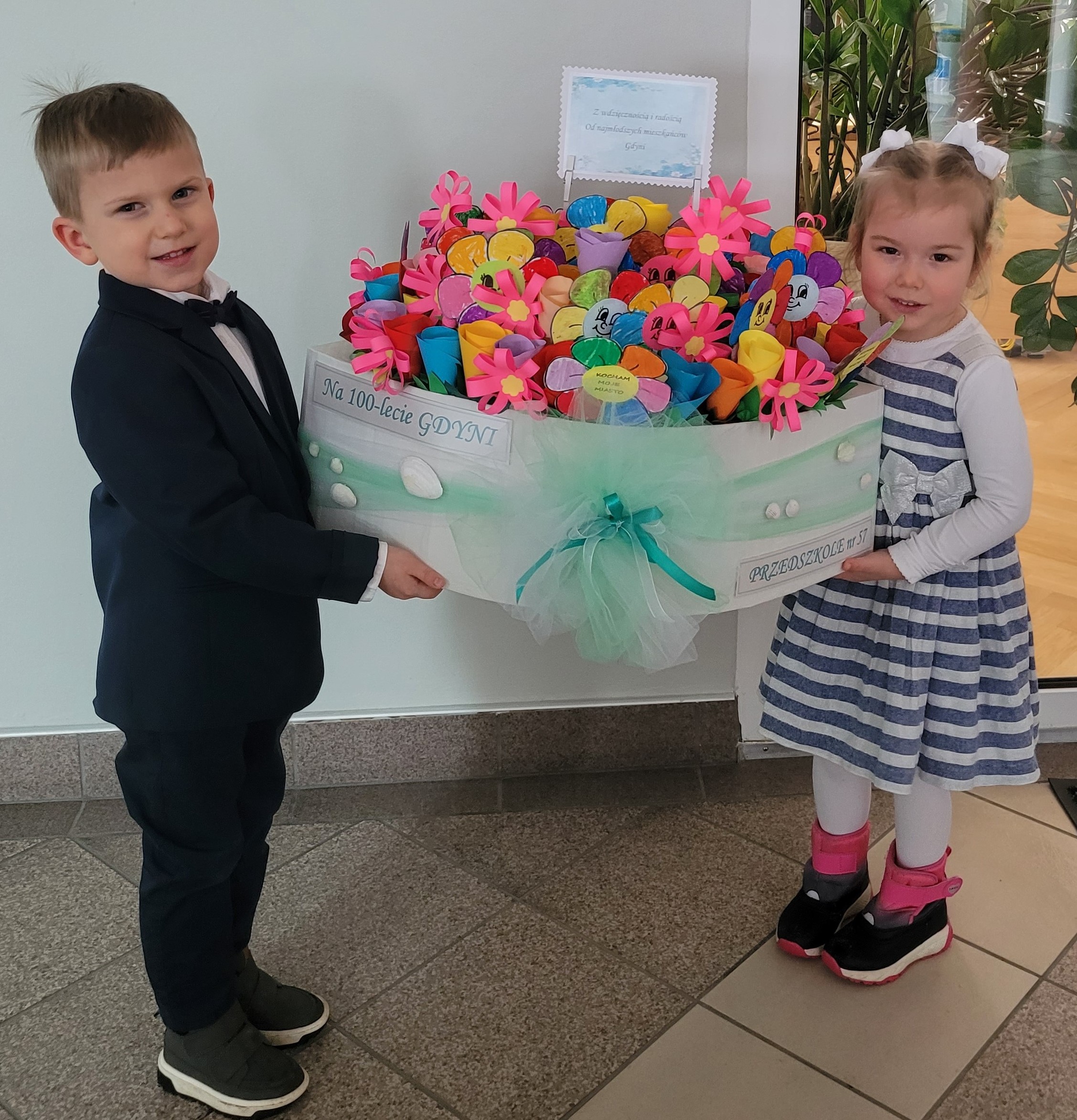 Nasze przedszkole reprezentowali Olek i Helenka, którzy osobiście przekazali ten wyjątkowy, jubileuszowy upominek z okazji 100-lecia Gdyni.