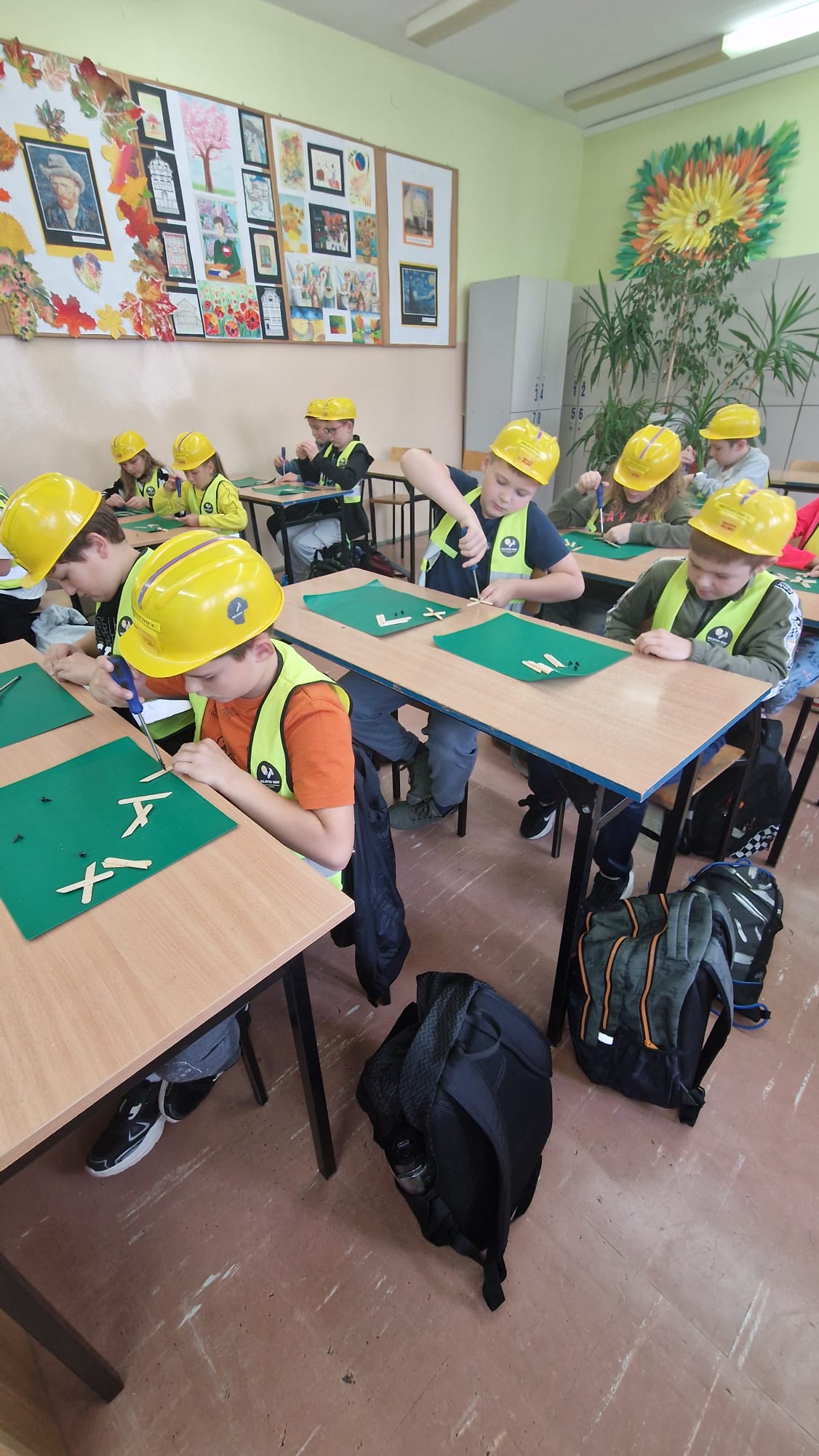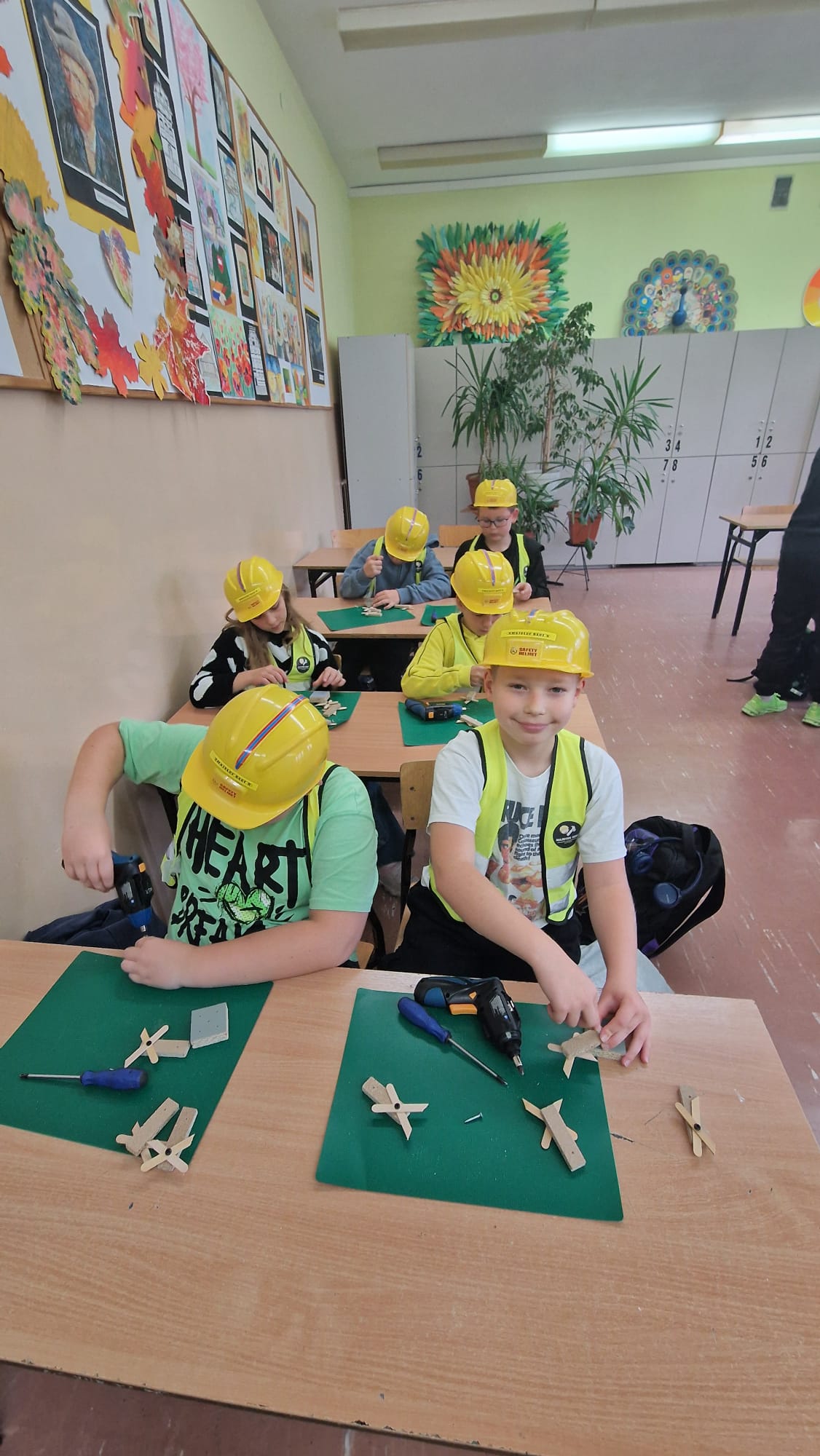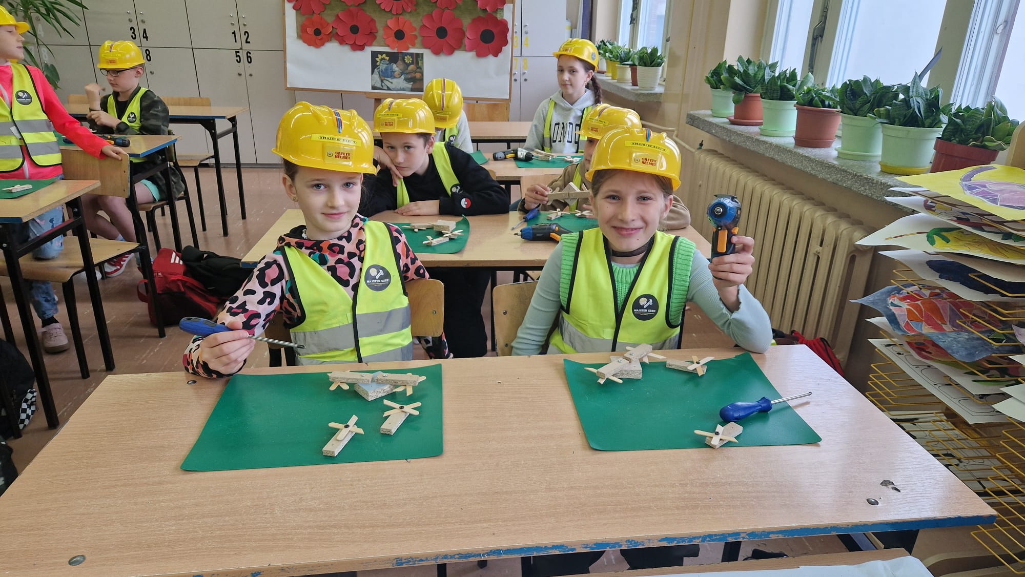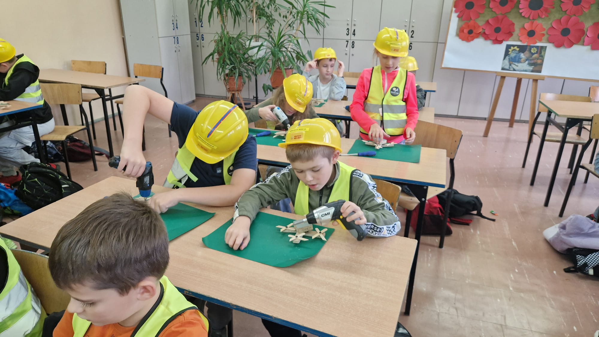Zarówno chłopcy jak i dziewczynki doskonale poradzili sobie z wierceniem, wykręcaniem i przebijaniem drewnianych elementów.