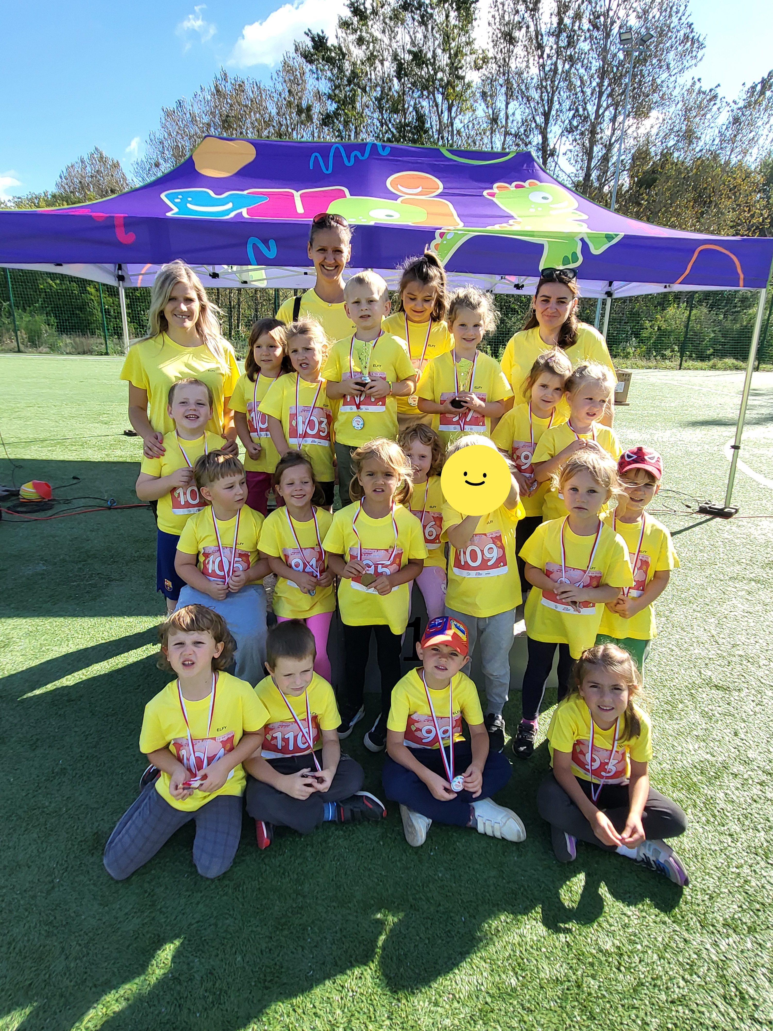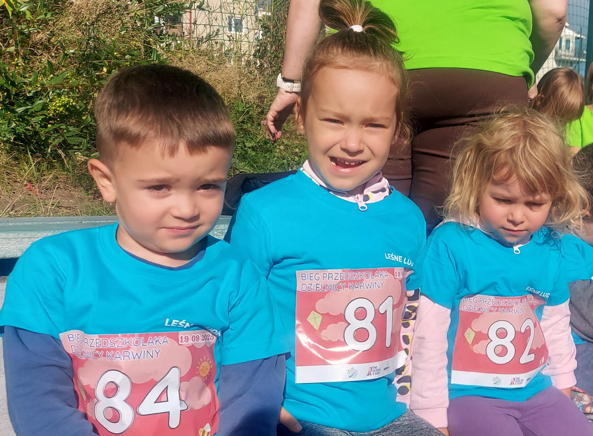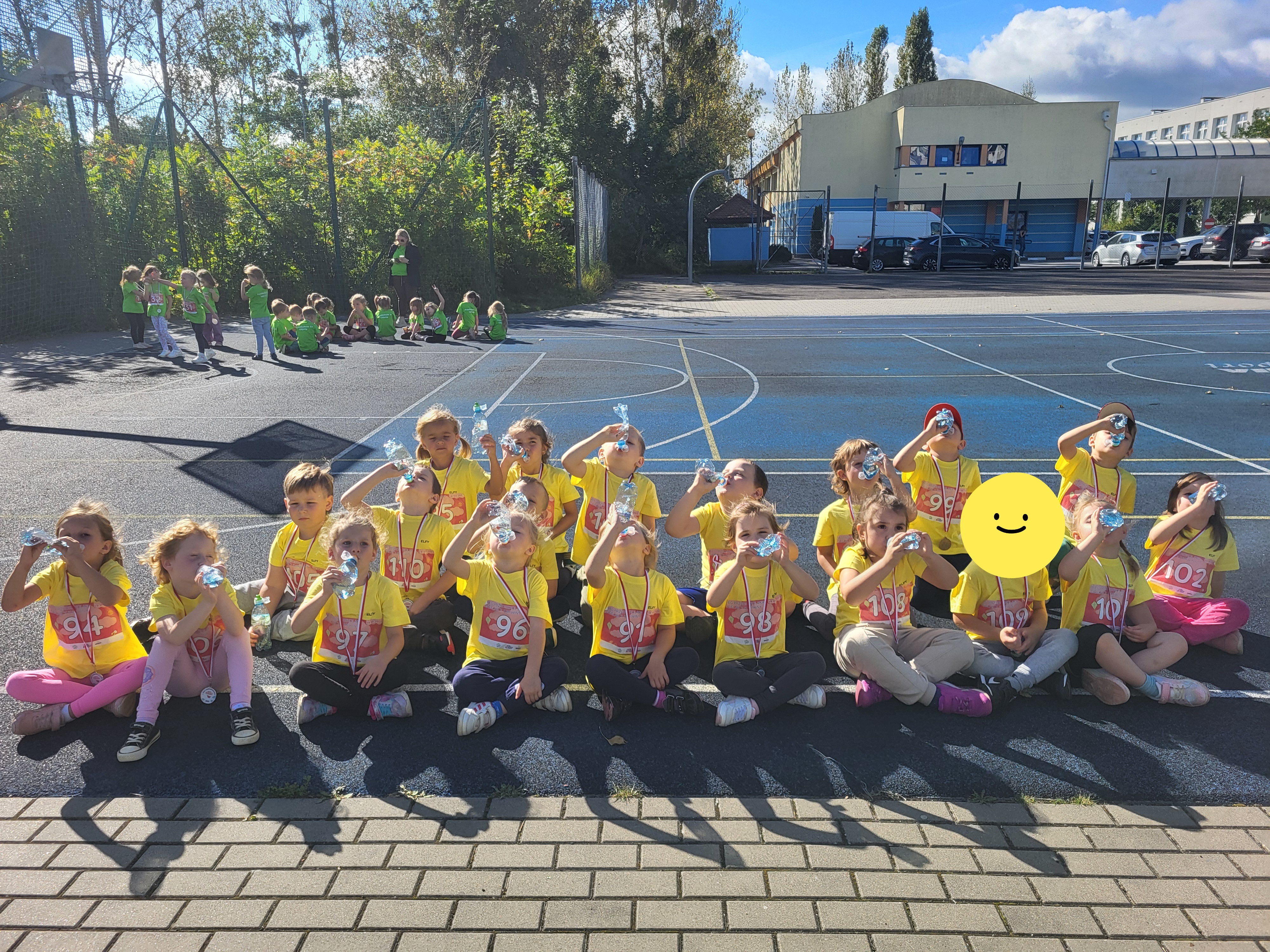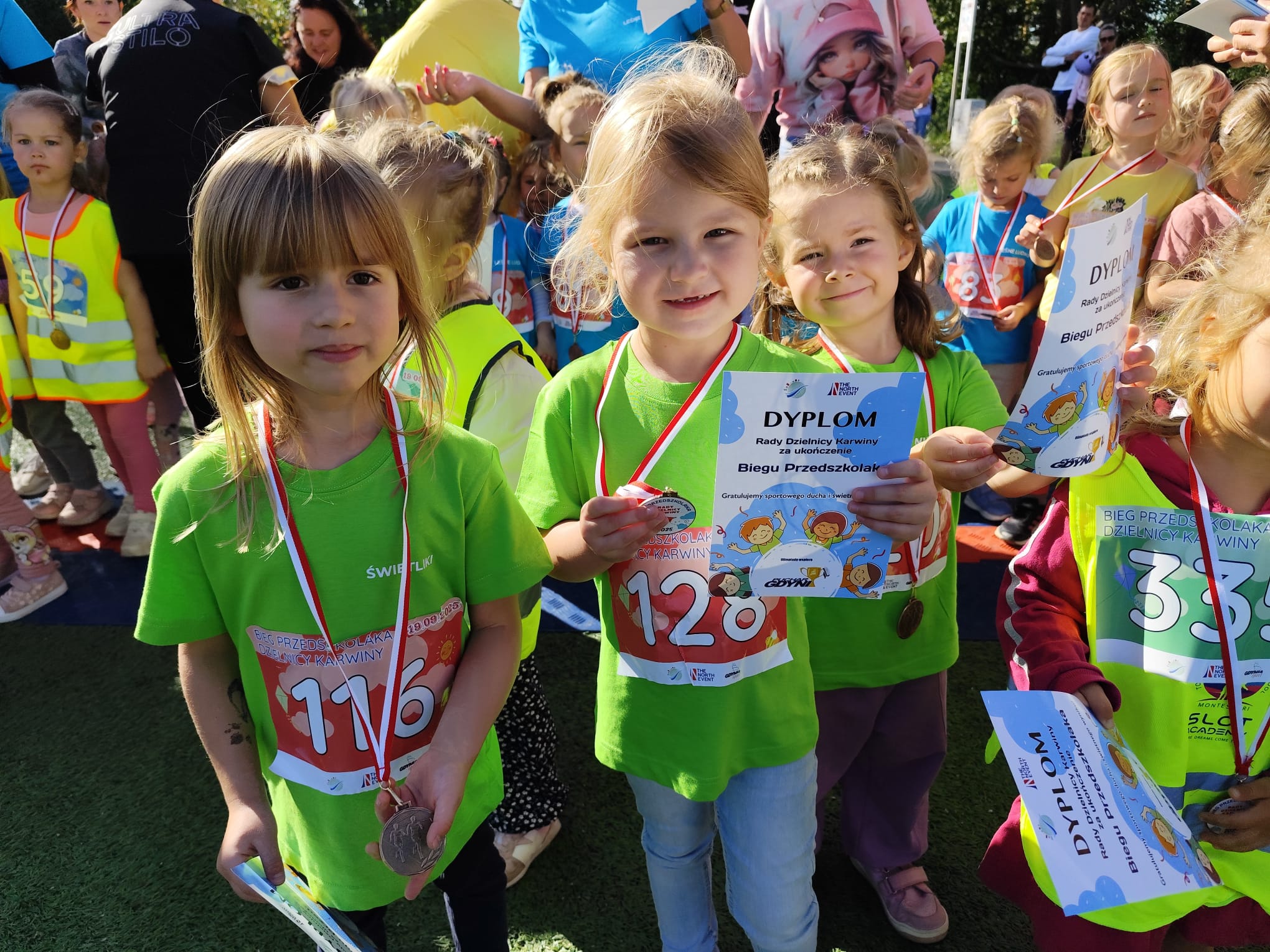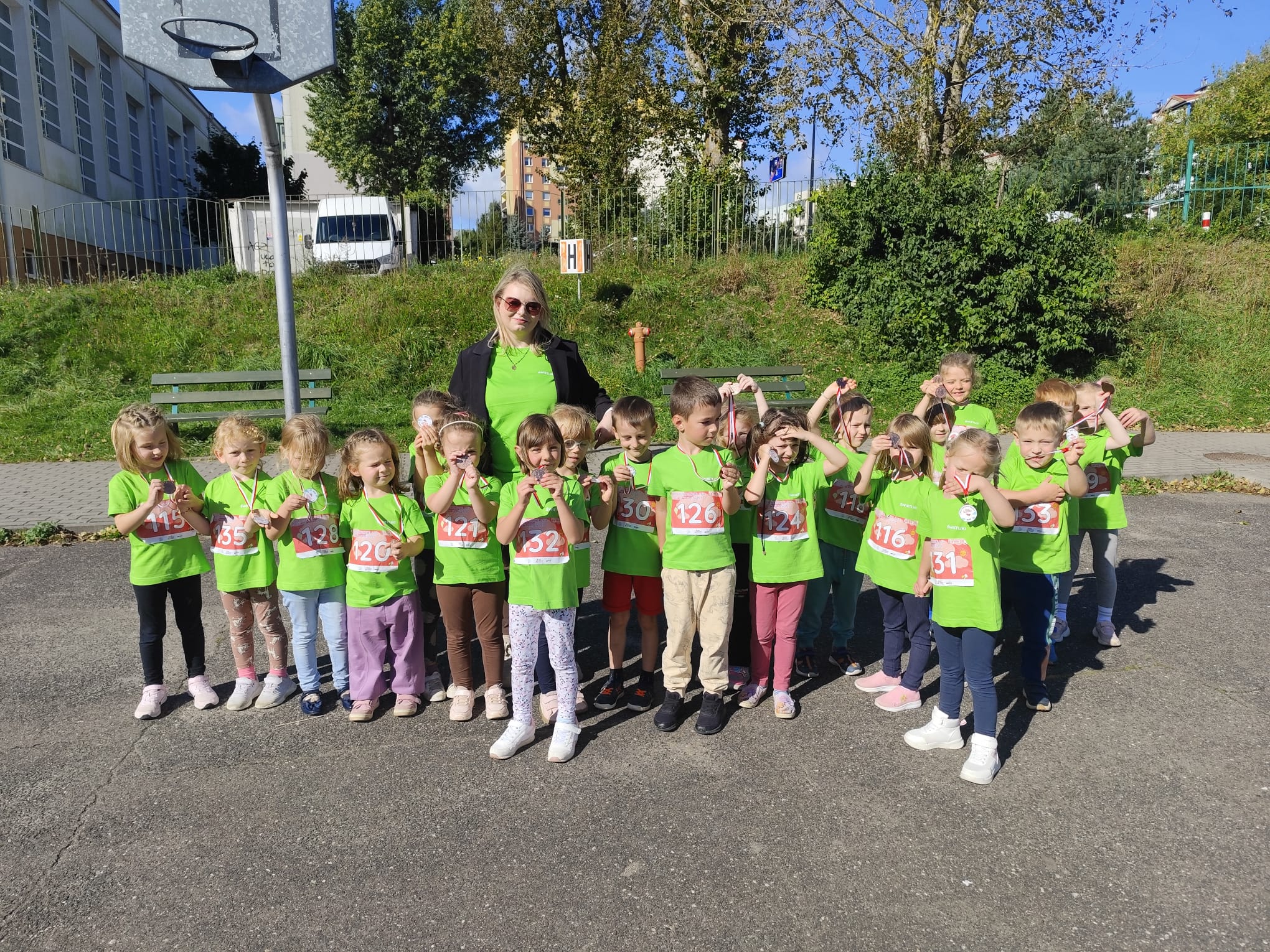 19.09.2025 r. obchodziliśmy Dzień Przedszkolaka na sportowo. Tego dnia udaliśmy się do Zespołu Szkolno-Przedszkolnego nr 2 na Bieg Przedszkolaka. Został on zorganizowany przez Radę Dzielnicy Karwiny. Wszystkie dzieci wzięły udział w biegu i otrzymały dyplomy oraz medale. Troje przedszkolaków z naszego przedszkola stanęło na podium.