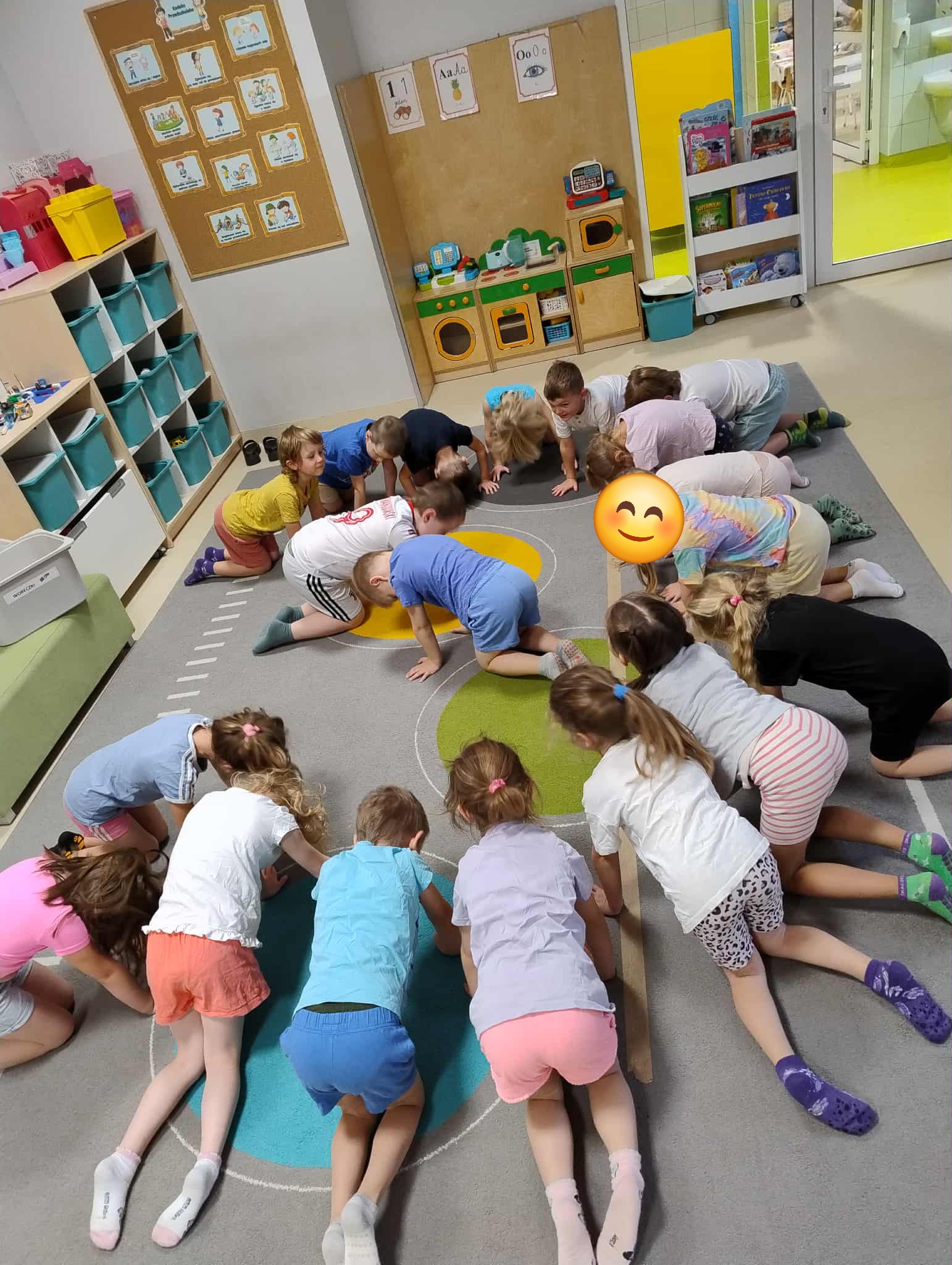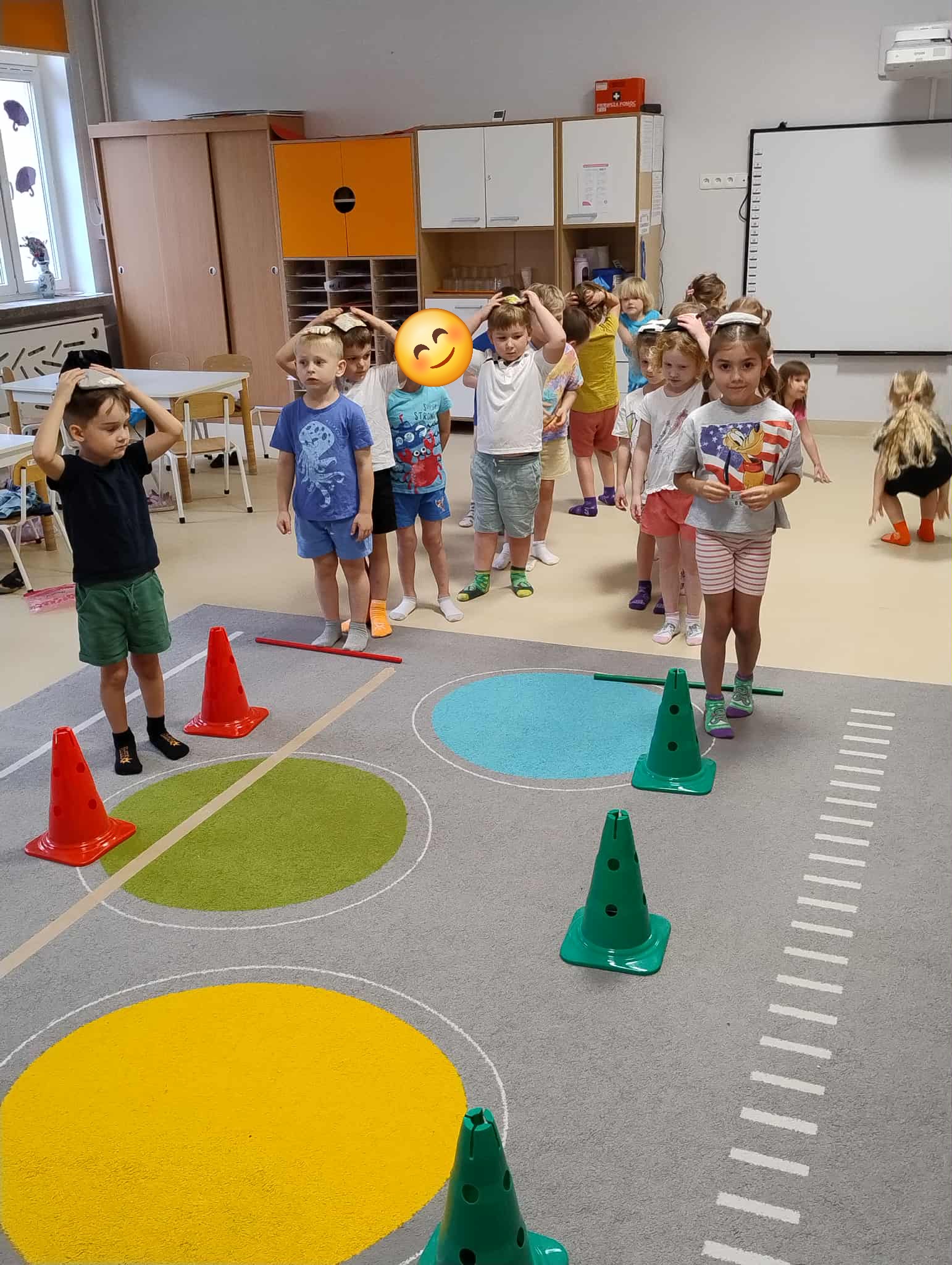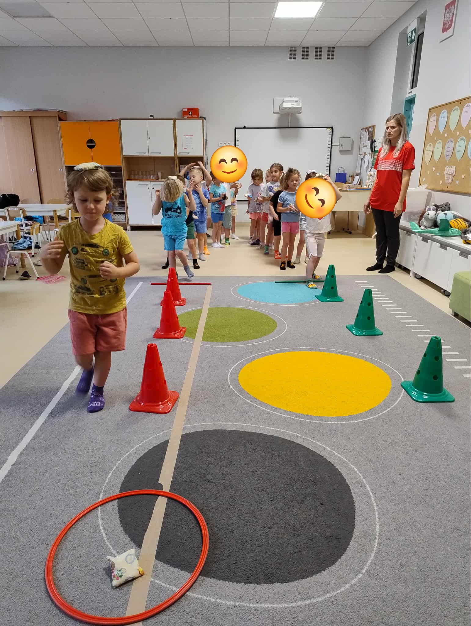 Elfy pokonywały tor przeszkód z woreczkami gimnastycznymi m. in. na głowie i ramieniu. Te ćwiczenia wzmocniły ich sprawność fizyczną, a przede wszystkim przyniosły im dużo radości.