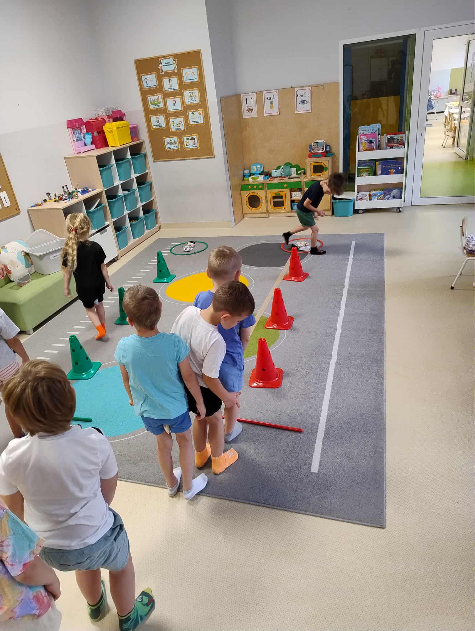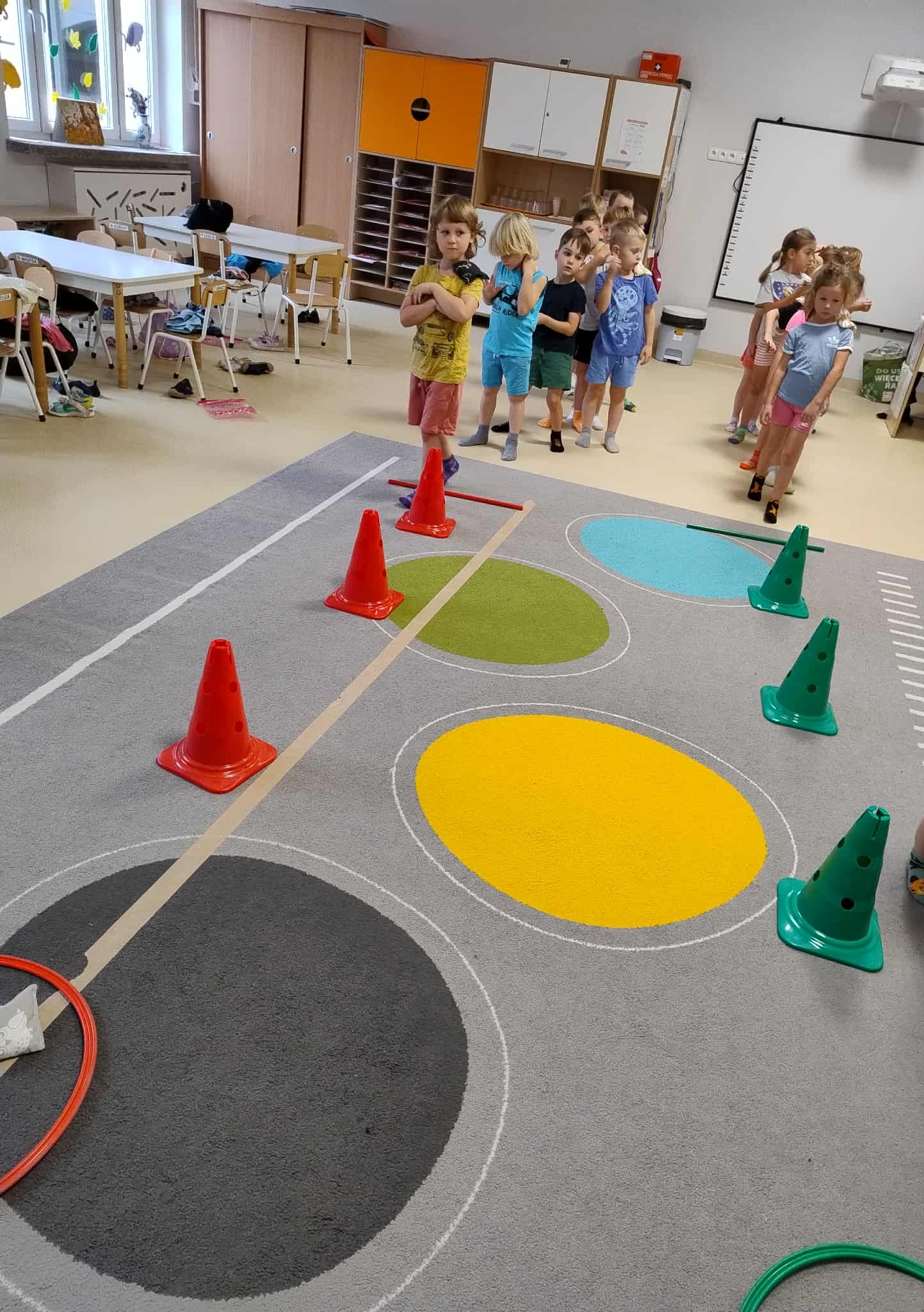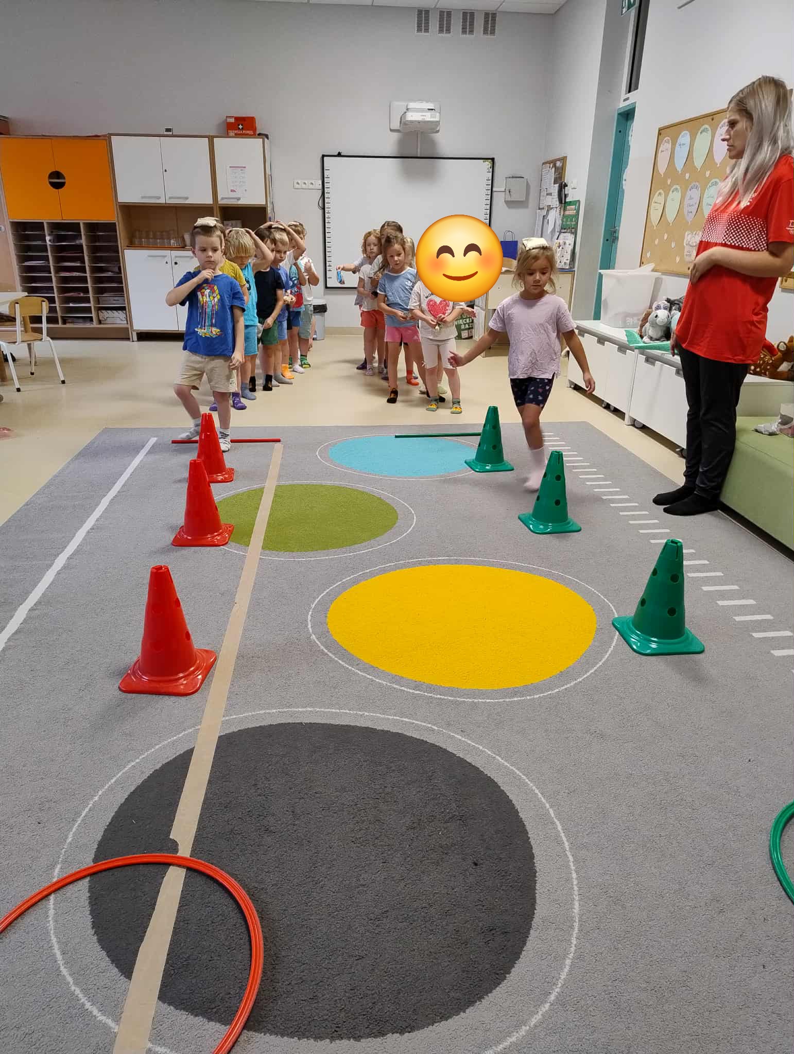 Elfy pokonywały tor przeszkód z woreczkami gimnastycznymi m. in. na głowie i ramieniu. Te ćwiczenia wzmocniły ich sprawność fizyczną, a przede wszystkim przyniosły im dużo radości.