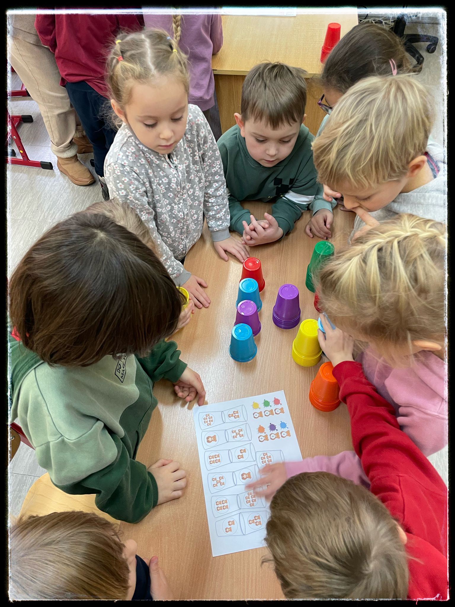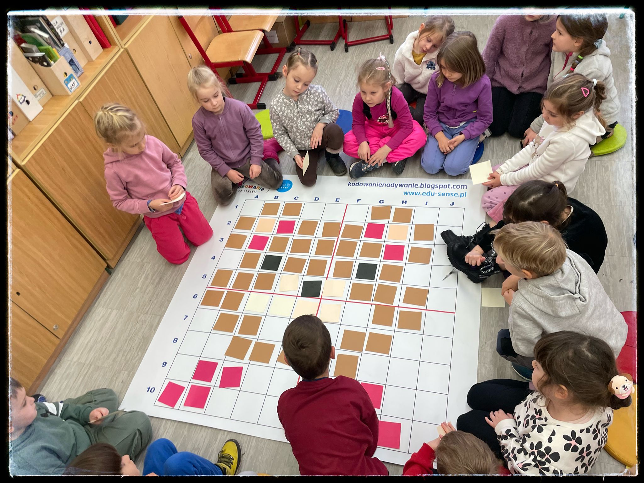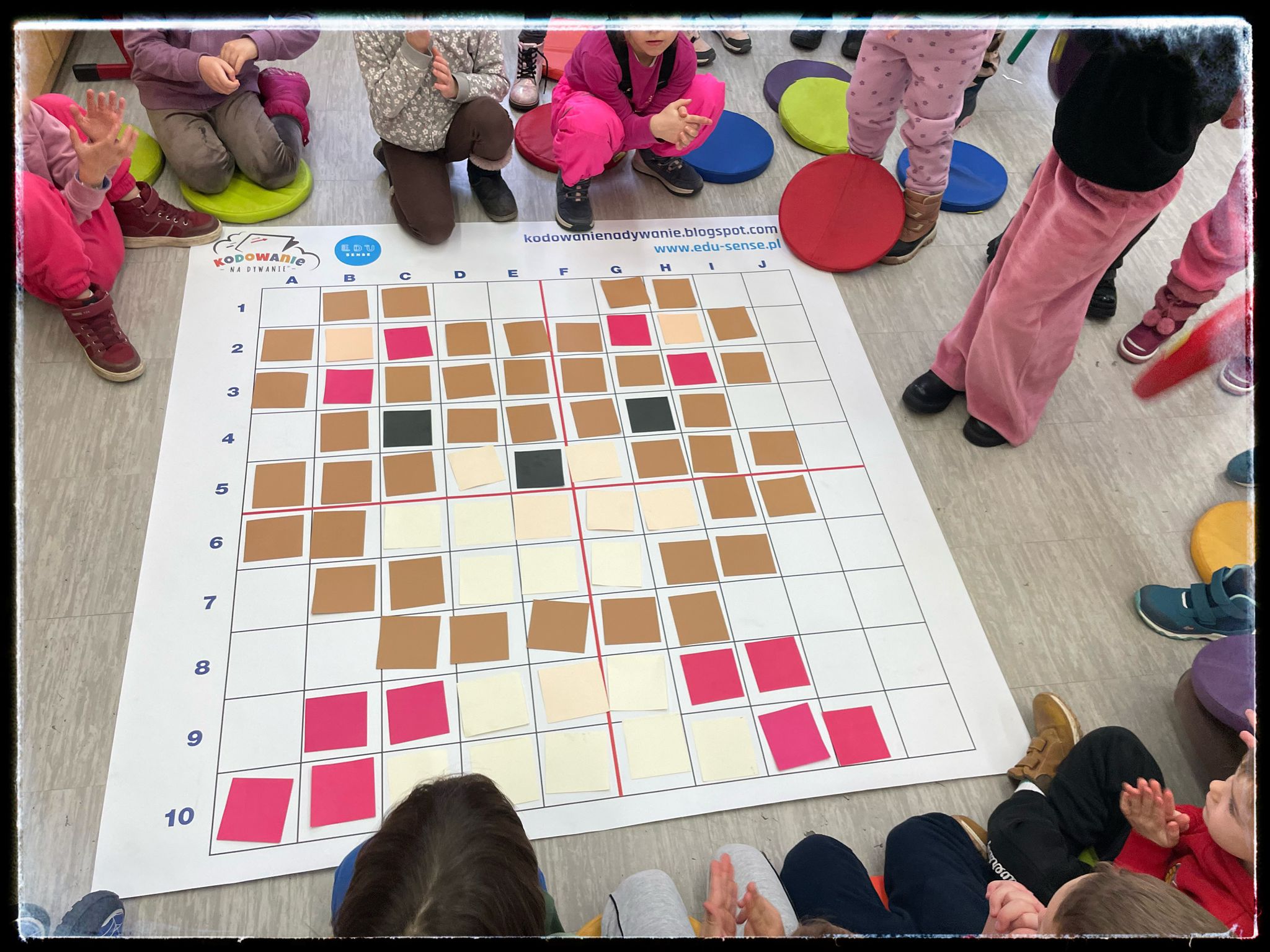 Przedszkolaki po raz kolejny odwiedziły naszą szkołę, biorąc udział w ciekawych i rozwijających zajęciach z kodowania. W związku z obchodzonym Dniem Pluszowego Misia dzieci zakodowały dzisiejszego „jubilata” – pluszowego misia, wykorzystując do tego matę i piktogramy. Podczas zajęć pracowały również z tablicą multimedialną. Dużo radości sprawiło im także układanie konstrukcji z kolorowych kubeczków. To była pełna zaangażowania i uśmiechu wizyta, która pozwoliła dzieciom poznać nowe umiejętności oraz poczuć atmosferę szkolnej społeczności. Cieszymy się ze współpracy i zapraszamy ponownie!
