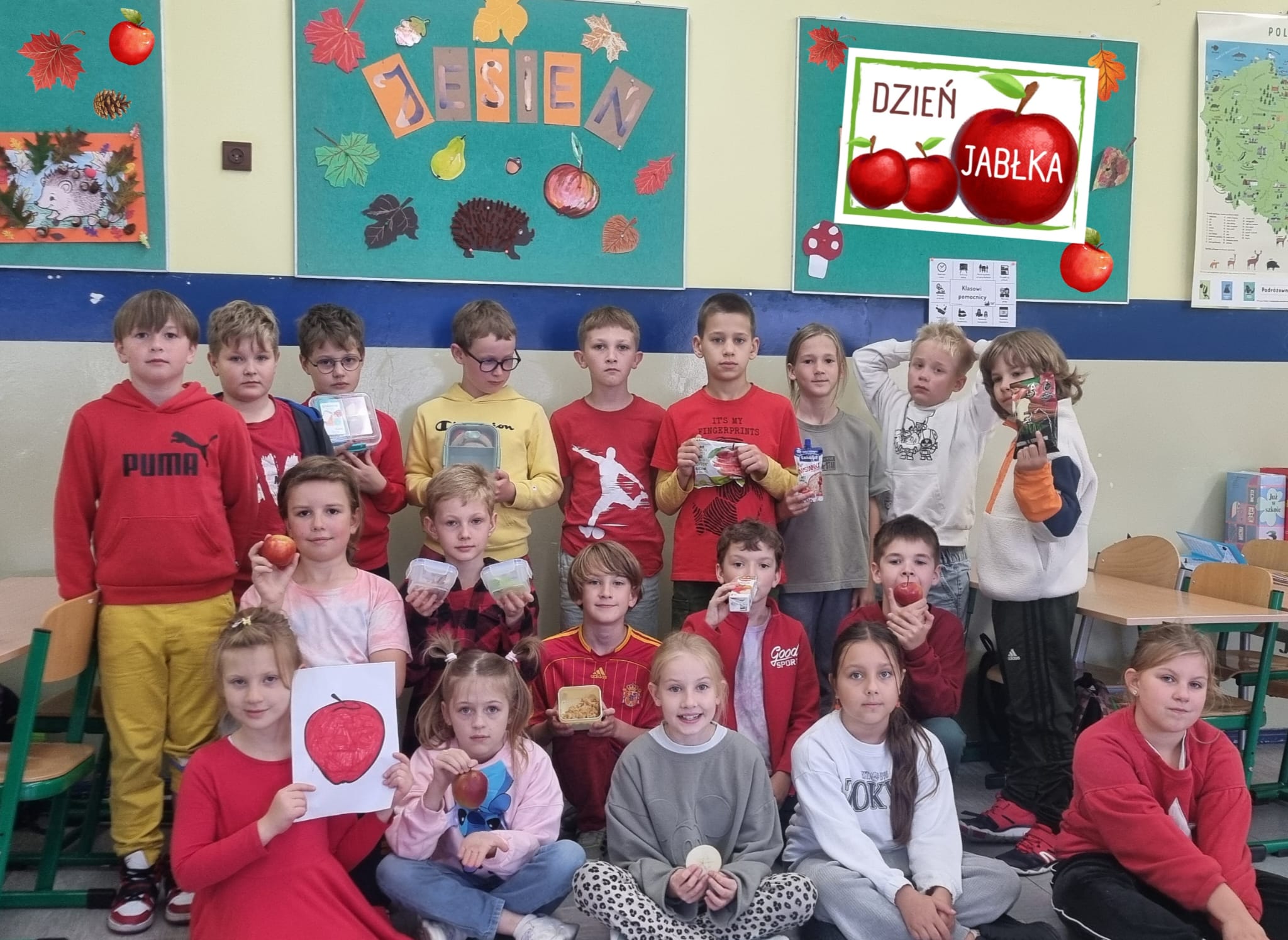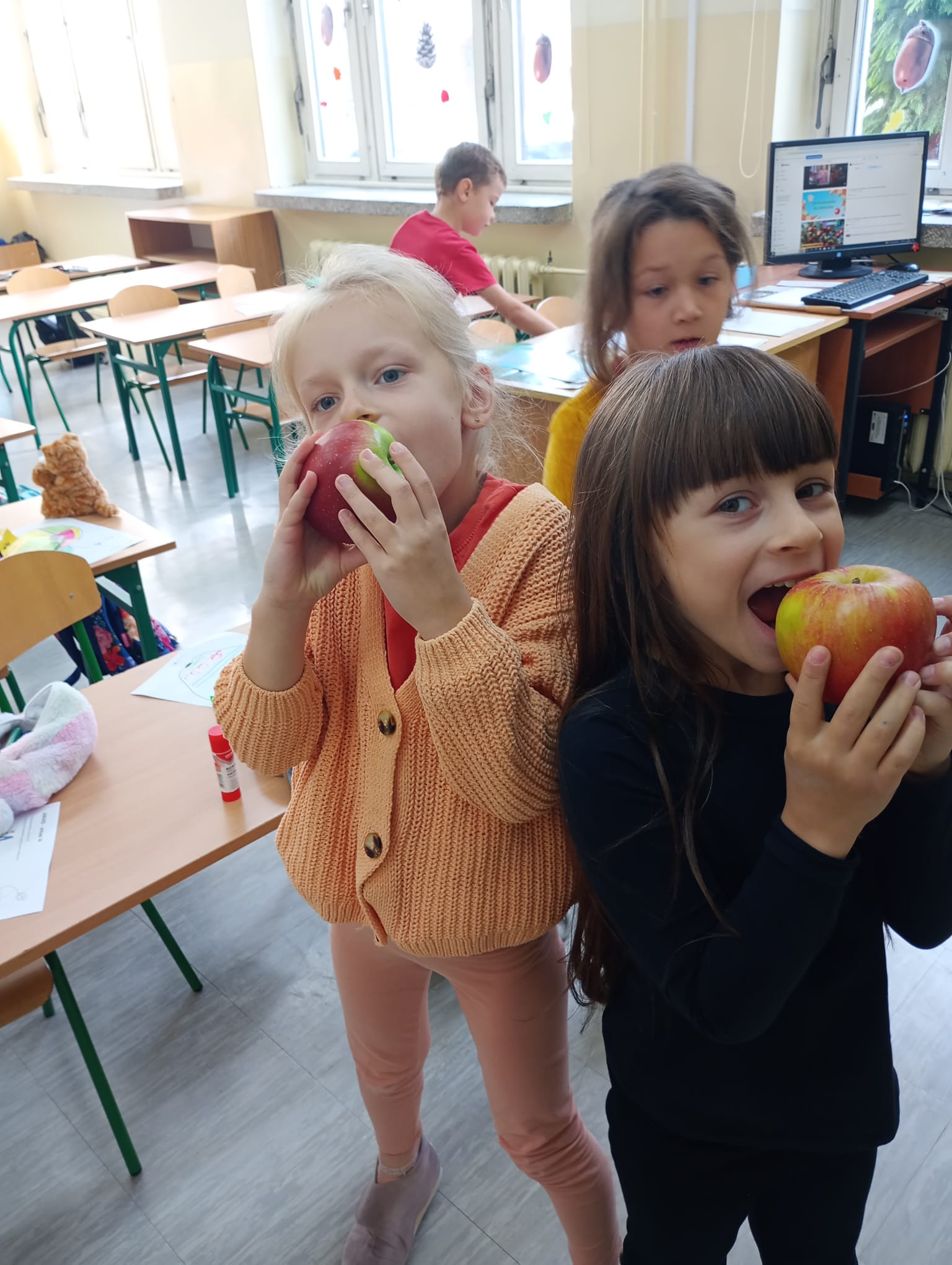 Dzieci ubrane były na żółto i czerwono. W klasach i w czasie przerw bezkonkurencyjną KRÓLOWĄ dnia było JABŁUSZKO!