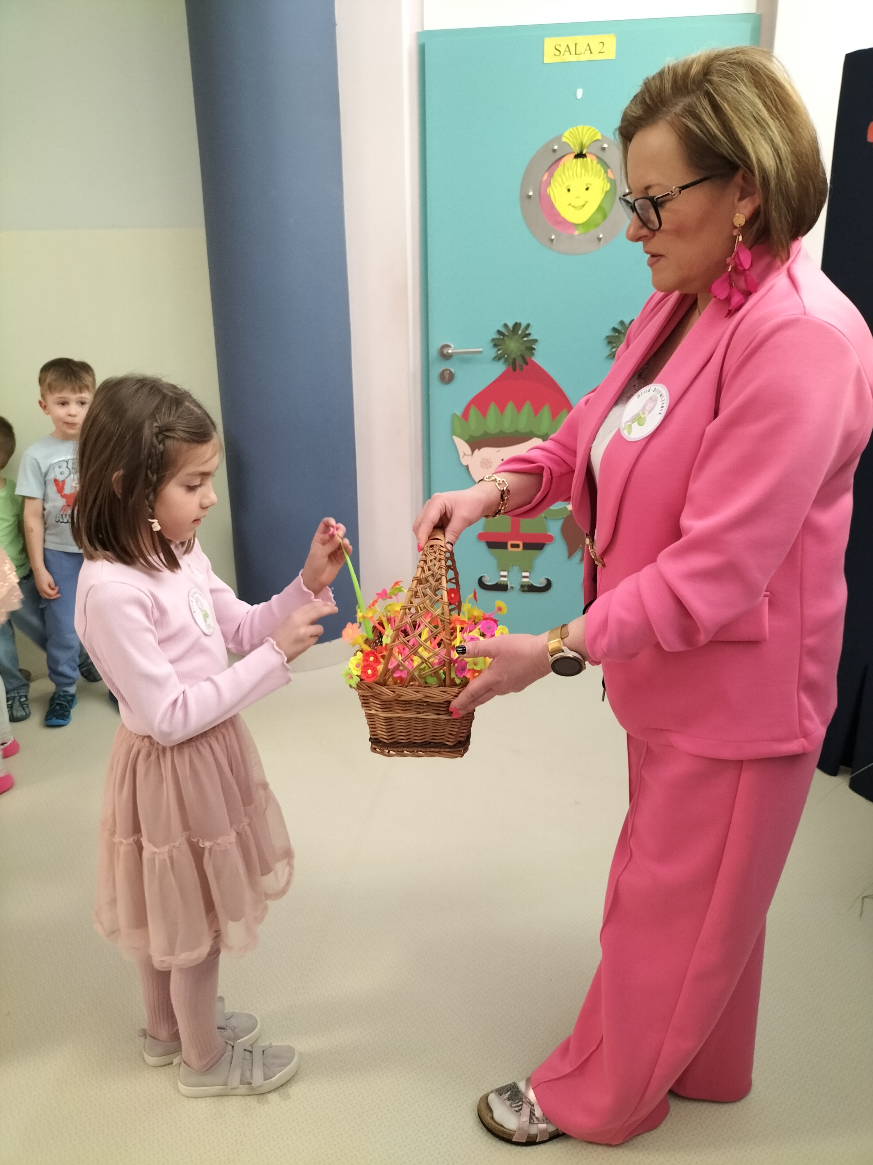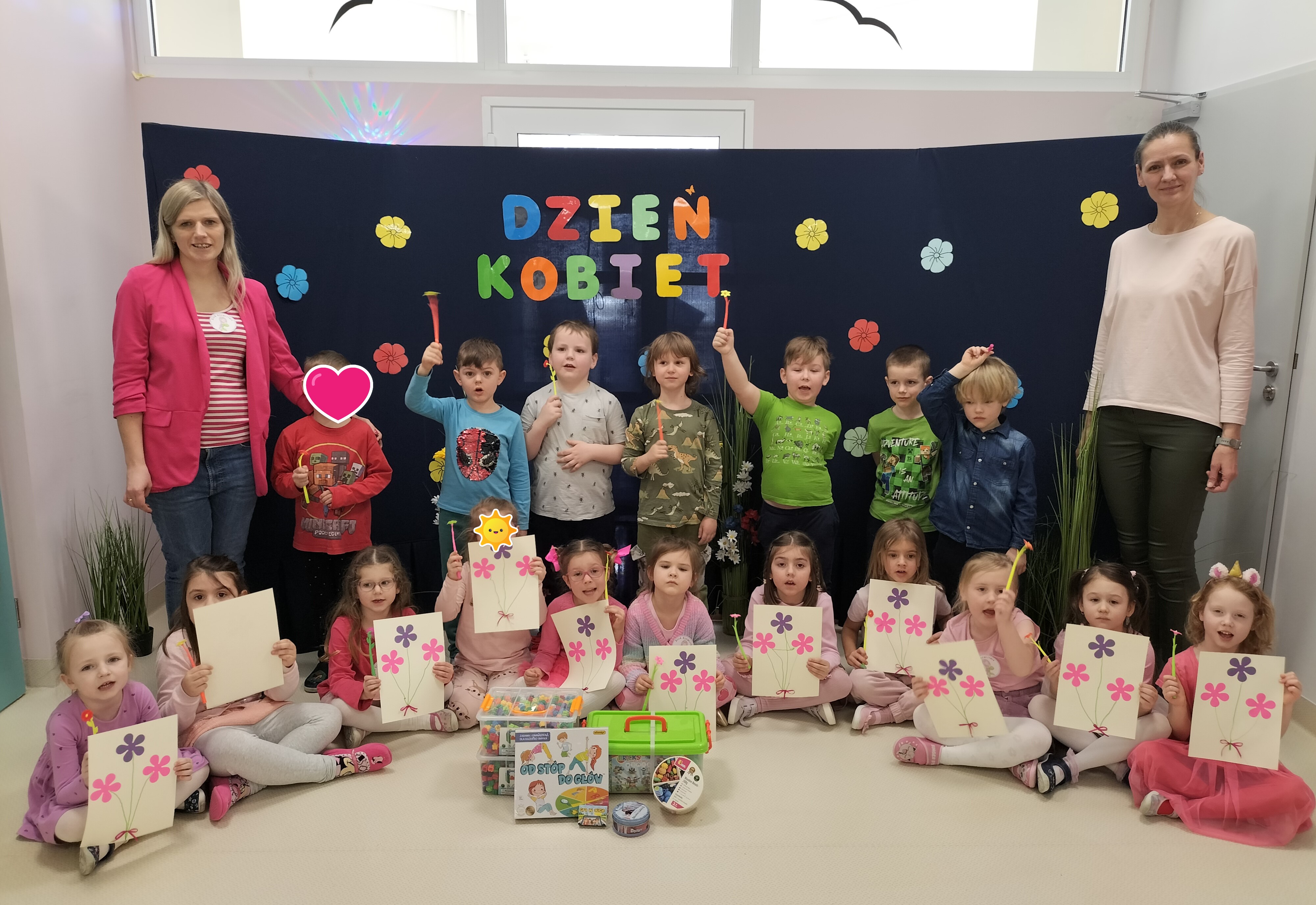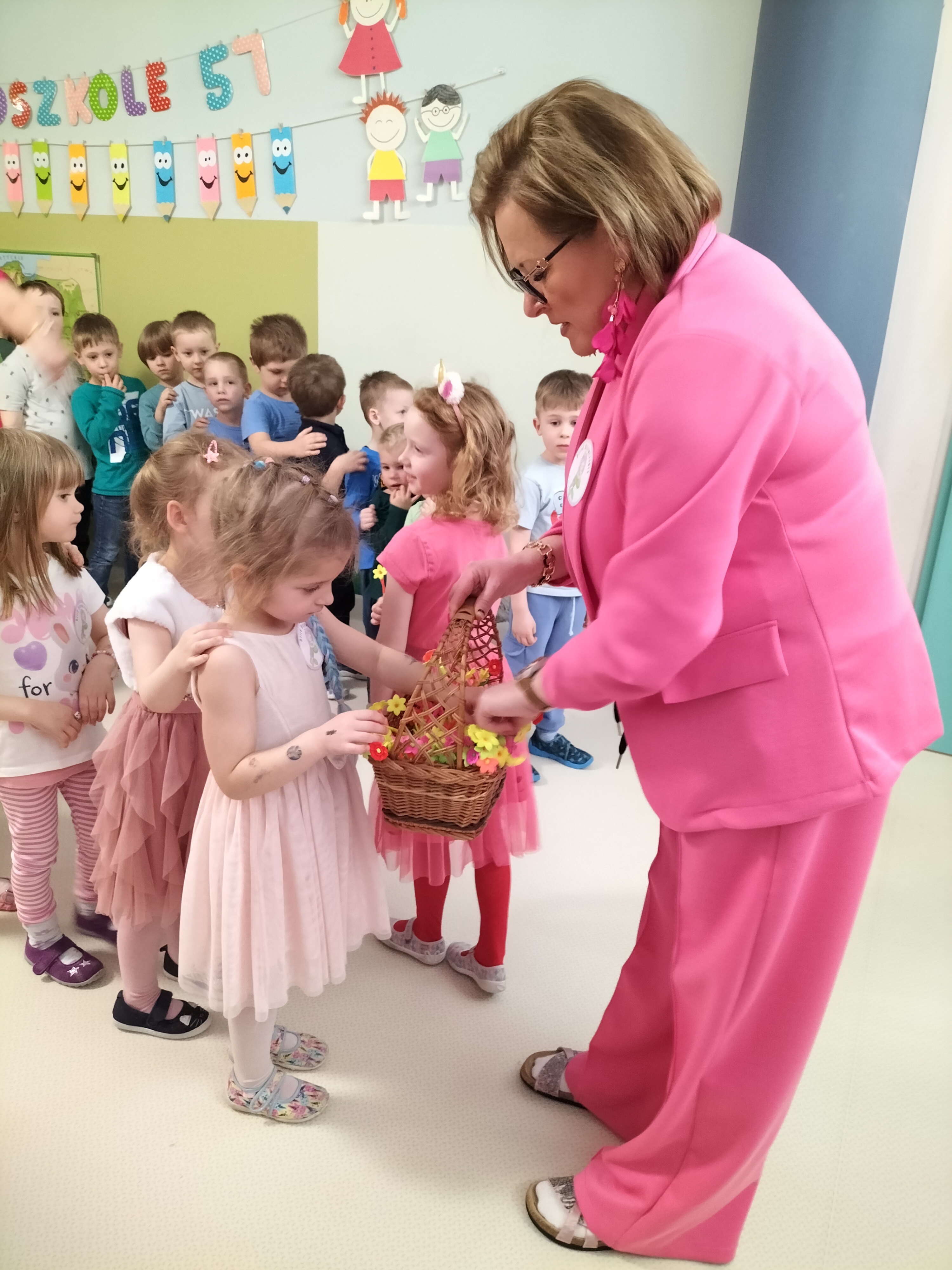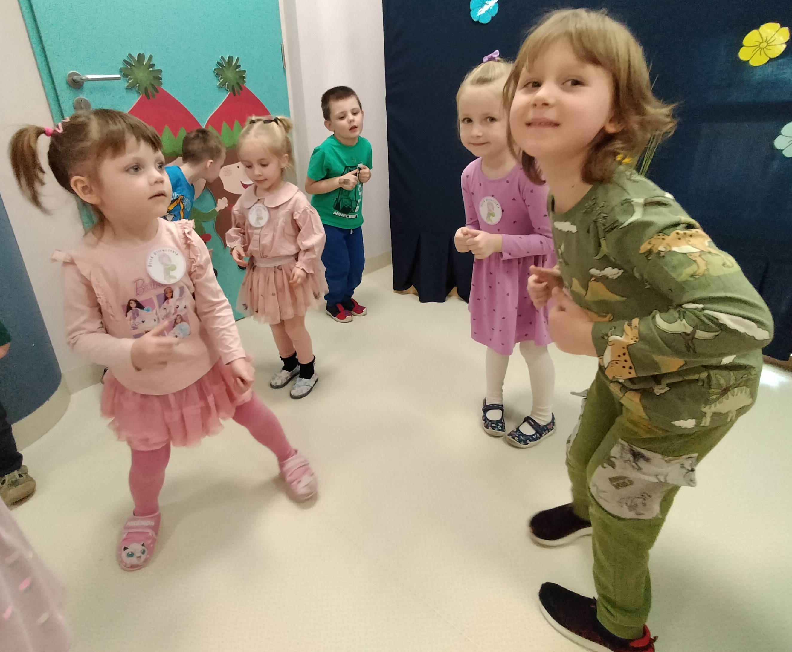 Piątek upłynął w bardzo miłej i radosnej atmosferze. Dziewczynki ubrane na różowo, a chłopcy w odcieniach zieleni i niebieskiego wspólnie świętowali Dzień Kobiet.
