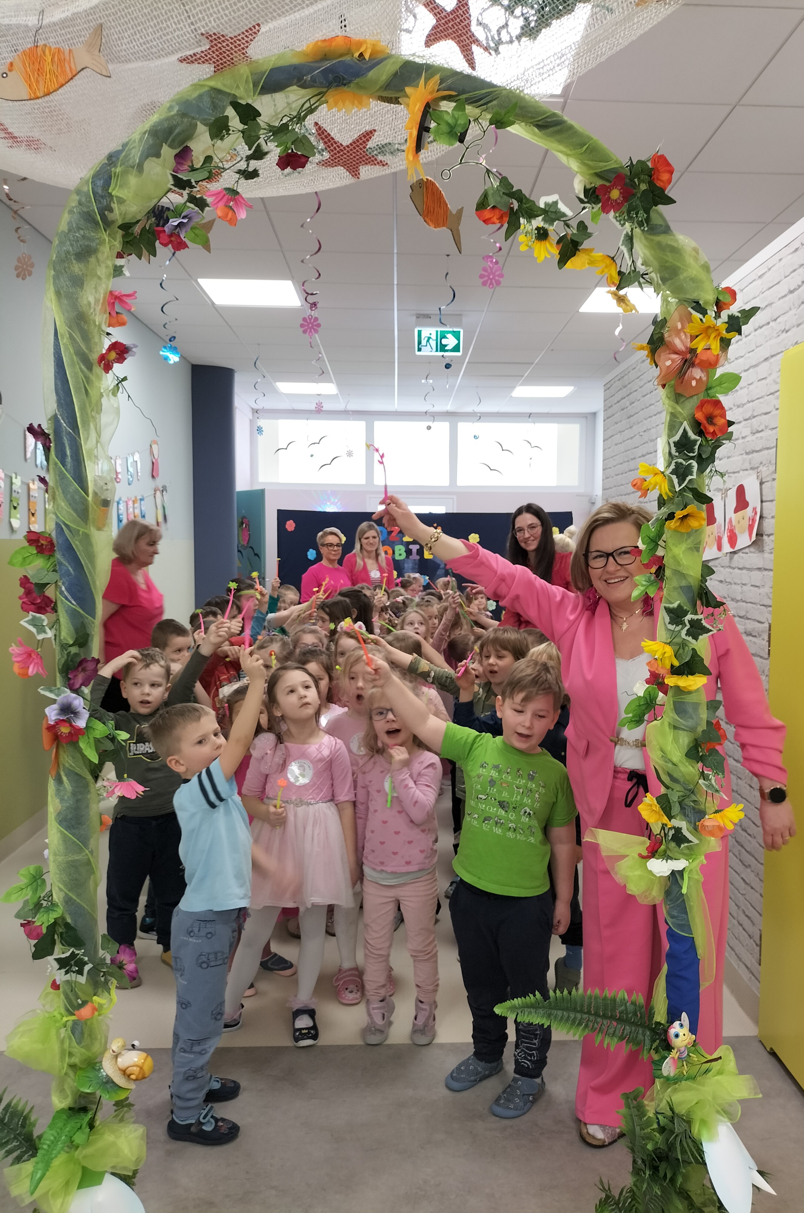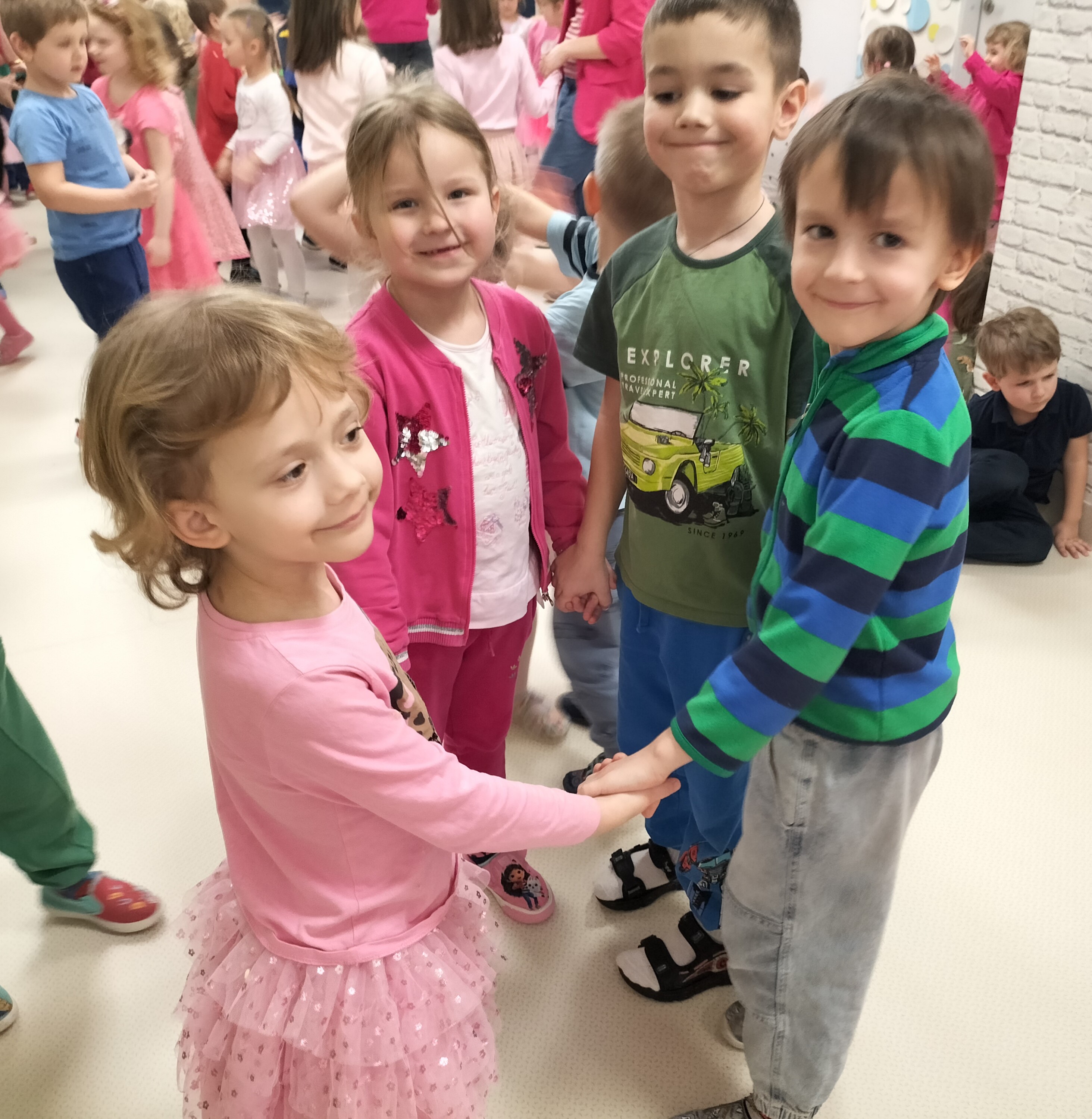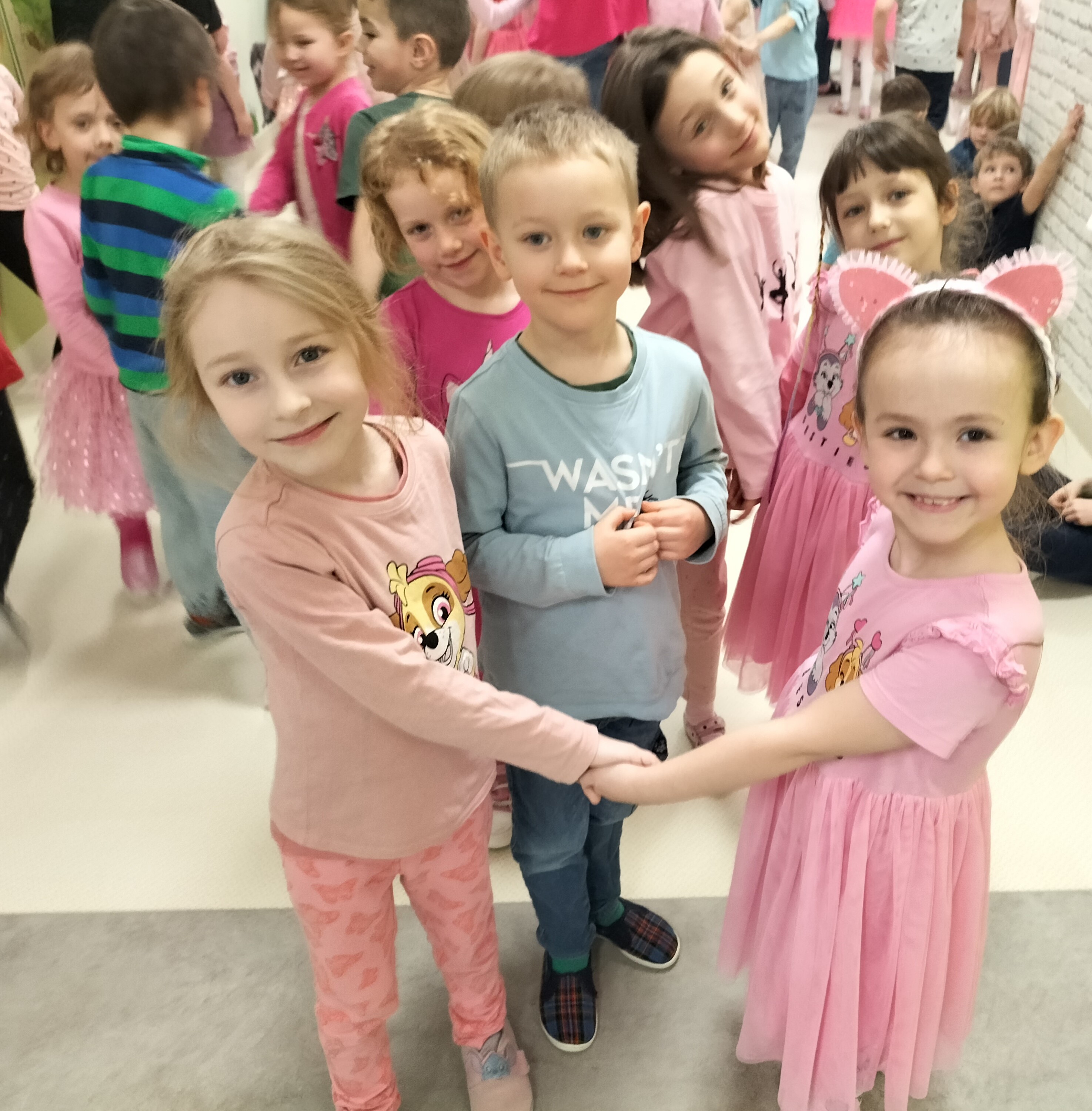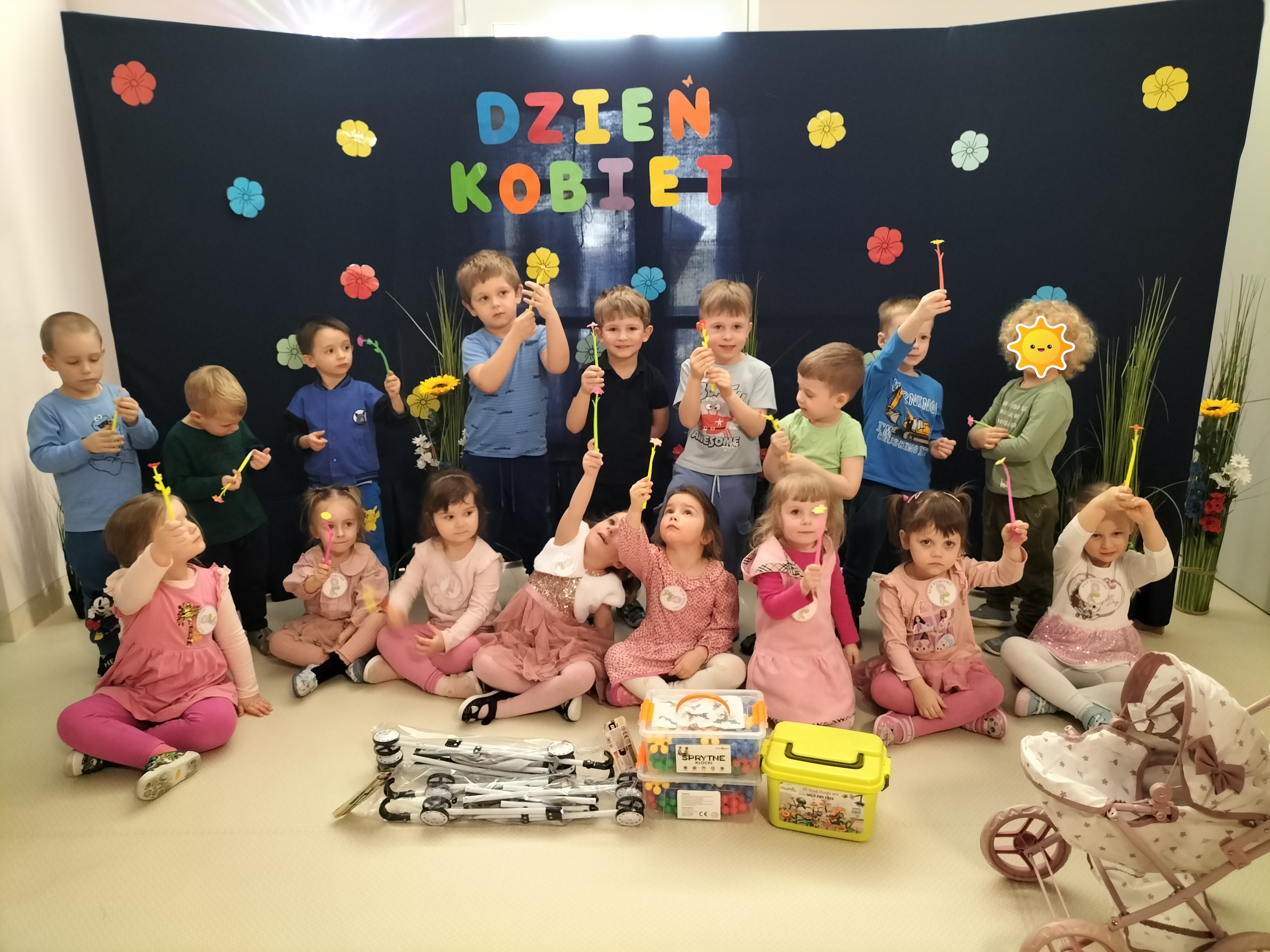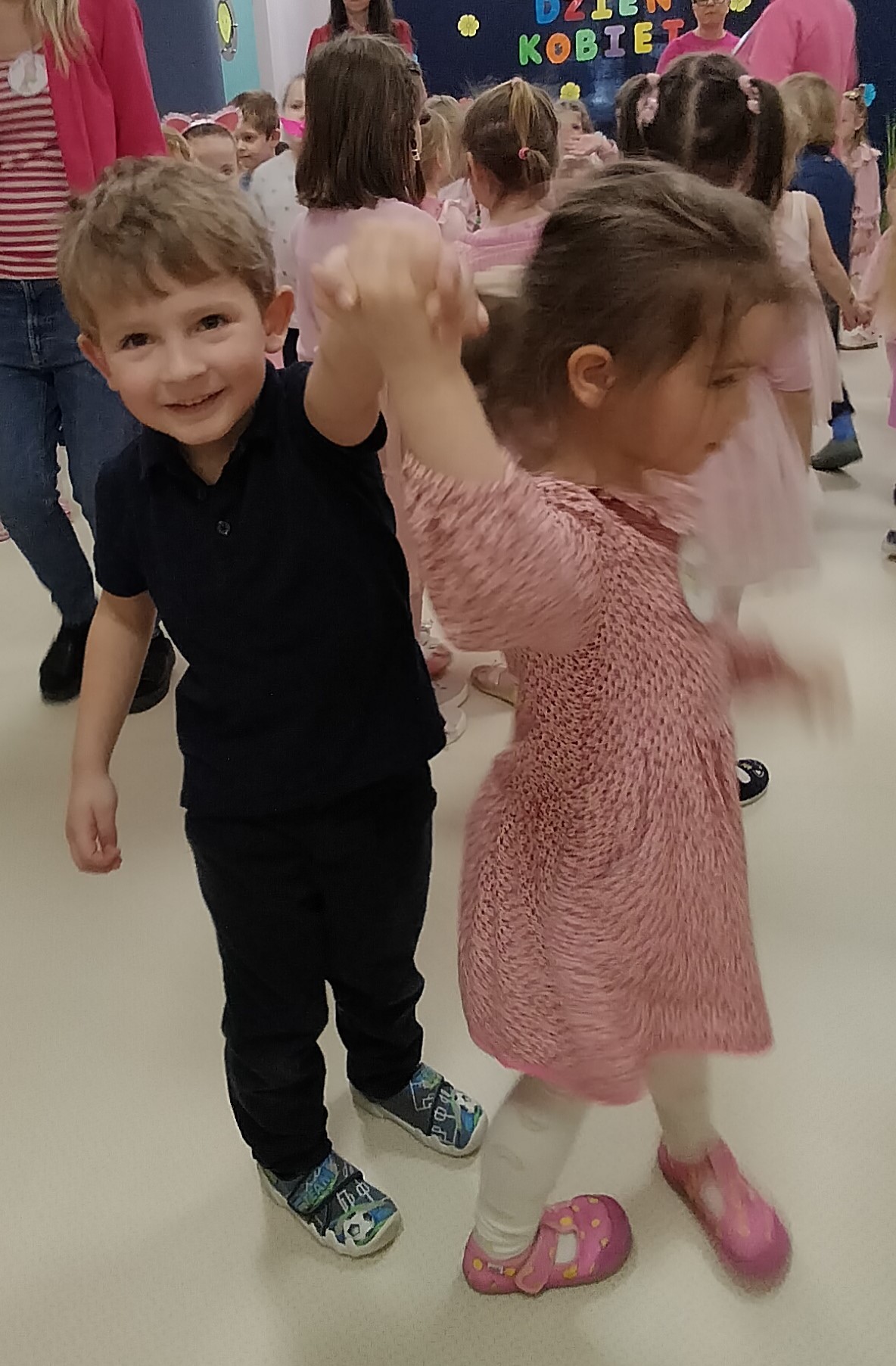 Piątek upłynął w bardzo miłej i radosnej atmosferze. Dziewczynki ubrane na różowo, a chłopcy w odcieniach zieleni i niebieskiego wspólnie świętowali Dzień Kobiet.