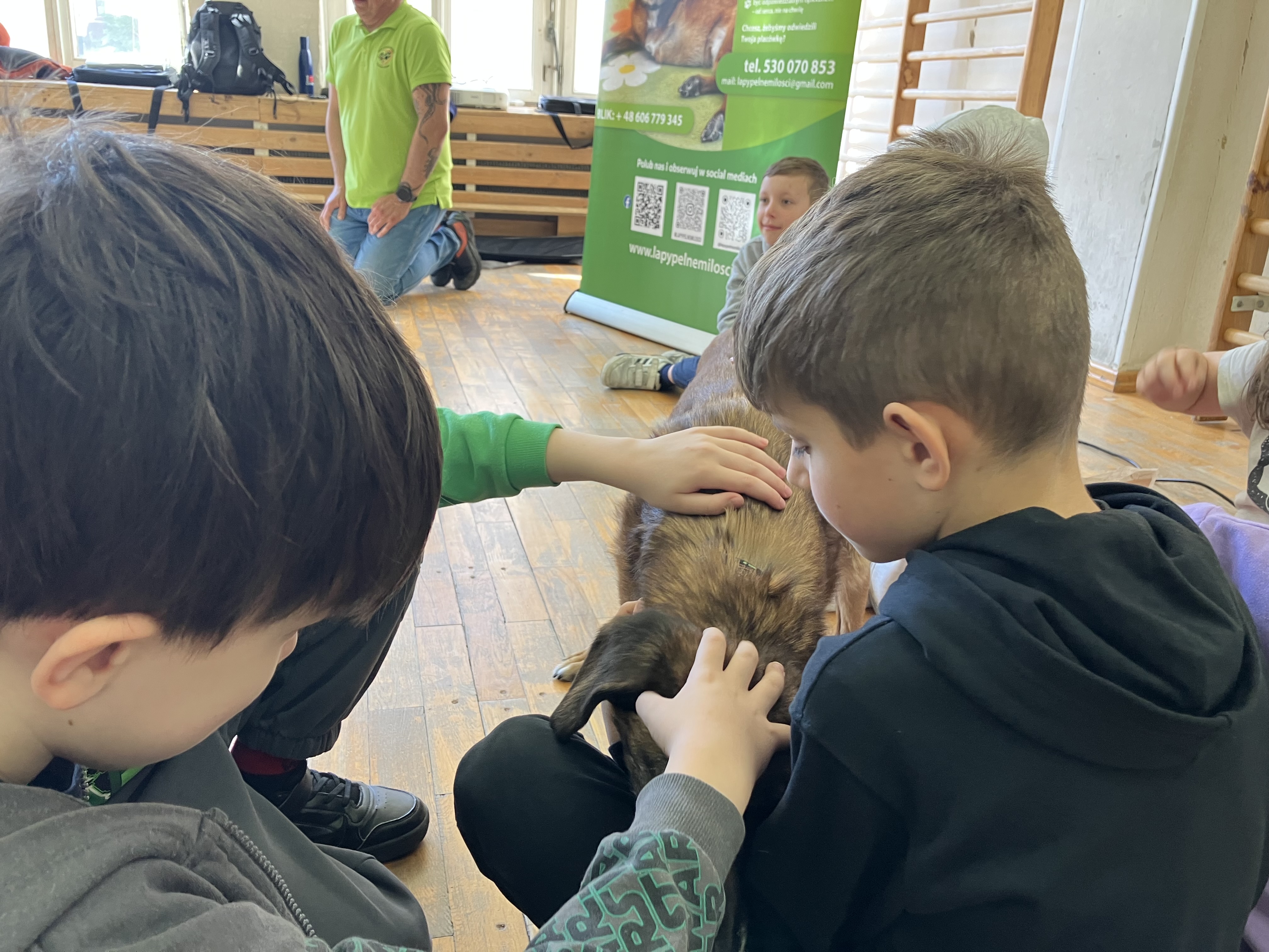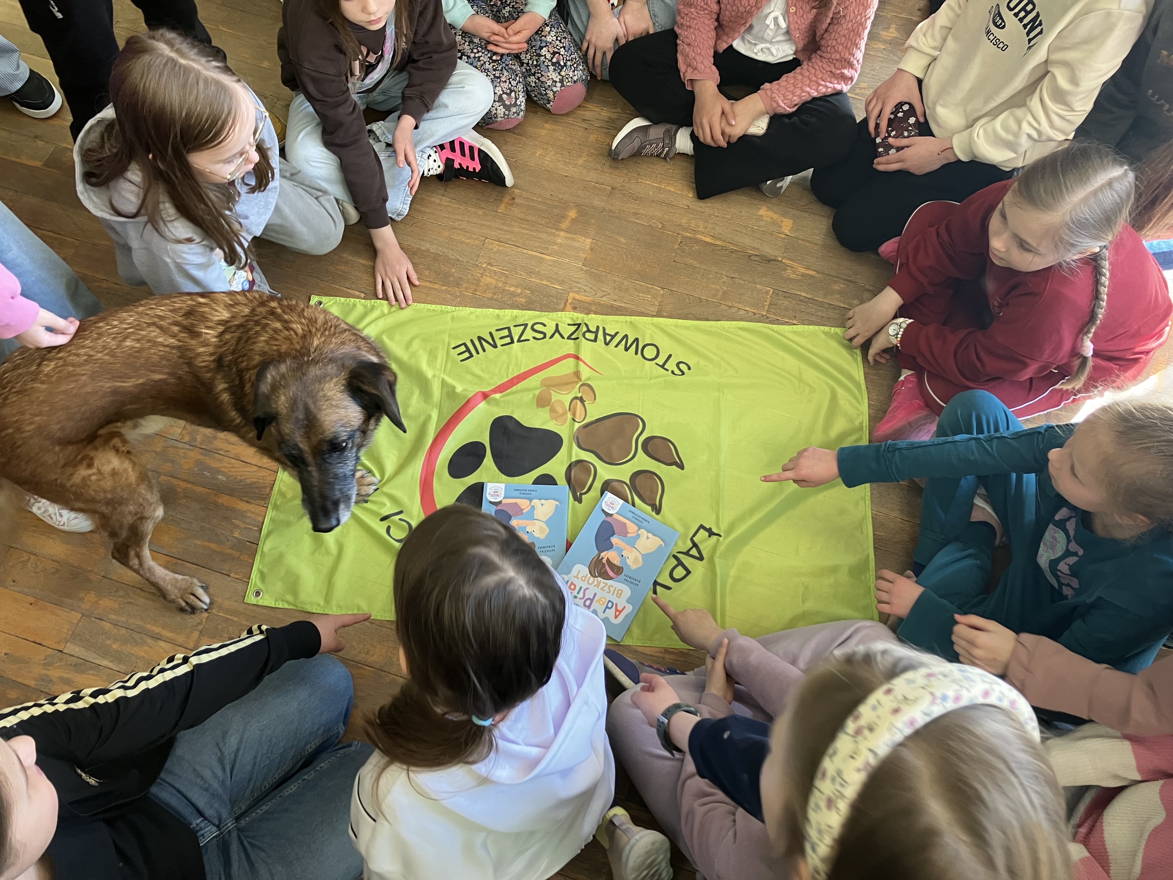 Podczas spotkania dzieci poznały również, po co psu potrzebny jest chip oraz w jakich sytuacjach może on pomóc. Nie zabrakło także bezpośredniego kontaktu z Wektorem – pies chętnie podchodził do uczniów, pozwalał się głaskać i przytulać, co sprawiło dzieciom ogromną radość.