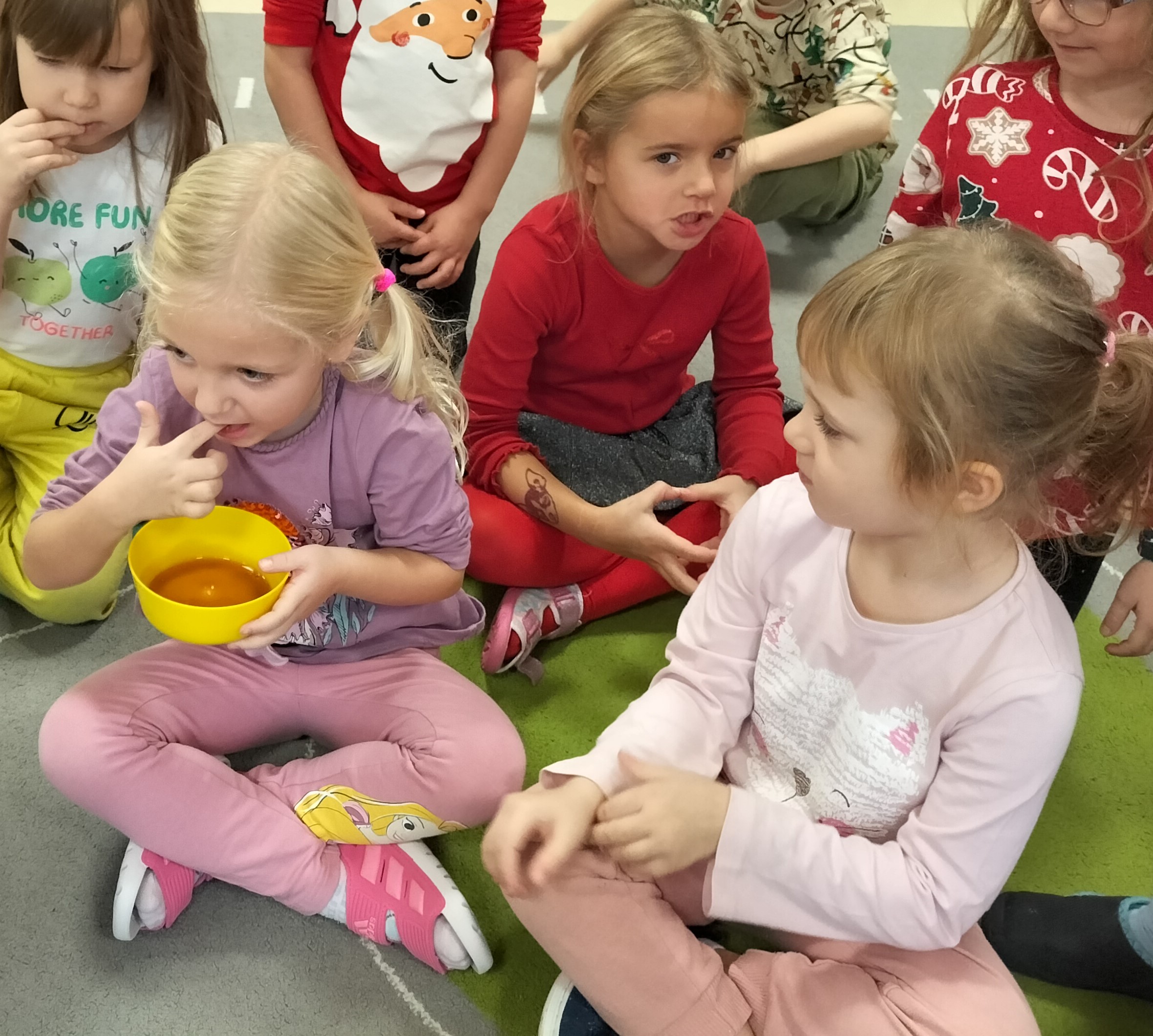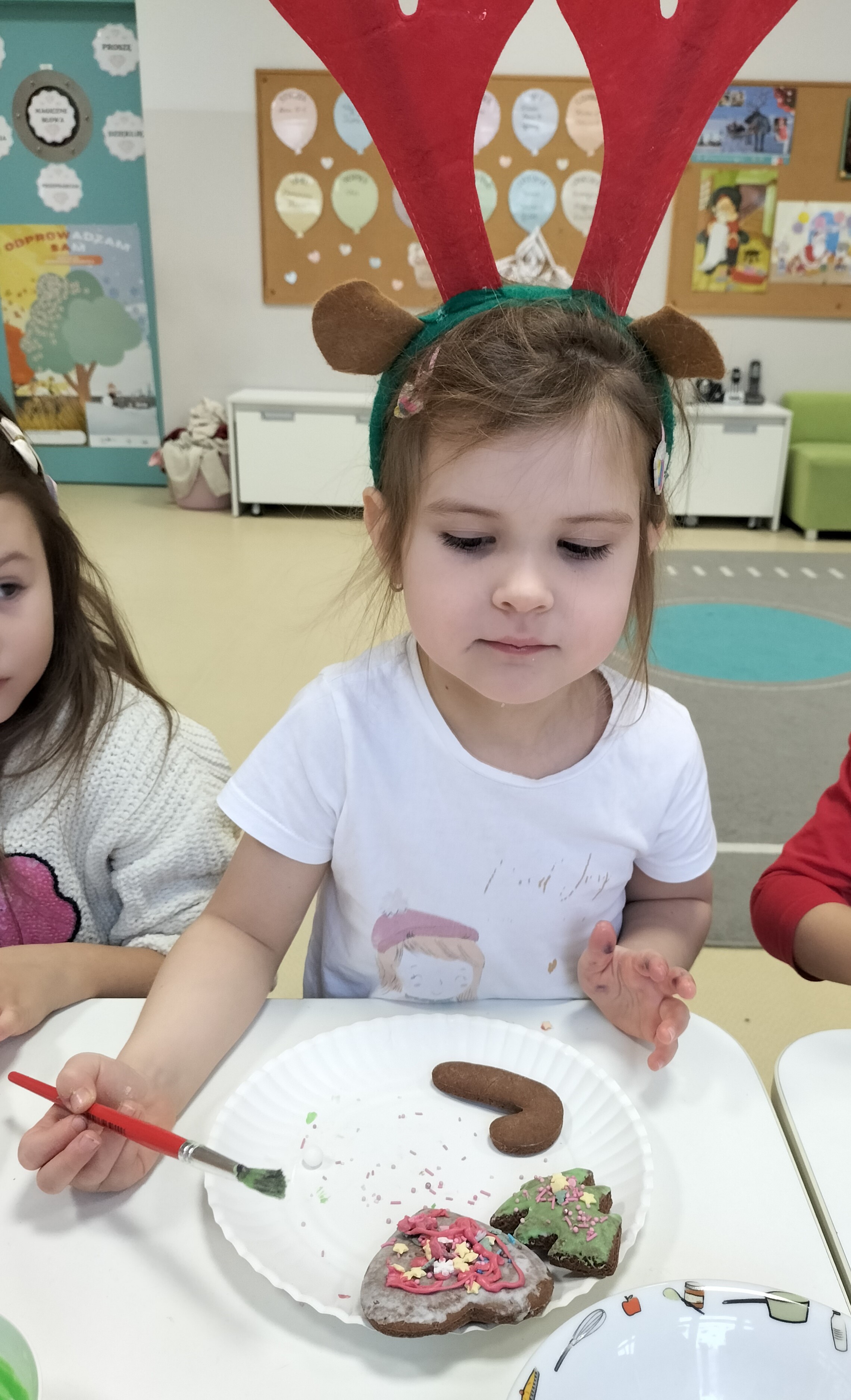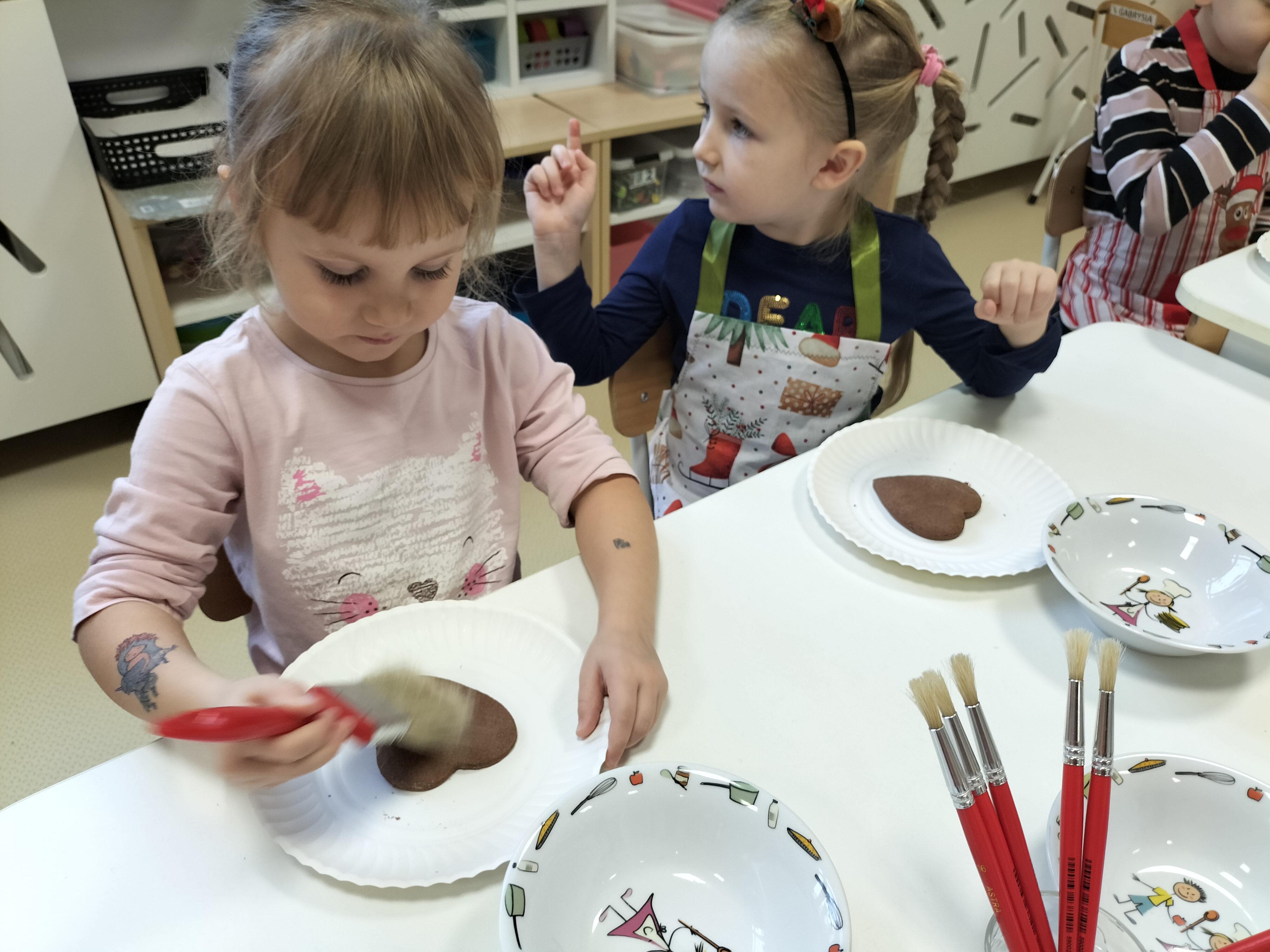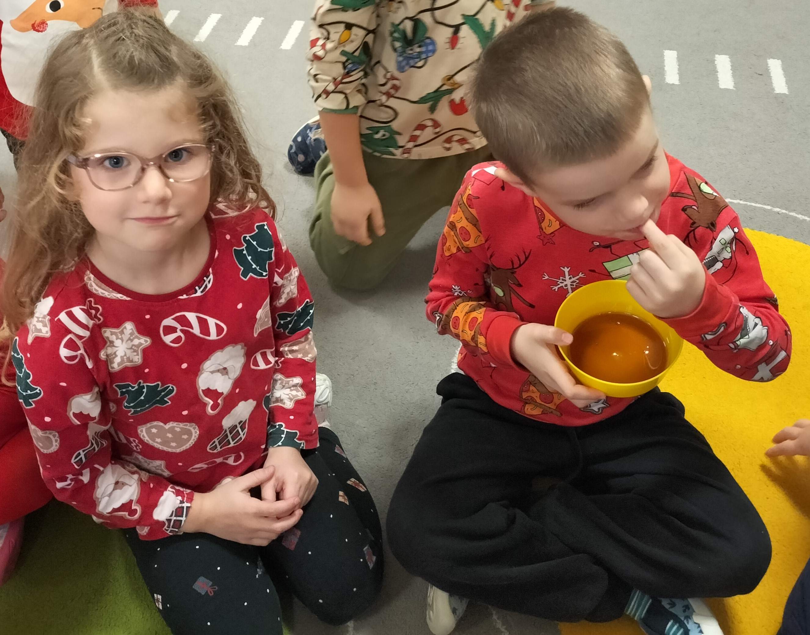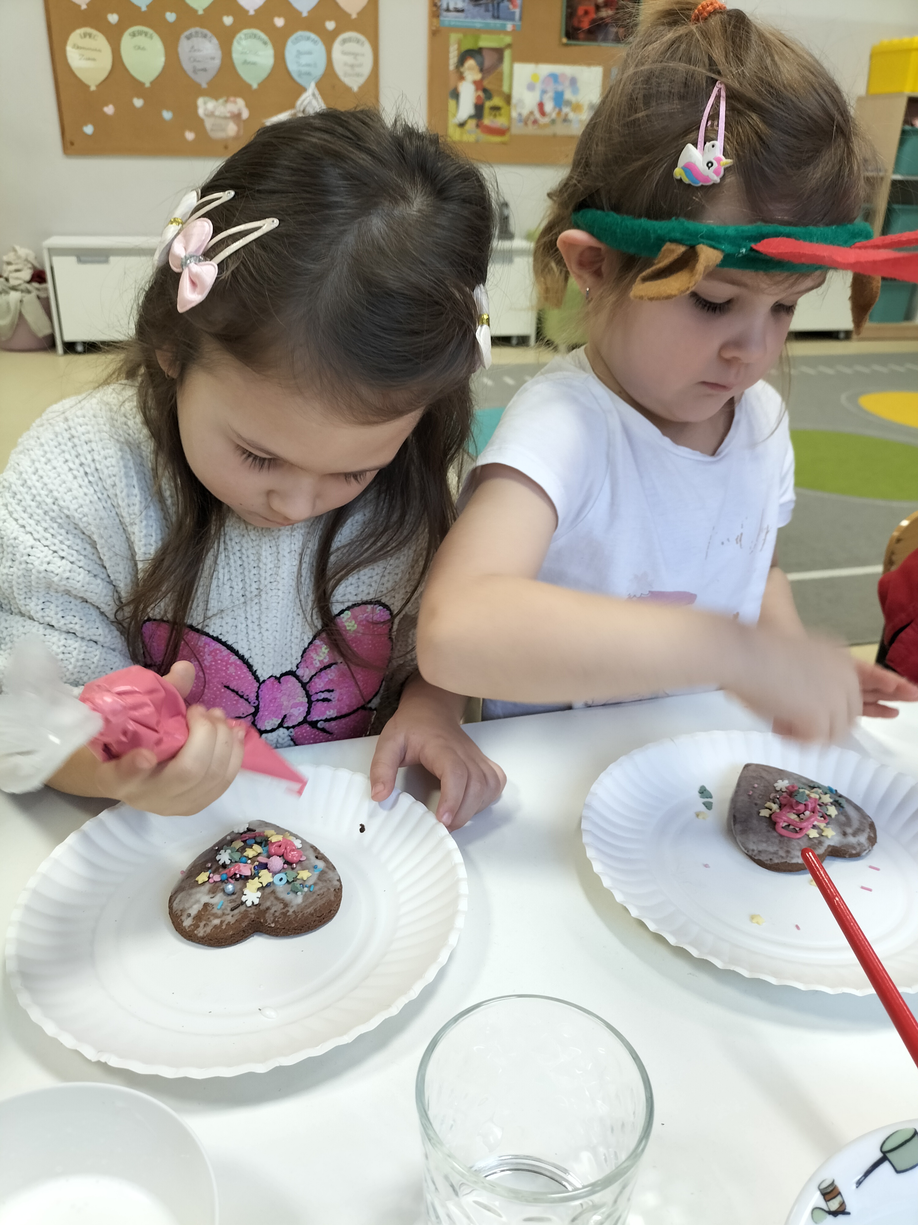 2 grudnia, w grupie Elfów gościliśmy Mamę Kuby. Pani Natalia, która na co dzień pracuje jako cukiernik, opowiedziała dzieciom o swojej słodkiej pasji. Poznaliśmy cały proces wypiekania pierników oraz produkty, które są niezbędne do wypieku tych wyjątkowych ciasteczek. Potem każdy, pod czujnym okiem Pani Natalii, ozdabiał swoje pierniki – było dużo zabawy, kolorowego lukru i świątecznego klimatu. Mali „cukiernicy” z zaangażowaniem tworzyli swoje słodkie dzieła, które stały się wyjątkowym świątecznym upominkiem dla rodziców.