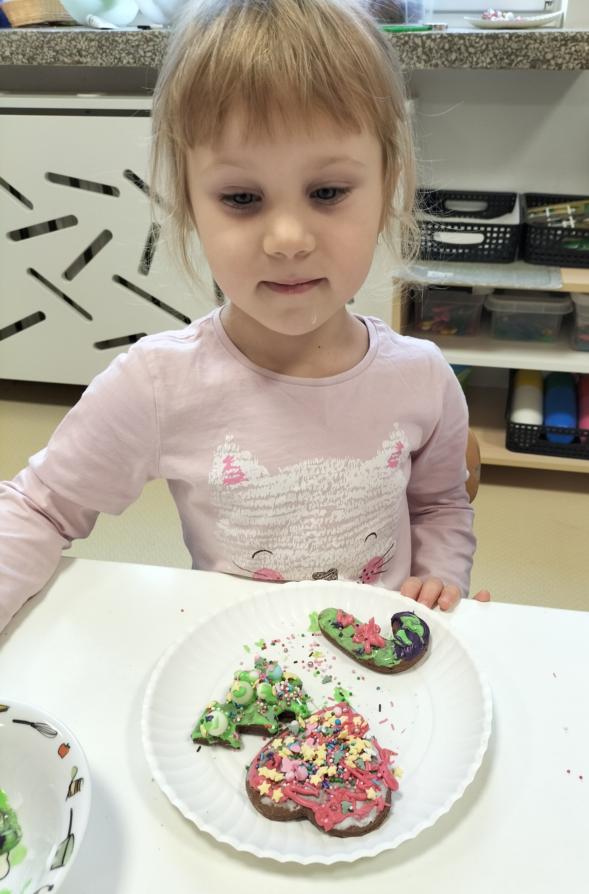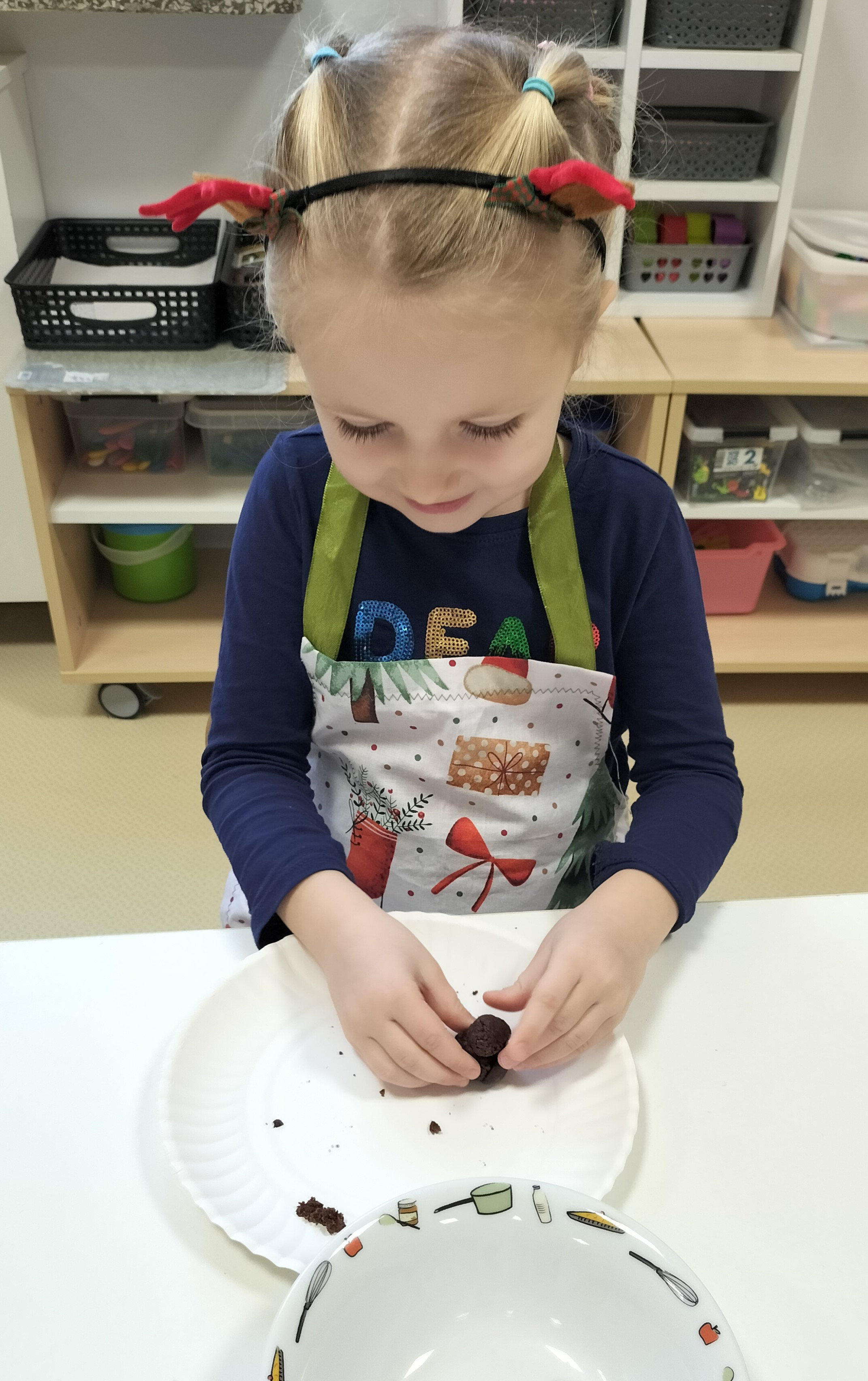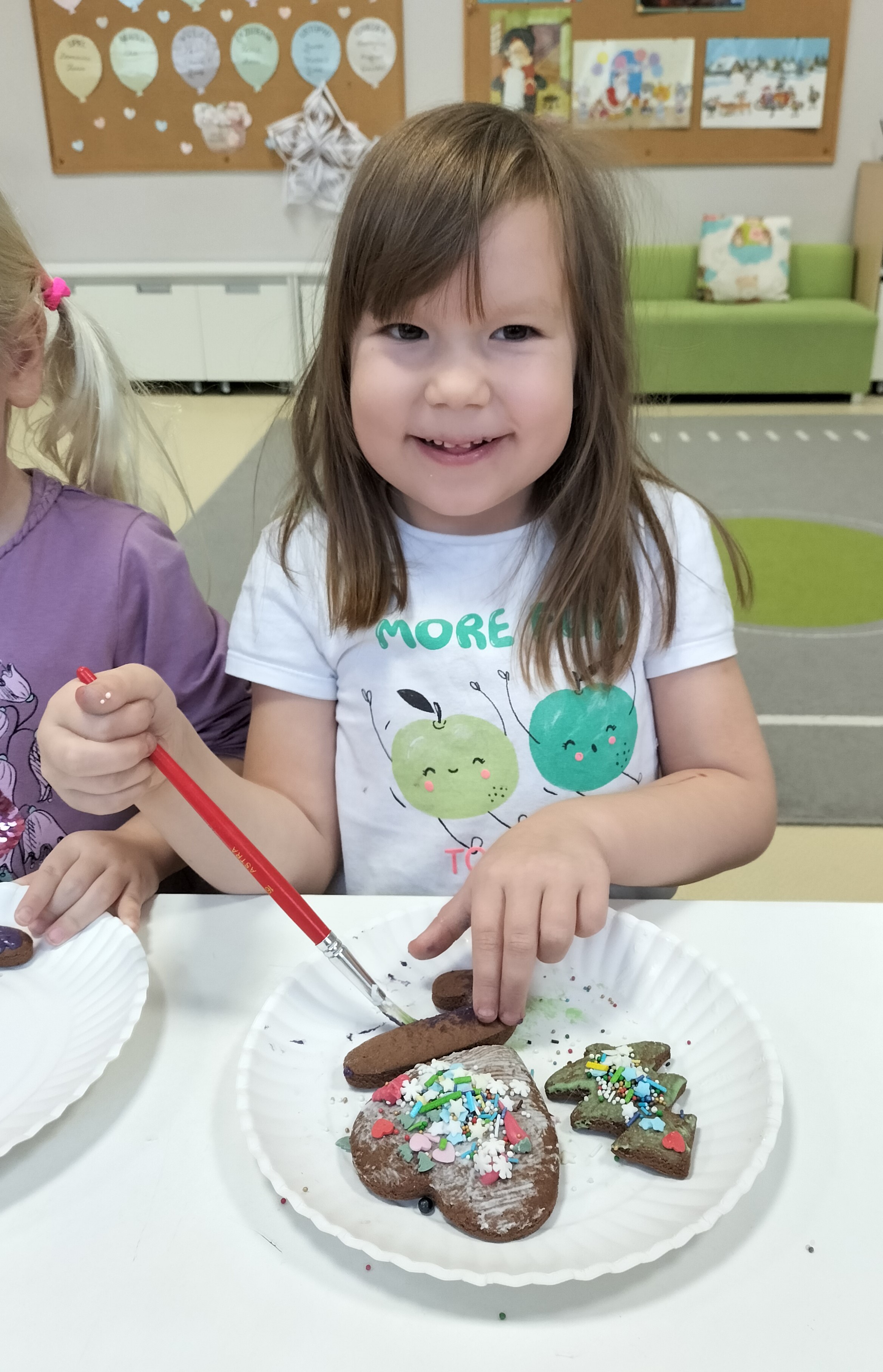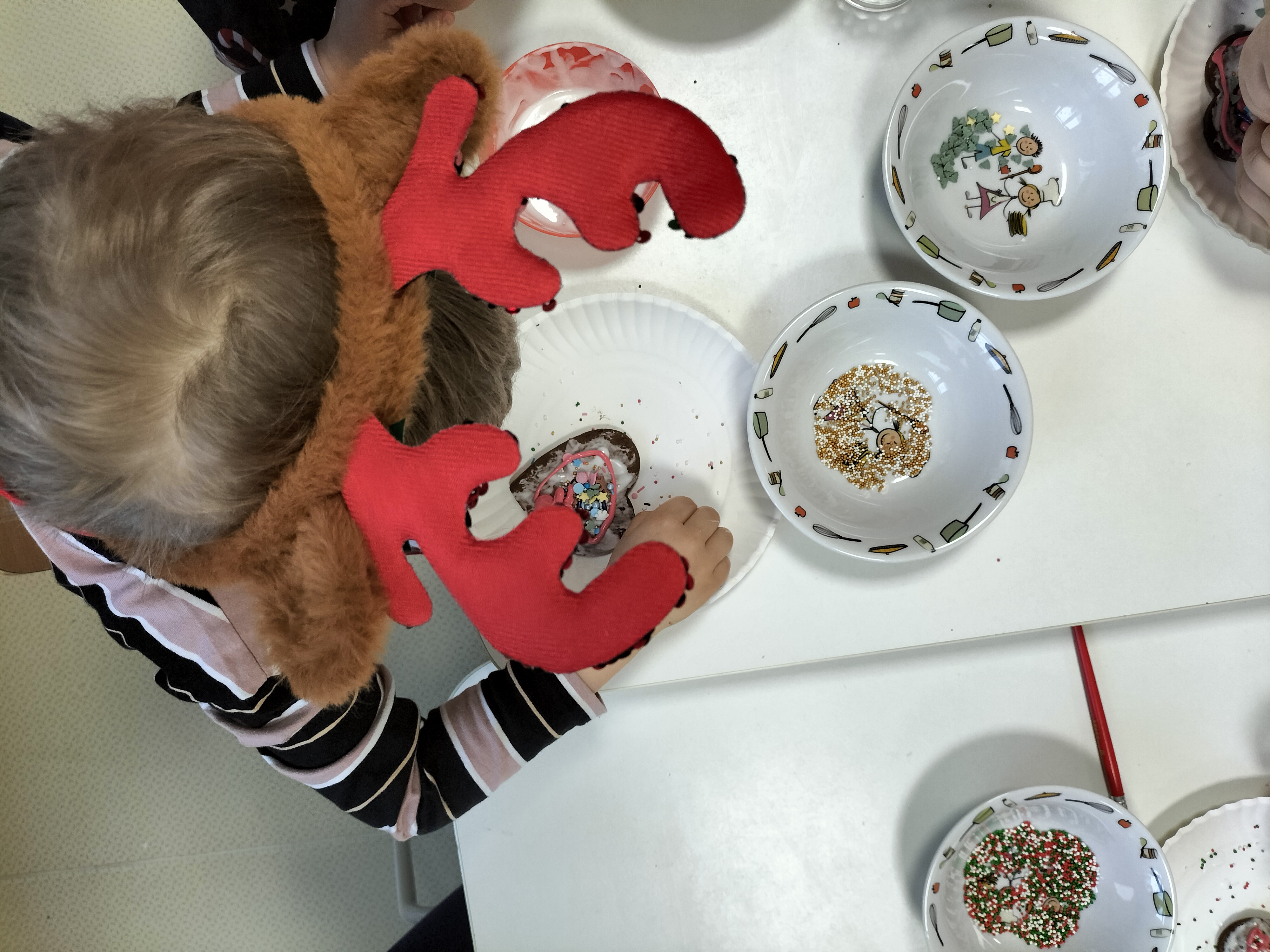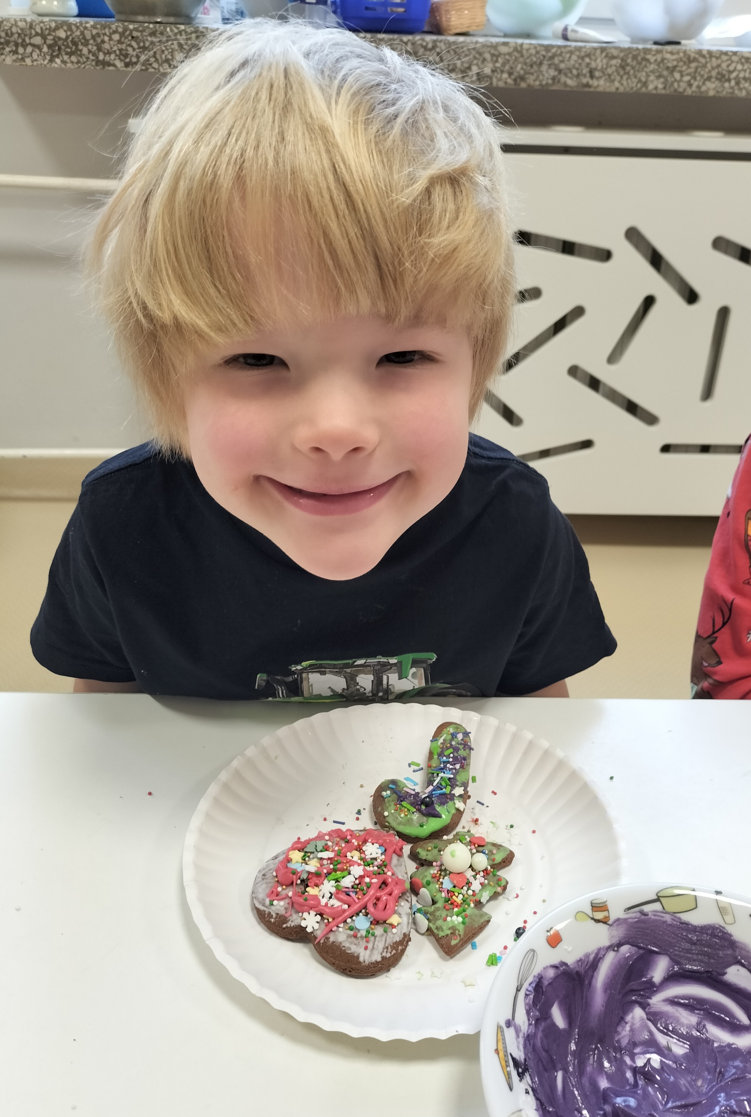2 grudnia, w grupie Elfów gościliśmy Mamę Kuby. Pani Natalia, która na co dzień pracuje jako cukiernik, opowiedziała dzieciom o swojej słodkiej pasji. Poznaliśmy cały proces wypiekania pierników oraz produkty, które są niezbędne do wypieku tych wyjątkowych ciasteczek. Potem każdy, pod czujnym okiem Pani Natalii, ozdabiał swoje pierniki – było dużo zabawy, kolorowego lukru i świątecznego klimatu. Mali „cukiernicy” z zaangażowaniem tworzyli swoje słodkie dzieła, które stały się wyjątkowym świątecznym upominkiem dla rodziców.