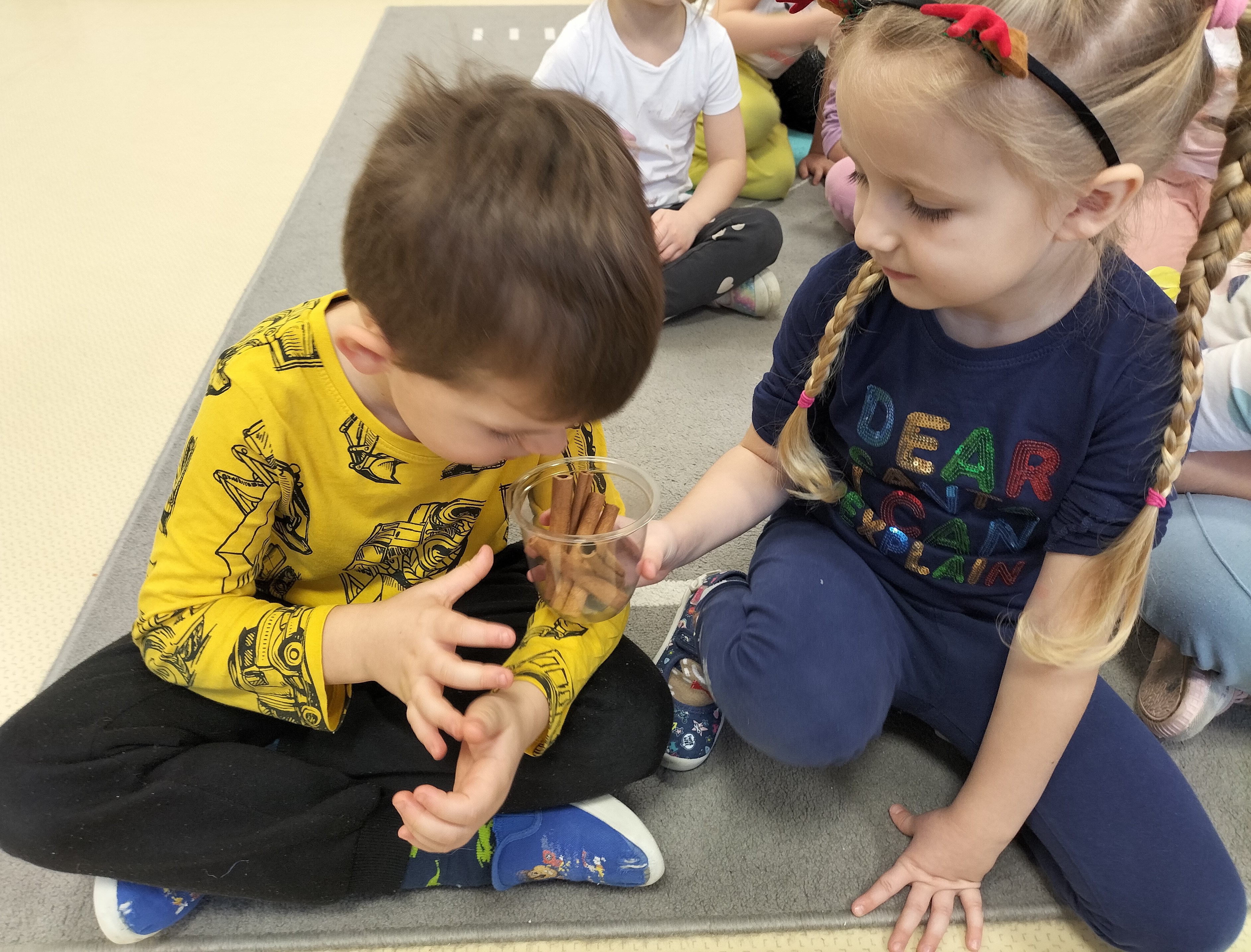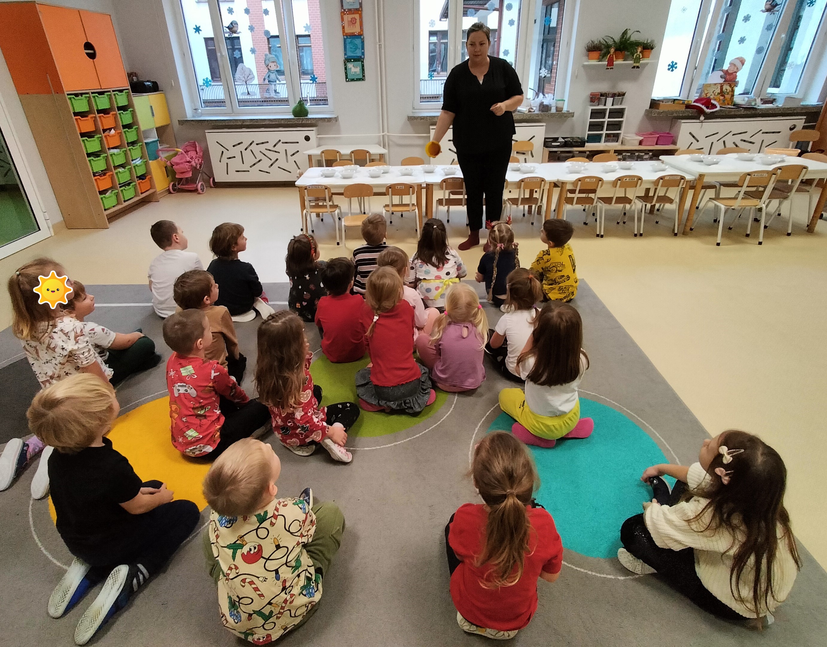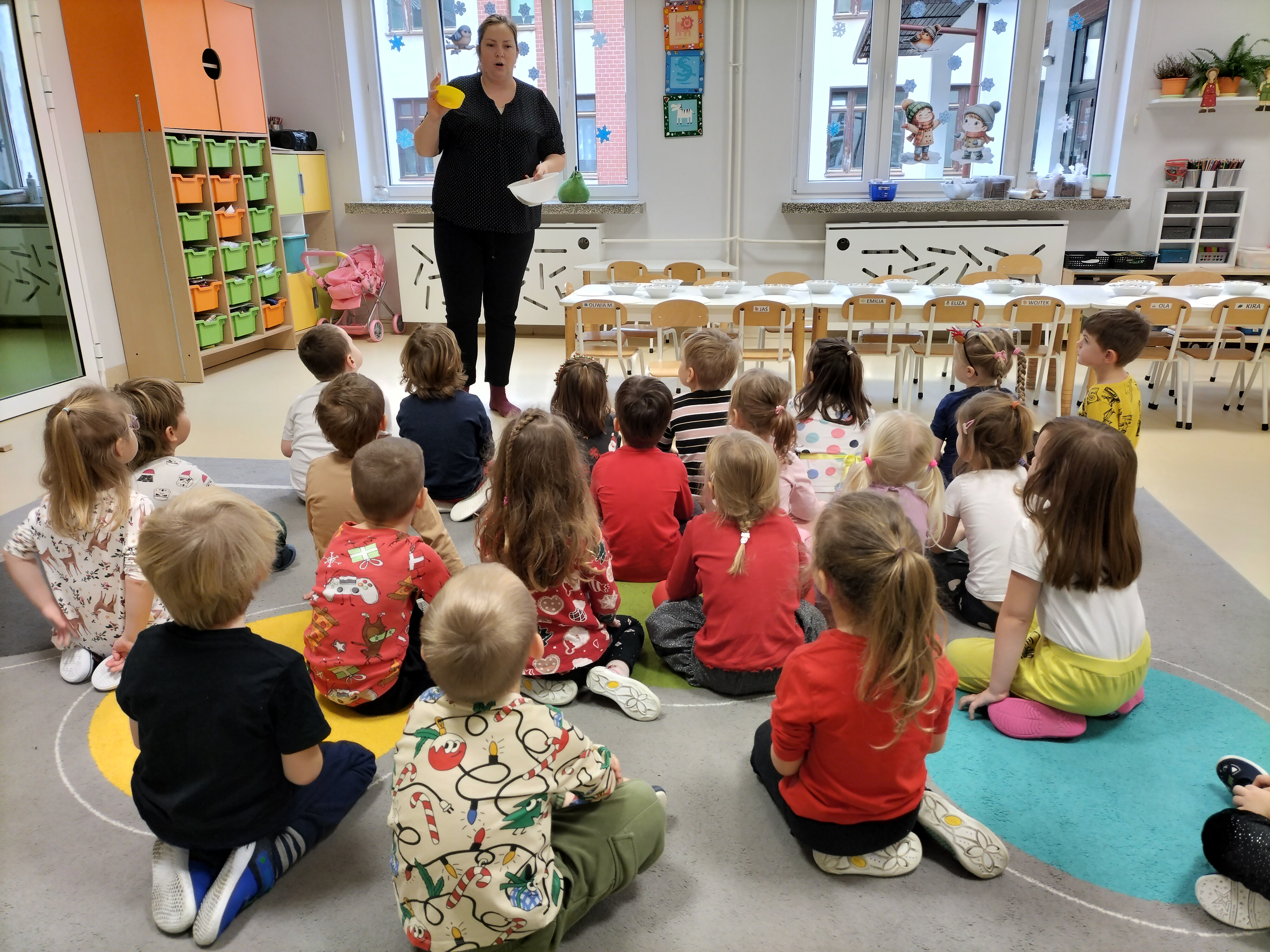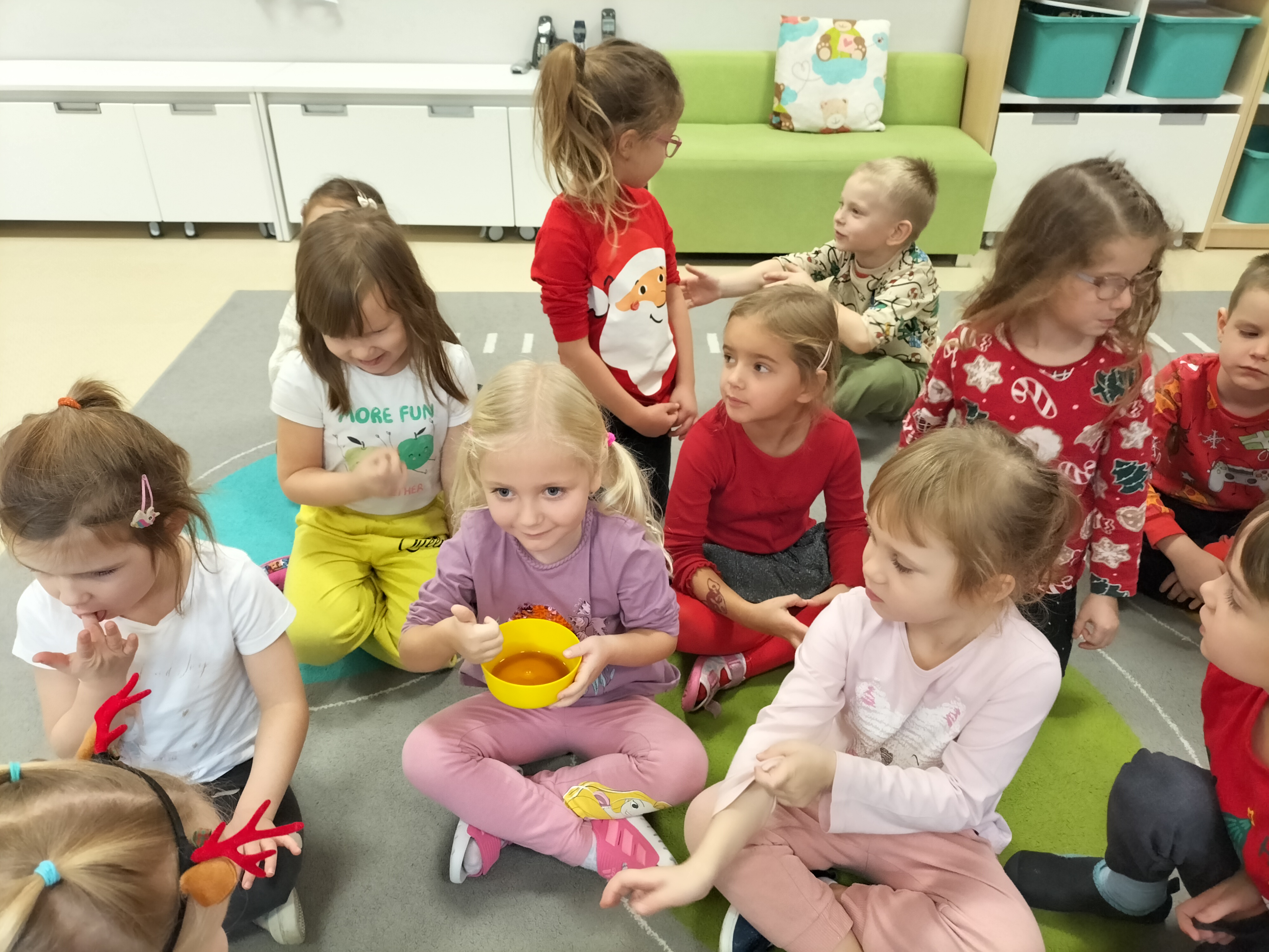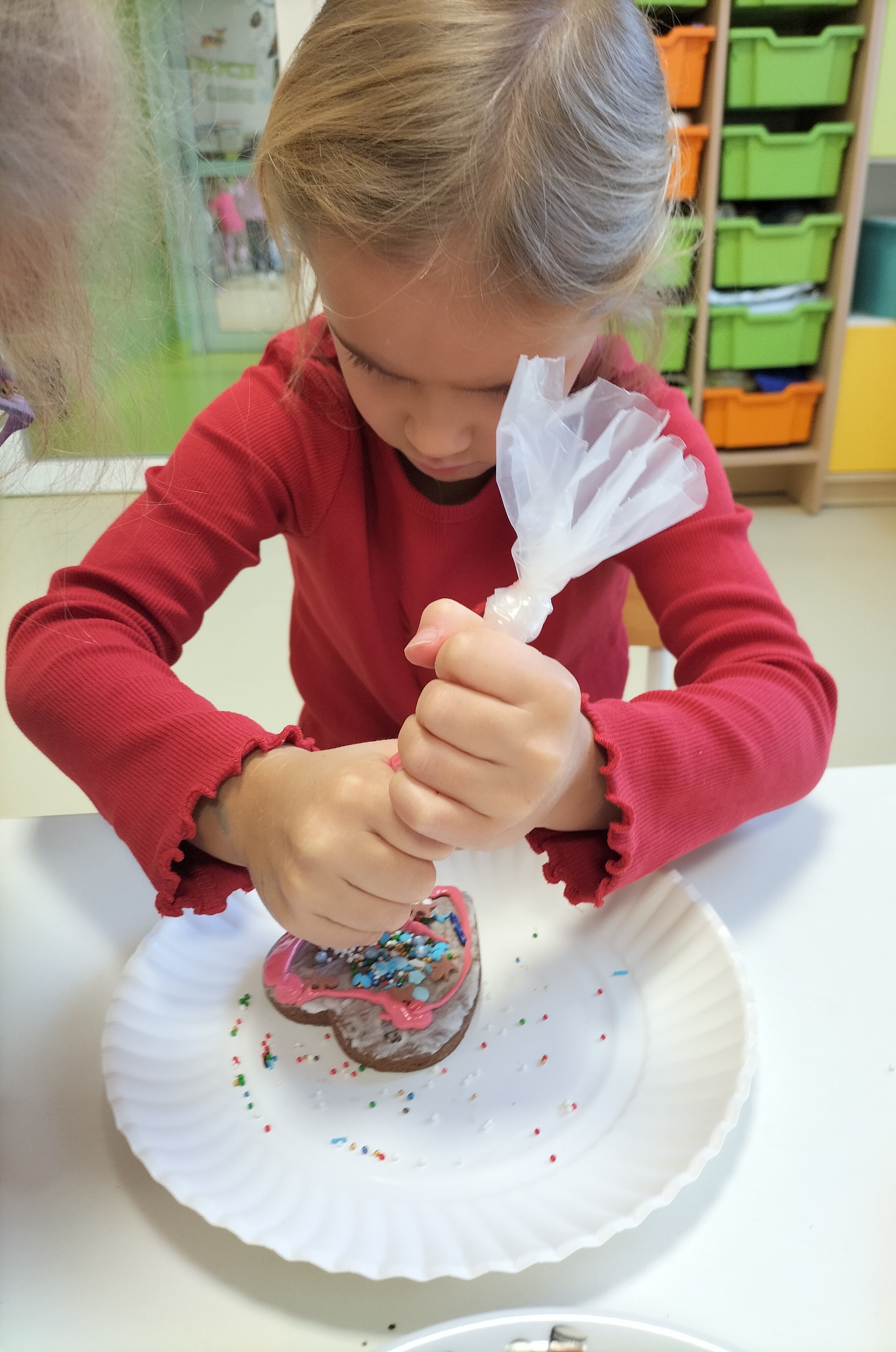 2 grudnia, w grupie Elfów gościliśmy Mamę Kuby. Pani Natalia, która na co dzień pracuje jako cukiernik, opowiedziała dzieciom o swojej słodkiej pasji. Poznaliśmy cały proces wypiekania pierników oraz produkty, które są niezbędne do wypieku tych wyjątkowych ciasteczek. Potem każdy, pod czujnym okiem Pani Natalii, ozdabiał swoje pierniki – było dużo zabawy, kolorowego lukru i świątecznego klimatu. Mali „cukiernicy” z zaangażowaniem tworzyli swoje słodkie dzieła, które stały się wyjątkowym świątecznym upominkiem dla rodziców.