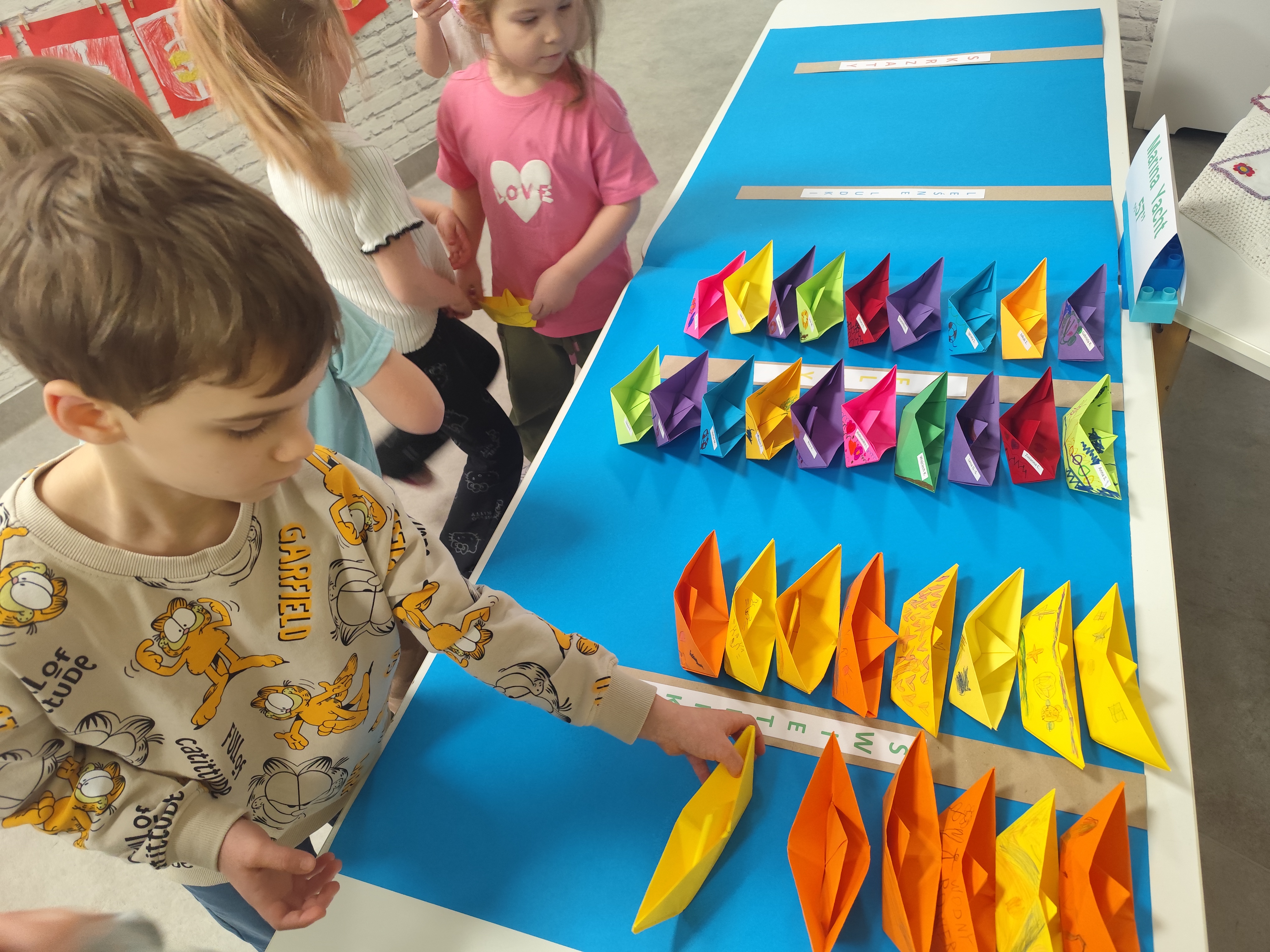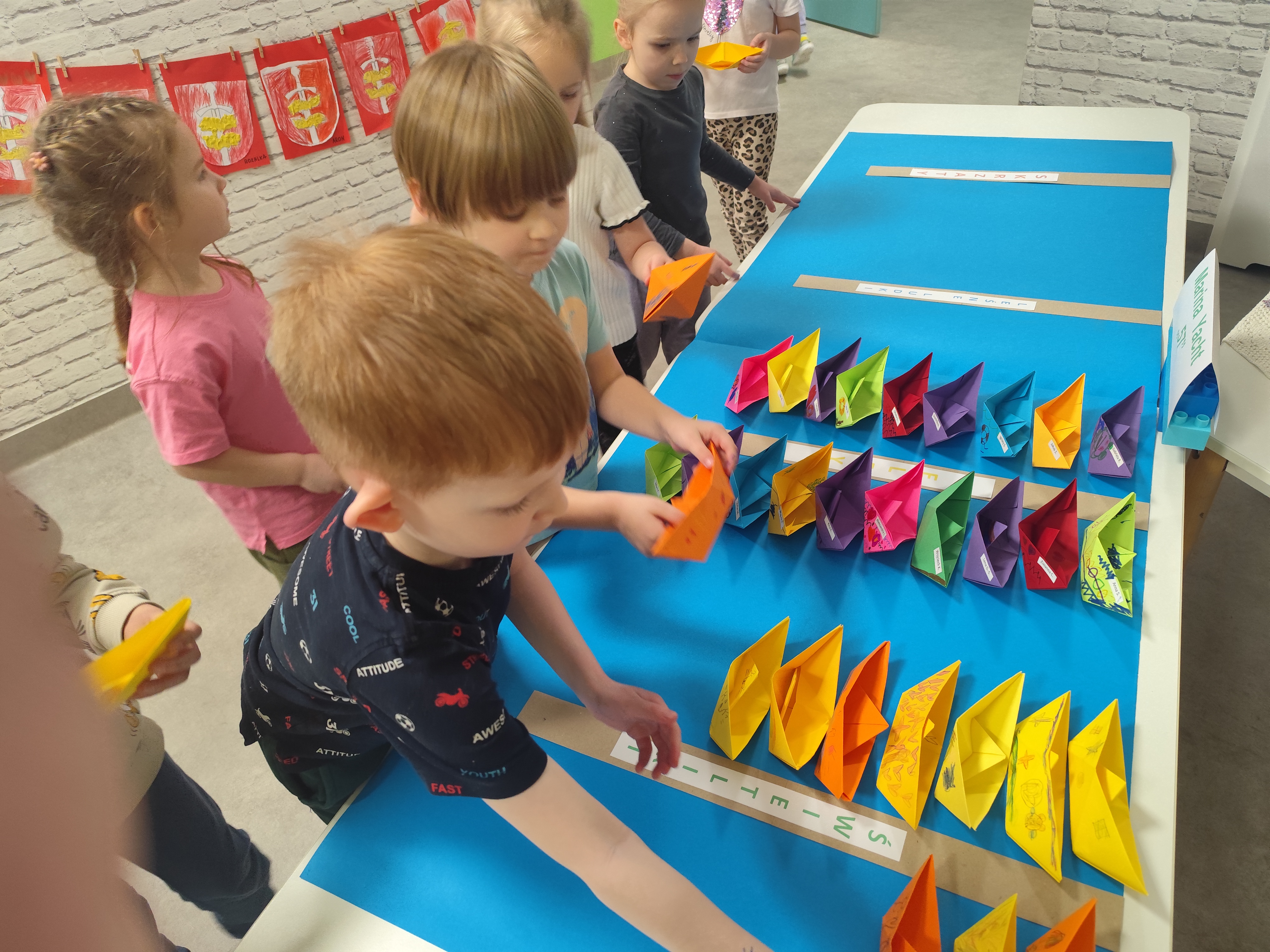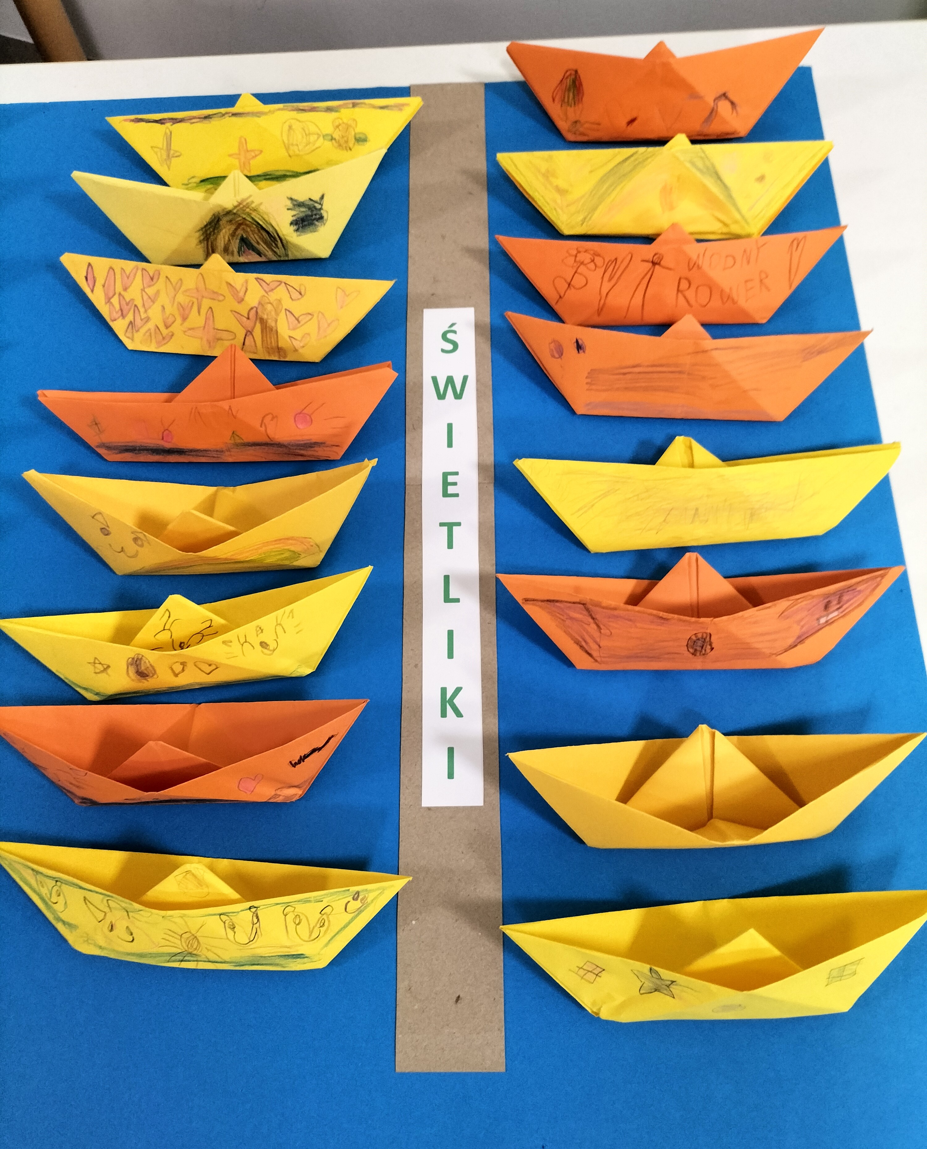Poznaliśmy jednostki pływające, które przypływają do portu i cumują w marinie gdyńskiej. Rozmawialiśmy o ich wyglądzie, przeznaczeniu oraz pracy ludzi związanych z morzem. Każda grupa wykonała własne jednostki pływające. Starsze dzieci samodzielnie składały swoje łódki i żaglowce, natomiast młodsze z zaangażowaniem ozdabiały przygotowane wcześniej modele. Efektem naszej wspólnej pracy jest makieta Marina Yacht „57”, stanowiąca zwieńczenie wszystkich działań.