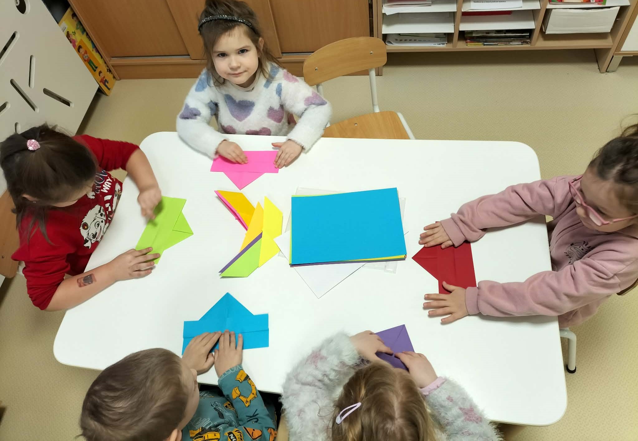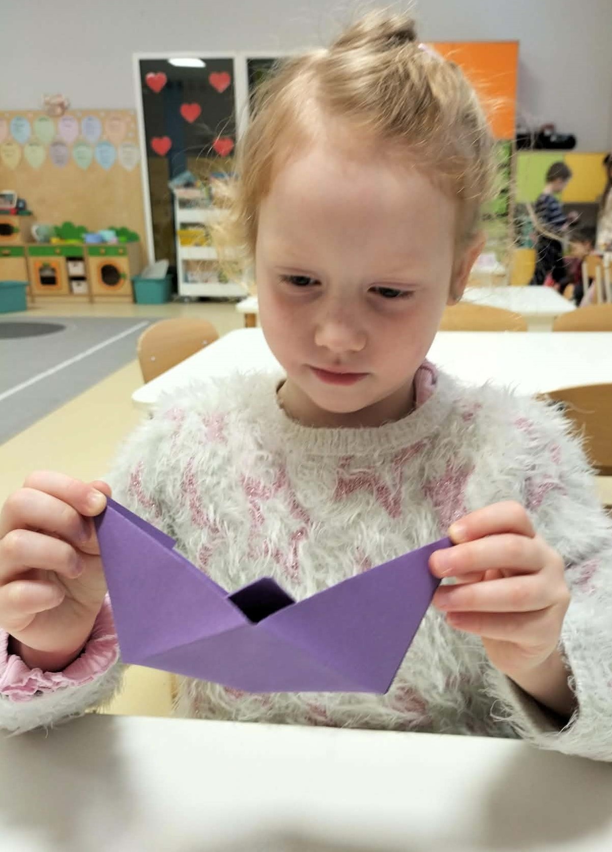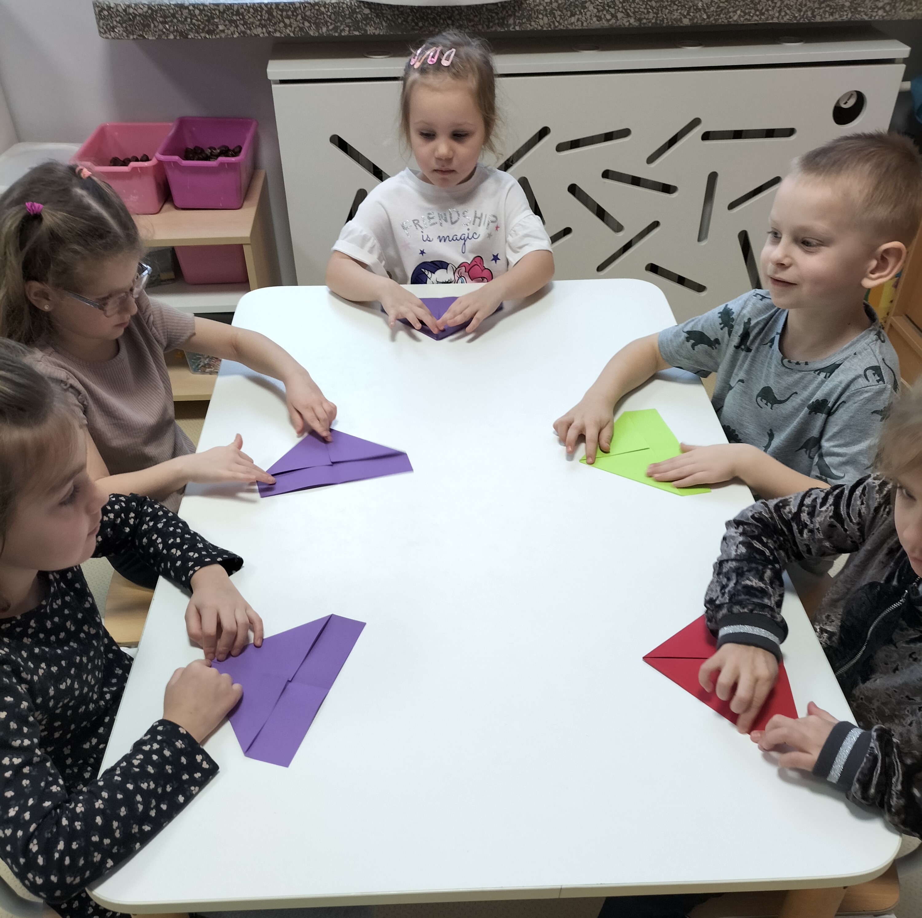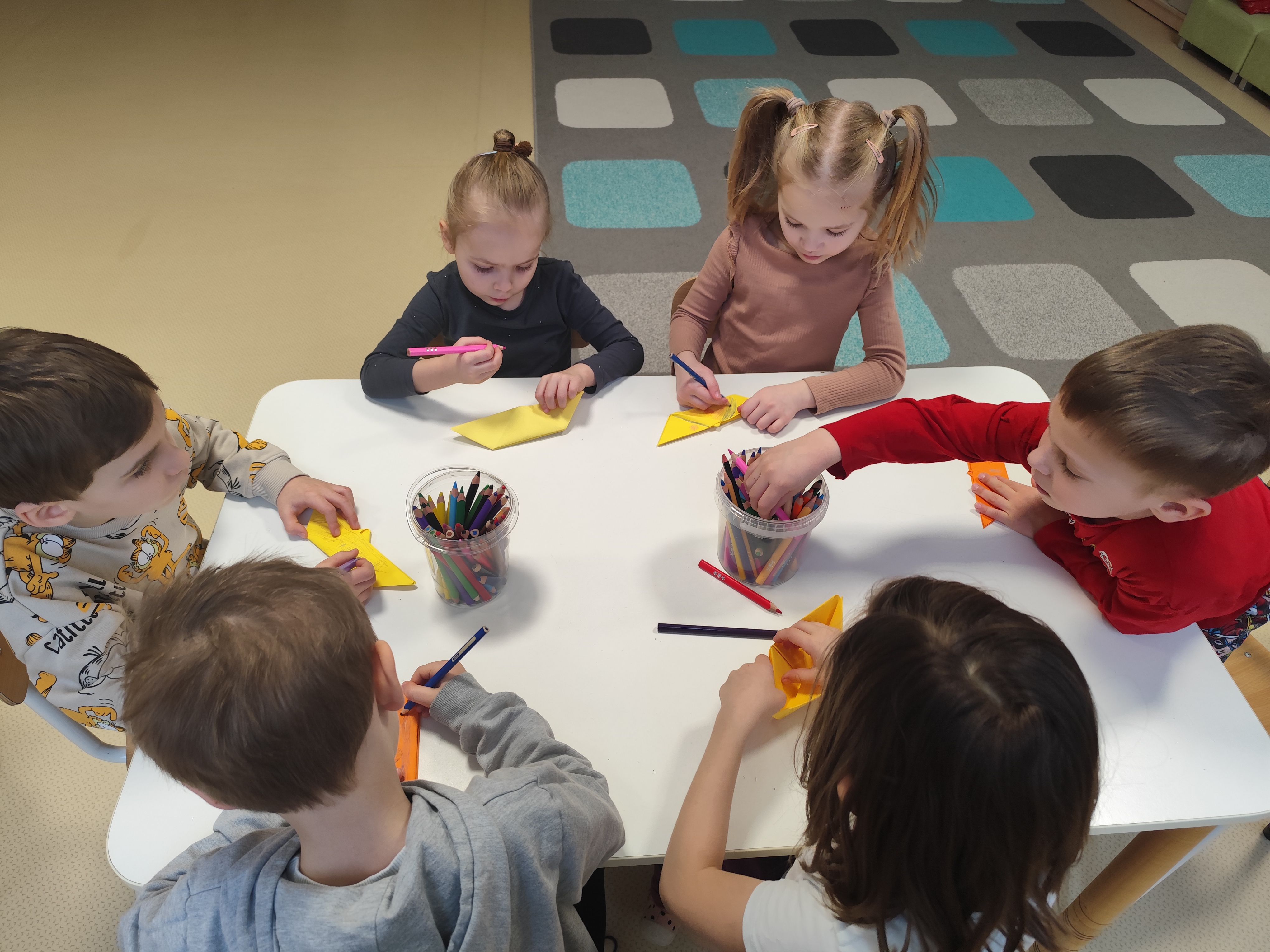 Poznaliśmy jednostki pływające, które przypływają do portu i cumują w marinie gdyńskiej. Rozmawialiśmy o ich wyglądzie, przeznaczeniu oraz pracy ludzi związanych z morzem. Każda grupa wykonała własne jednostki pływające. Starsze dzieci samodzielnie składały swoje łódki i żaglowce, natomiast młodsze z zaangażowaniem ozdabiały przygotowane wcześniej modele. Efektem naszej wspólnej pracy jest makieta Marina Yacht „57”, stanowiąca zwieńczenie wszystkich działań.