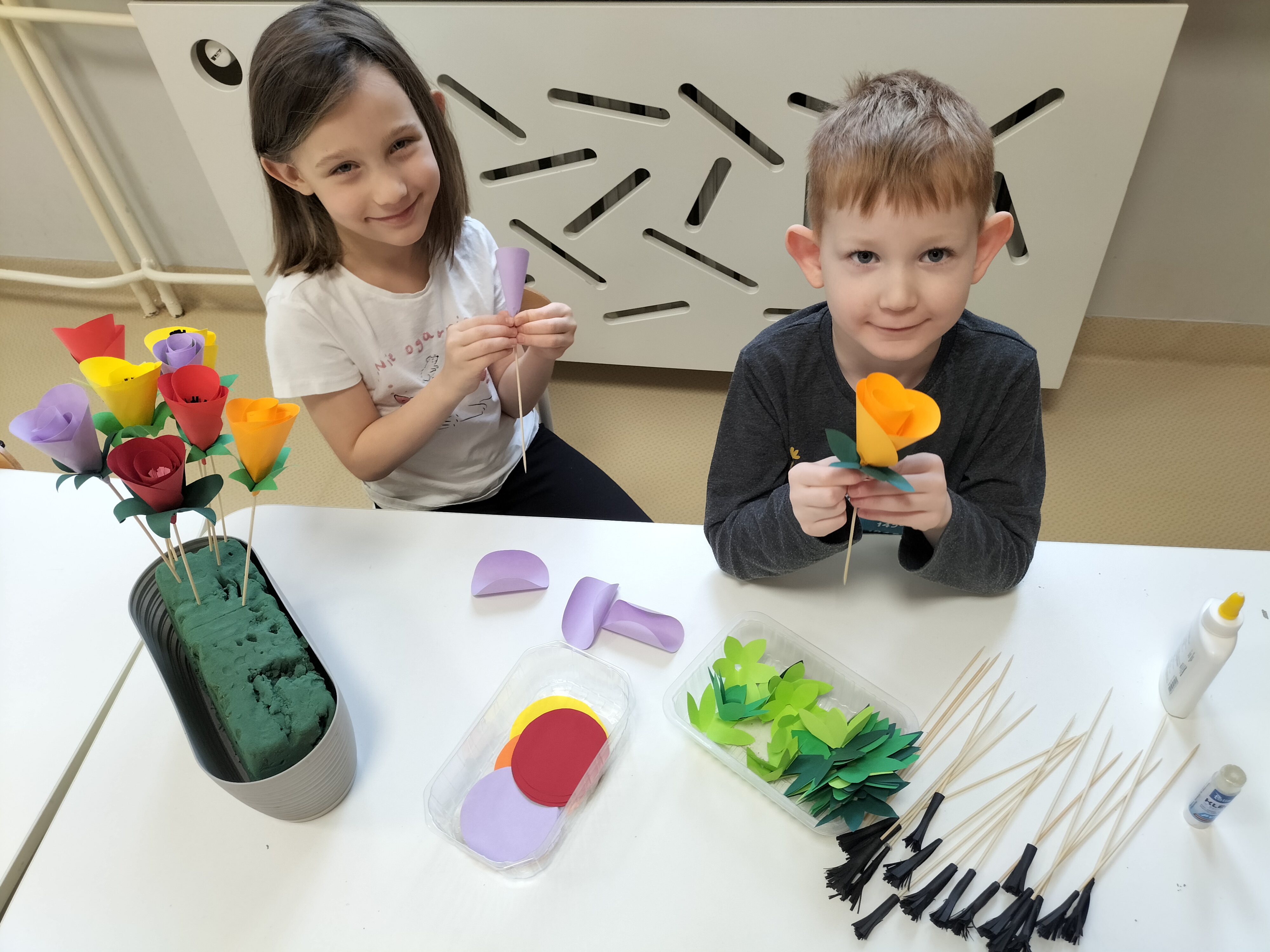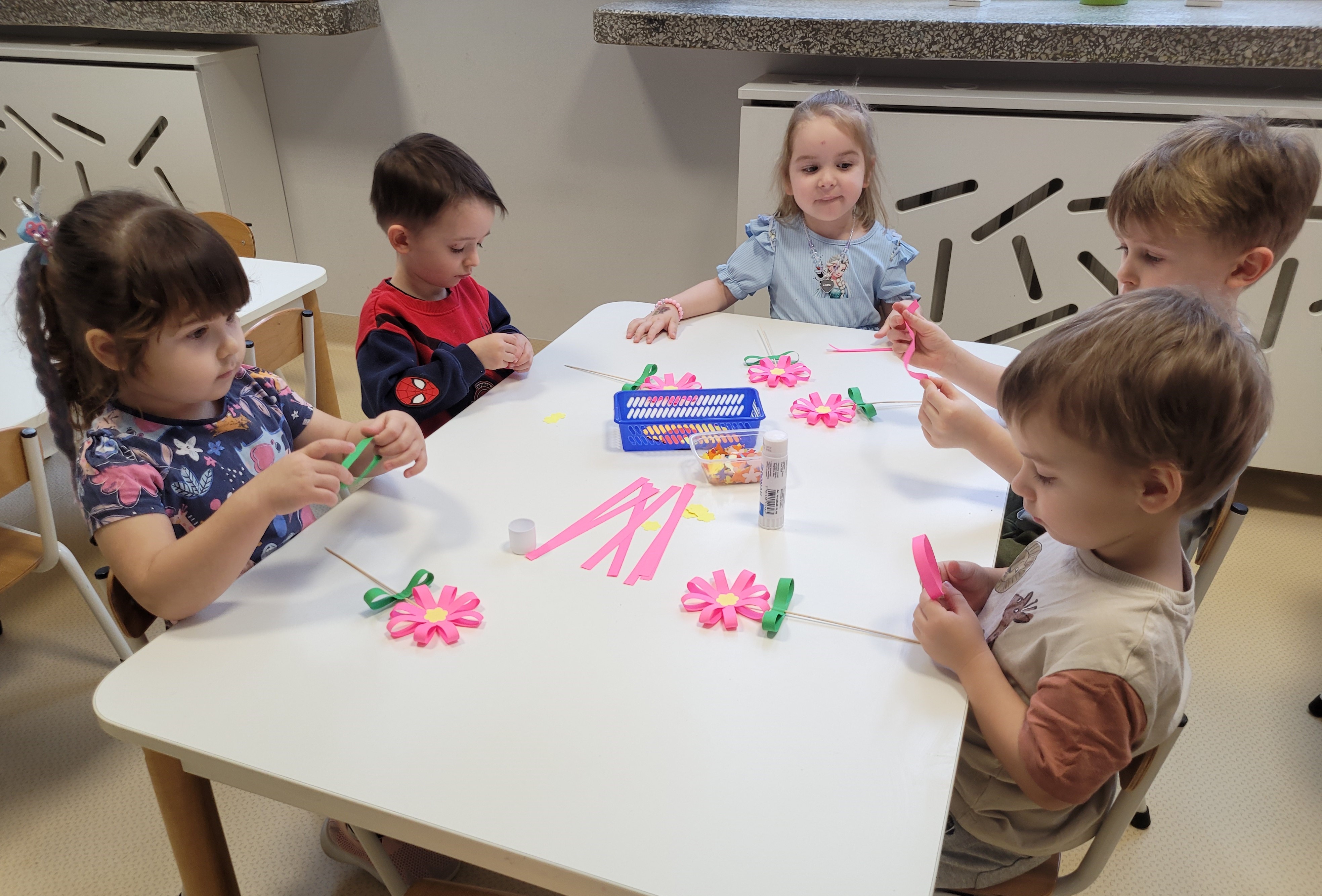 Z okazji 100-lecia Gdyni wszystkie dzieci przygotowały także wyjątkowy prezent dla Jubilatki – „100 kwiatów na 100-lecie Gdyni”. Stworzymy z nich piękny, wspólny flower box, który już w najbliższy wtorek przekażemy Pani Prezydent Miasta.
