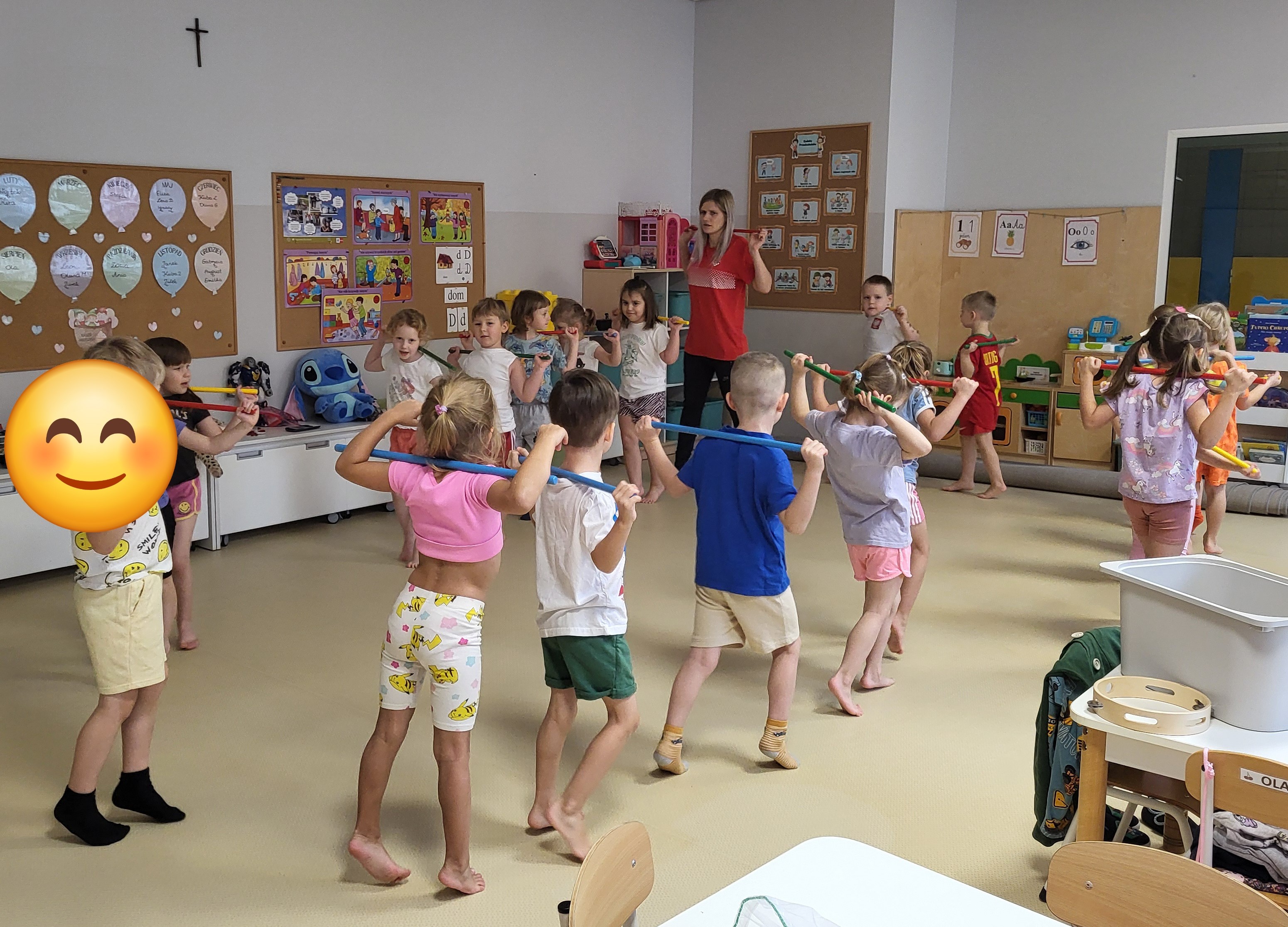 Elfy po raz kolejny wzięły udział w zajęciach gimnastycznych w ramach projektu POSE. Przedszkolaki czerpią dużo radości z wykonywanych ćwiczeń oraz zabaw ruchowych.