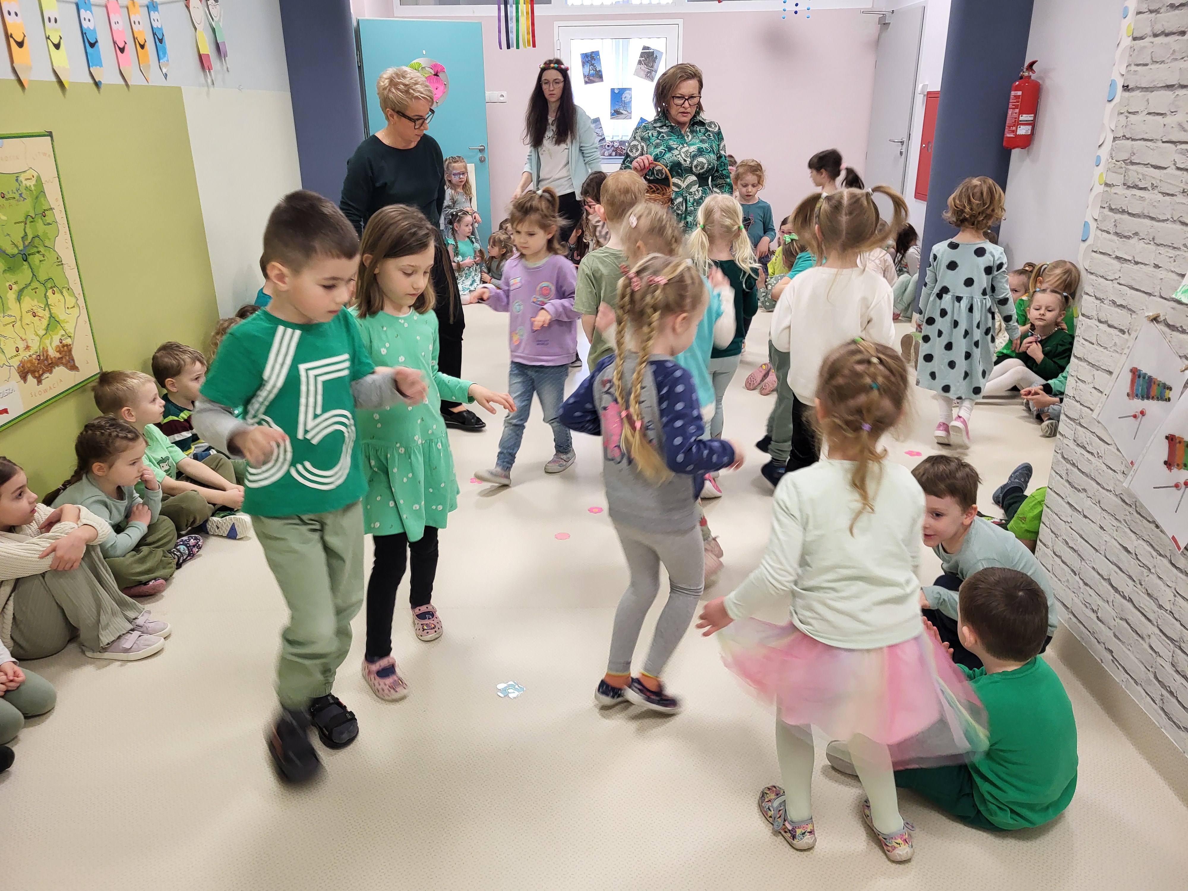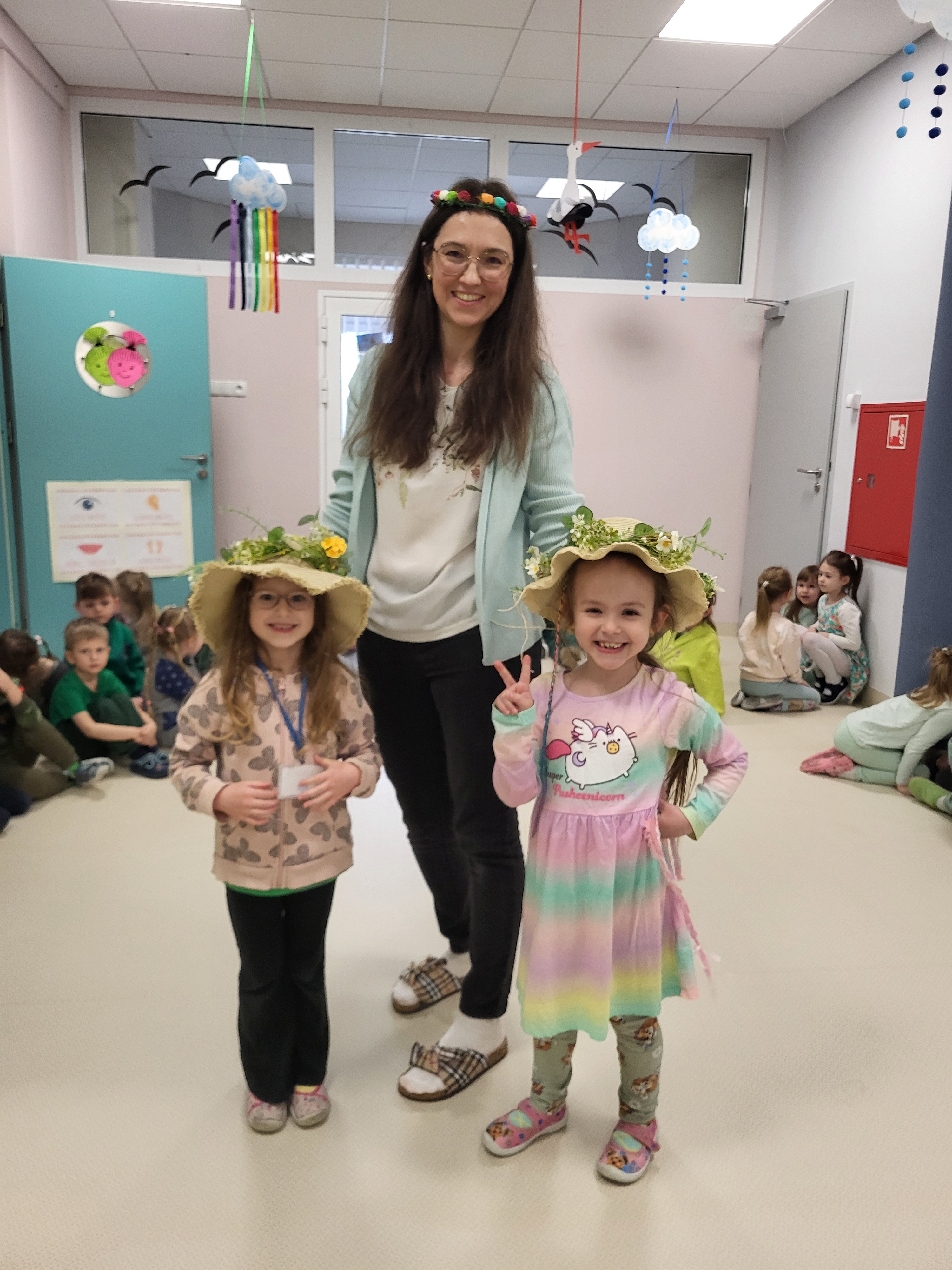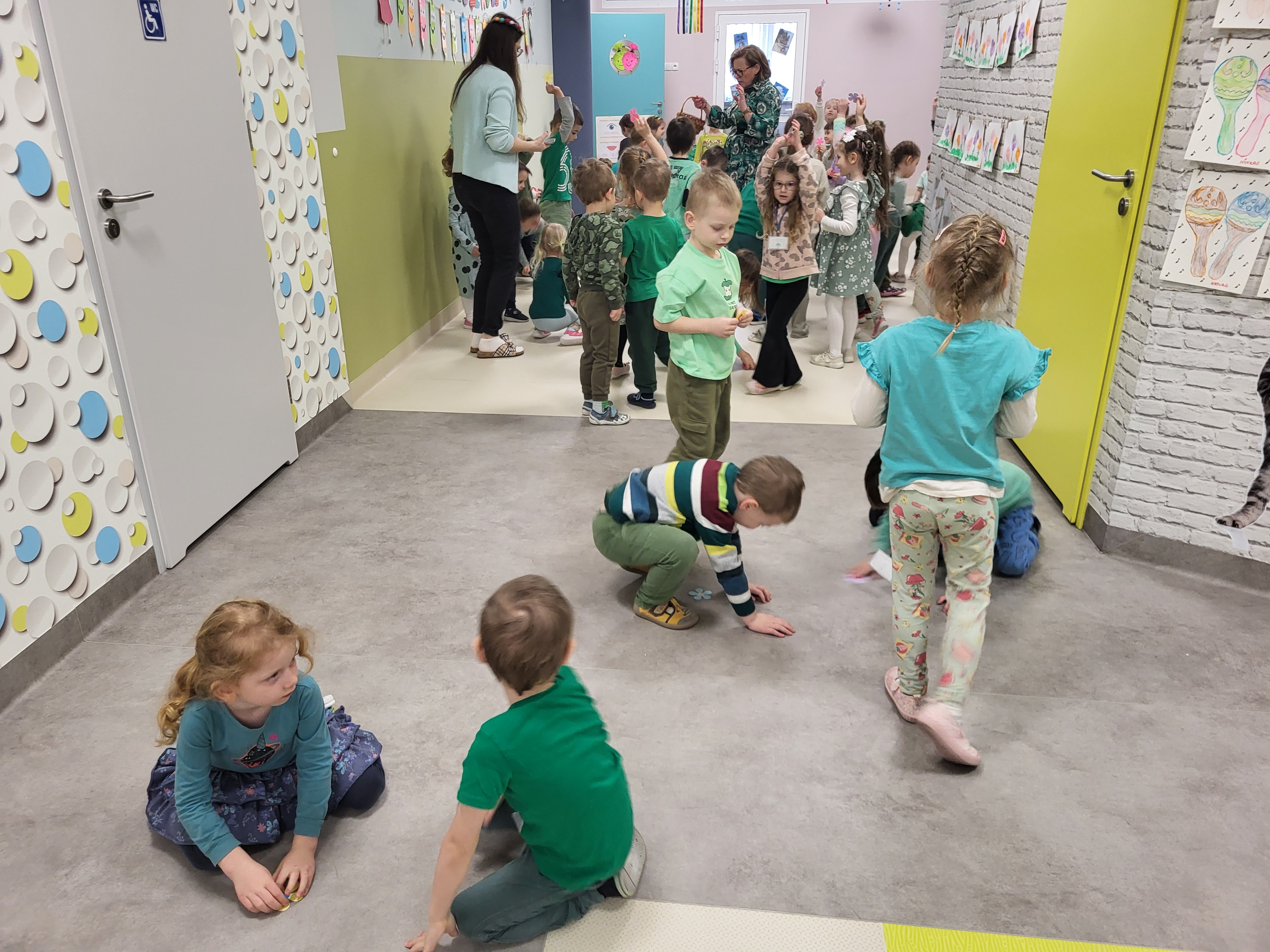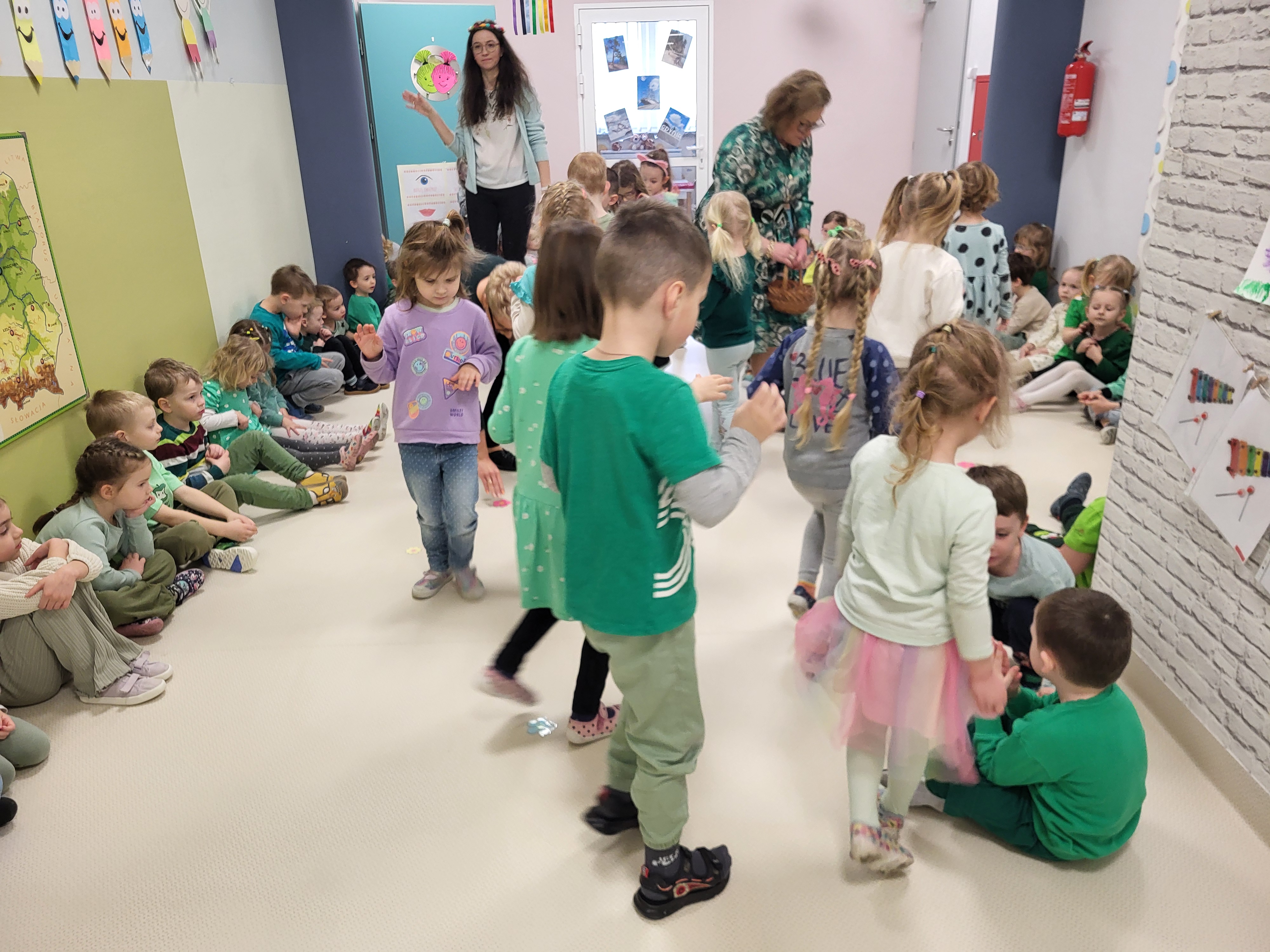 W piątek 20 marca wszystkie dzieci z naszego przedszkola świętowały Pierwszy Dzień Wiosny. Na początku, przedszkolaki dowiedziały się o starym zwyczaju topienia Marzanny. Wszystkie grupy wyszły na spacer, podczas którego mogły pożegnać zimę i powitać wiosnę. Przedszkolaki radośnie maszerowały z instrumentami oraz zaśpiewały przygotowane wcześniej piosenki o wiośnie. Dzieci szukały liści, które utworzyły napis: WIOSNA. Na korytarzu przedszkolnym odbyła się kolejna część zabaw. Wszystkie grupy starały się jak najszybciej znaleźć kolorowe kwiatki umieszczone na podłodze. Ponadto, przedszkolaki improwizowały ruchowo do muzyki klasycznej. W ten sposób wszystkie dzieci chciały wyrazić swoją radość z przyjścia nowej pory roku. Wszystkie grupy poznały tradycje i zwyczaje związane z powitaniem wiosny. Tego dnia wszyscy świetnie się bawili.