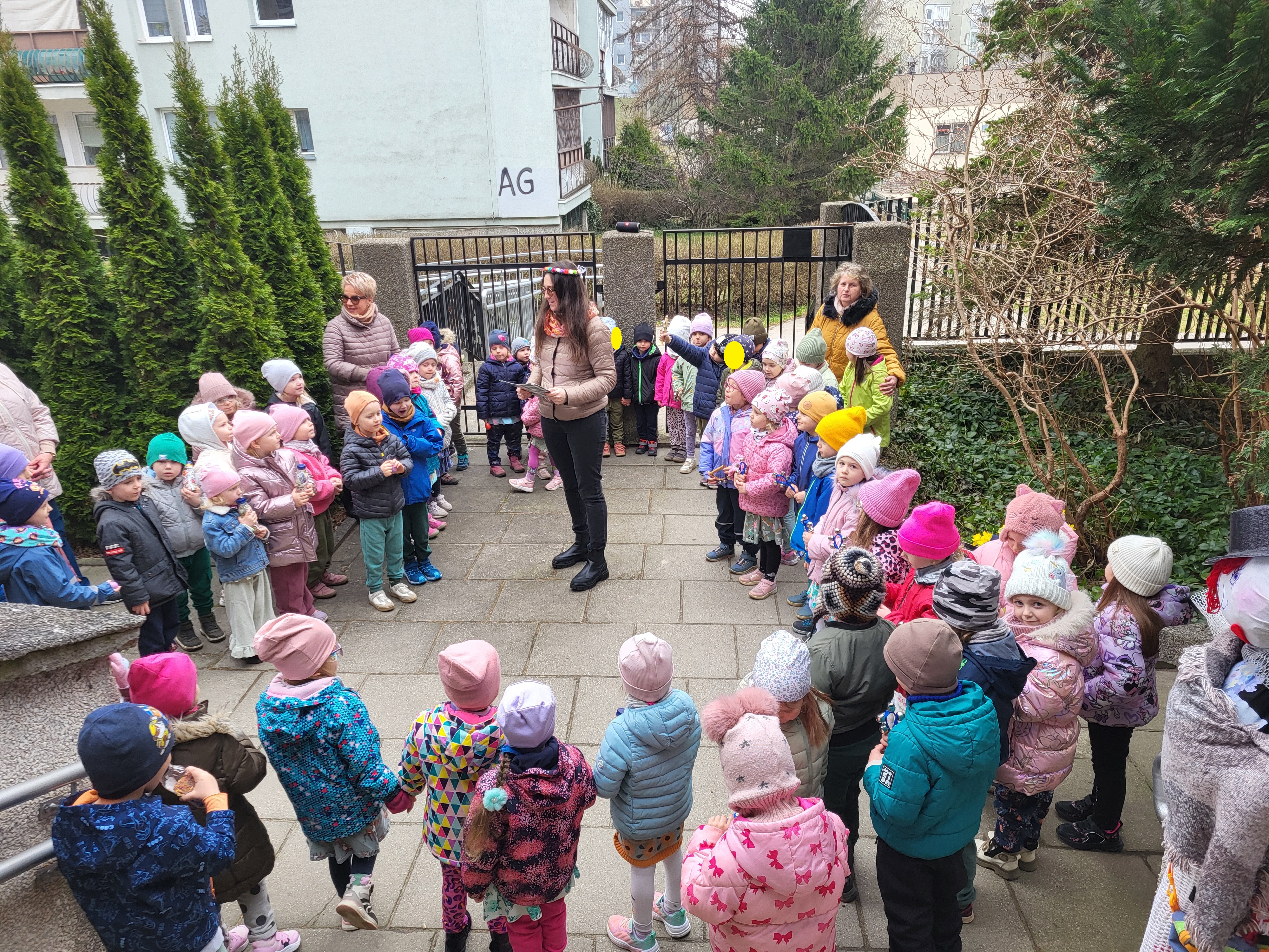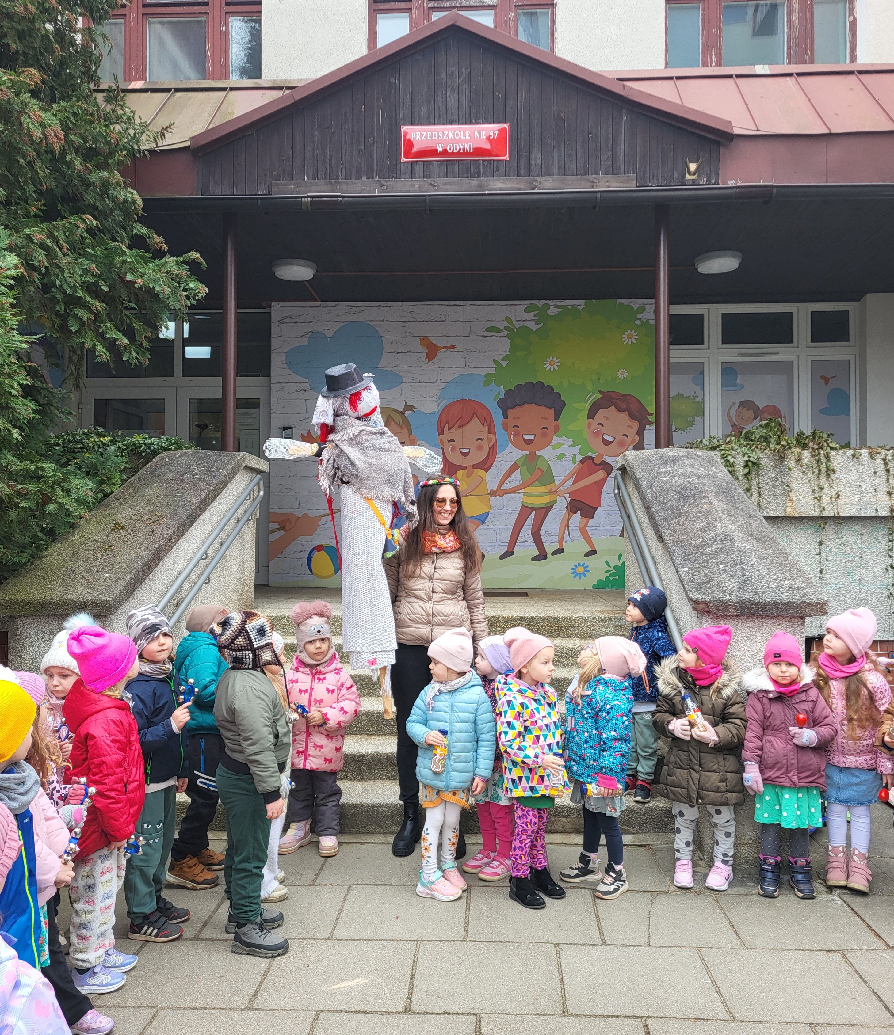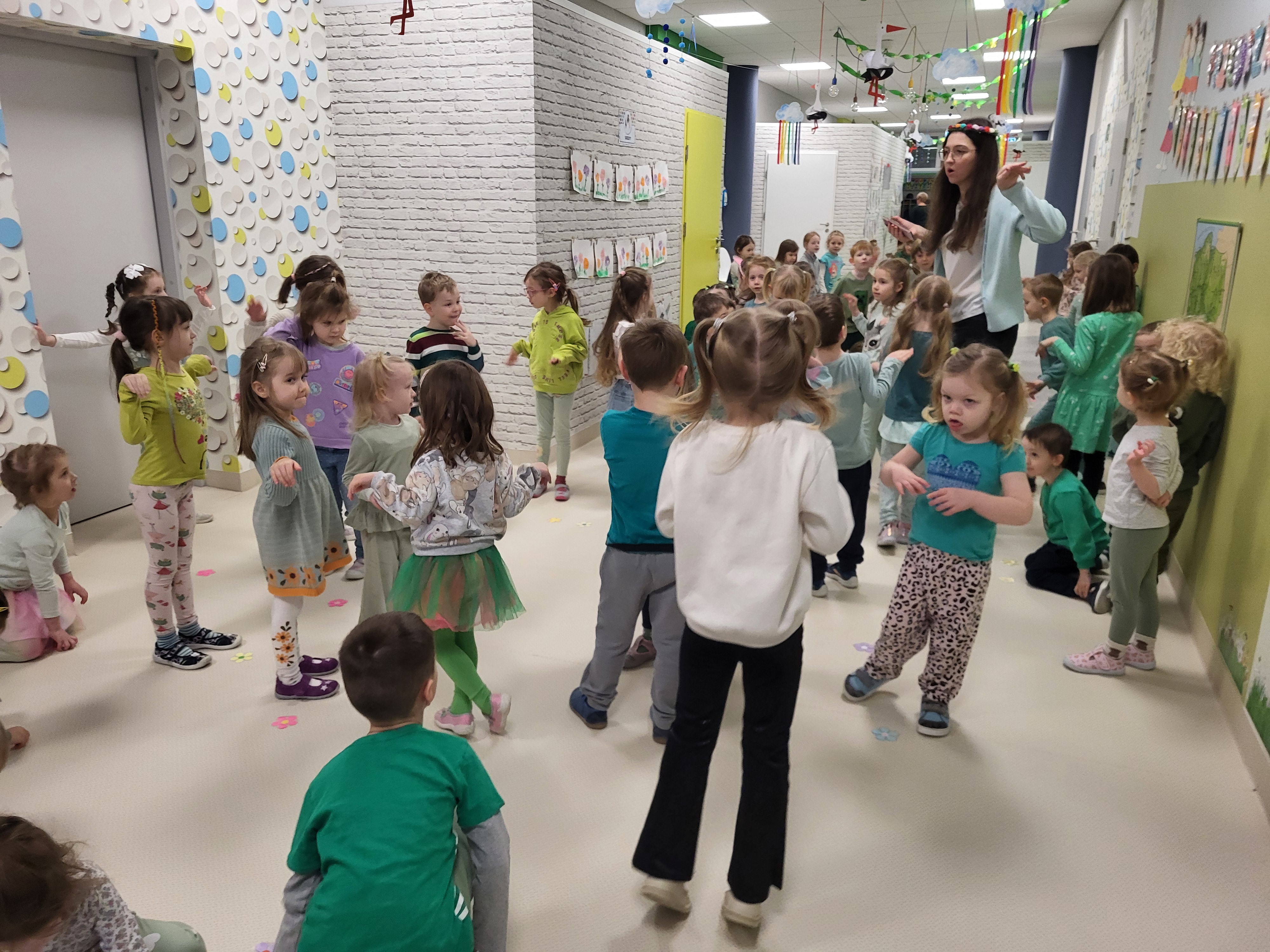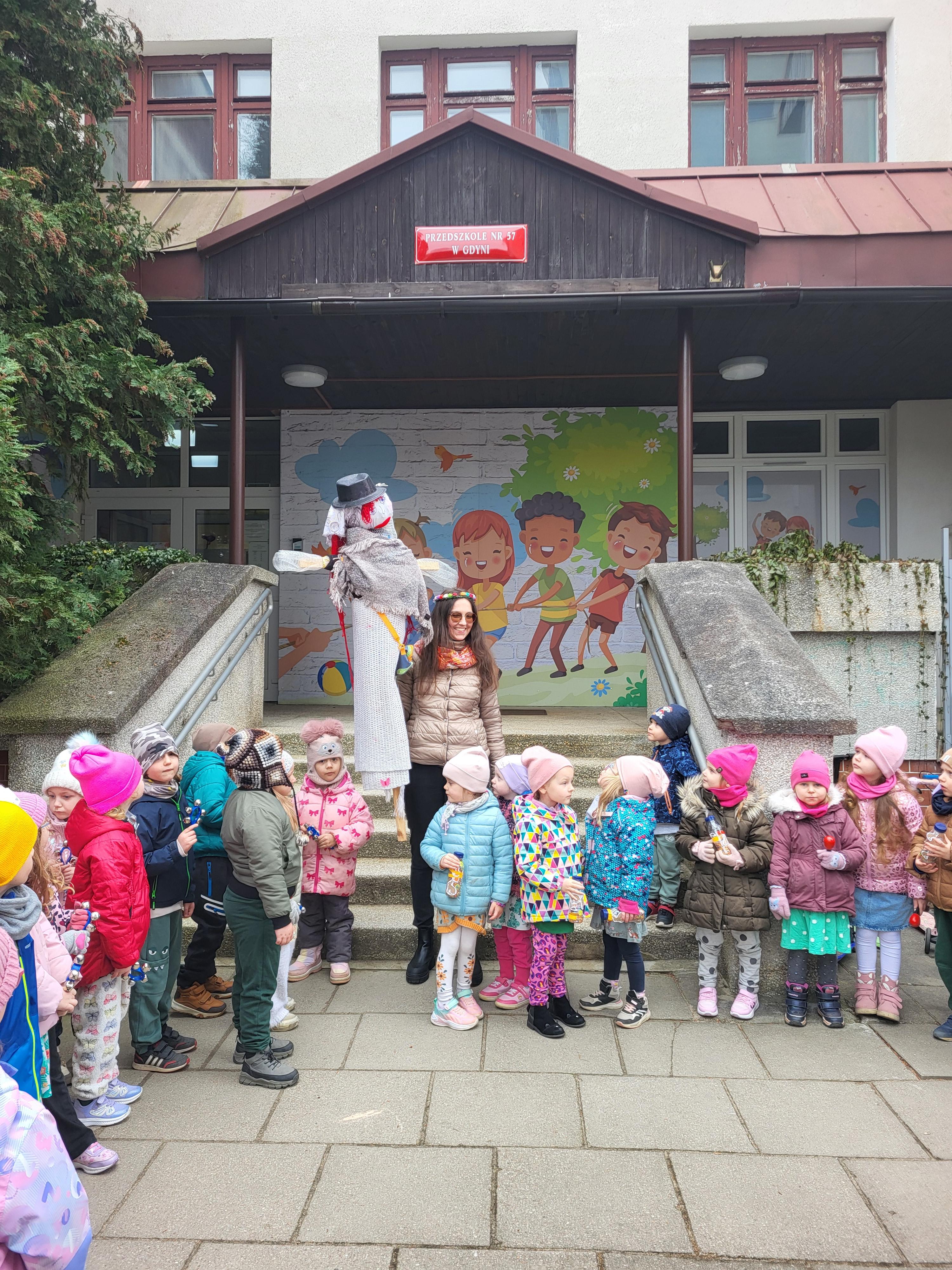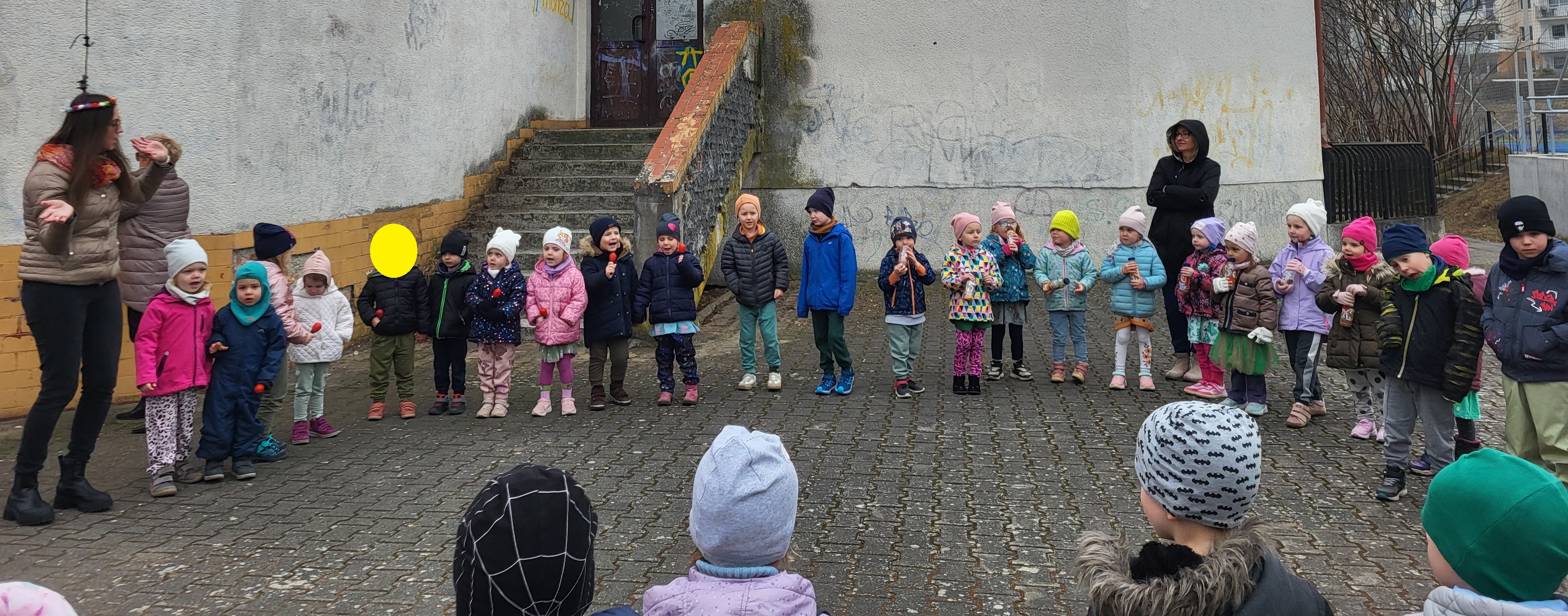 W piątek 20 marca wszystkie dzieci z naszego przedszkola świętowały Pierwszy Dzień Wiosny. Na początku, przedszkolaki dowiedziały się o starym zwyczaju topienia Marzanny. Wszystkie grupy wyszły na spacer, podczas którego mogły pożegnać zimę i powitać wiosnę. Przedszkolaki radośnie maszerowały z instrumentami oraz zaśpiewały przygotowane wcześniej piosenki o wiośnie. Dzieci szukały liści, które utworzyły napis: WIOSNA. Na korytarzu przedszkolnym odbyła się kolejna część zabaw. Wszystkie grupy starały się jak najszybciej znaleźć kolorowe kwiatki umieszczone na podłodze. Ponadto, przedszkolaki improwizowały ruchowo do muzyki klasycznej. W ten sposób wszystkie dzieci chciały wyrazić swoją radość z przyjścia nowej pory roku. Wszystkie grupy poznały tradycje i zwyczaje związane z powitaniem wiosny. Tego dnia wszyscy świetnie się bawili.