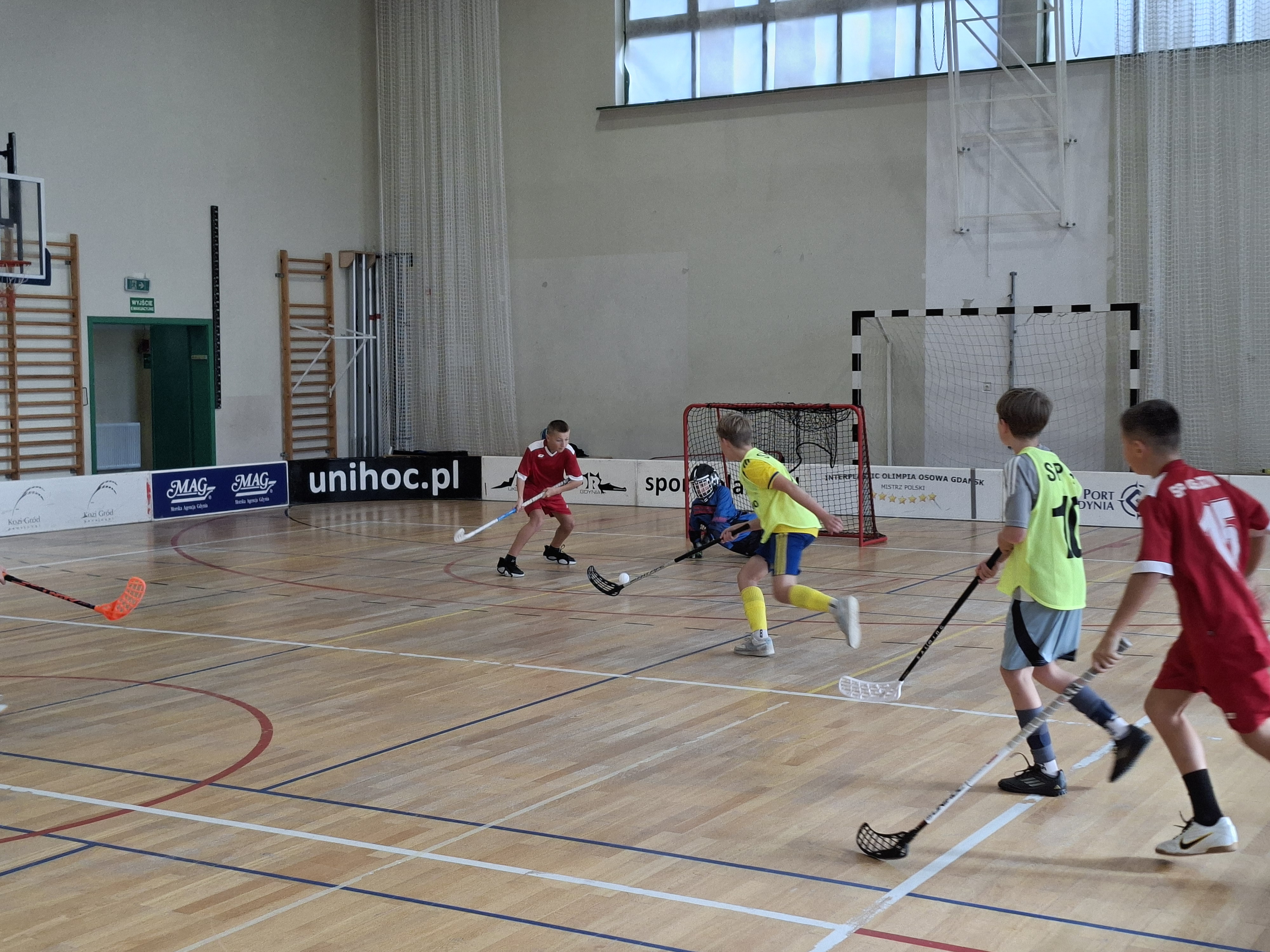 W dniu 29.10.2025 r., w Szkole Podstawowej nr 48, Gdynia-Chwarzno, odbyły się Mistrzostwa Gdyni w Unihokeju Chłopców z cyklu Igrzyska Dzieci, czyli rywalizacja w młodszych klasach szkoły podstawowej (ur. w 2013 r. i później). Po eliminacjach rejonowych, w których z dzielnic Dąbrowa, Karwiny, Mały Kack, Orłowo i Wielki Kack zgłosiły się tylko 2 szkoły, przyszło nam rozegrać poważny turniej. W dobrym stylu, po grach, w których oddawaliśmy dużo strzałów, swobodnie prowadząc i rozgrywając piłkę udało nam się zająć II miejsce i awansować do półfinałów wojewódzkich tych rozgrywek. Nasze wyniki to: 2:1 z SP 26 (Śródmieście), 4:0 z SP 16 (Chylonia), 6:3 z SP 34 (Redłowo). W finale ulegliśmy 1:9 gospodarzom, SP 48 (Chwarzno), szkołą, którą reprezentowali zawodnicy klubu "Aligator".