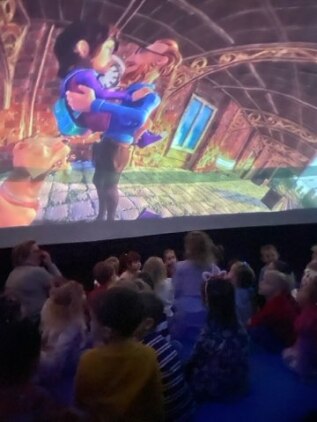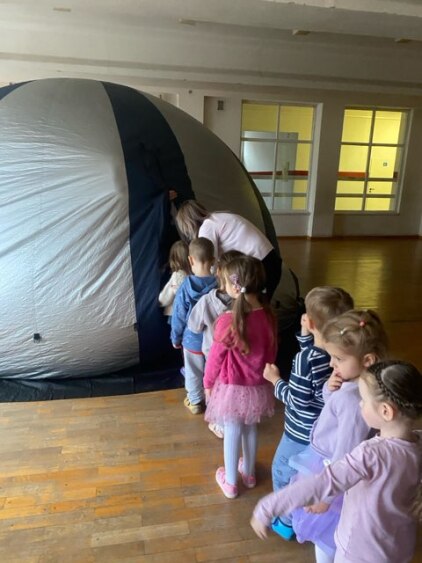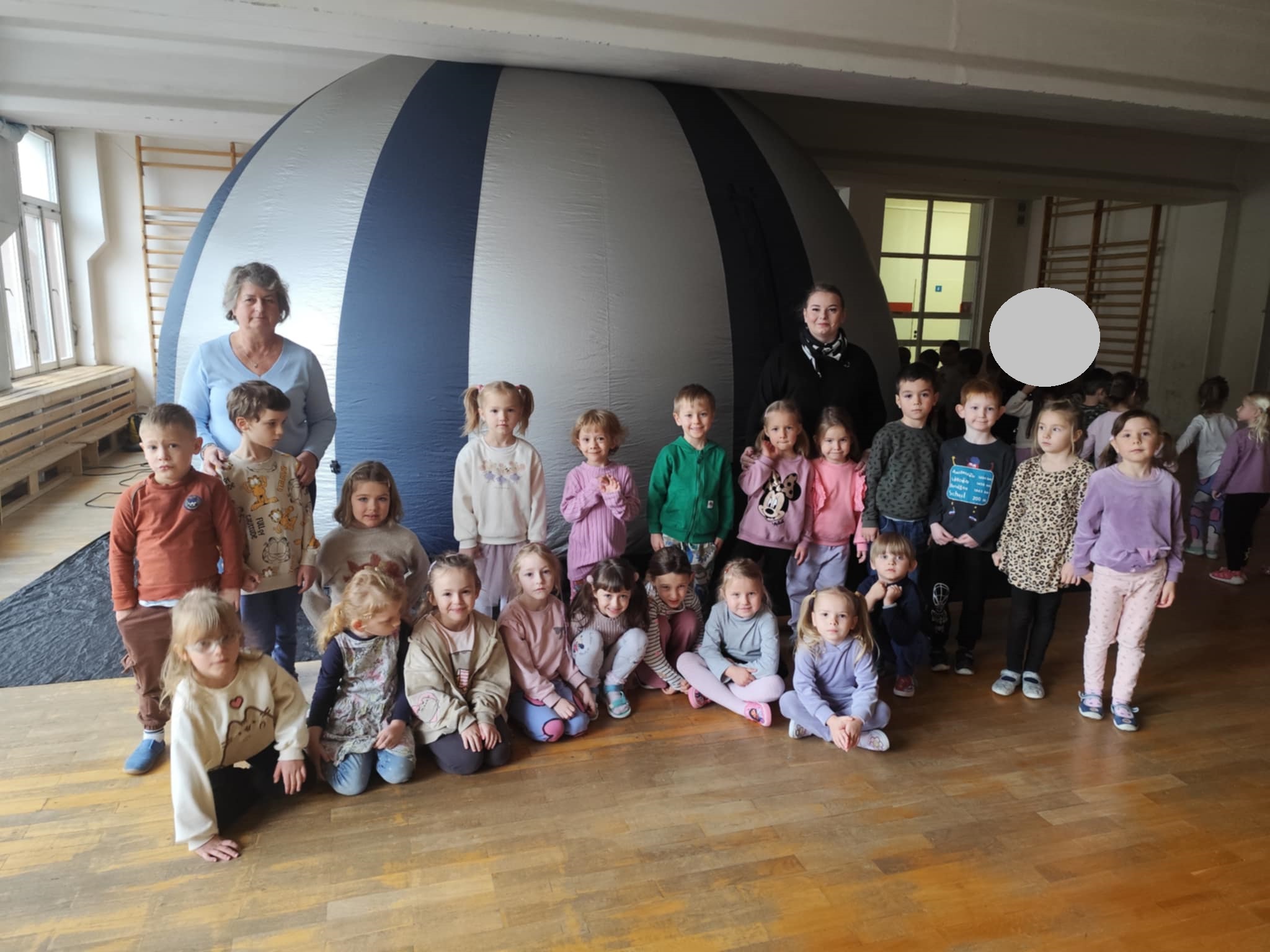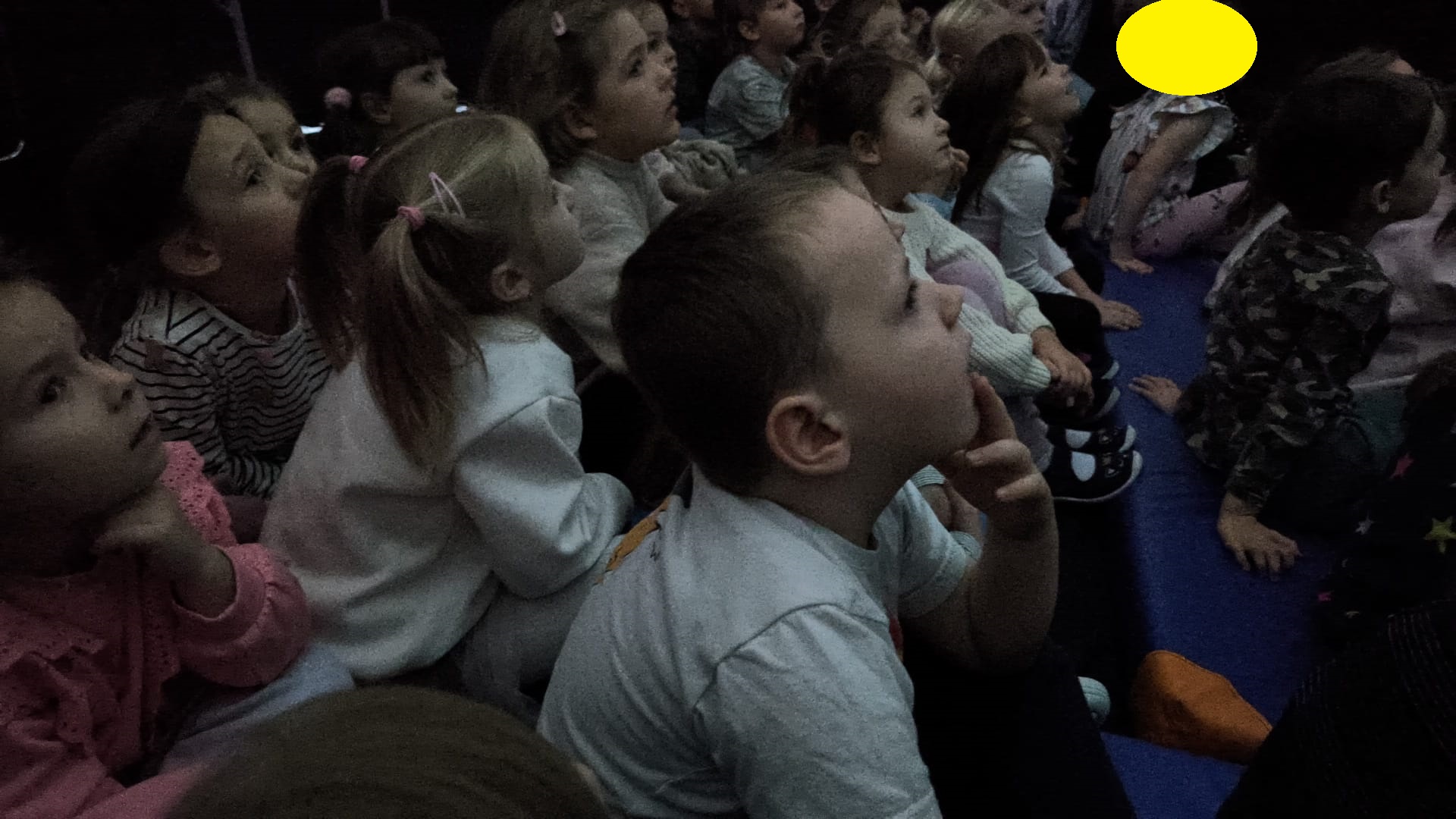 Dziś w naszej placówce zagościło mobilne kino sferyczne. To było zupełnie nowe, fascynujące doświadczenie dla naszych małych odkrywców. Dzieci były zachwycone, gdy weszły do specjalnie przygotowanego pomieszczenia, gdzie całkowicie zanurzyły się w magicznej atmosferze kinowej. Przedszkolaki miały okazję zanurzyć się w magicznym świecie filmu i oglądały bajkę. Ich oczy błyszczały z zachwytu, a emocje towarzyszyły im przez cały seans. To był dzień pełen uśmiechów i wrażeń!