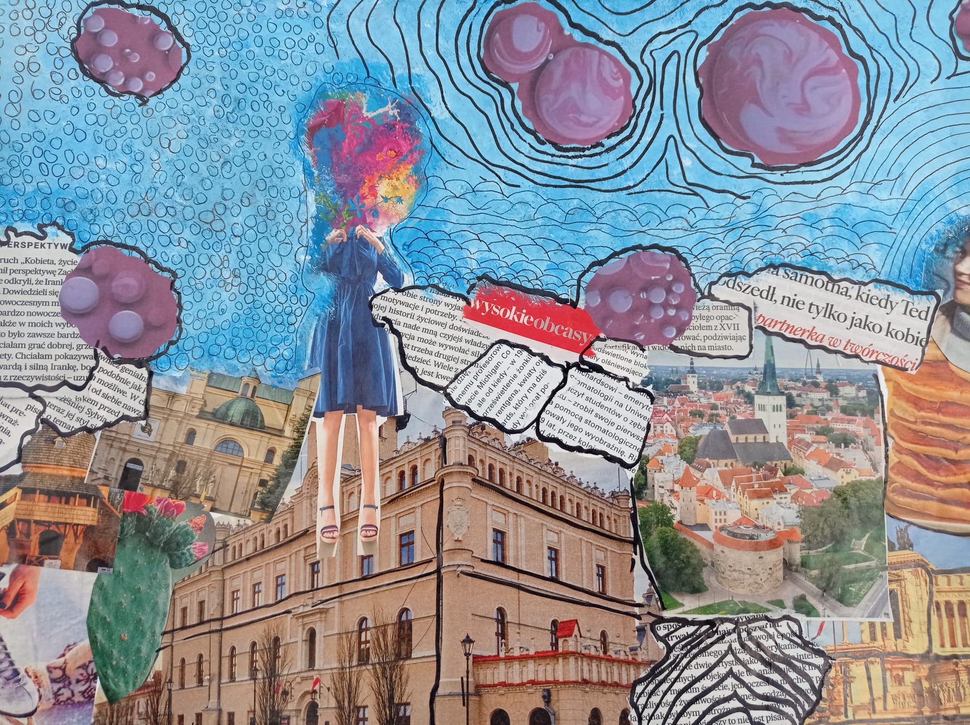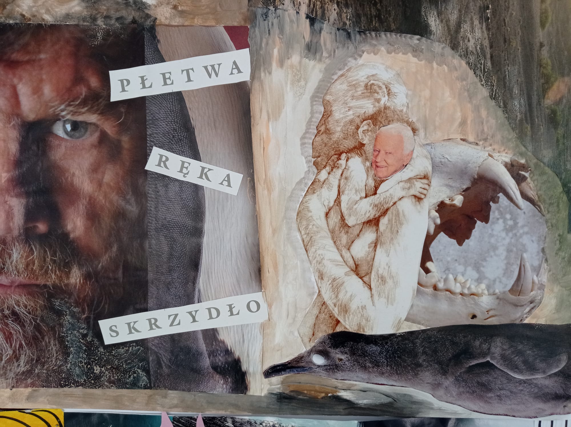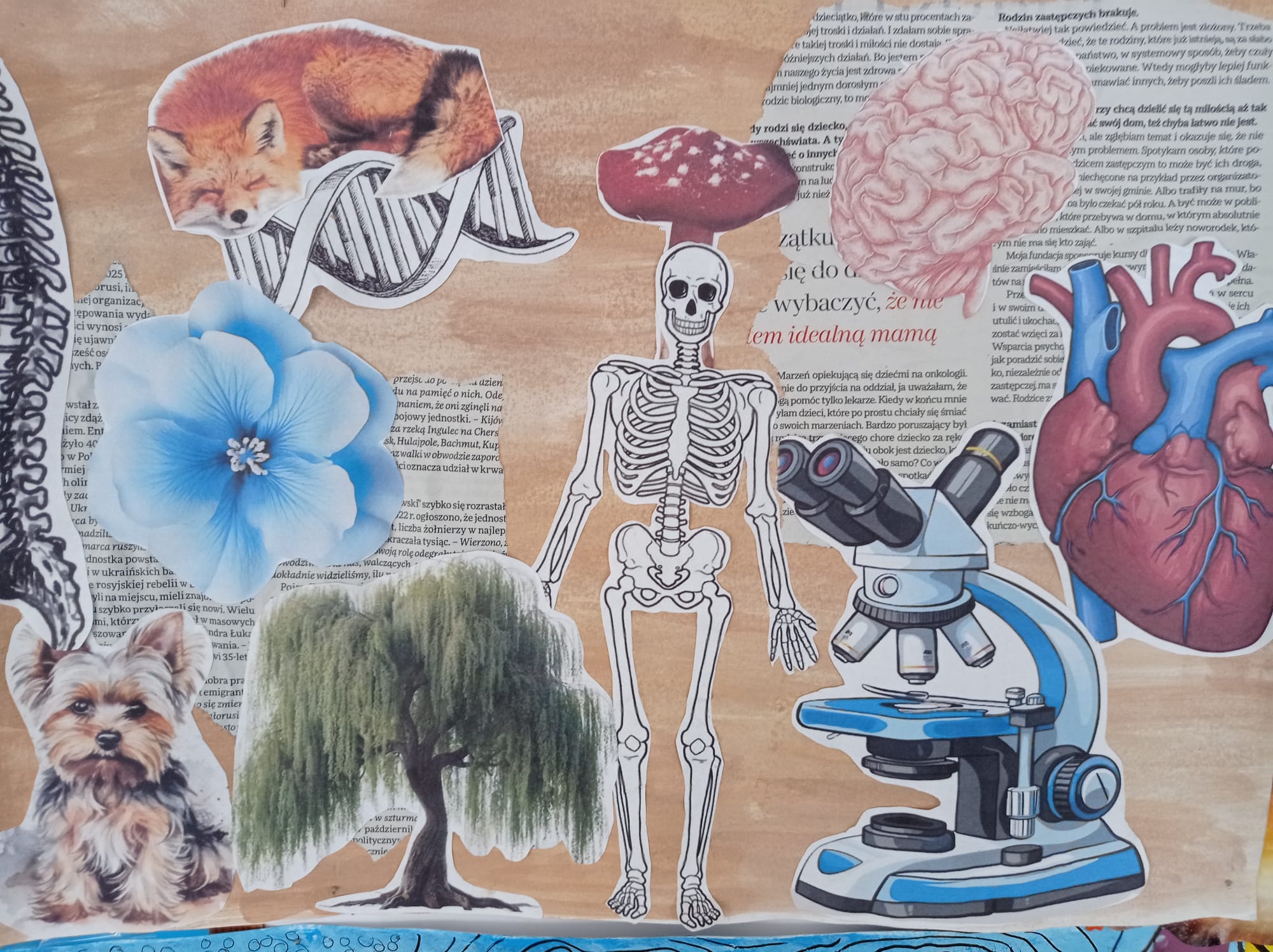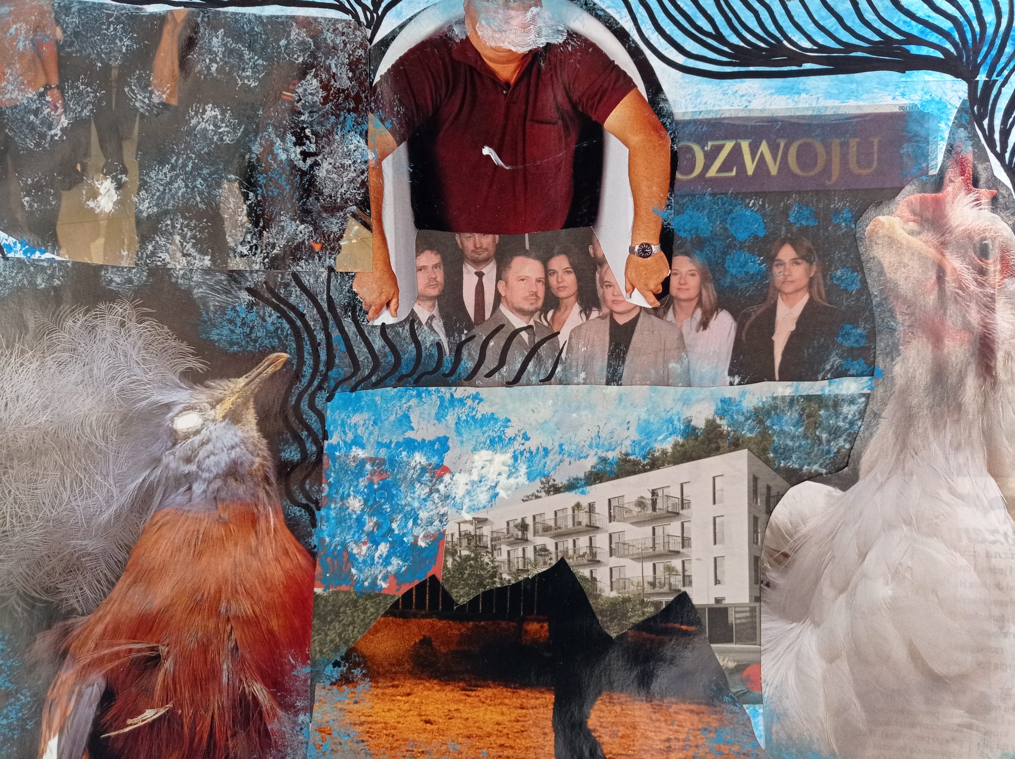 Kolaże uczniów klas VII pt. "Rozmowa światów'' to dialog między rzeczywistością a snem, tradycją a nowoczesnością, naturą a technologią. Wystawa prezentuje obok sprawności manualnych również nowe spojrzenie na znane nam przedmioty i obrazy. Fragmenty gazet, zdjęć i tekstur tworzą spójną, wielowymiarową opowieść o współczesnym świecie.