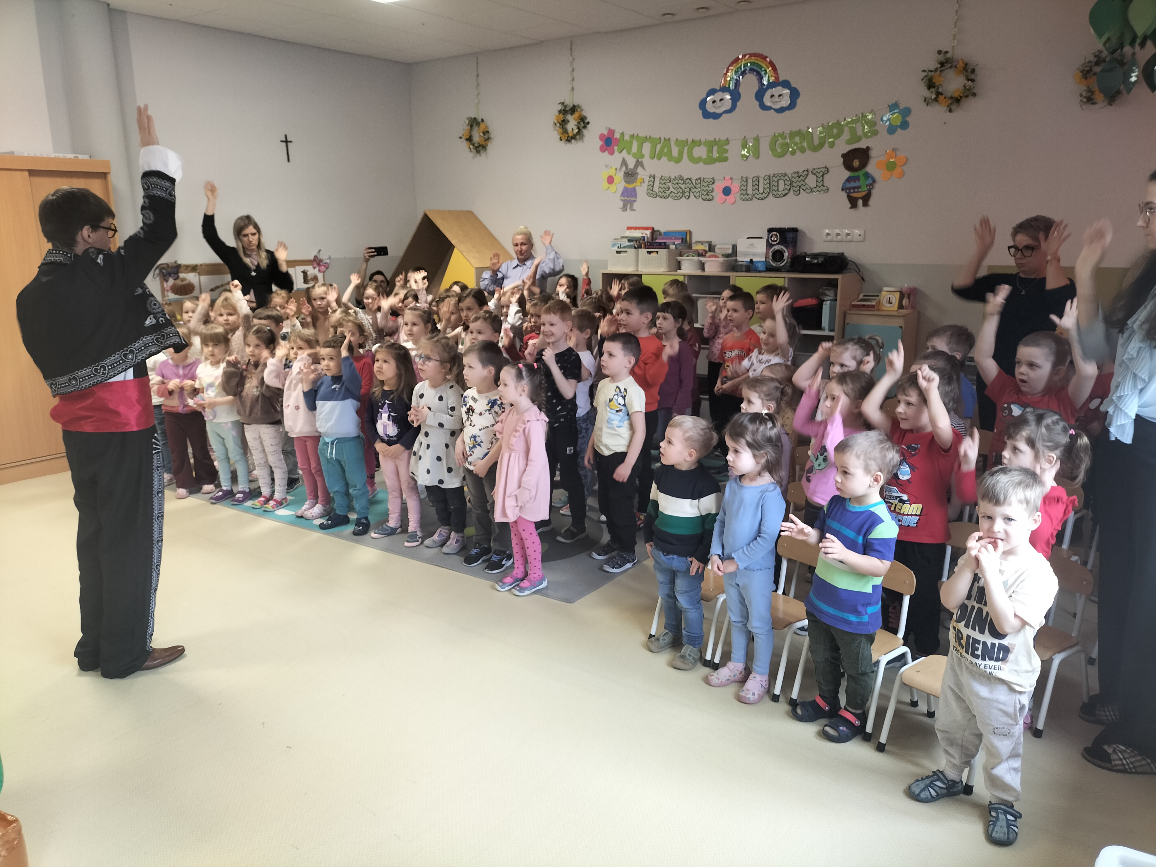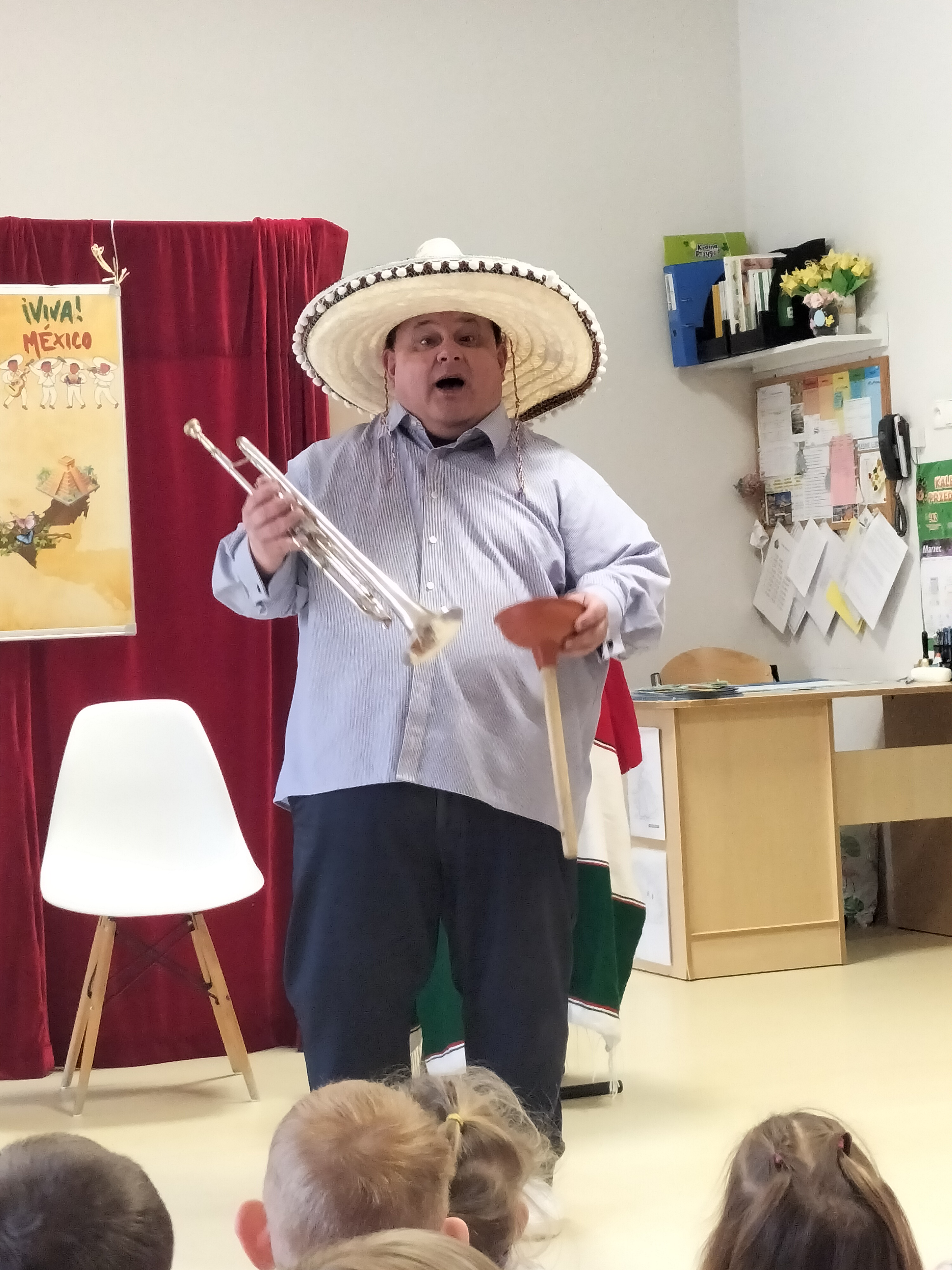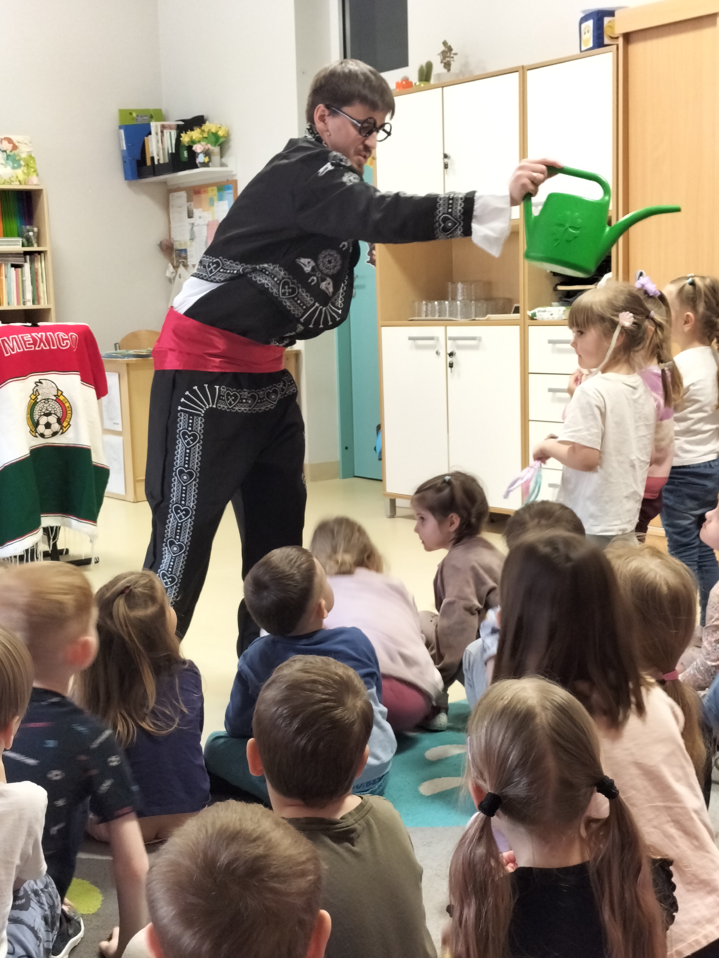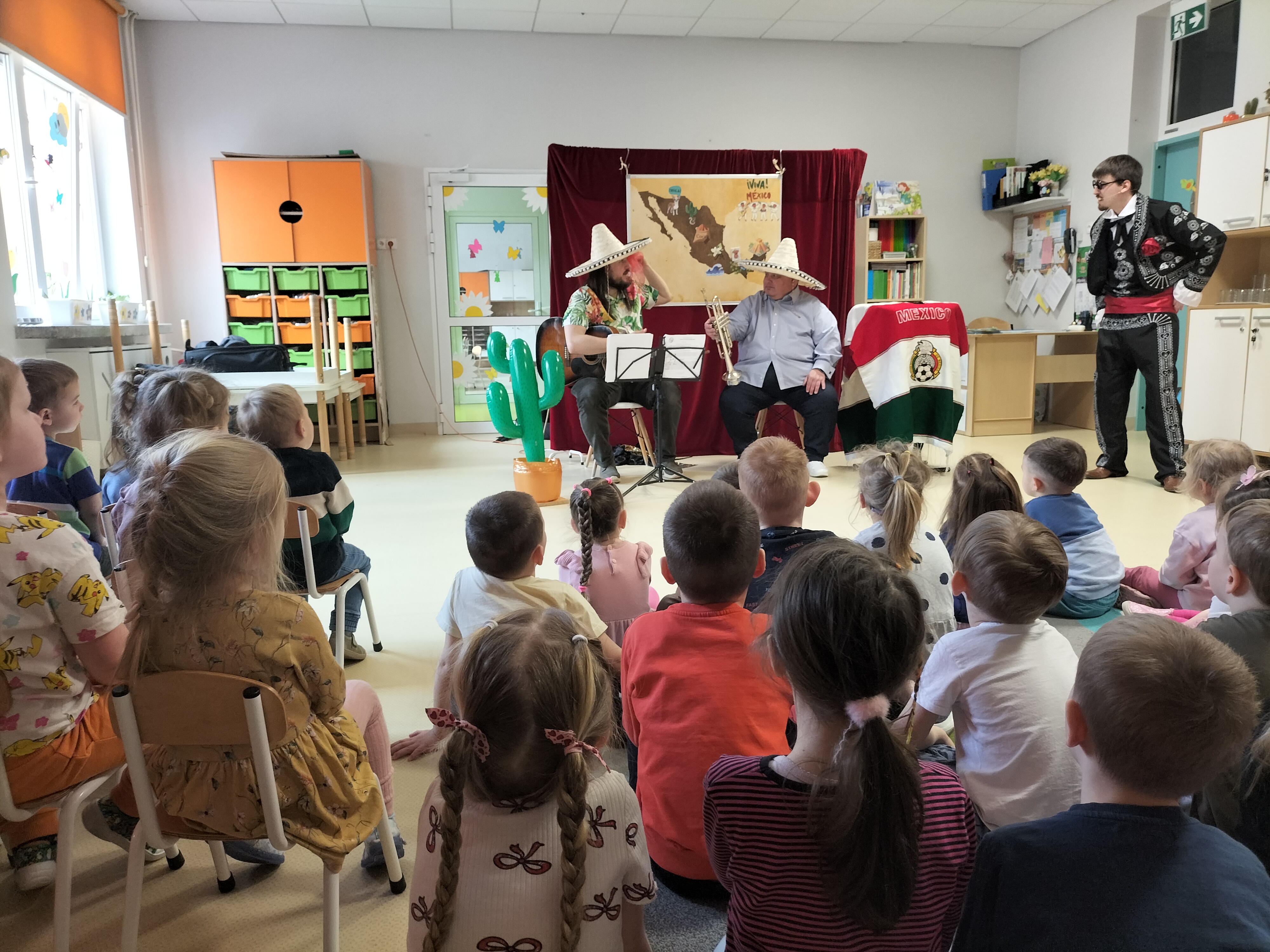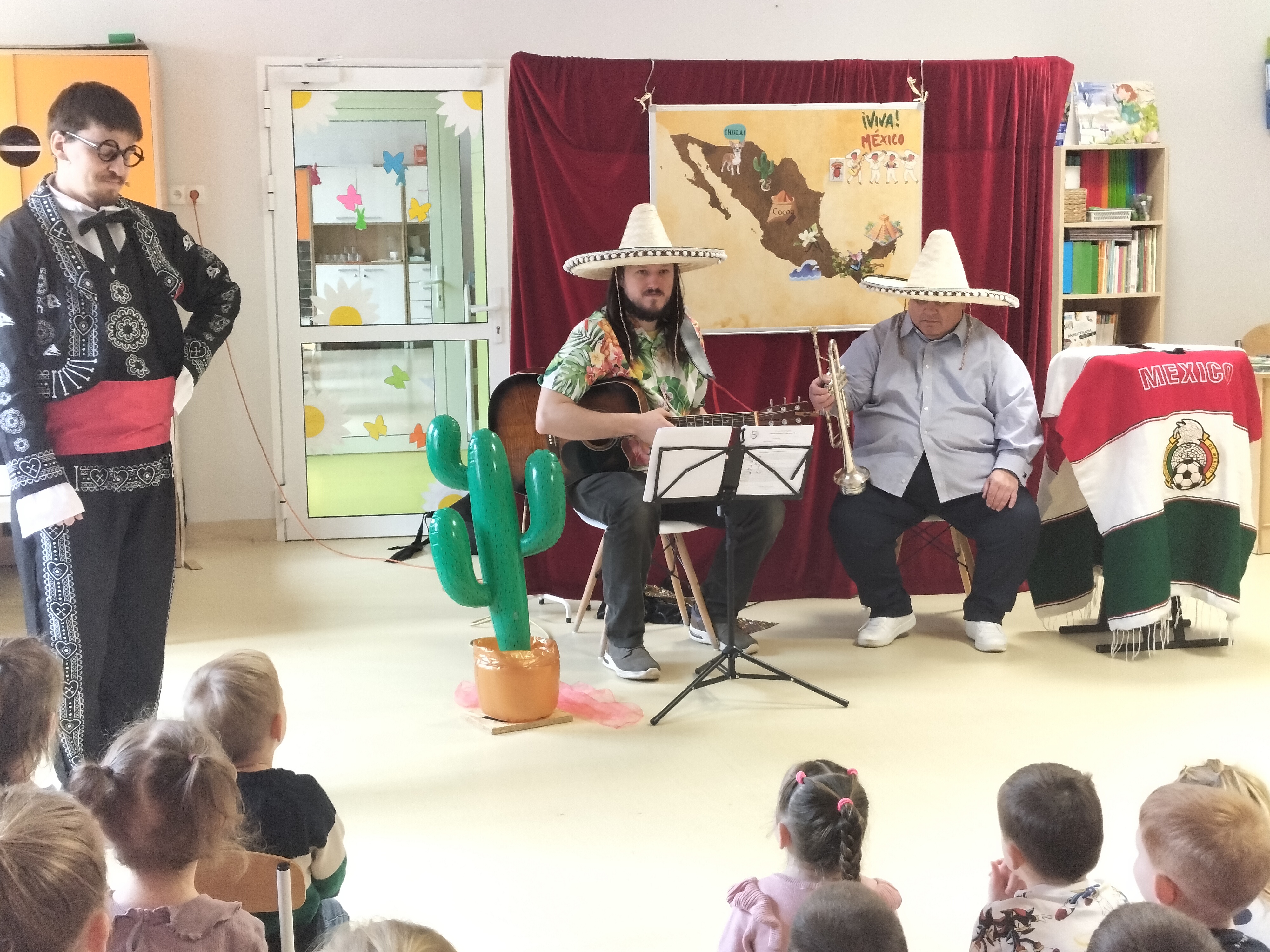 Dzieci uczestniczyły dzisiaj w interaktywnym przedstawieniu "La cucaracha i zaginione sombrero" przygotowanym przez Akademię Artystyczną Art2You. Przedszkolaki aktywnie brały udział w muzycznej przygodzie osadzonej w meksykańskim klimacie – śpiewały, tańczyły i wspólnie z bohaterami szukały zaginionego sombrero. To pełne radości spotkanie było nie tylko świetną zabawą, ale także doskonałą okazją do rozwijania muzykalności i zaangażowania najmłodszych.