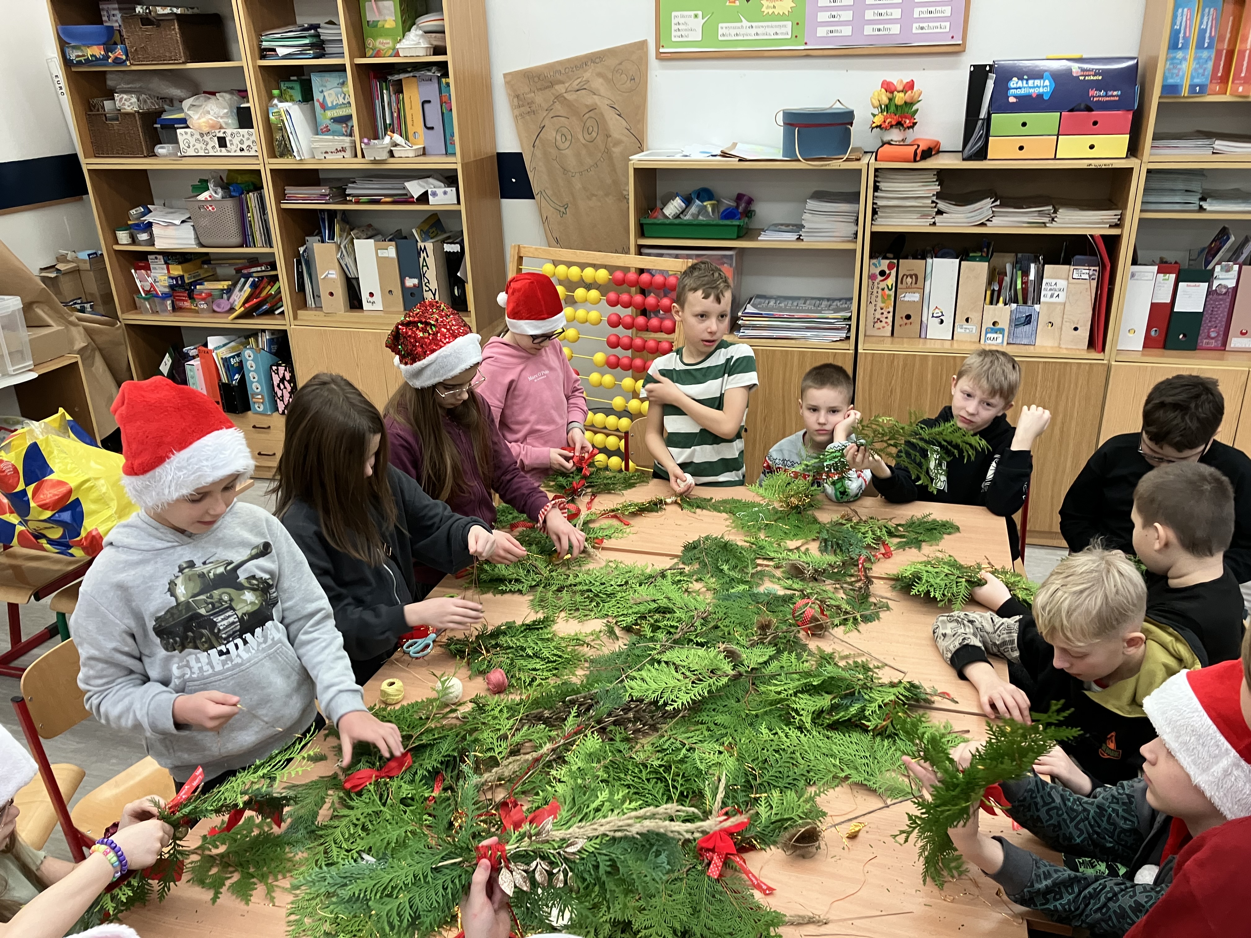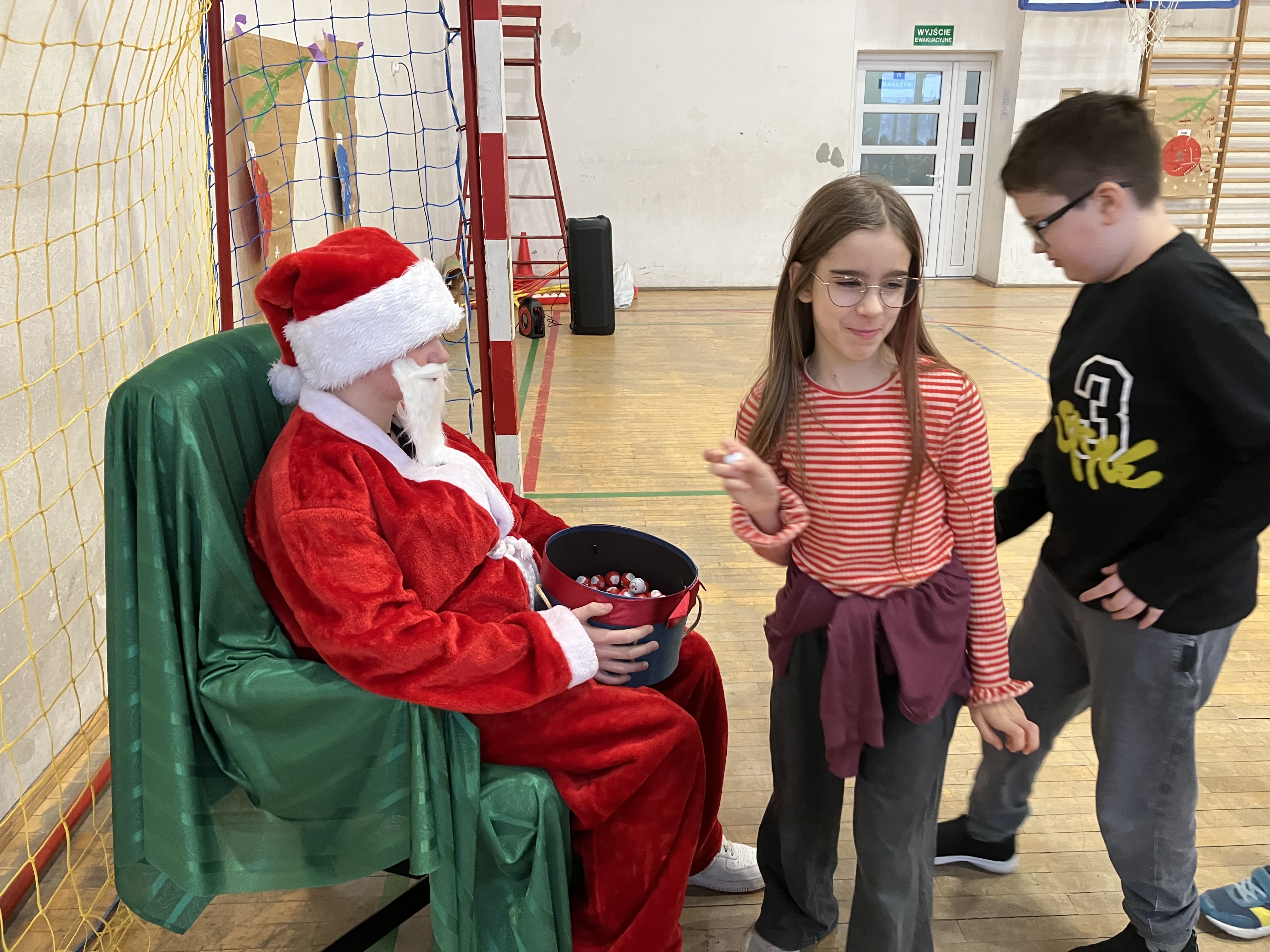 W piątek klasa 3b wzięła udział w radosnej mikołajkowej zabawie, która odbyła się na dużej sali gimnastycznej. Uczniowie uczestniczyli w licznych grach ruchowych, konkurencjach i wspólnych piosenkach, które wprowadziły wszystkich w świąteczny nastrój. W sali lekcyjnej uczniowie wykonali świąteczne dekoracje na drzwi, wkładając w swoje prace dużo kreatywności i zaangażowania. To był dzień pełen uśmiechu, zabawy i atmosfery nadchodzących świąt! ✨