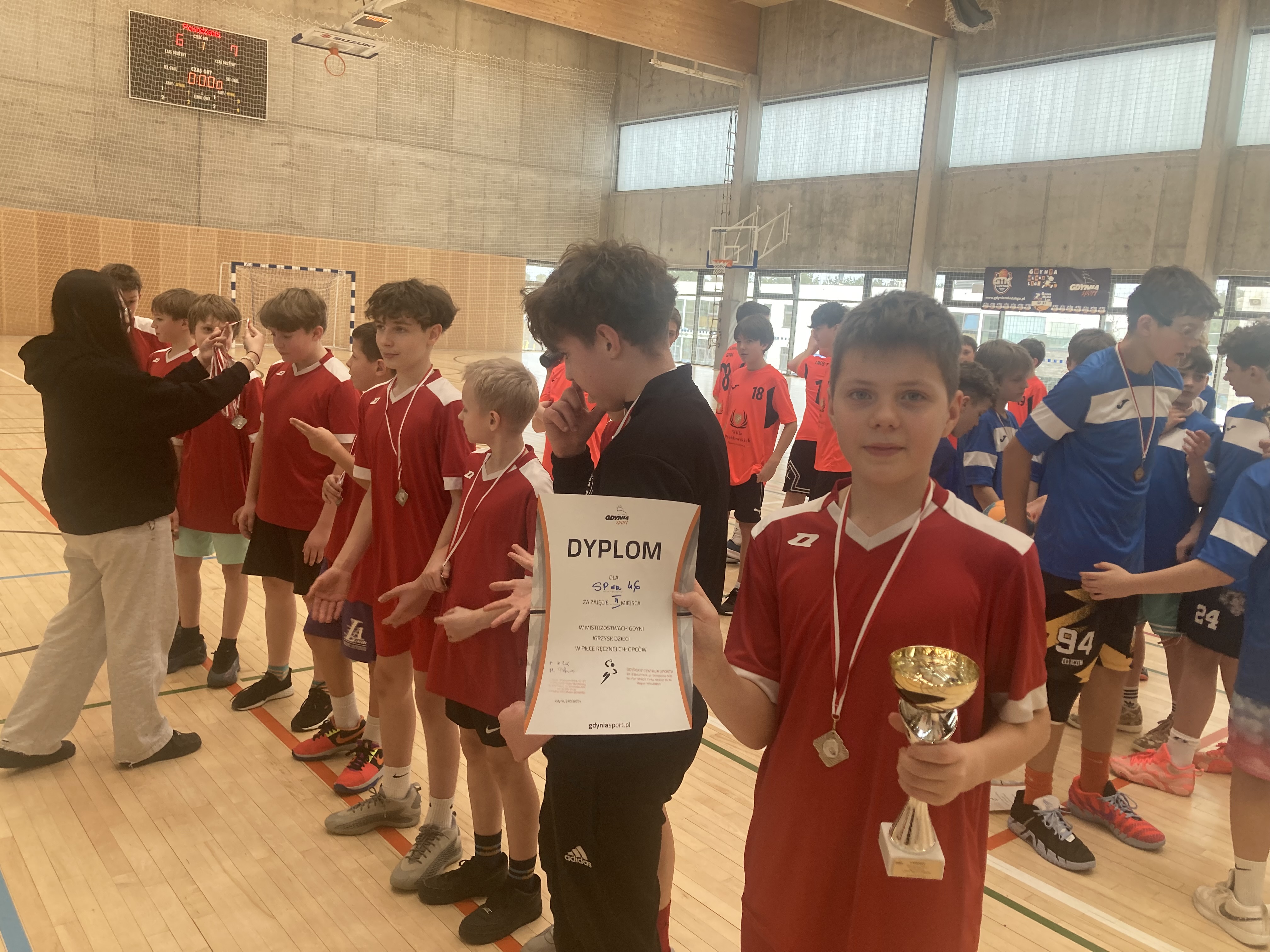 2 marca 2026 roku w Szkole Podstawowej nr 37 odbyły się Mistrzostwa Gdyni w Piłce Ręcznej Chłopców - Igrzyska Dzieci. W turnieju brały udział gdyńskie szkoły, które wygrały eliminacje w swoich rejonach: SP nr 6, SP nr 44 , SP nr 46, Pierwsza Społeczna Szkoła Podstawowa, SP nr 48 i gospodarz turnieju SPnr 37. W wyniku losowania turniej podzielony został na dwie grupy rozgrywkowe. W pierwszym meczu zawodów wygraliśmy z SP nr 6, natomiast w drugim spotkaniu grupowym musieliśmy uznać wyższość SP nr 48 ( późniejszy mistrz Gdyni). W meczu o wejście do finału, po regulaminowym czasie gry na tablicy wyników widniał remis 3:3 . Do rostrzygnięcia meczu potrzebne były rzuty karne, w których pokonaliśmy PSSP. W ostatnim meczu zawodów ponownie musieliśmy uznać wyższość zespołu z SP nr 48, co dało nam srebrne medale i awans do Półfinału Wojewódzkiego !!!