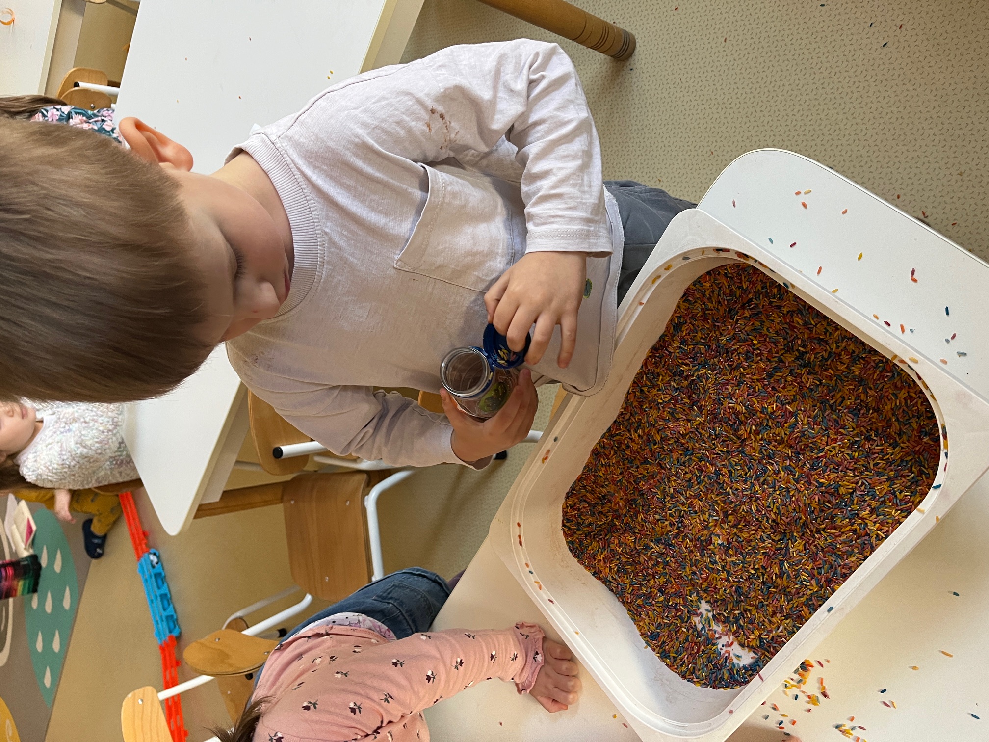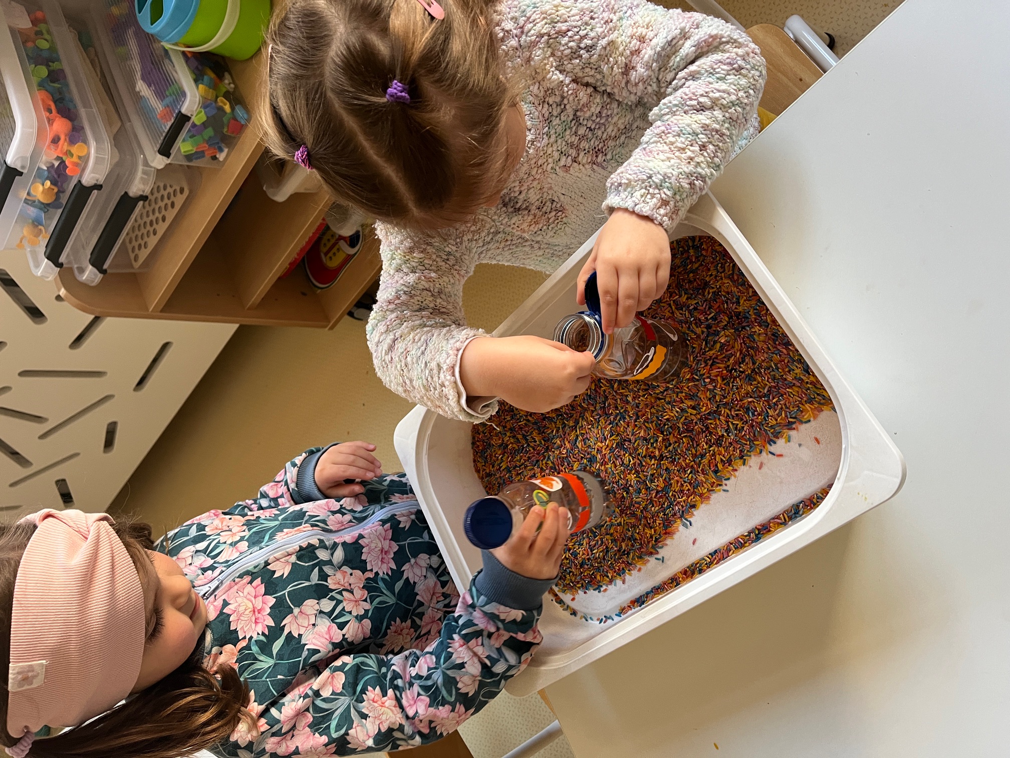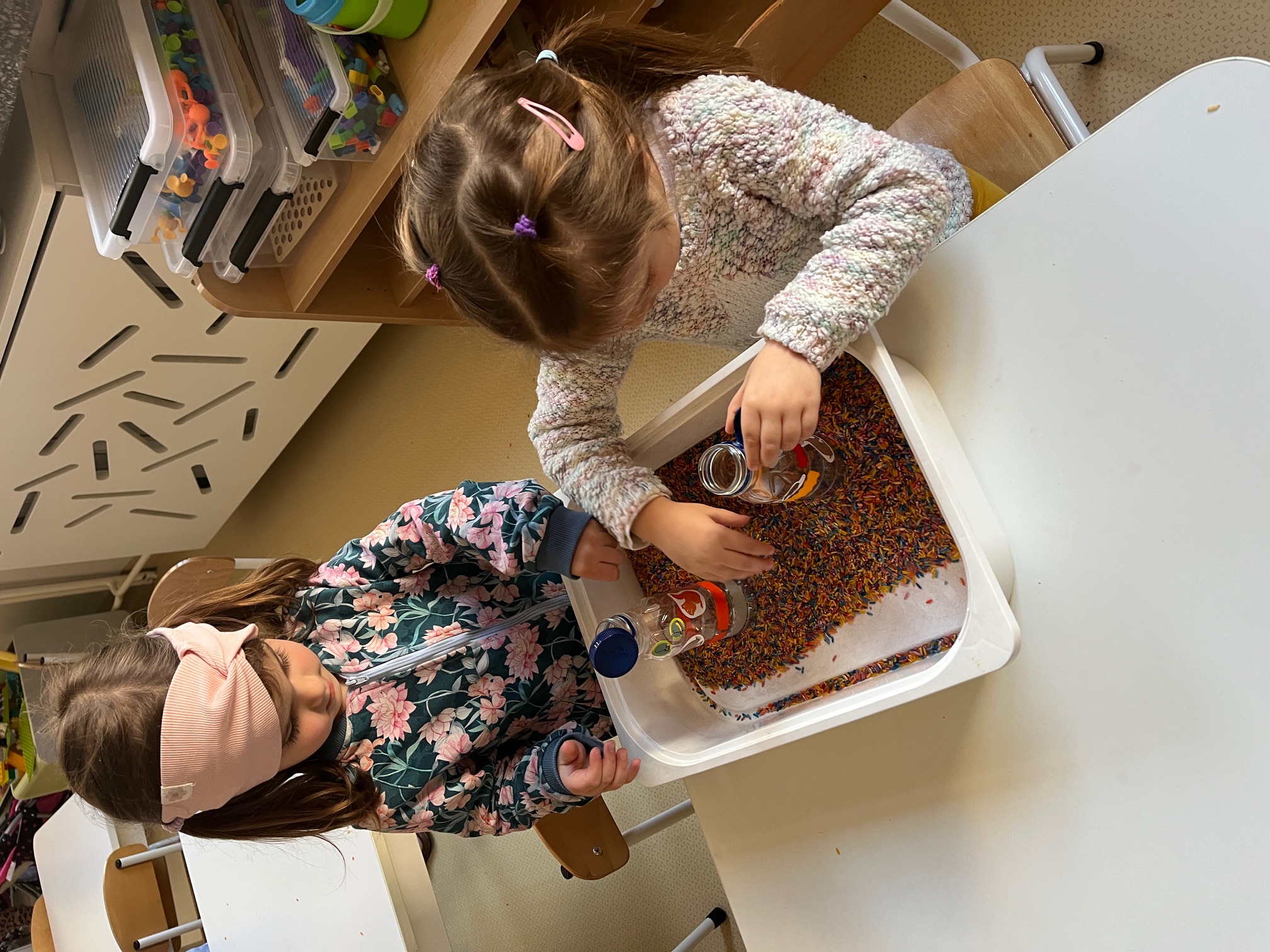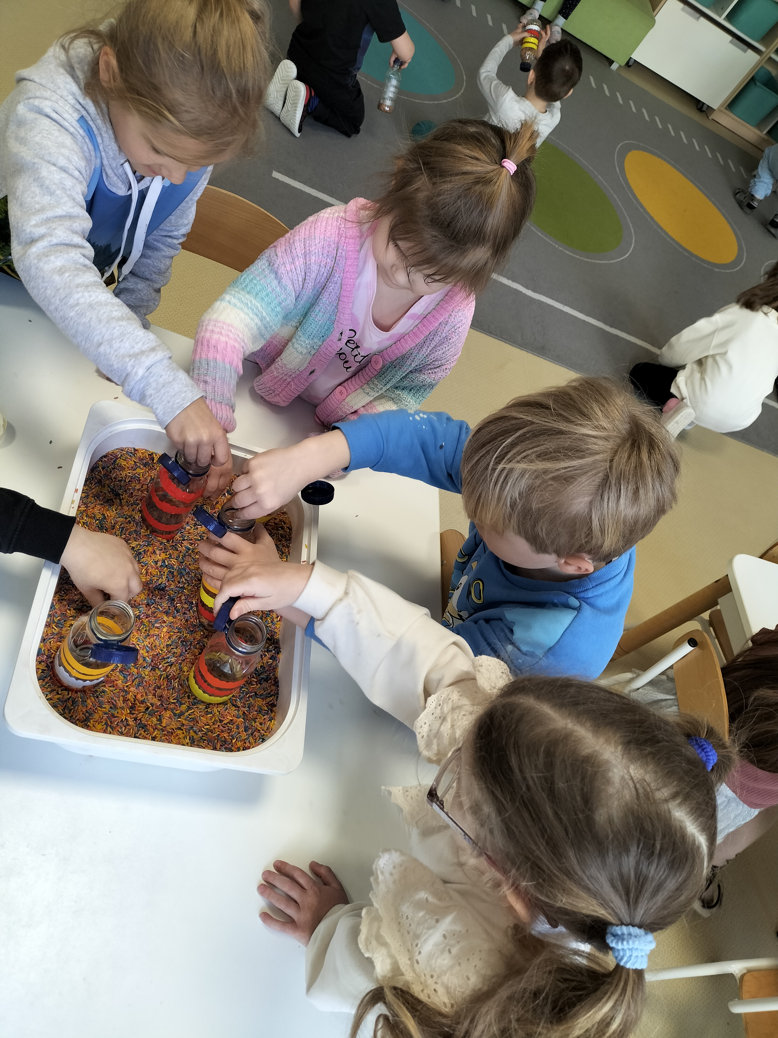 W piątek dzieci z grup Elfy oraz Leśne Ludki wykonały własne eko-instrumenty z plastikowych butelek. Powstałe marakasy zostały ozdobione naklejkami oraz kolorową folią samoprzylepną, co pozwoliło dzieciom rozwijać kreatywność i zdolności manualne.