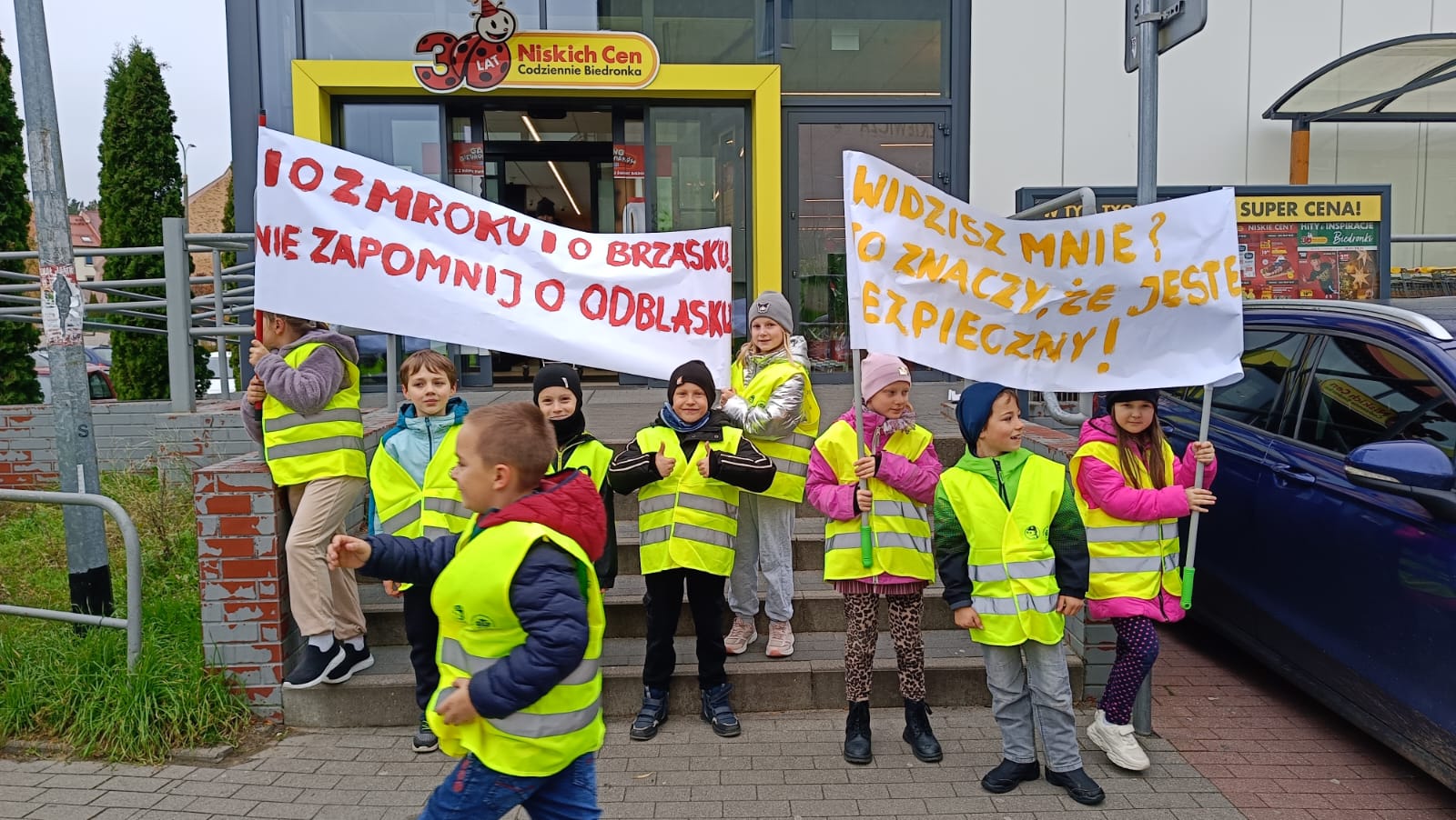 Uczniowie klasy 2 b wzięli udział w niezwykłej akcji "Odblaskowa Szkoła" pod hasłem "Noś odblaski!" Celem wydarzenia jest przypomnienie dzieciom i dorosłym jak ważne jest dbanie o swoje bezpieczeństwo na drodze - zwłaszcza jesienią i zimą, gdy szybciej zapada zmrok.