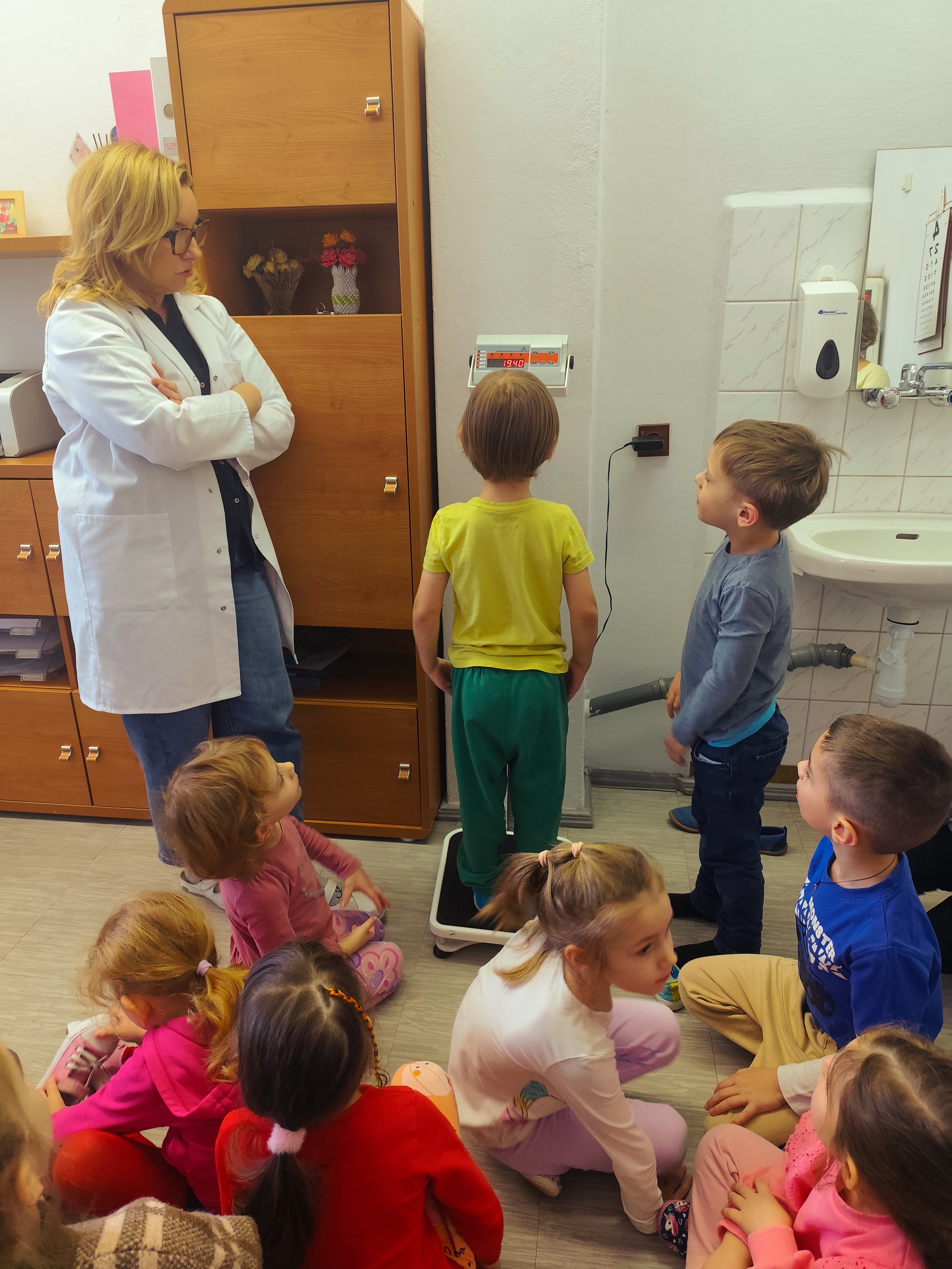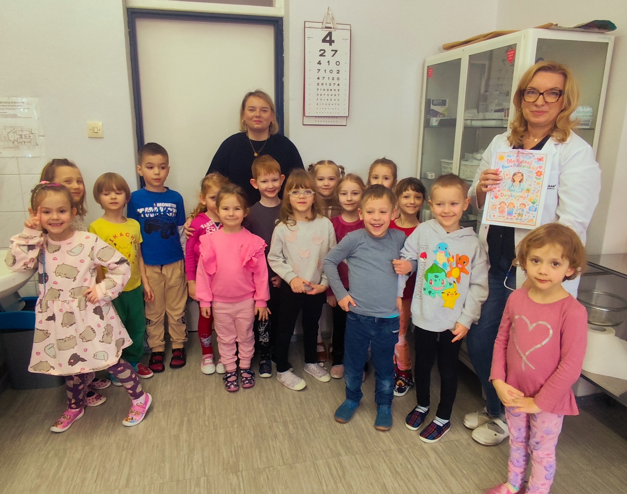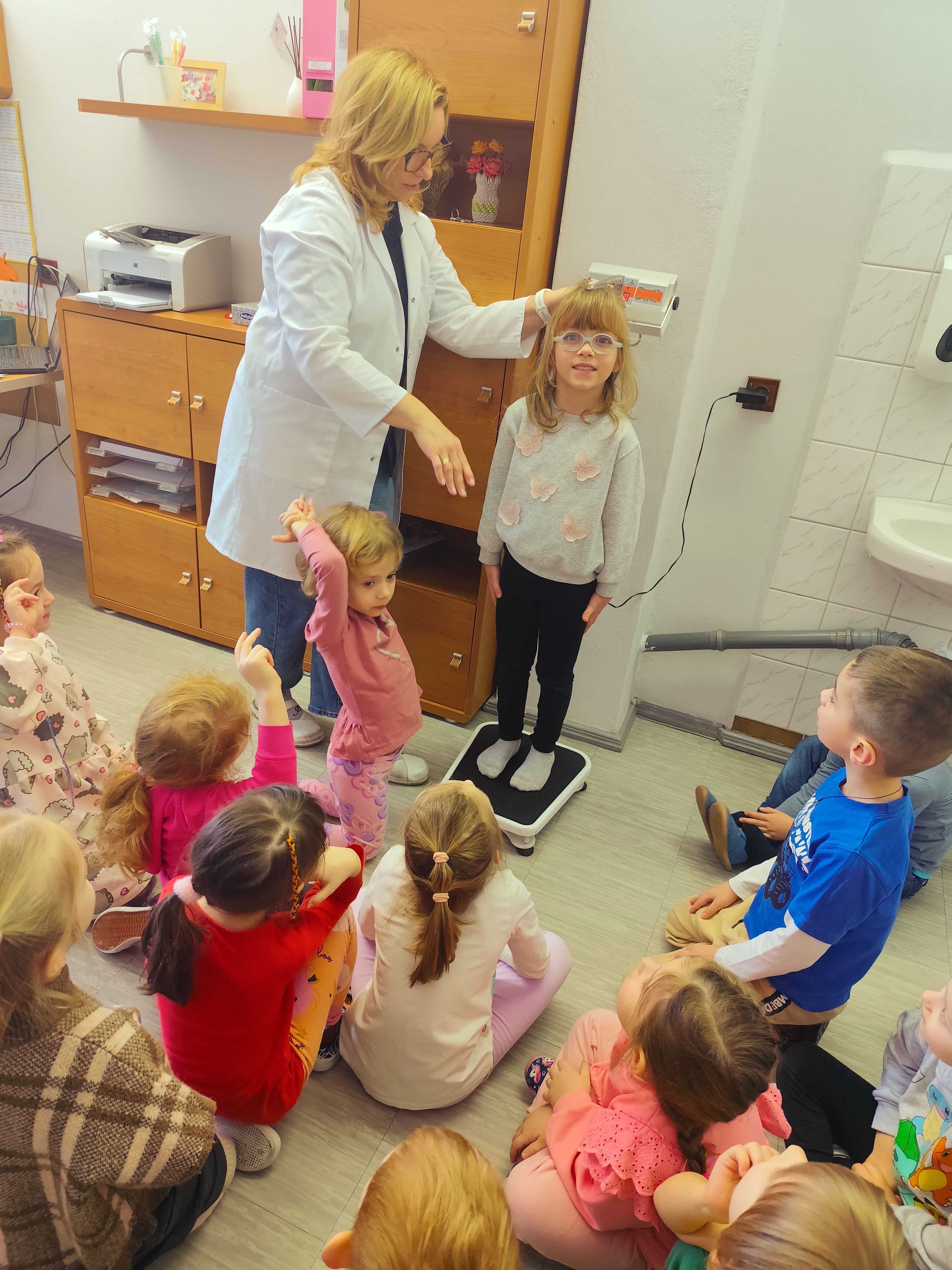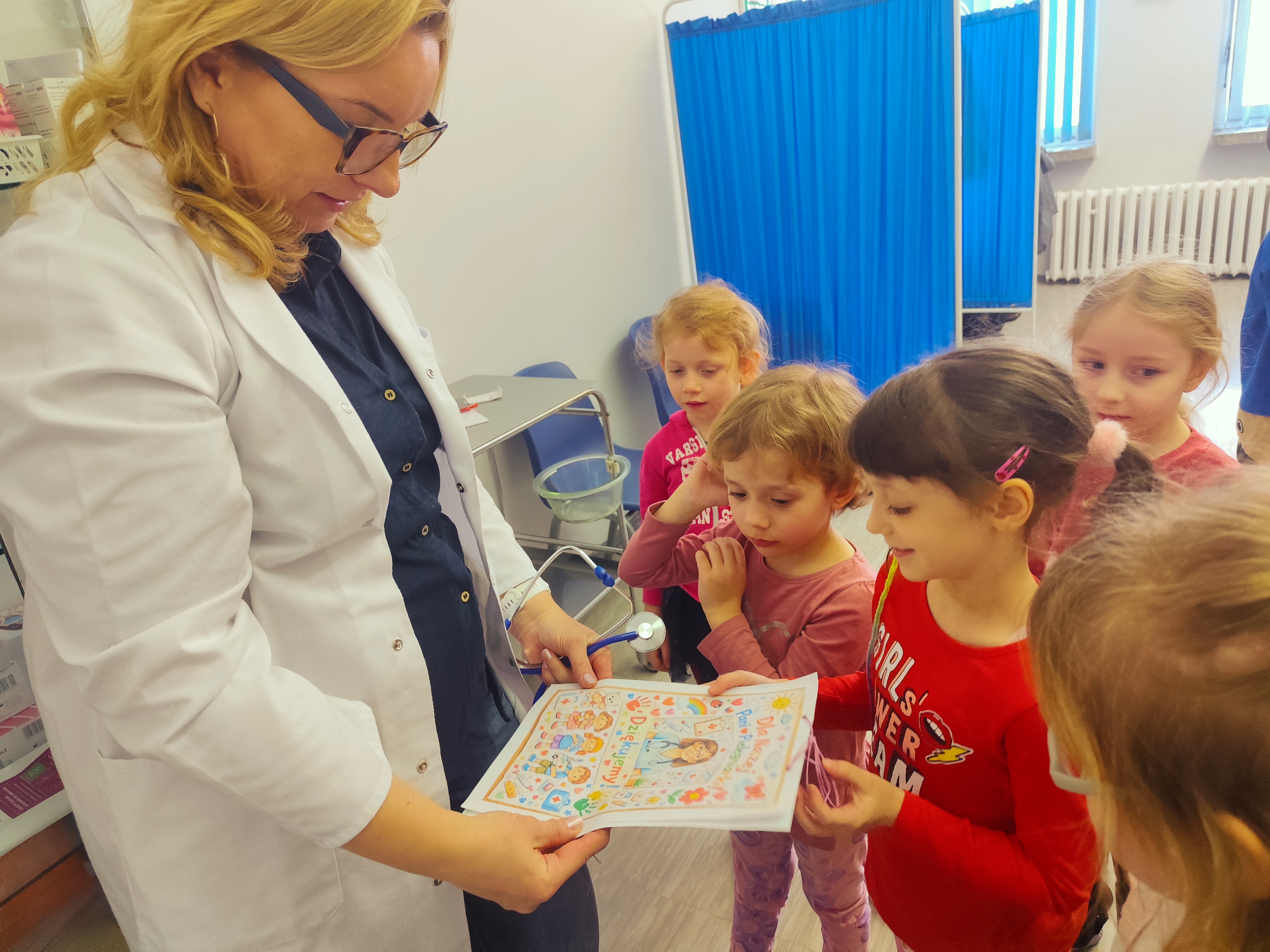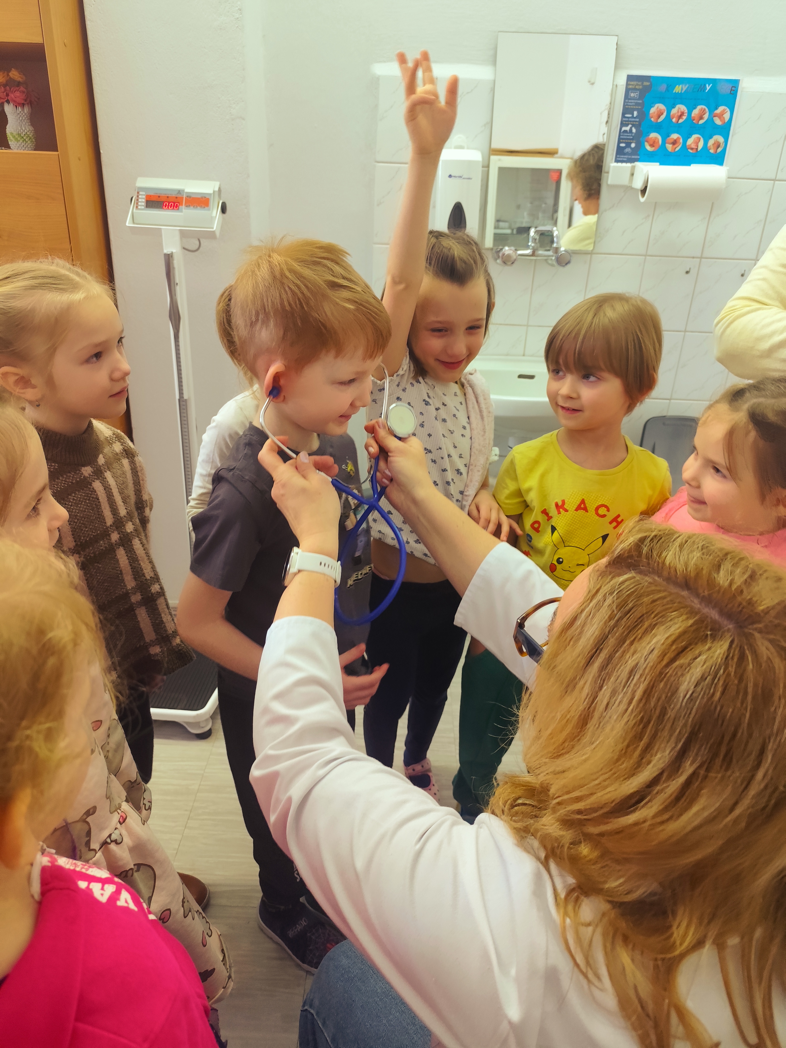 Świetliki podczas wizyty u pani pielęgniarki nie tylko dowiedziały się, na czym polega dbanie o zdrowie uczniów, ale również mogły w praktyce zobaczyć, jak wygląda jej codzienna praca. Dużo pozytywnych emocji wzbudziła możliwość posłuchania bicia własnego serca przez stetoskop, pomiar wzrostu i wagi oraz obserwowanie pomiaru ciśnienia. To wyjątkowe doświadczenie pozwoliło dzieciom choć na chwilę poczuć się jak w prawdziwym gabinecie medycznym.