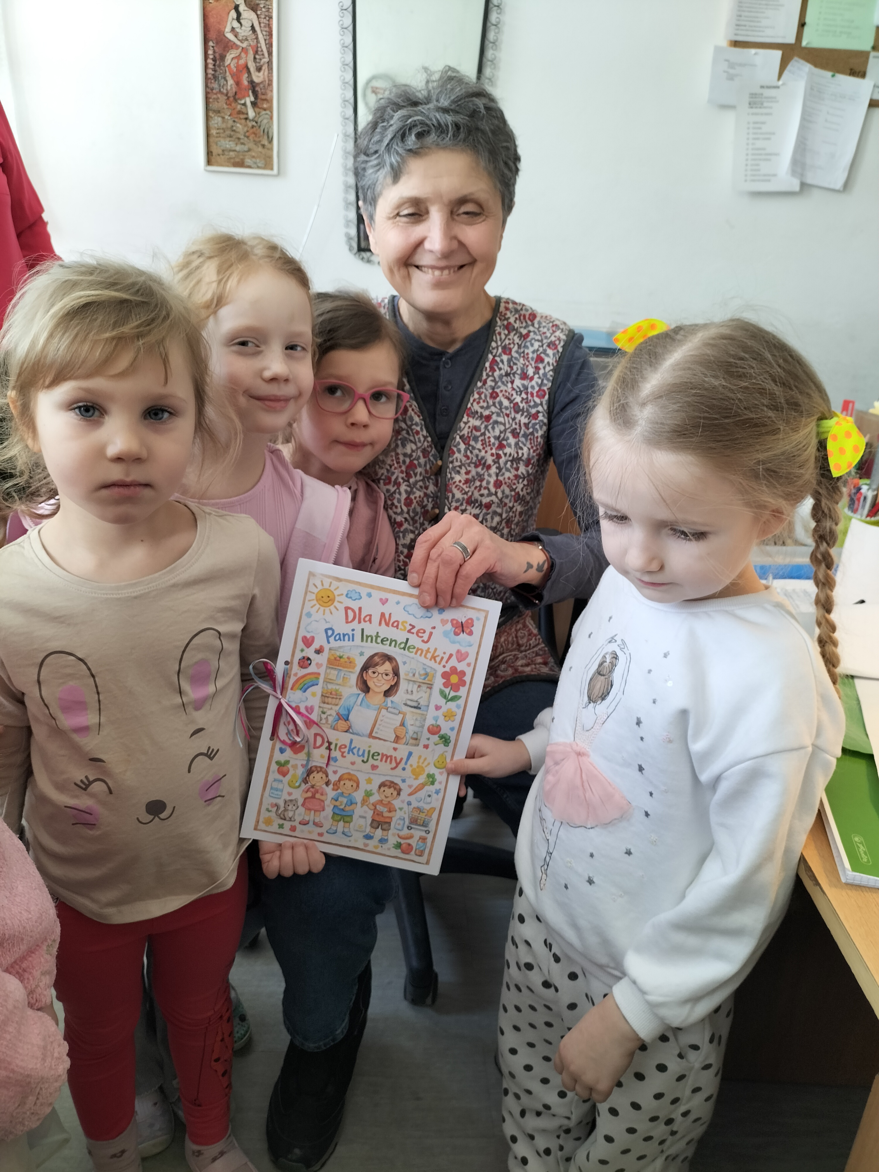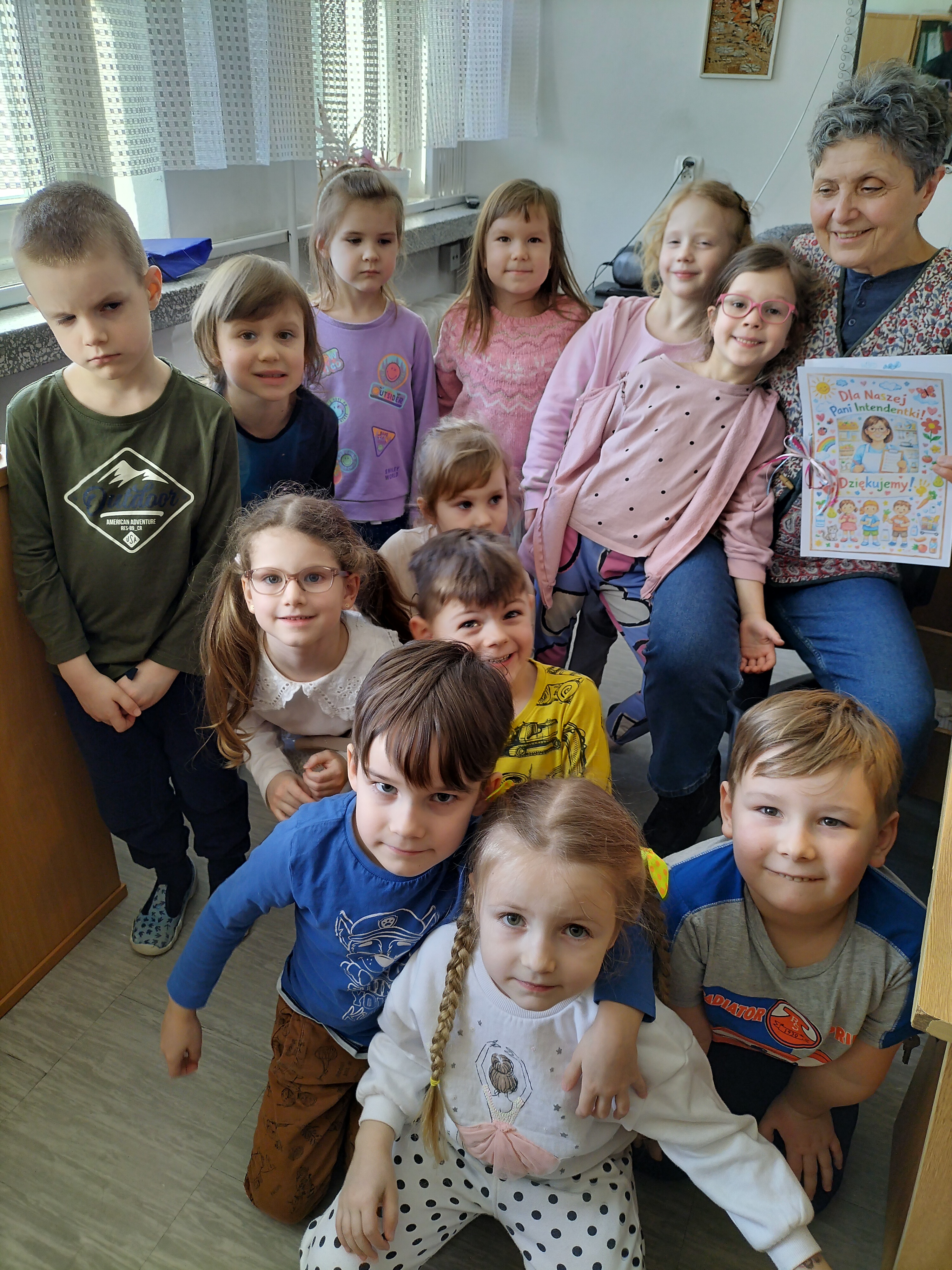 Spotkanie z panią woźną uświadomiło dzieciom, jak ważna i odpowiedzialna jest praca osób czuwających nad porządkiem i bezpieczeństwem w szkole.