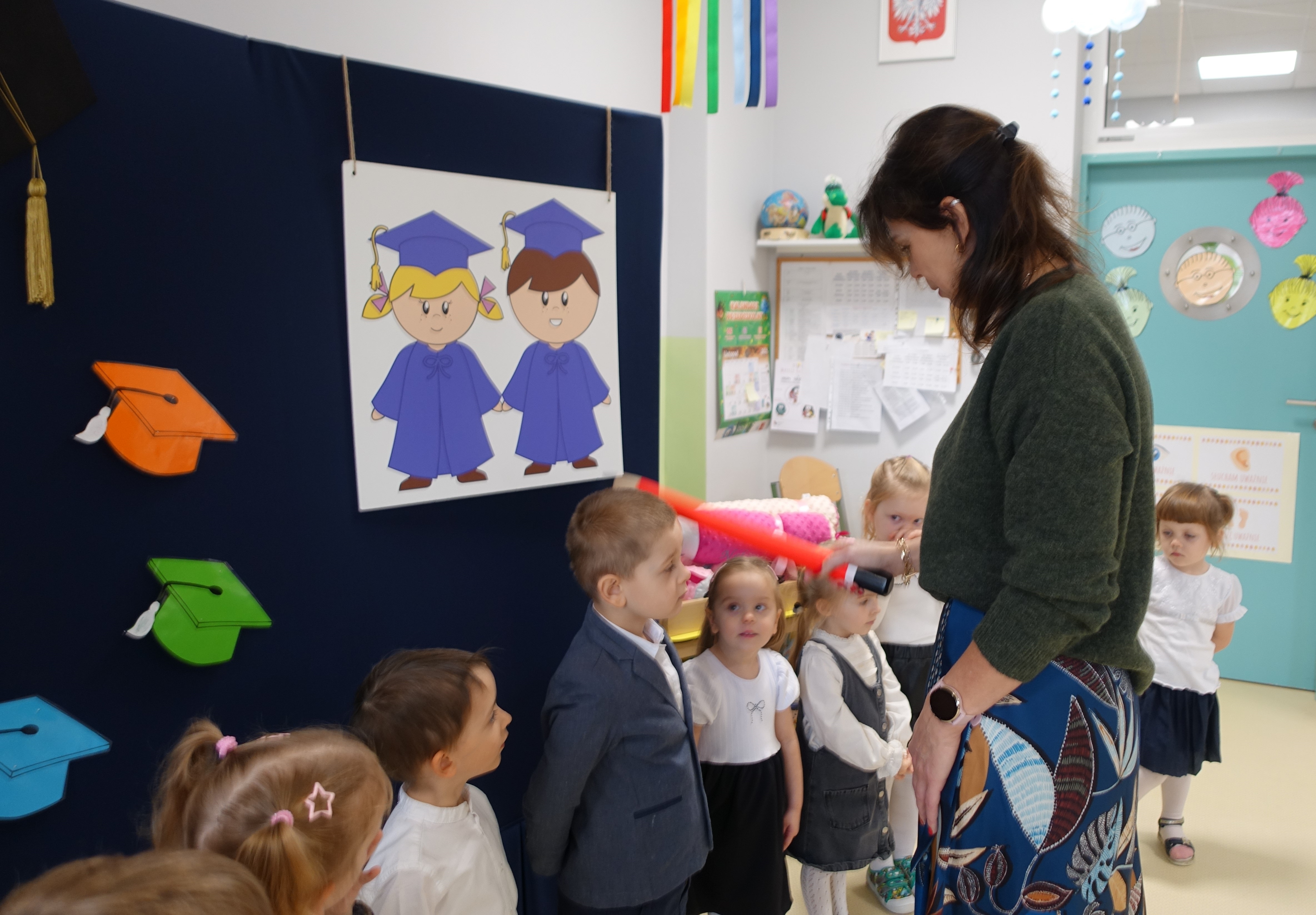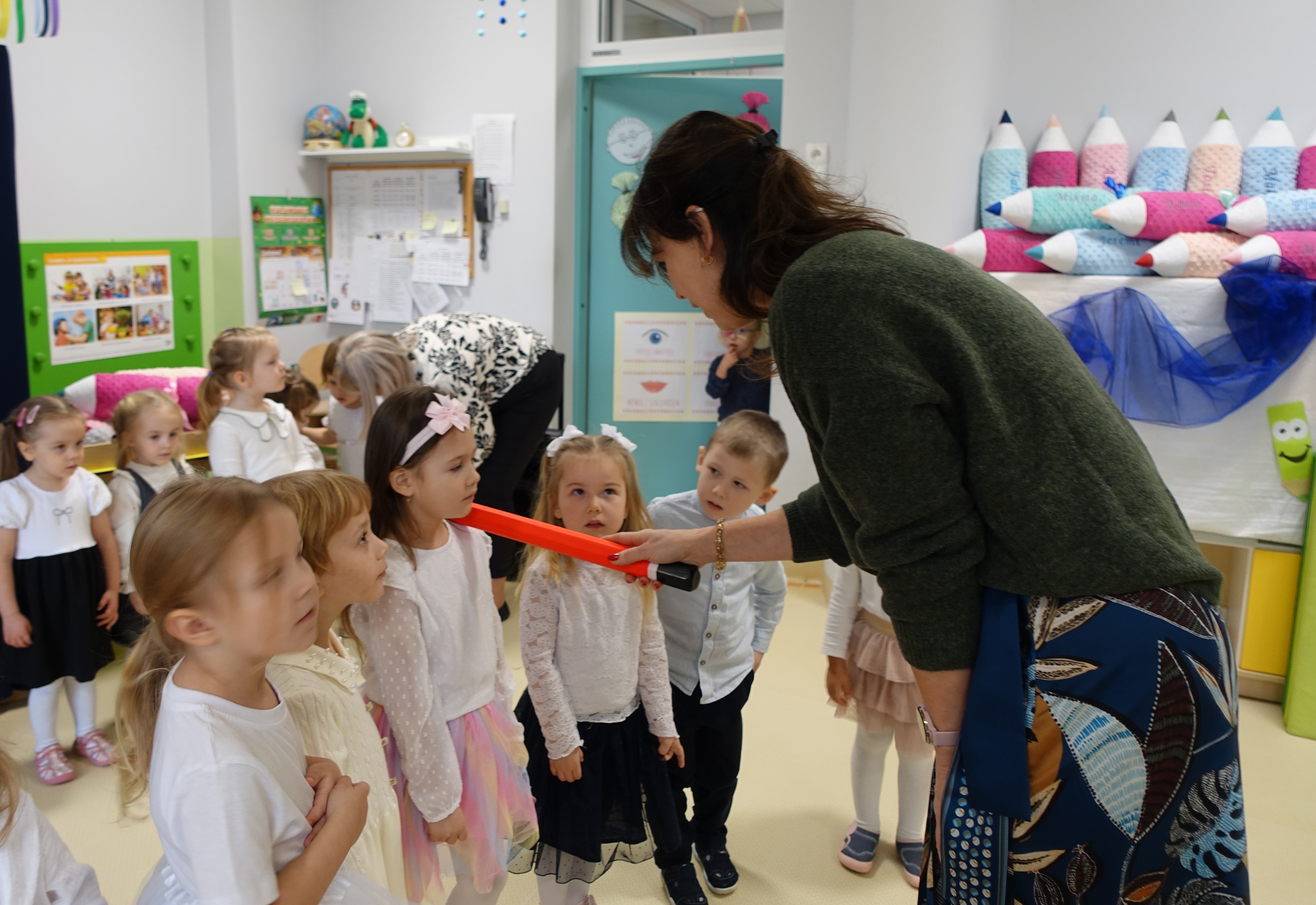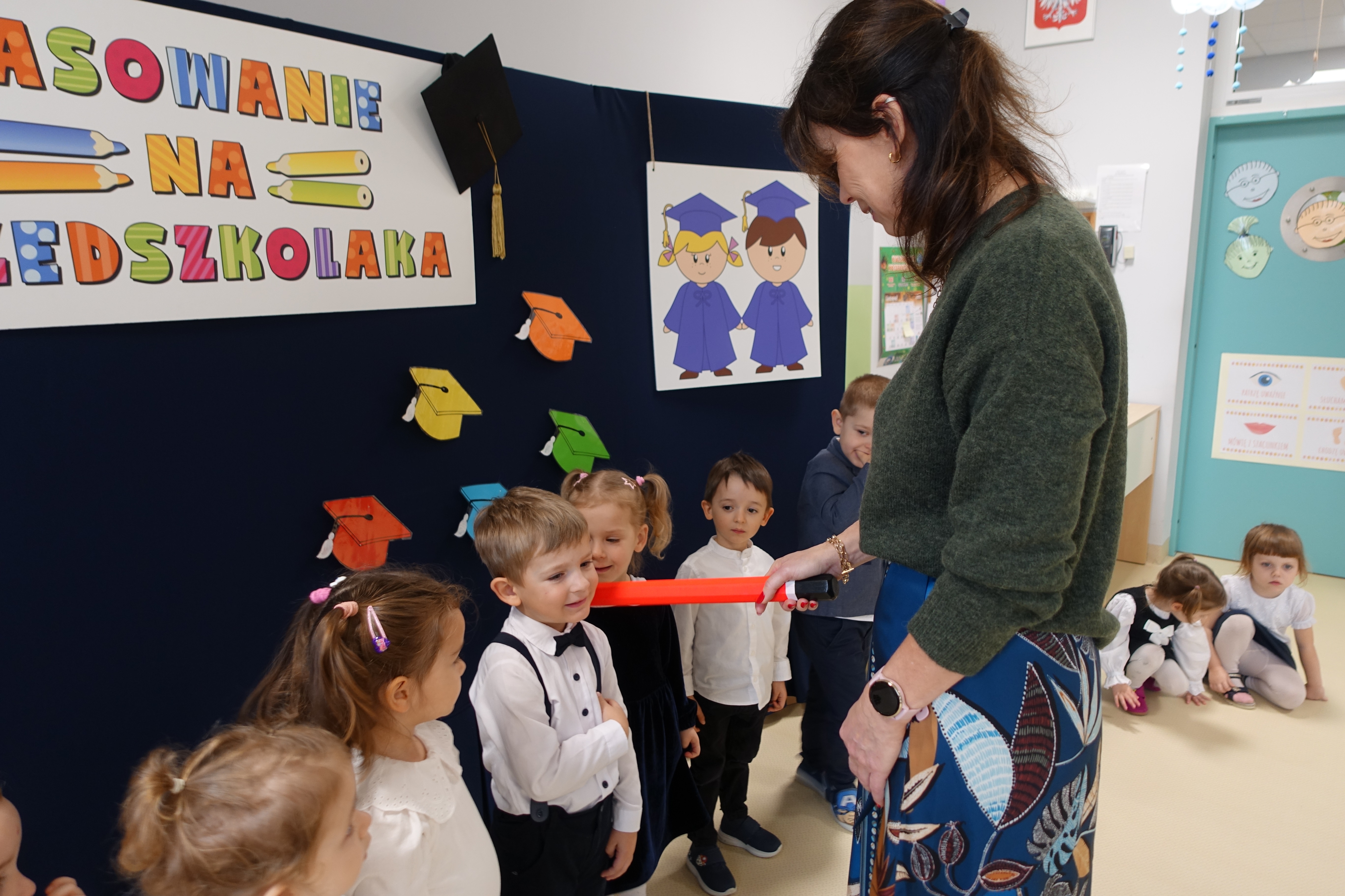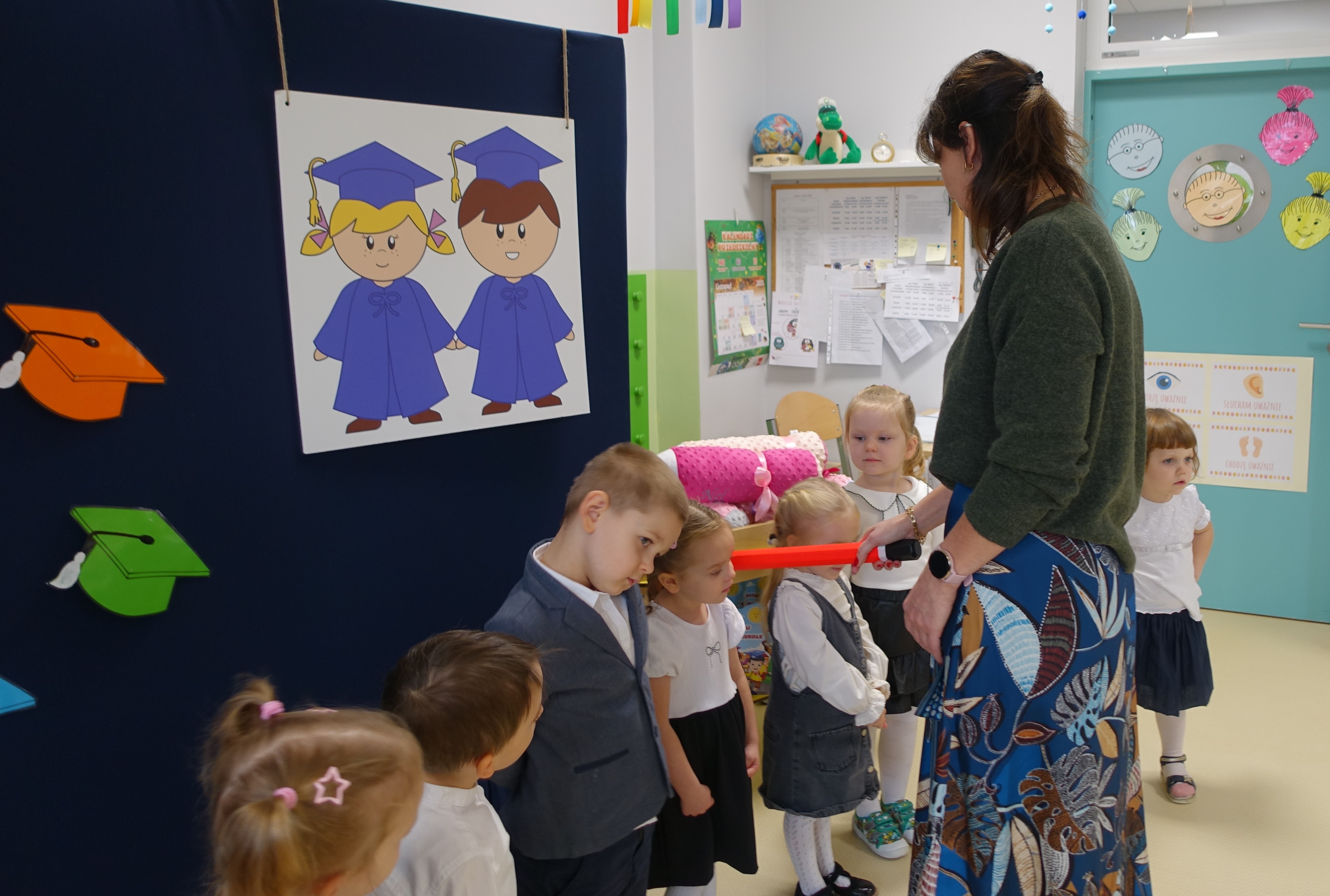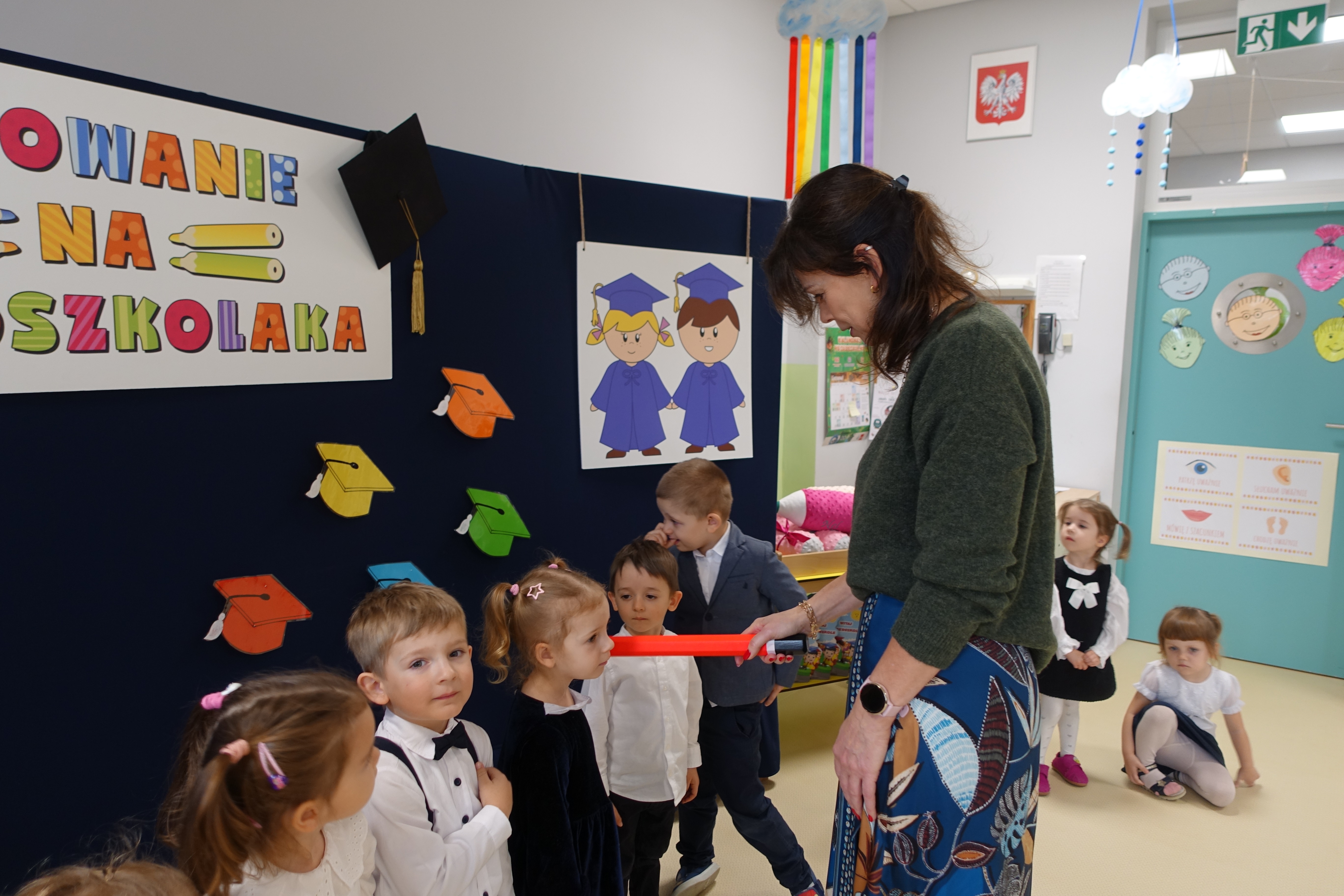 Kulminacyjnym momentem wydarzenia było pasowanie symboliczną kredką, którego dokonała Pani Dyrektor. Tego wyjątkowego zaszczytu dostąpiły wszystkie dzieci uczęszczające do naszego przedszkola od września tego roku, oficjalnie wstępując tym samym do społeczności przedszkolnej.