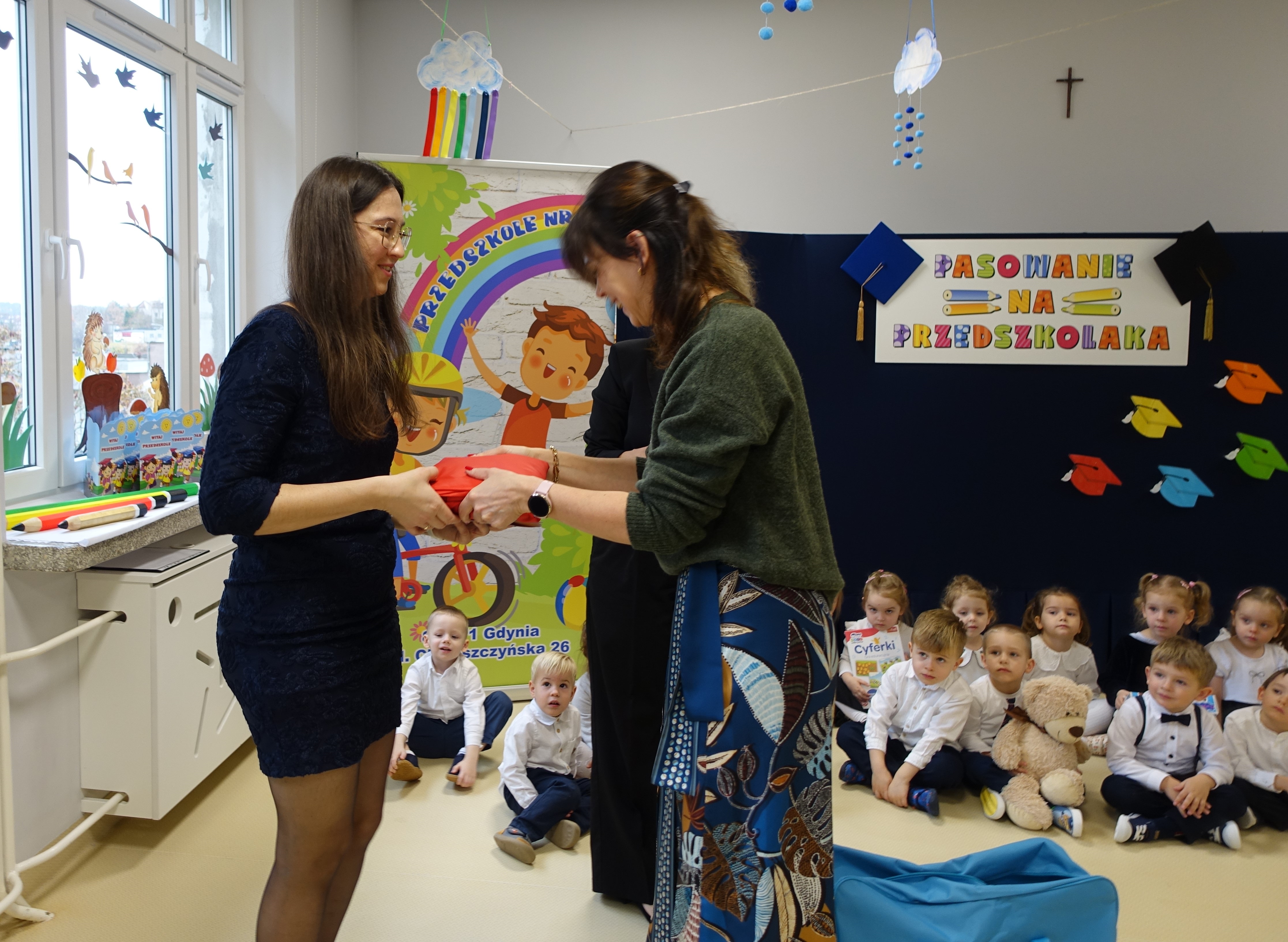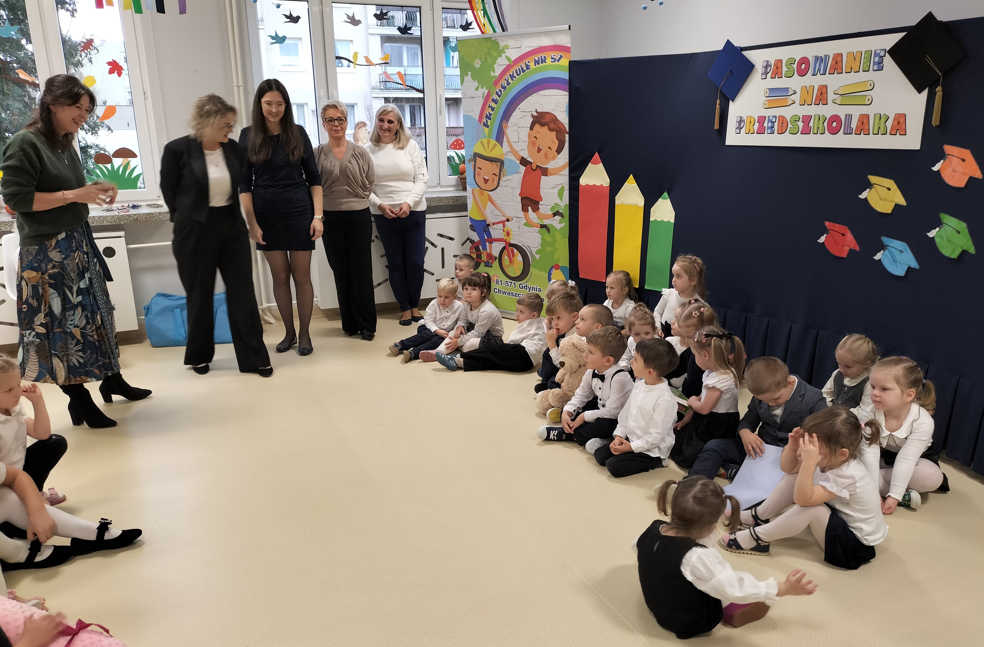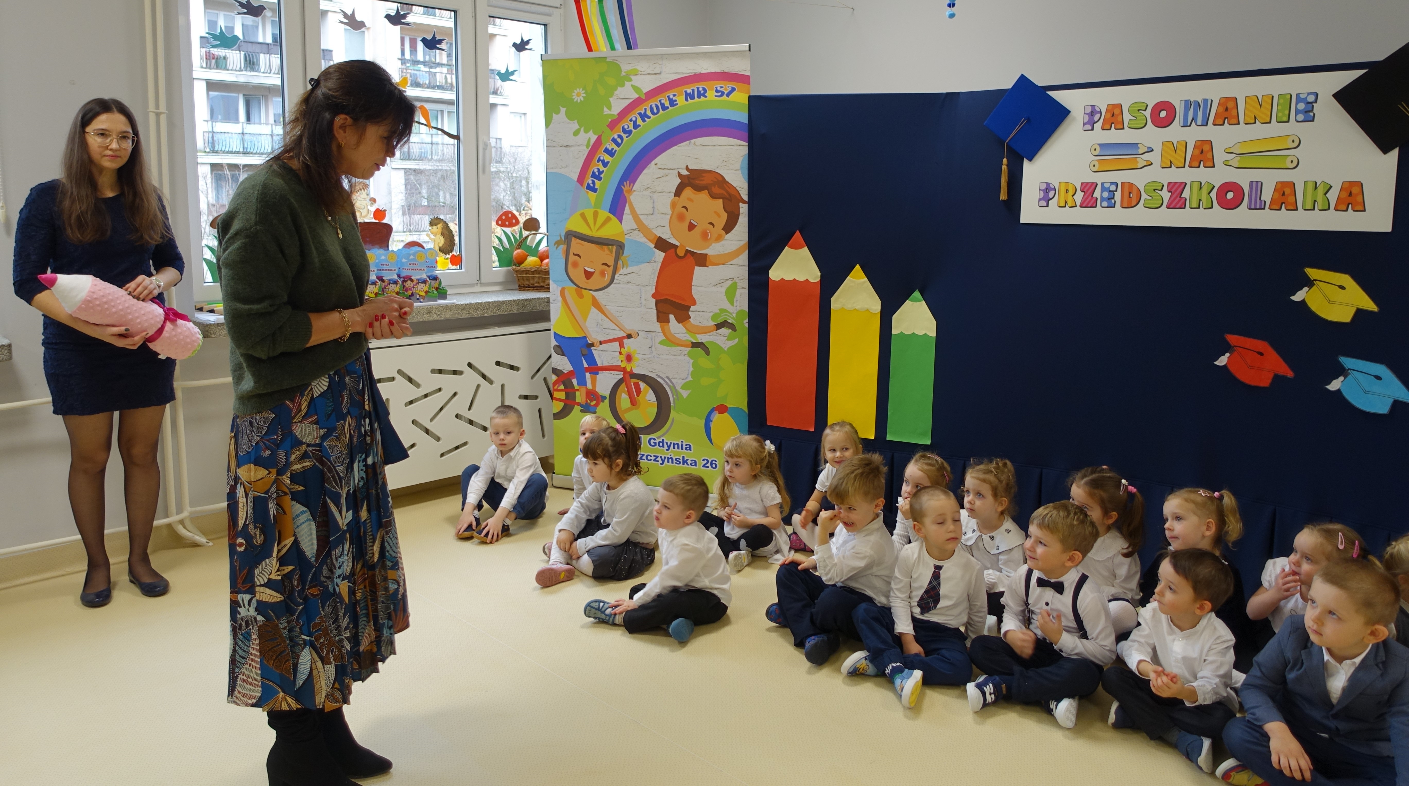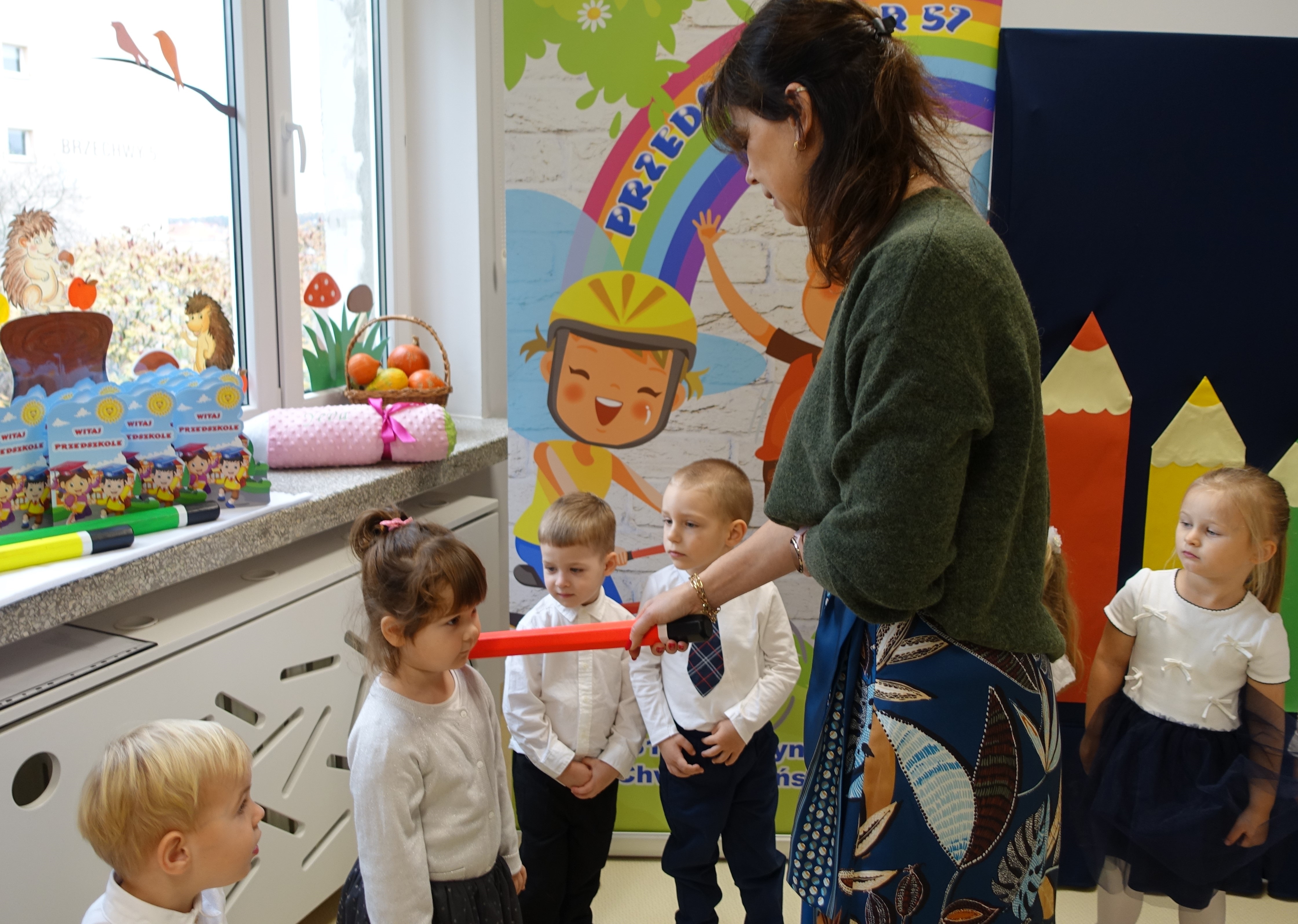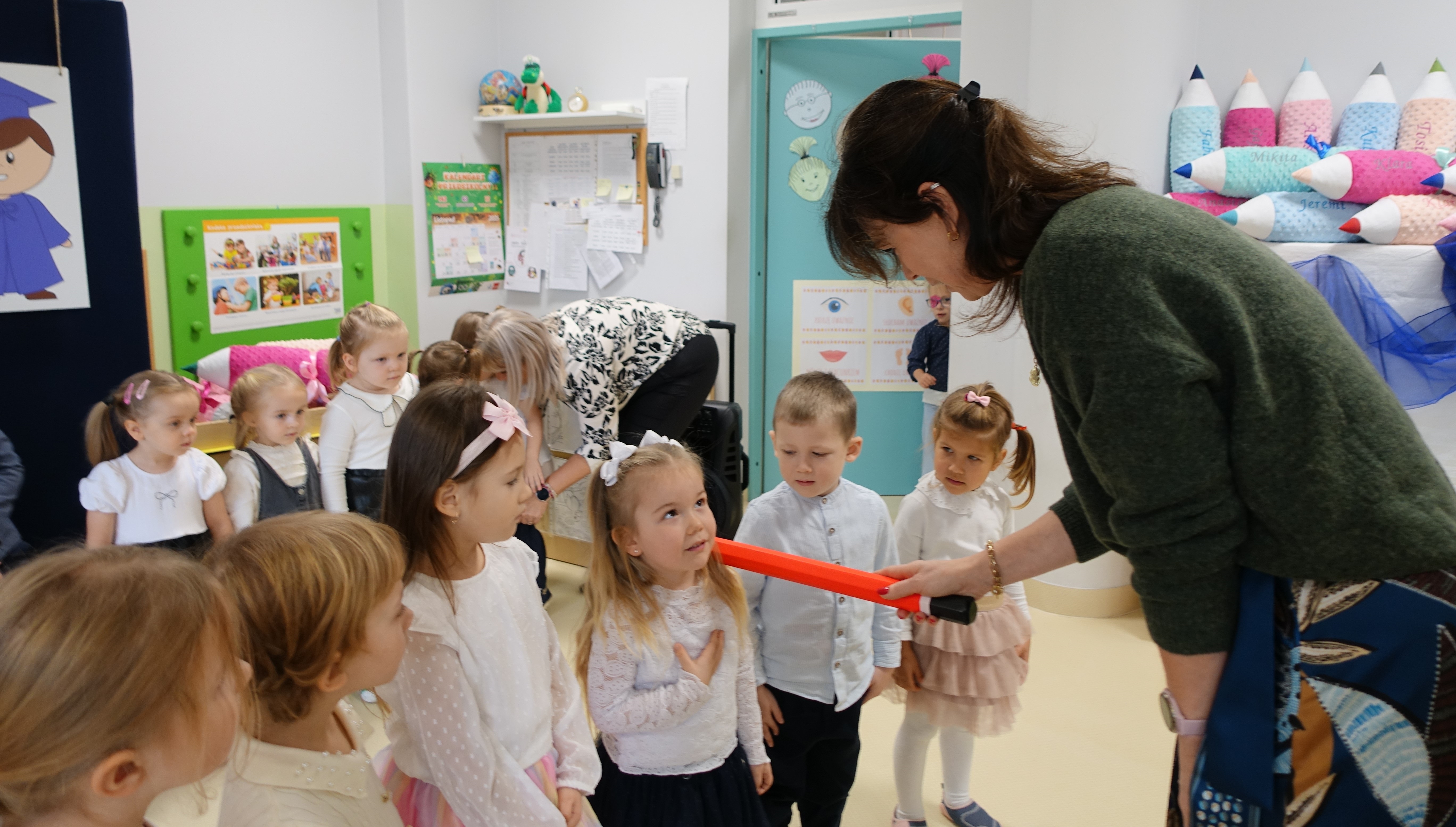 Kulminacyjnym momentem wydarzenia było pasowanie symboliczną kredką, którego dokonała Pani Dyrektor. Tego wyjątkowego zaszczytu dostąpiły wszystkie dzieci uczęszczające do naszego przedszkola od września tego roku, oficjalnie wstępując tym samym do społeczności przedszkolnej.