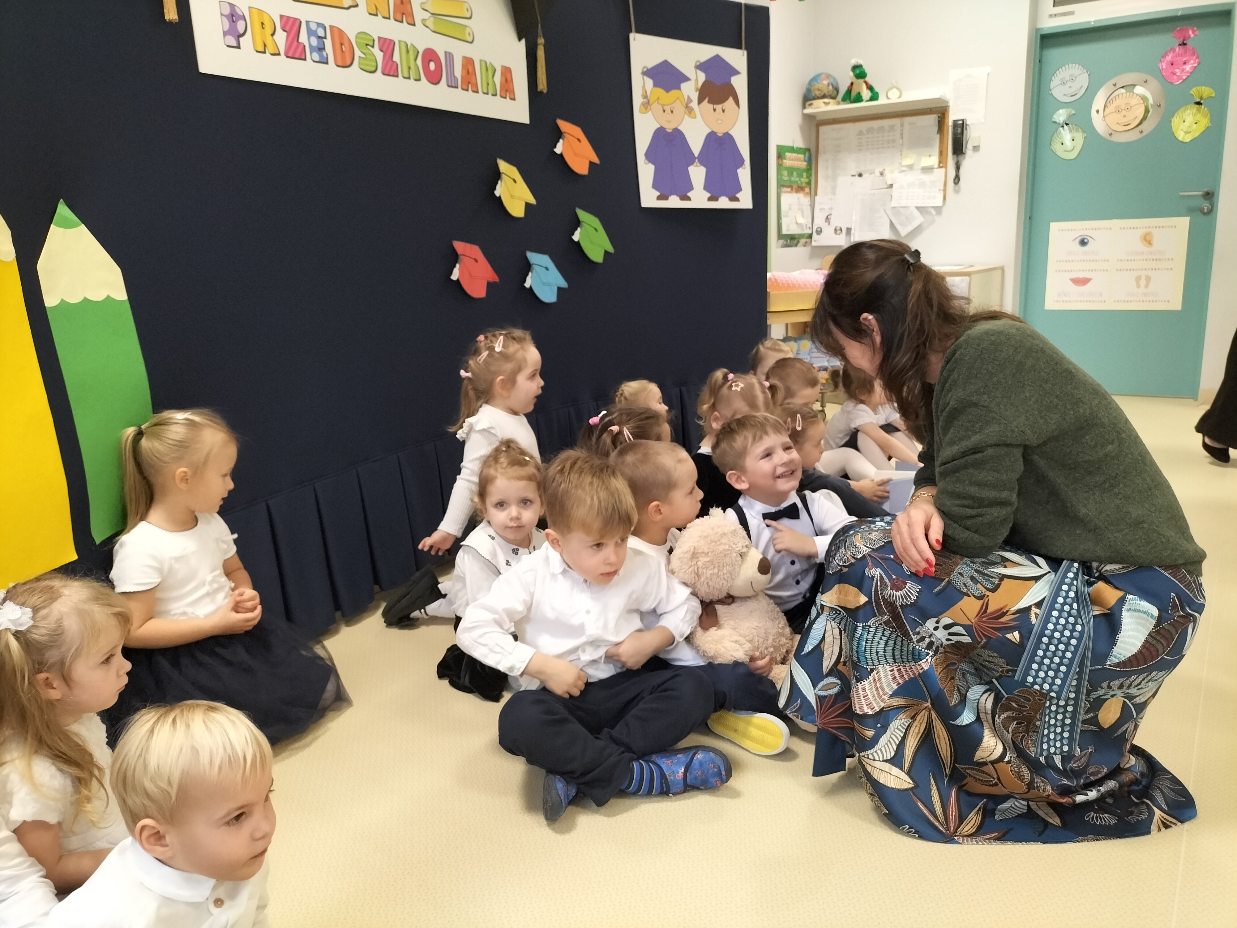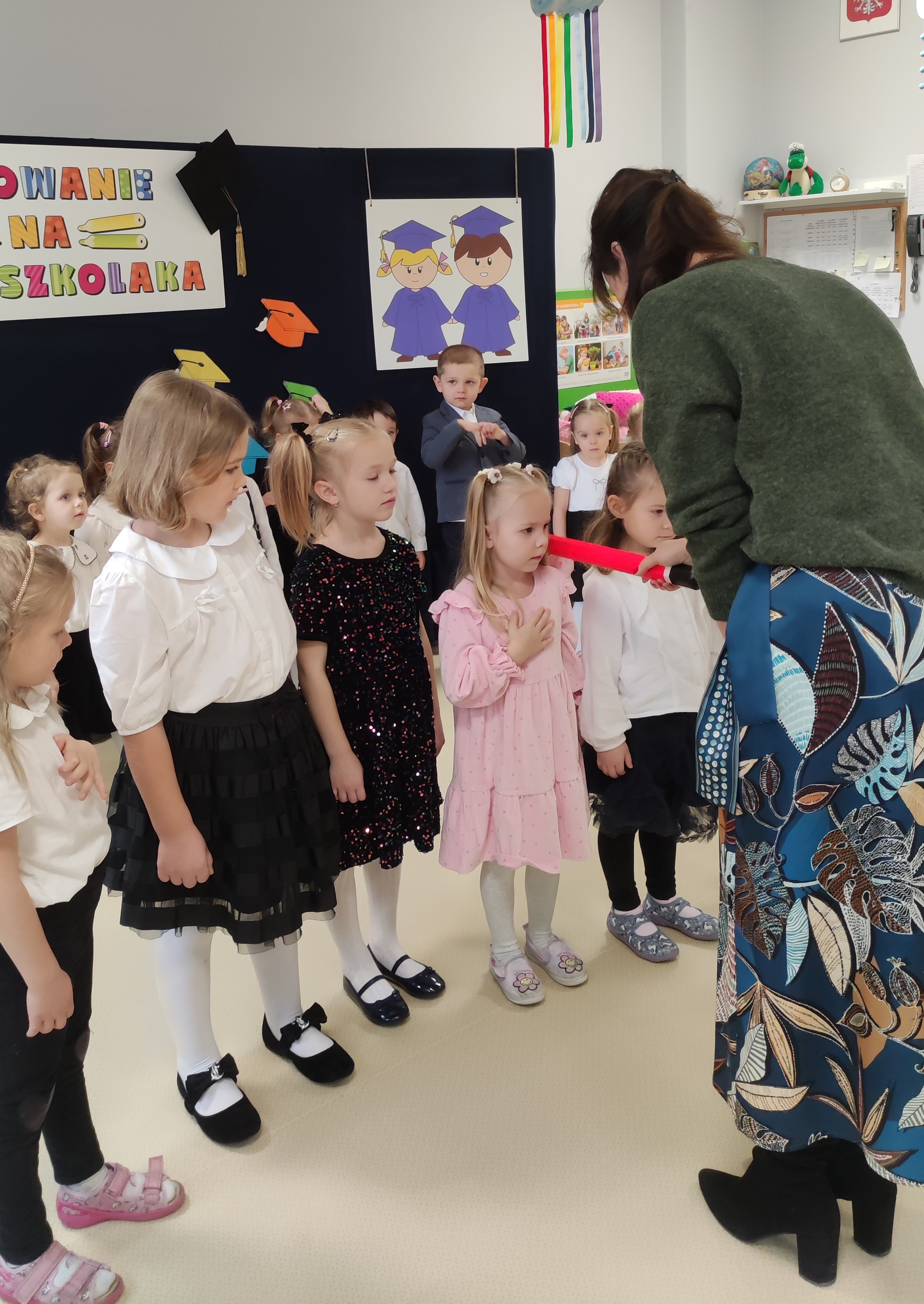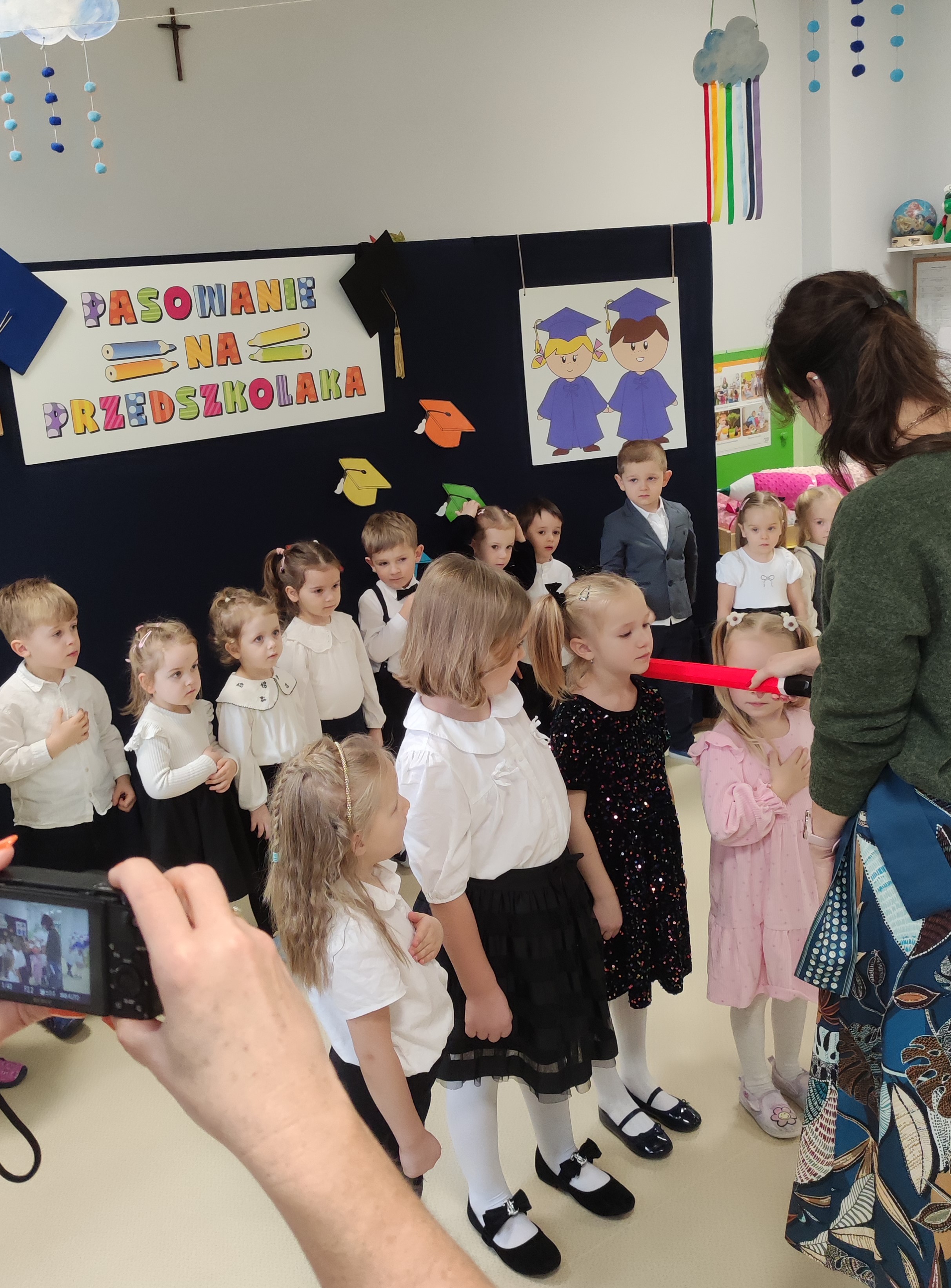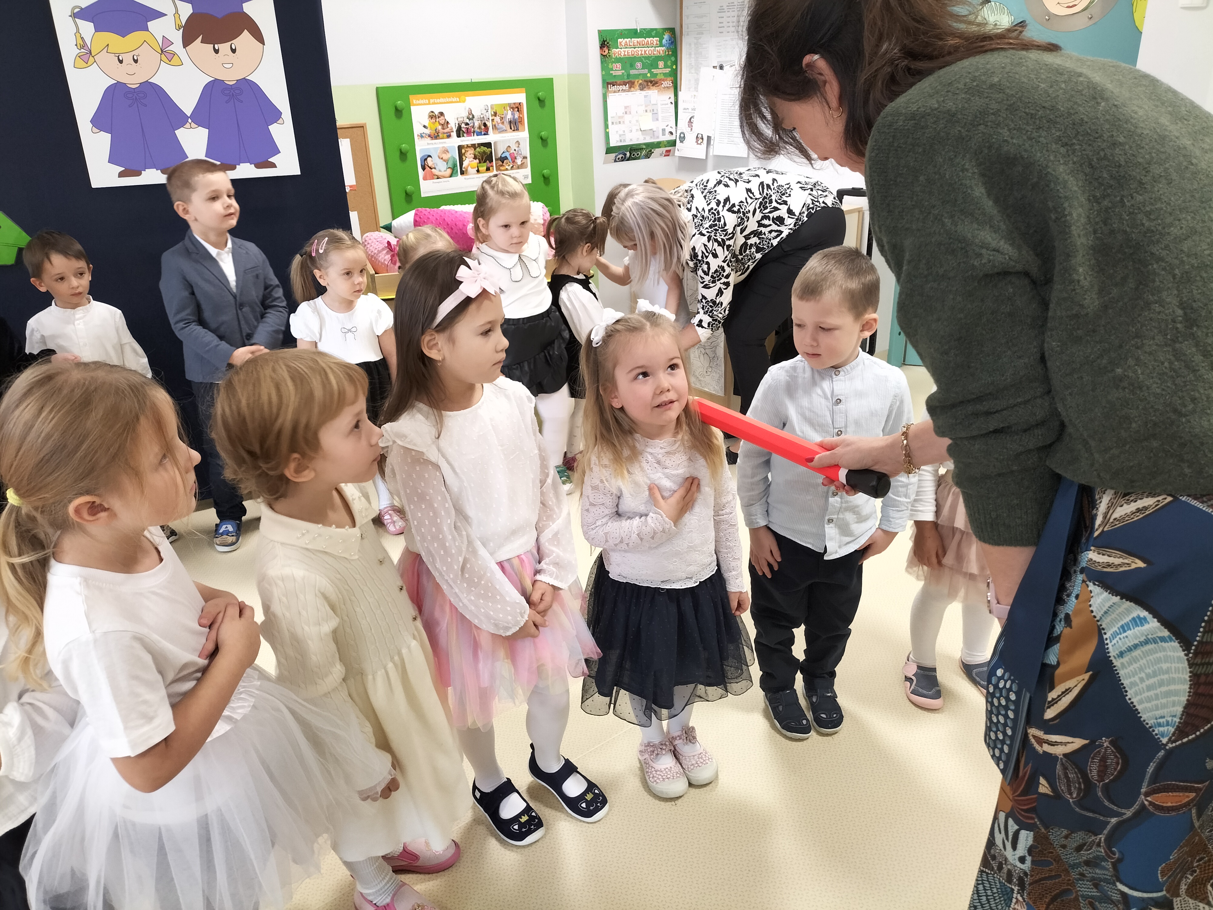W środę, 19 listopada, w grupie Skrzaty odbyła się niezwykle podniosła uroczystość Pasowania na Przedszkolaka. W odświętnej atmosferze dzieci zaprezentowały przygotowane piosenki, po czym złożyły uroczyste przyrzeczenie, obiecując być dzielnymi, uśmiechniętymi i życzliwymi przedszkolakami.