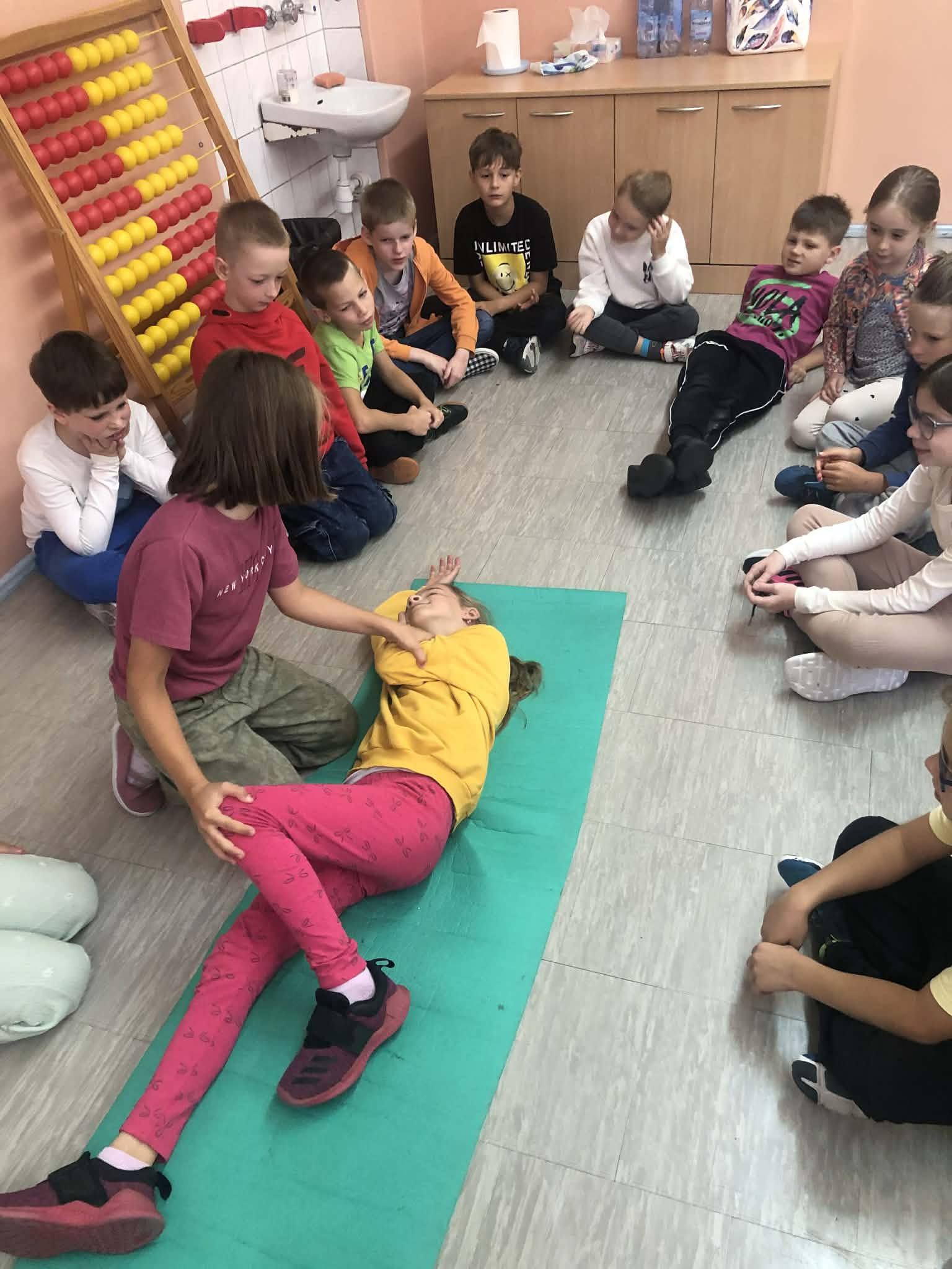 Uczniowie poznali podstawowe zasady postępowania w sytuacjach zagrożenia zdrowia i życia. Nauczyli się, w jaki sposób sprawdzić przytomność poszkodowanego, ocenić jego oddech oraz jak prawidłowo wezwać pomoc przez telefon, podając najważniejsze informacje.