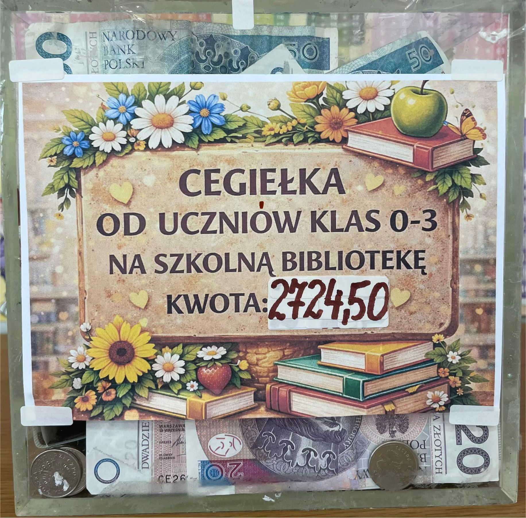 Dzięki zaangażowaniu uczniów, rodziców oraz nauczycieli udało się zebrać 2724,50 zł. Całkowity dochód z kiermaszu zostanie przeznaczony na tworzenie nowej przestrzeni naszej szkolnej biblioteki. To ważny krok w kierunku budowania miejsca przyjaznego czytelnikom, sprzyjającego rozwijaniu pasji i zainteresowań czytelniczych.