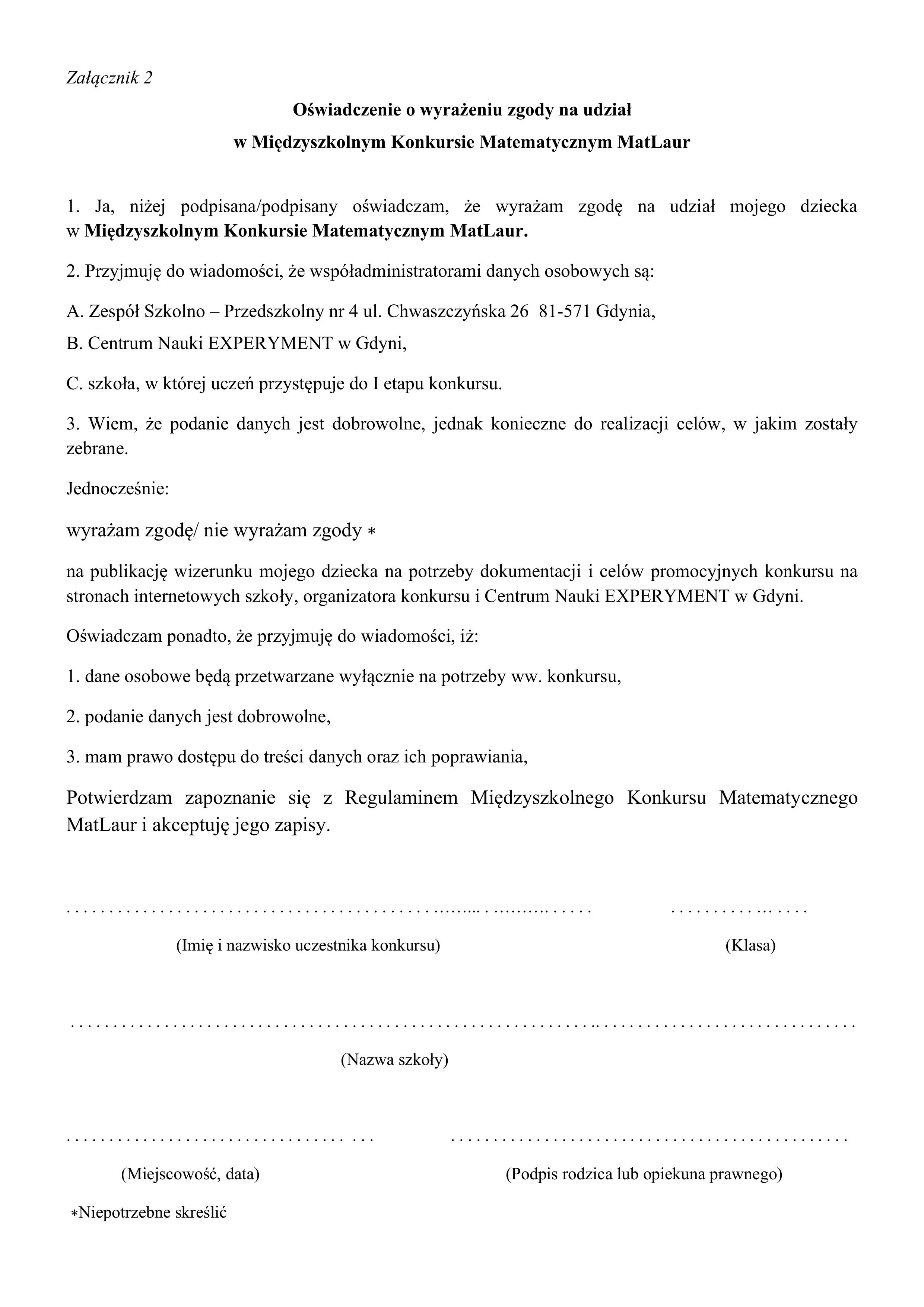 REGULAMINU MIĘDZYSZKOLNEGO KONKURSU MATEMATYCZNEGO MatLaur