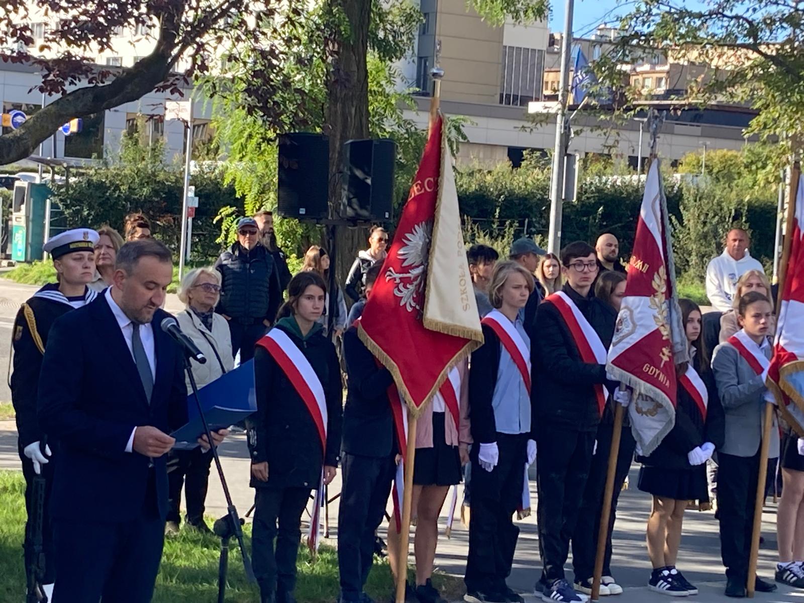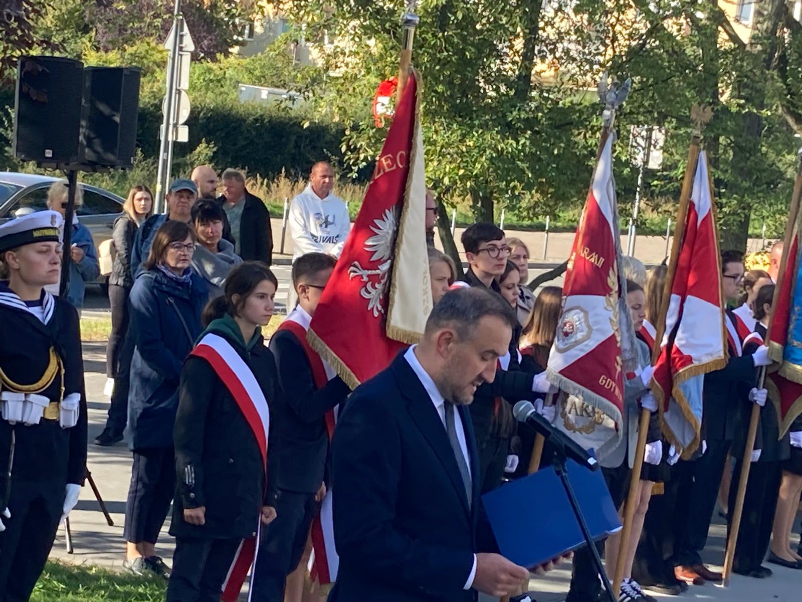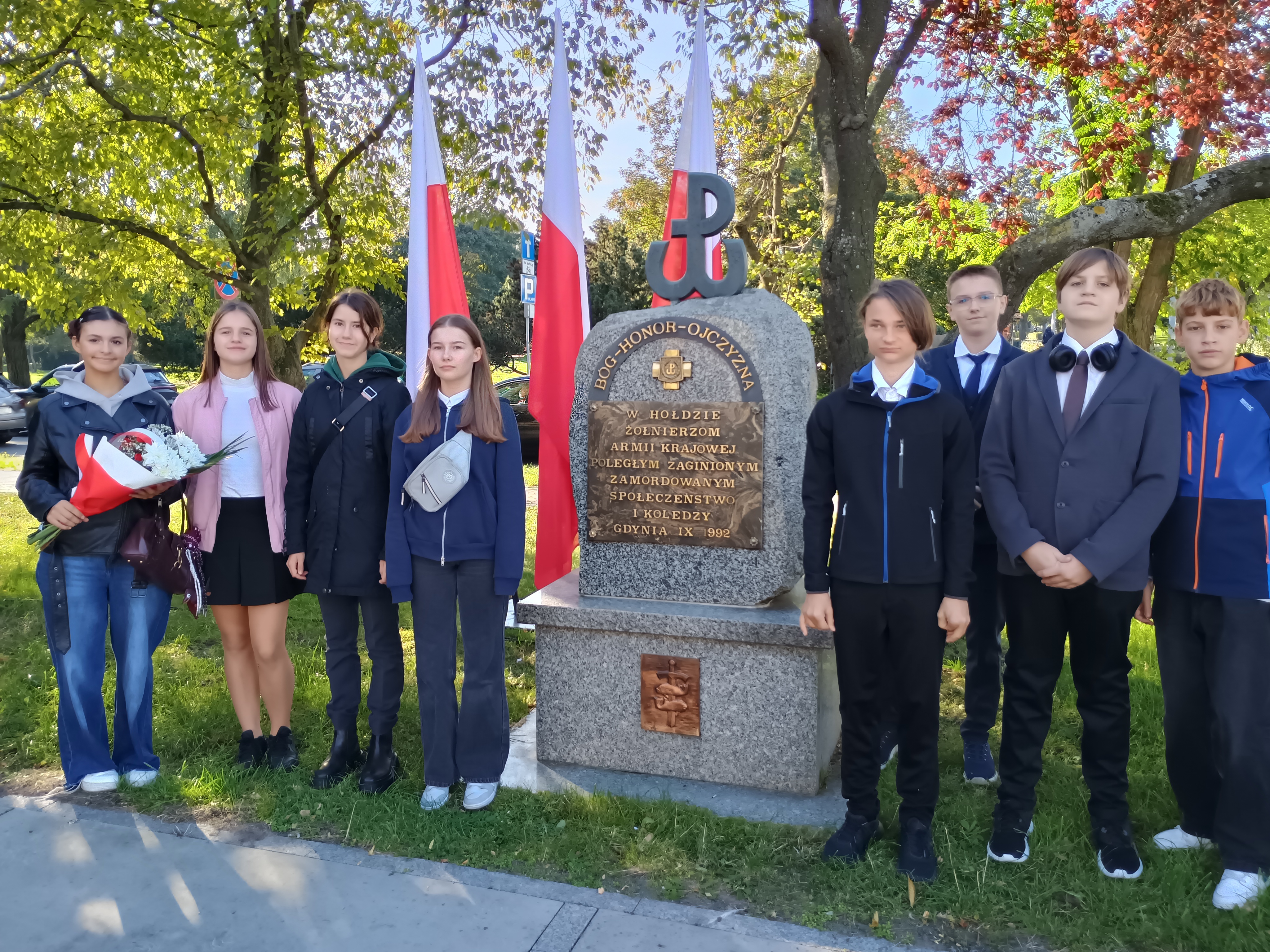 Jak co roku, 27 września uczniowie z naszej szkoły wzięli udział w gdyńskich uroczystościach upamiętniających rocznicę utworzenia Polskiego Państwa Podziemnego. Szkołę Podstawową nr 46 reprezentowali uczniowie klas 6, 7, 8 oraz poczet sztandarowy. Przy pomniku Armii Krajowej na Skwerze Kościuszki zgromadzili się licznie gdynianie, kombatanci, przedstawiciele władz miasta oraz młodzież z gdyńskich szkół. Uczczono pamięć i oddano hołd żołnierzom walczącym w strukturach Polskiego Państwa Podziemnego w latach 1939-1945. Uroczystość uświetniła asysta żołnierzy Marynarki Wojennej. Przemówienie do zebranych wygłosił pan wiceprezydent Gdyni Tomasz Augustyniak i wiceprezes okręgu pomorskiego Światowego Związku Żołnierzy Armii Krajowej pan Tomasz Kuplicki. Na zakończenie uroczystości szkolna delegacja złożyła kwiaty pod pomnikiem.