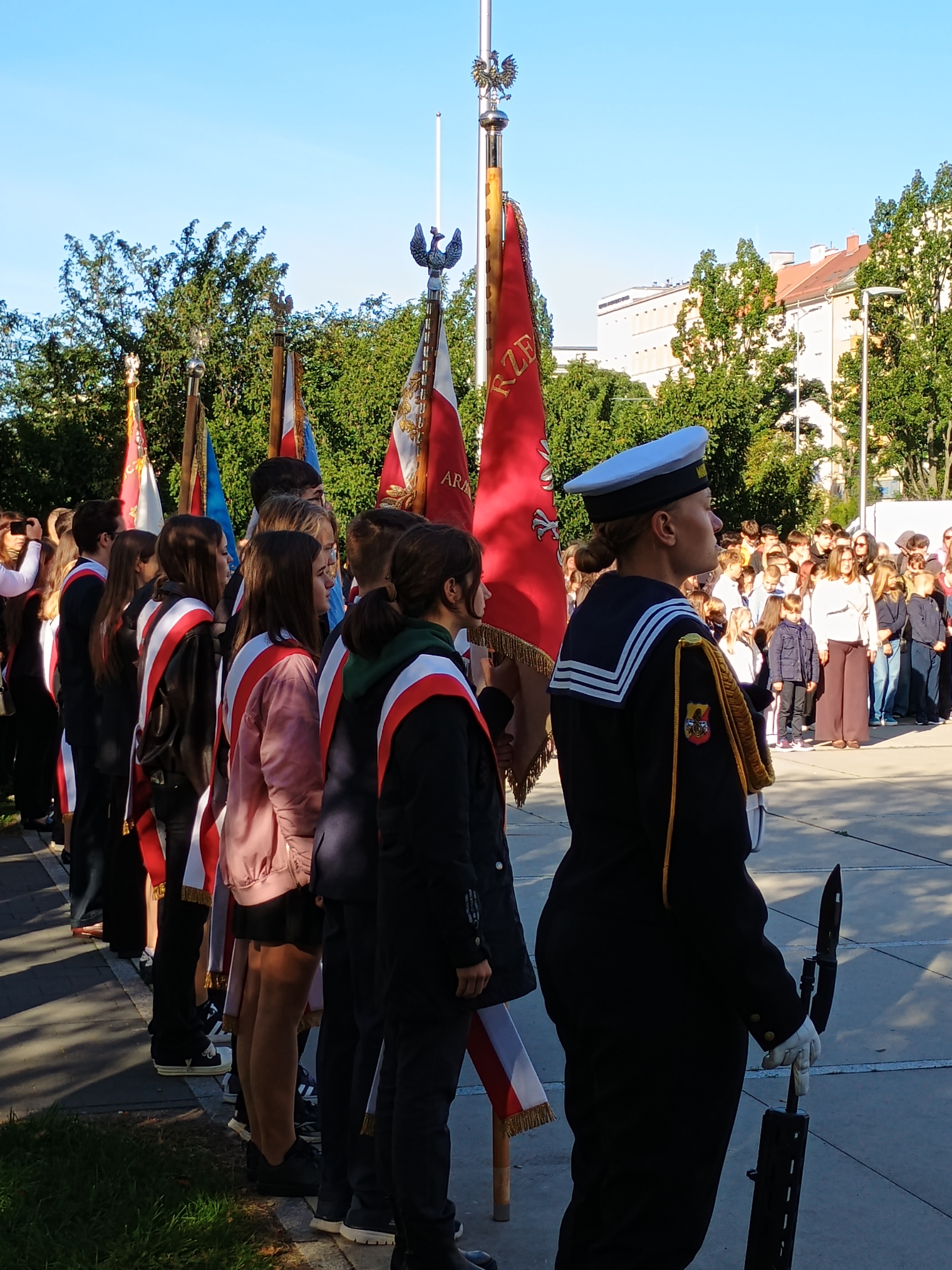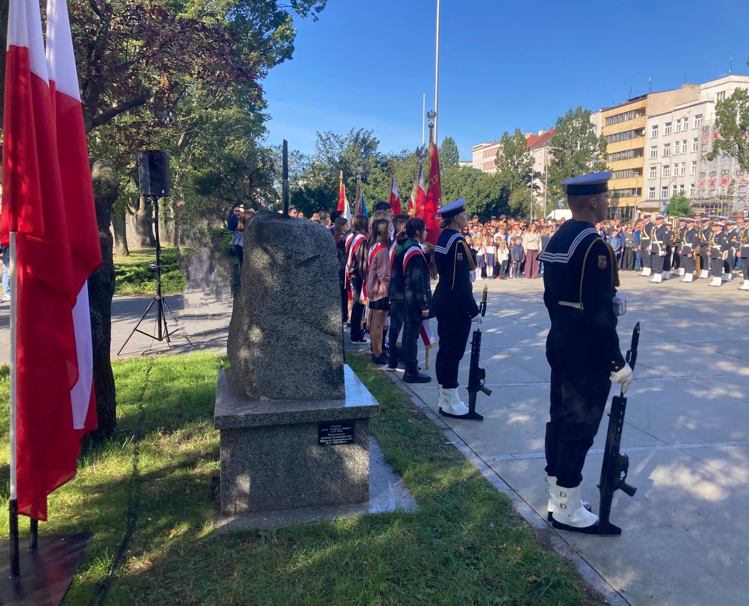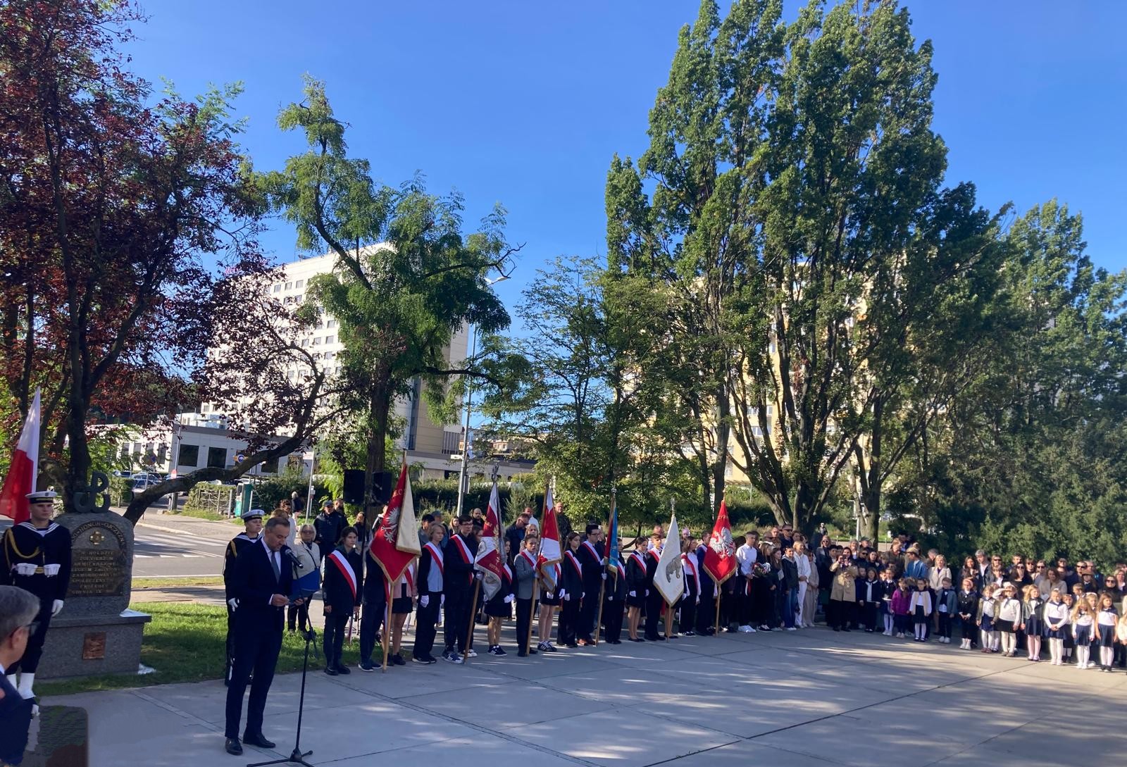 Jak co roku, 27 września uczniowie z naszej szkoły wzięli udział w gdyńskich uroczystościach upamiętniających rocznicę utworzenia Polskiego Państwa Podziemnego. Szkołę Podstawową nr 46 reprezentowali uczniowie klas 6, 7, 8 oraz poczet sztandarowy. Przy pomniku Armii Krajowej na Skwerze Kościuszki zgromadzili się licznie gdynianie, kombatanci, przedstawiciele władz miasta oraz młodzież z gdyńskich szkół. Uczczono pamięć i oddano hołd żołnierzom walczącym w strukturach Polskiego Państwa Podziemnego w latach 1939-1945. Uroczystość uświetniła asysta żołnierzy Marynarki Wojennej. Przemówienie do zebranych wygłosił pan wiceprezydent Gdyni Tomasz Augustyniak i wiceprezes okręgu pomorskiego Światowego Związku Żołnierzy Armii Krajowej pan Tomasz Kuplicki. Na zakończenie uroczystości szkolna delegacja złożyła kwiaty pod pomnikiem.