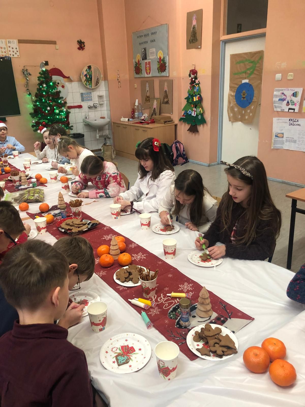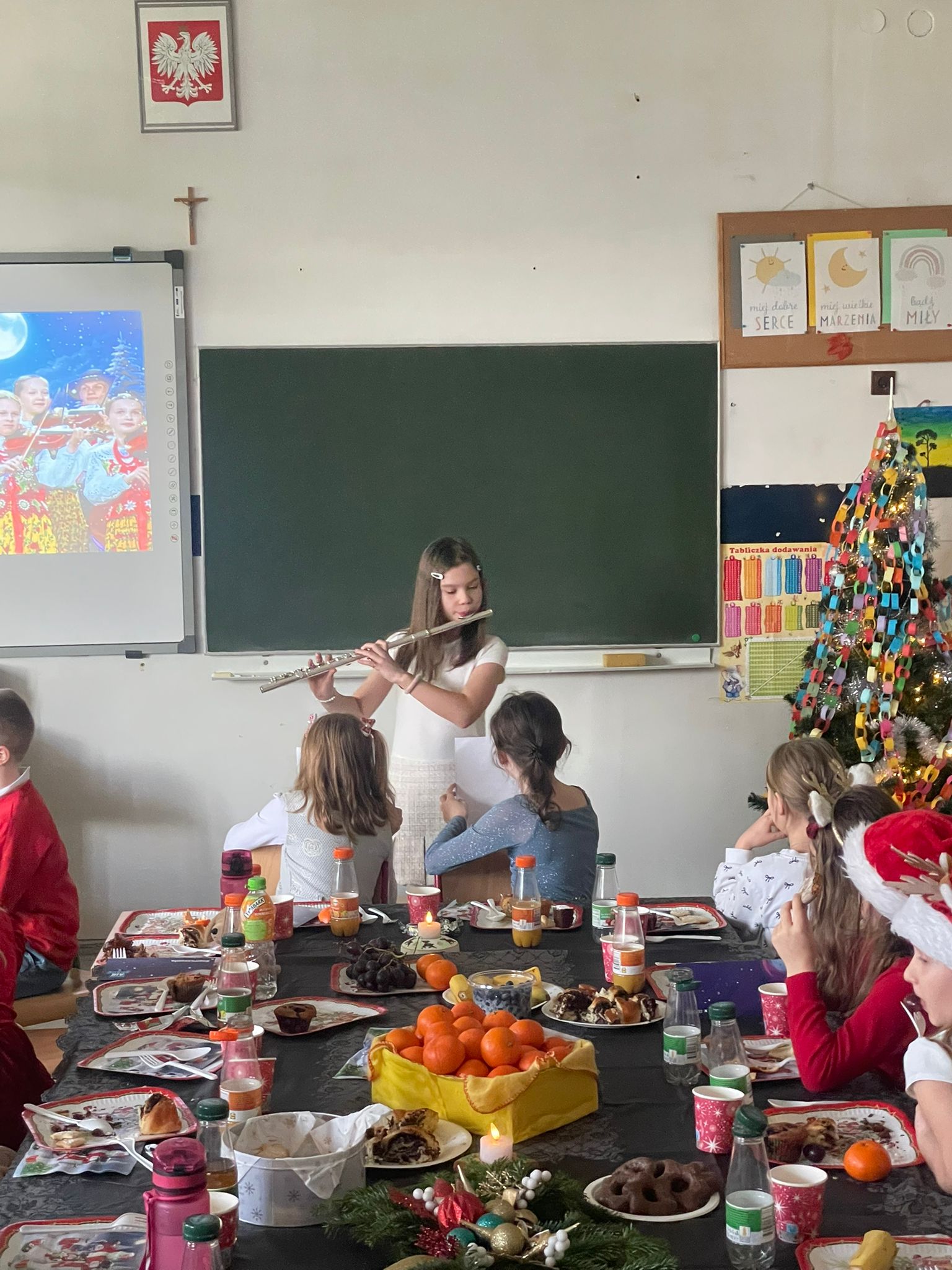 W dniu dzisiejszym w klasach 0–3 odbyły się spotkania świąteczne, zorganizowane z okazji nadchodzących Świąt. Wydarzenia te przebiegały w serdecznej i podniosłej atmosferze, sprzyjającej wspólnemu przeżywaniu tego wyjątkowego czasu. Uczniowie wraz z wychowawcami uczestniczyli w rozmowach, wspólnych aktywnościach oraz chwilach integracji, które pozwoliły na budowanie wzajemnych relacji i wzmacnianie wartości takich jak życzliwość, szacunek i wspólnota. Spotkania były również okazją do kultywowania tradycji świątecznych oraz wprowadzenia uczniów w radosny nastrój nadchodzących dni.