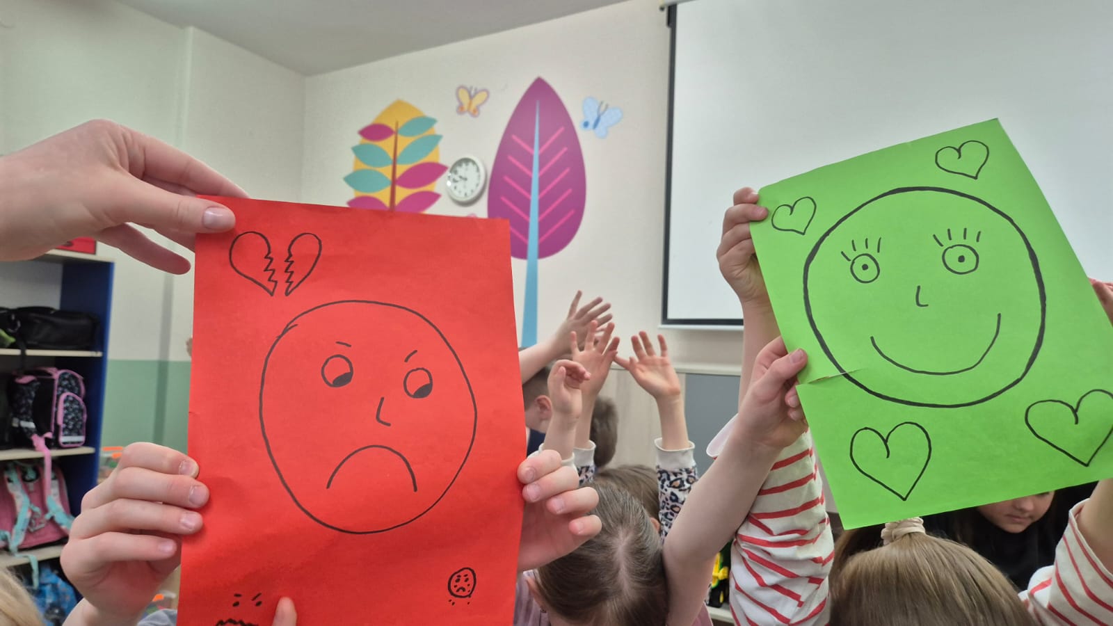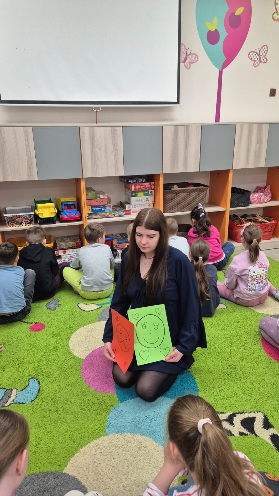 "Dziś świetlcę szkolną odwiedziła Pani Psycholog szkolna, która zabrała nas w niezwykłą podróż do świata emocji ?✨. Poprzez wspólne gry i zabawy dzieci uczyły się jak rozpoznawać radość, smutek, złość czy strach. Było mnustwo śmiechu, ale też ważnych rozmów o tym, że każde uczucie jest nam potrzebne.