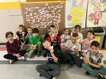 W klasach 1-3 w związku ze Świętami majowymi odbyły się lekcje tematyczne poświęcone Konstytucji 3 Maja i historii polskich symboli narodowych. Dzieci wykonały własnoręcznie flagi, wspólnie ozdobili mapę Polski ptaszkami biało-czerwonymi wypisując na nich swoje skojarzenia dot. Polski, wykonały piękne patriotyczne prace plastyczne. Obchody świąt majowych były dla nas wszystkich nie tylko lekcją historii, ale również okazją do wspólnego świętowania i budowania poczucia tożsamości narodowej.