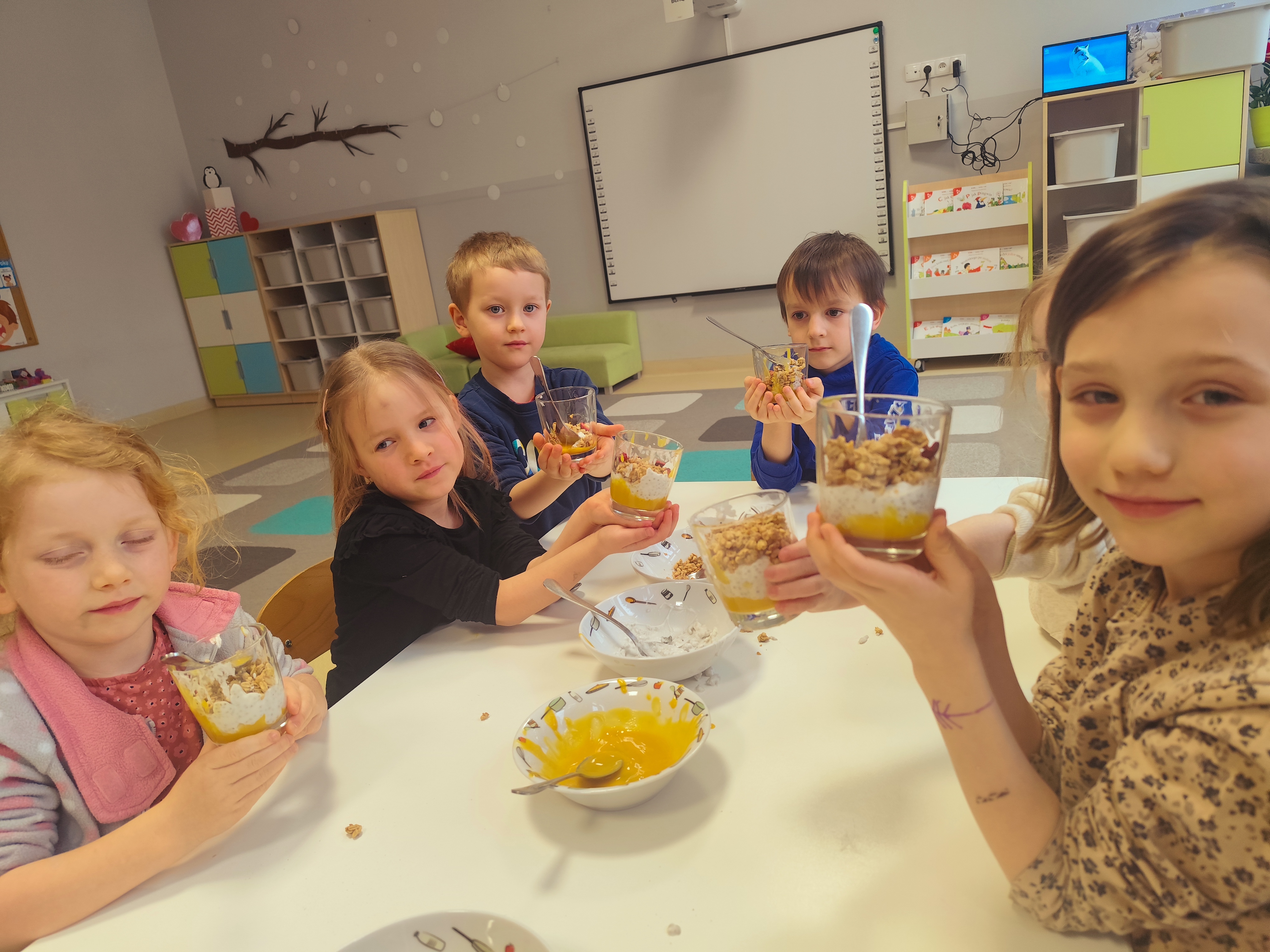 Dzieci z ogromnym zaangażowaniem komponowały swoje warstwy deseru, ćwicząc samodzielność, cierpliwość i poznając nowe smaki. Efekt? Małe dzieła sztuki w kubeczkach!