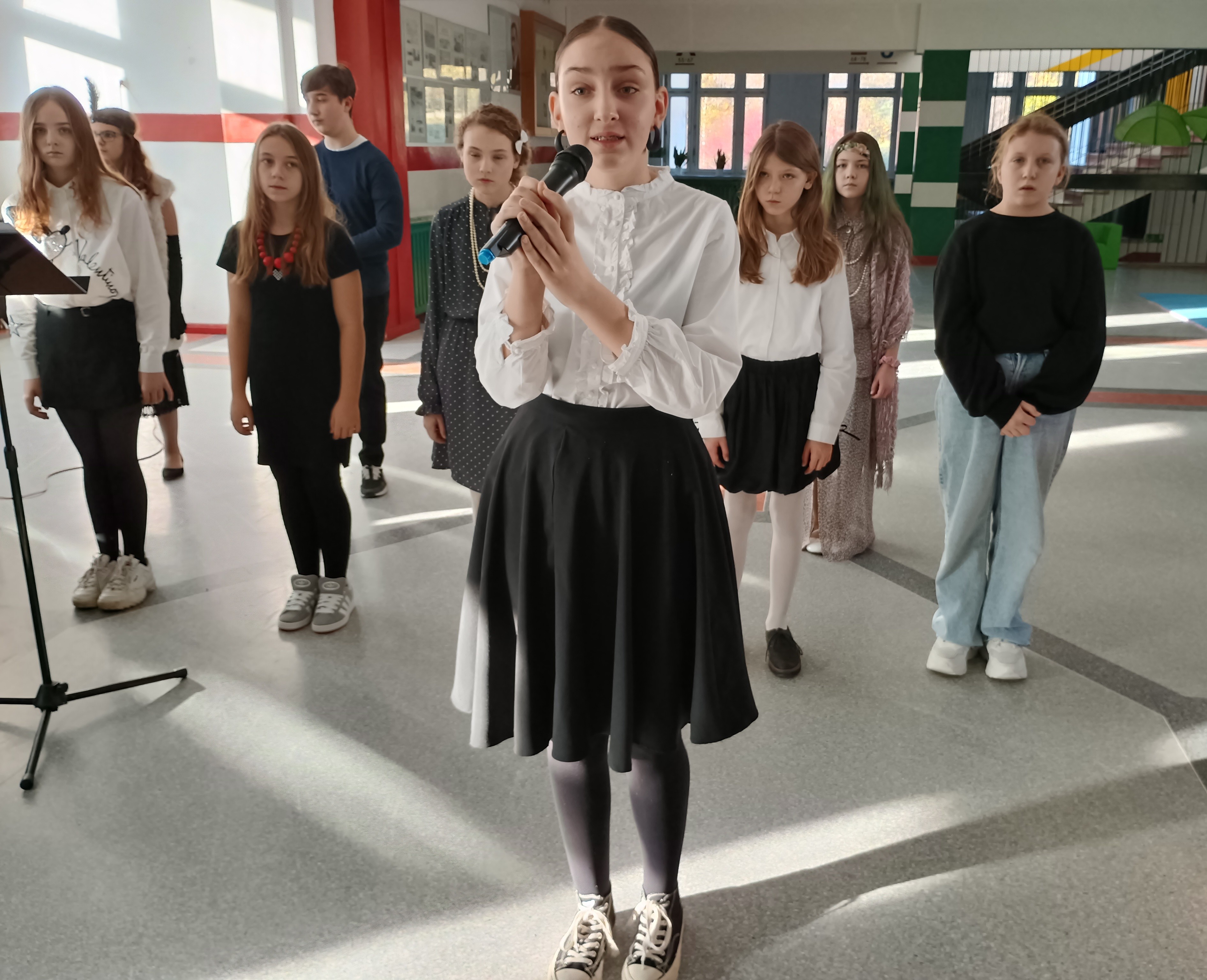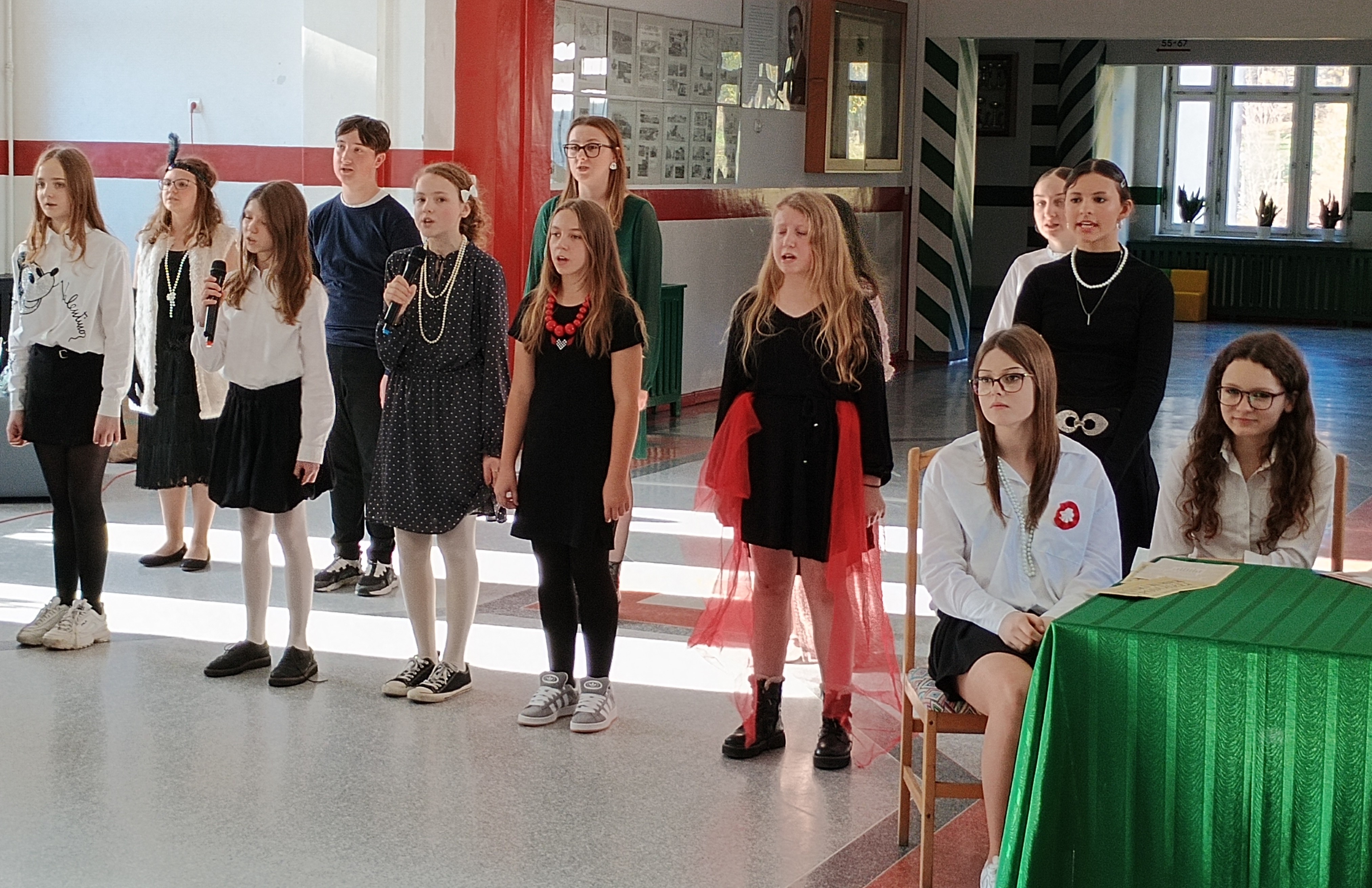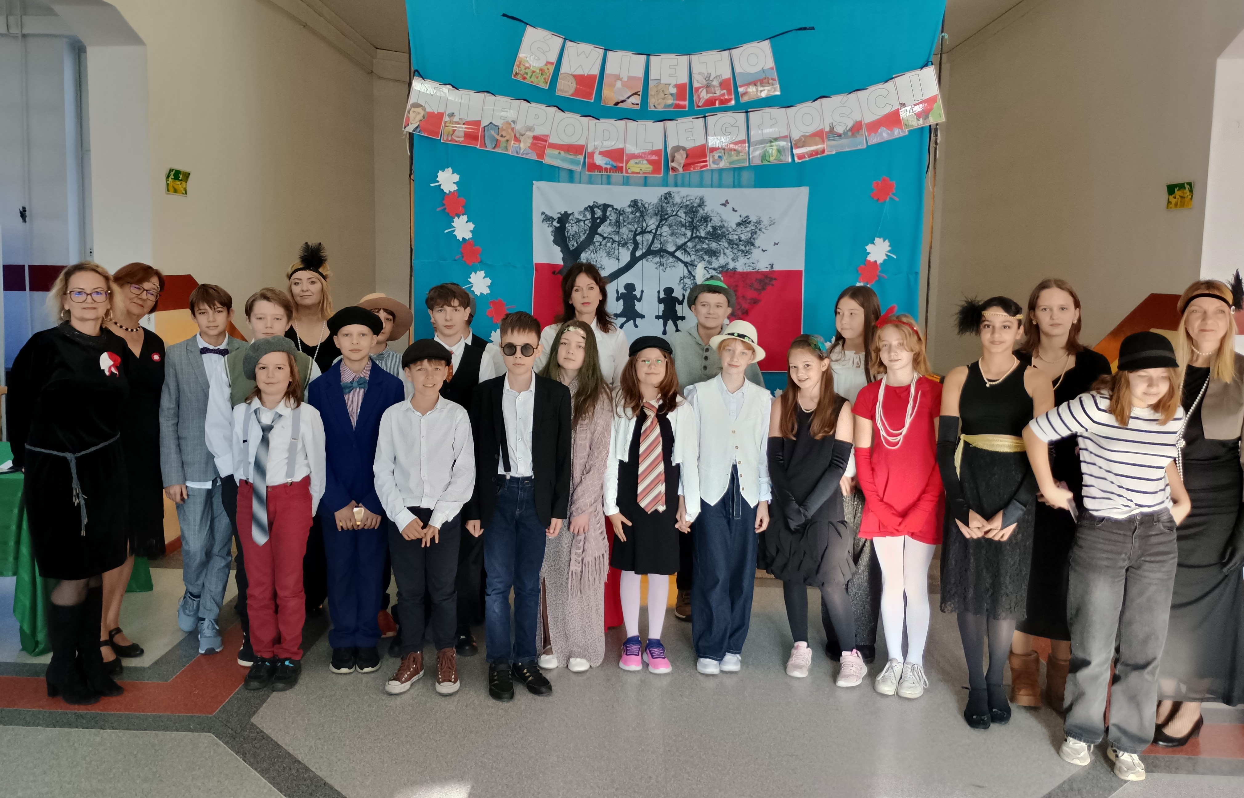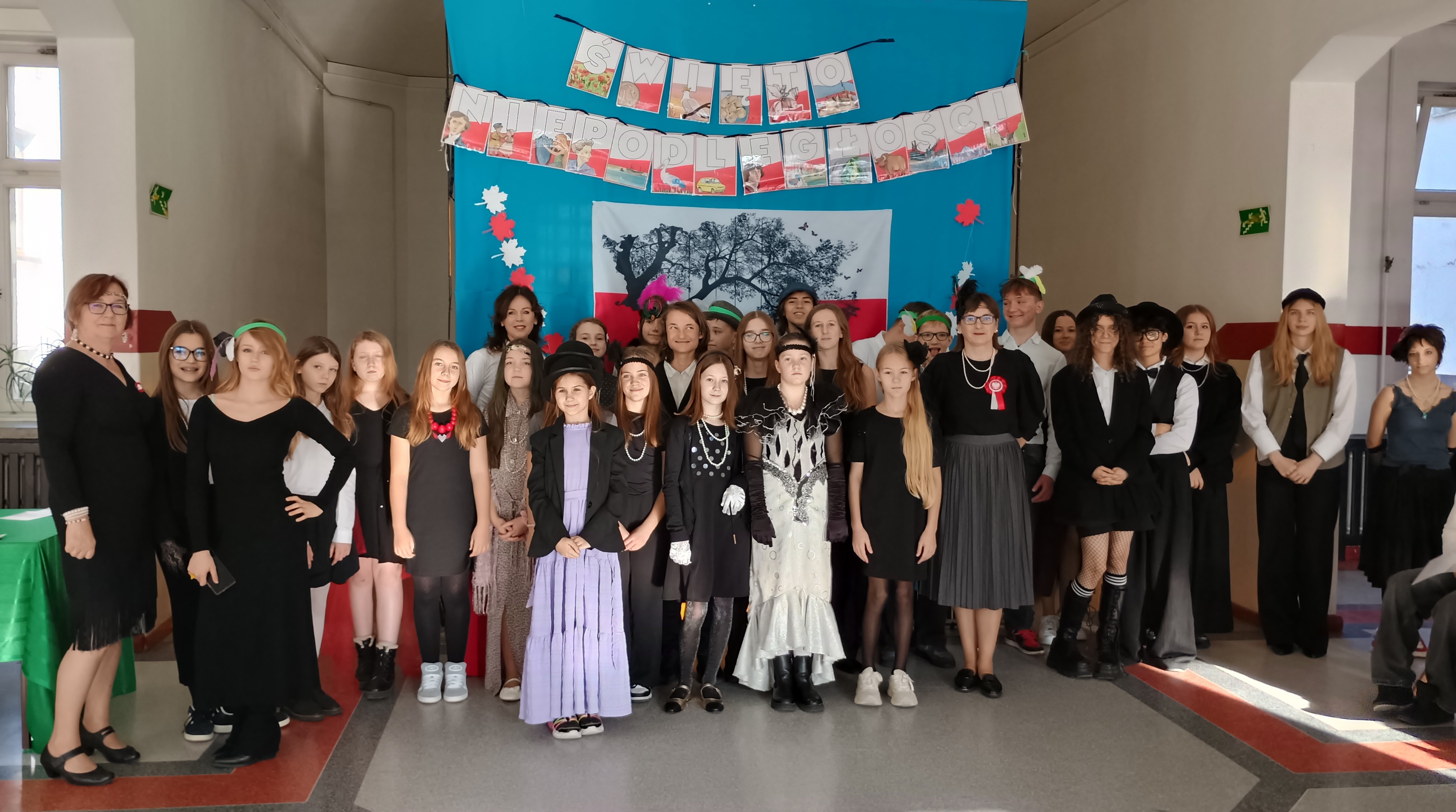 W piątek, 7 listopada przed Narodowym Świętem Niepodległości Polski w naszej szkole odbył się koncert pieśni patriotycznych w wykonaniu chóru pod kierunkiem pani Andżeliki Duczek. Z kolei uczniowie z kasy 7c przypomnieli okoliczności powstania niepodległego państwa polskiego 11 listopada 1918 roku. Tego dnia wielu uczniów zamieniło codzienne ubrania na stylizacje z lat 20. XX wieku, aby lepiej poczuć klimat tamtych dni, kiedy to Polska odzyskała wolność po 123 latach niewoli. O godzinie 11.11 cała społeczność szkolna wspólnie zaśpiewała „Mazurka Dąbrowskiego”. #SzkołaDoHymnu