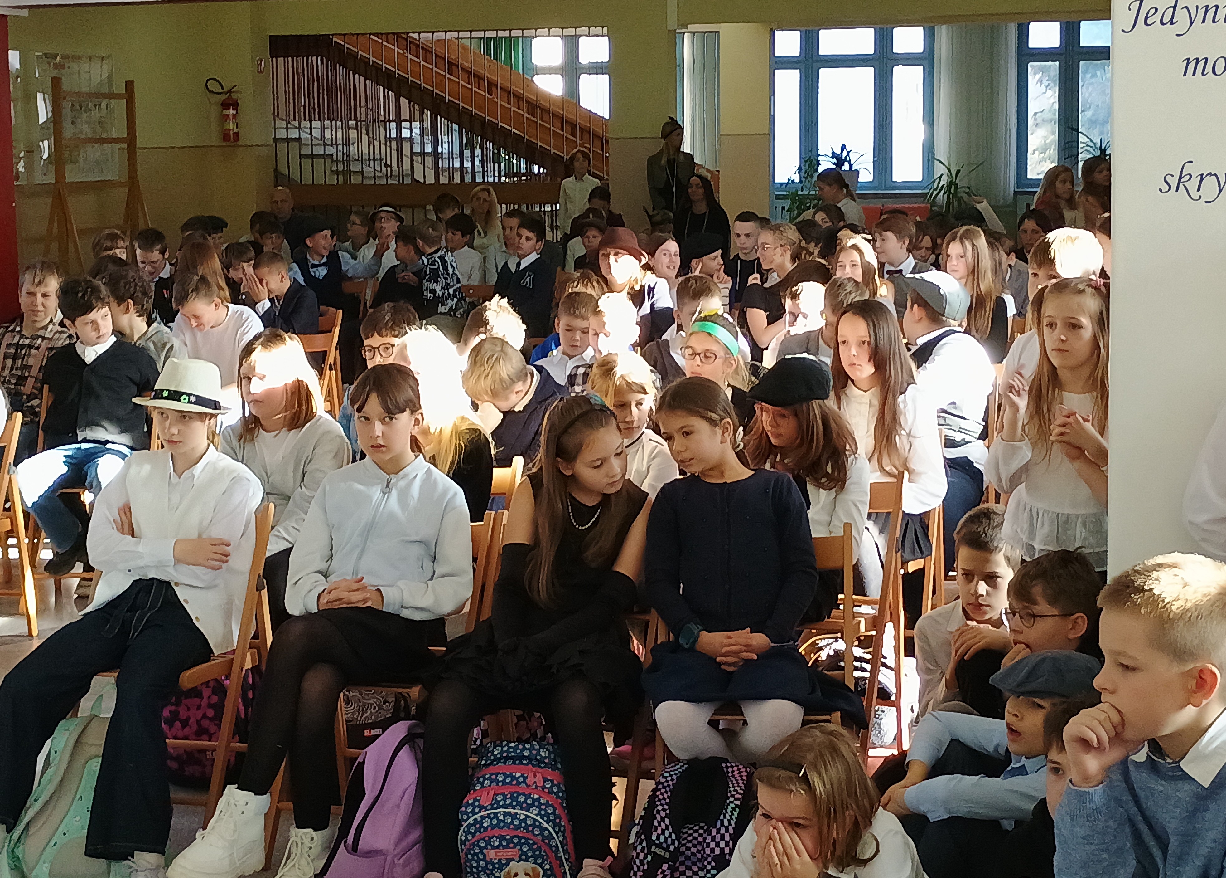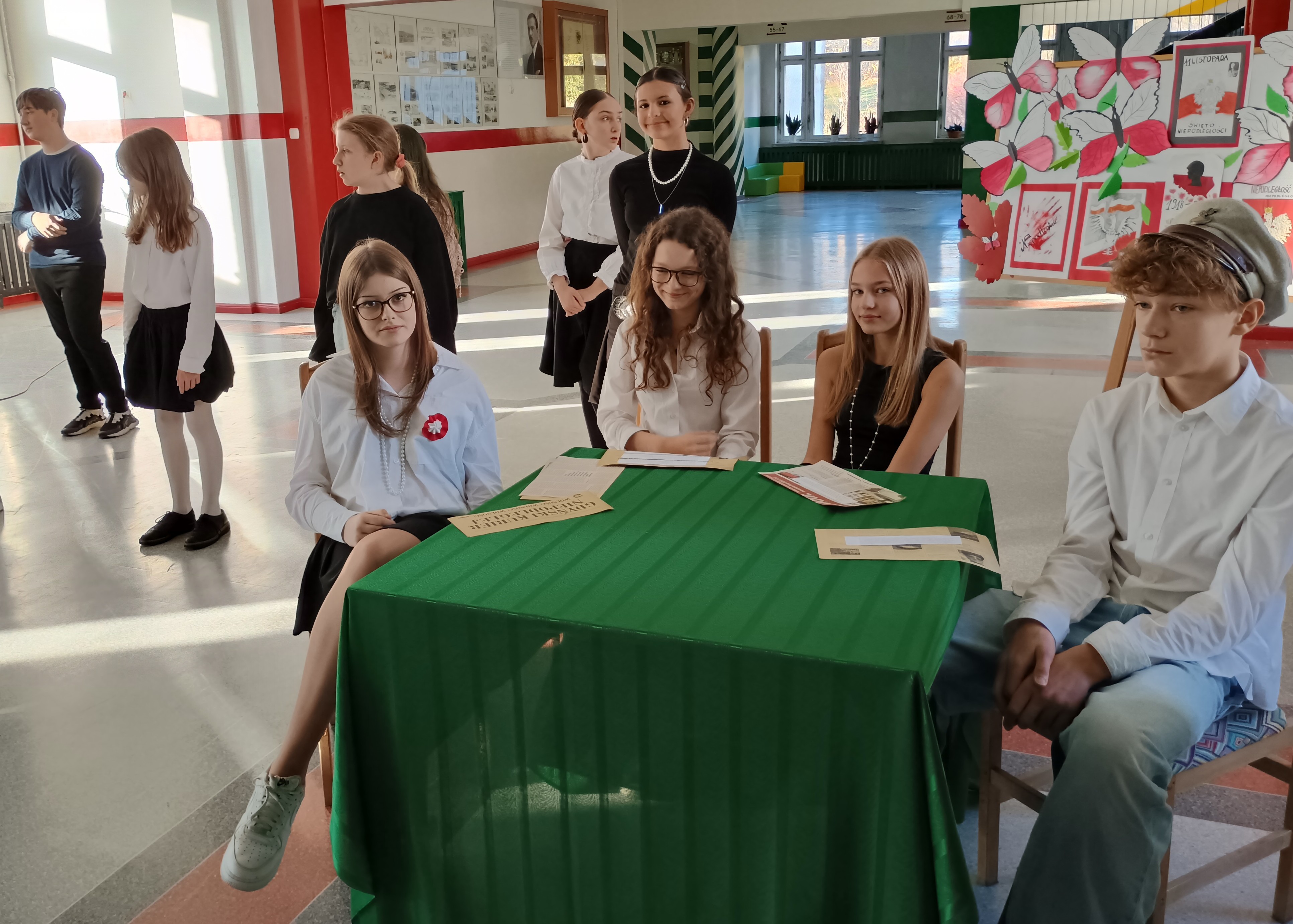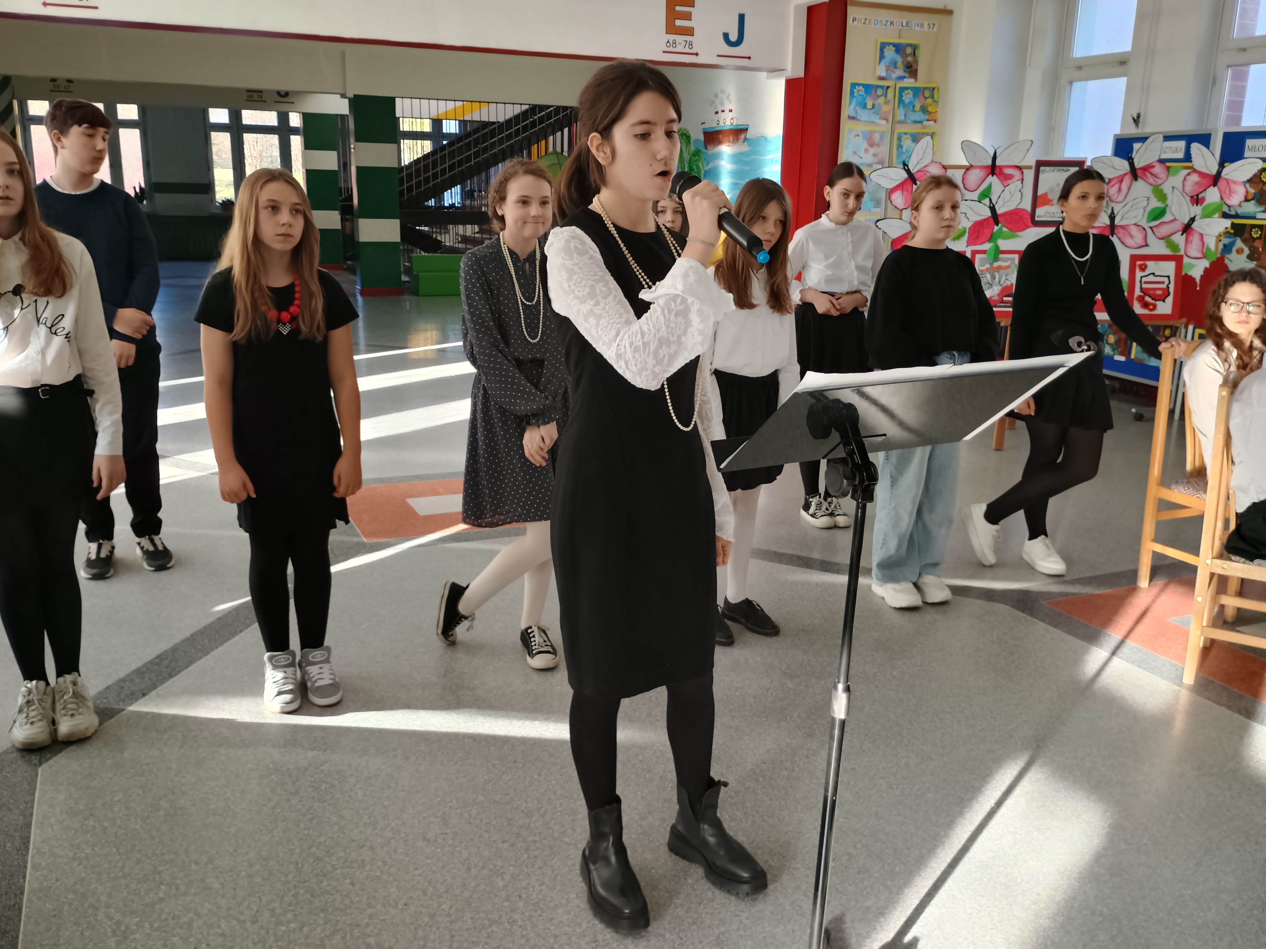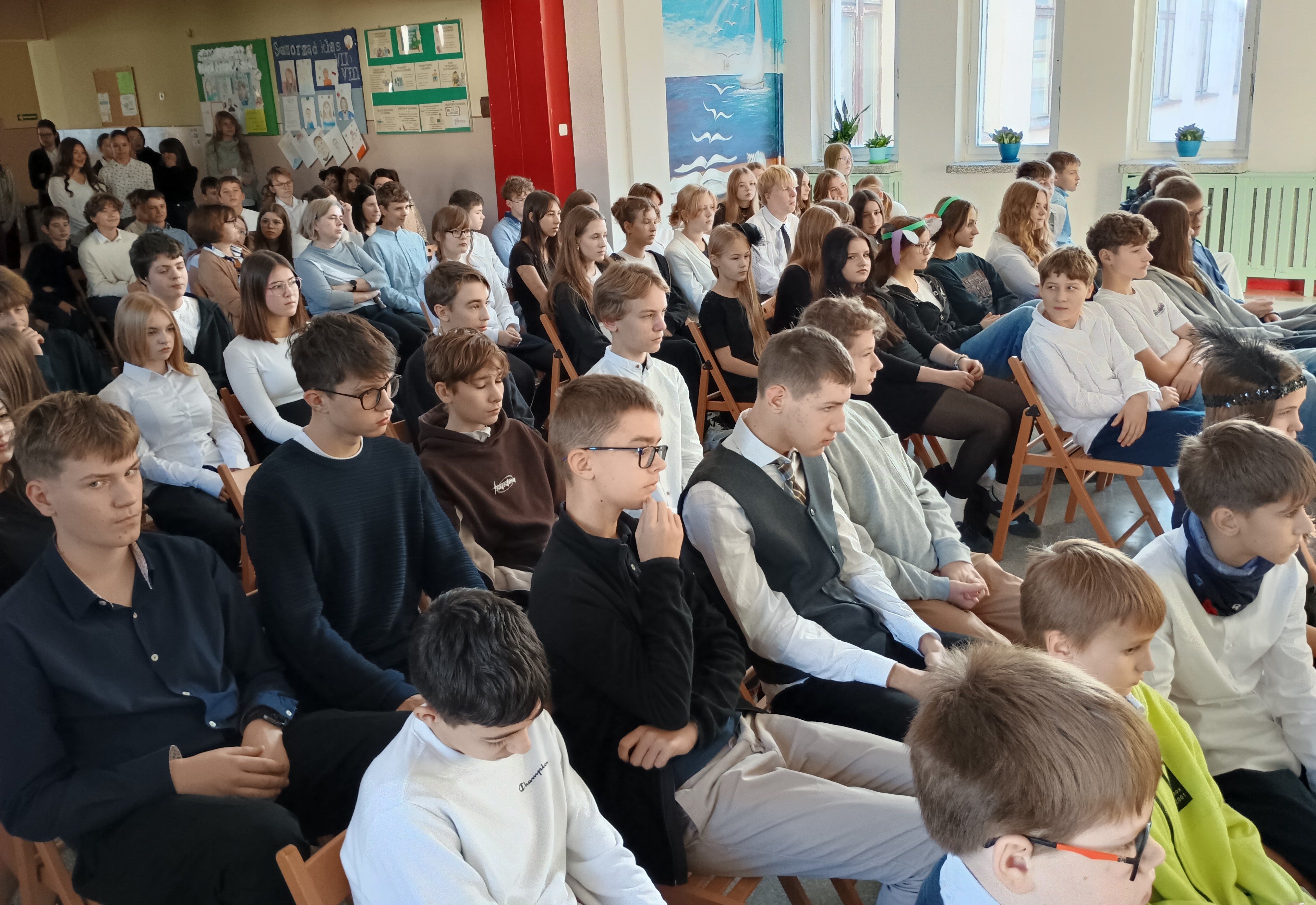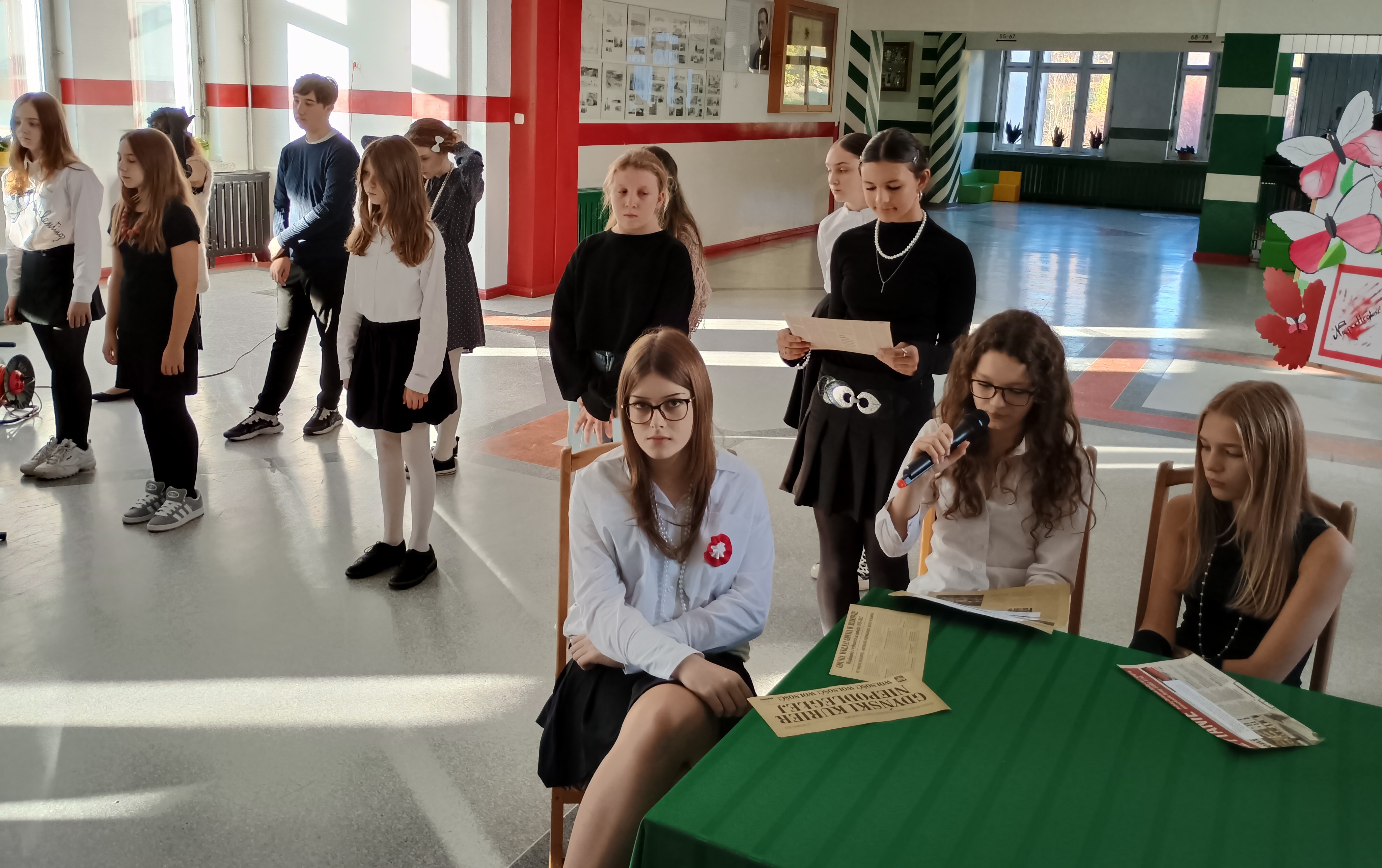 W piątek, 7 listopada przed Narodowym Świętem Niepodległości Polski w naszej szkole odbył się koncert pieśni patriotycznych w wykonaniu chóru pod kierunkiem pani Andżeliki Duczek. Z kolei uczniowie z kasy 7c przypomnieli okoliczności powstania niepodległego państwa polskiego 11 listopada 1918 roku. Tego dnia wielu uczniów zamieniło codzienne ubrania na stylizacje z lat 20. XX wieku, aby lepiej poczuć klimat tamtych dni, kiedy to Polska odzyskała wolność po 123 latach niewoli. O godzinie 11.11 cała społeczność szkolna wspólnie zaśpiewała „Mazurka Dąbrowskiego”. #SzkołaDoHymnu