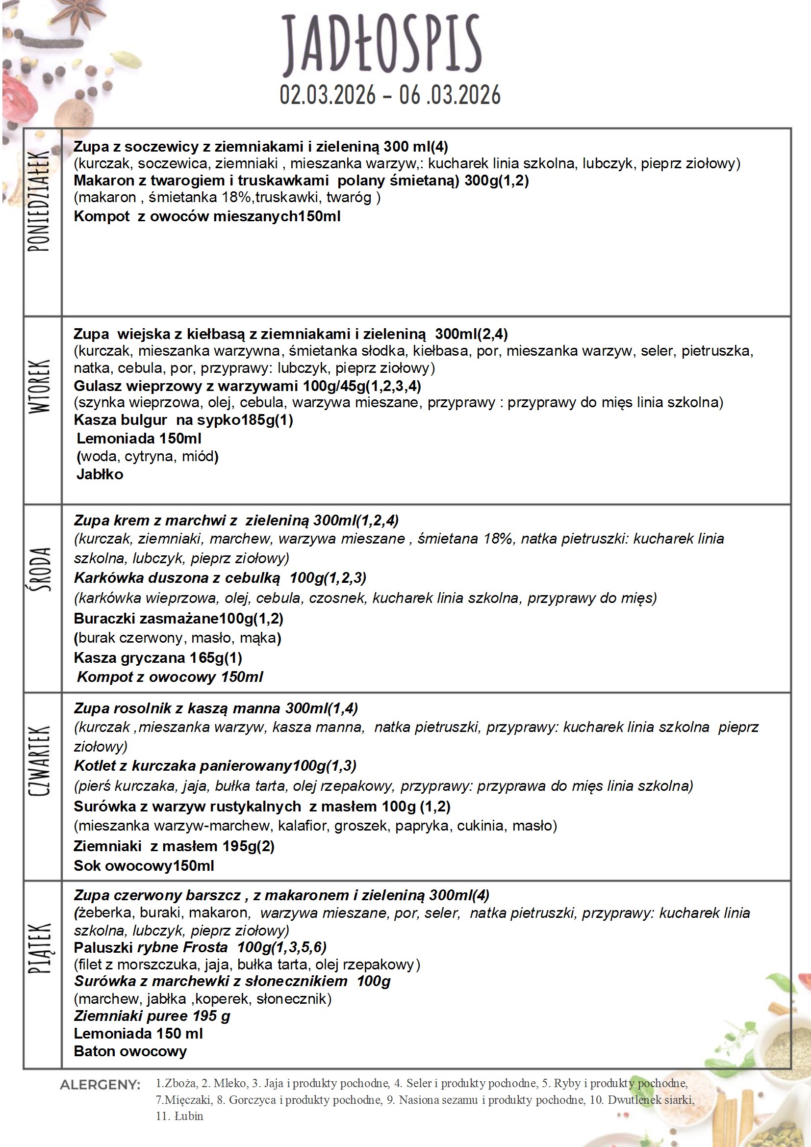 Wpłaty za obiady na marzec 2026r.