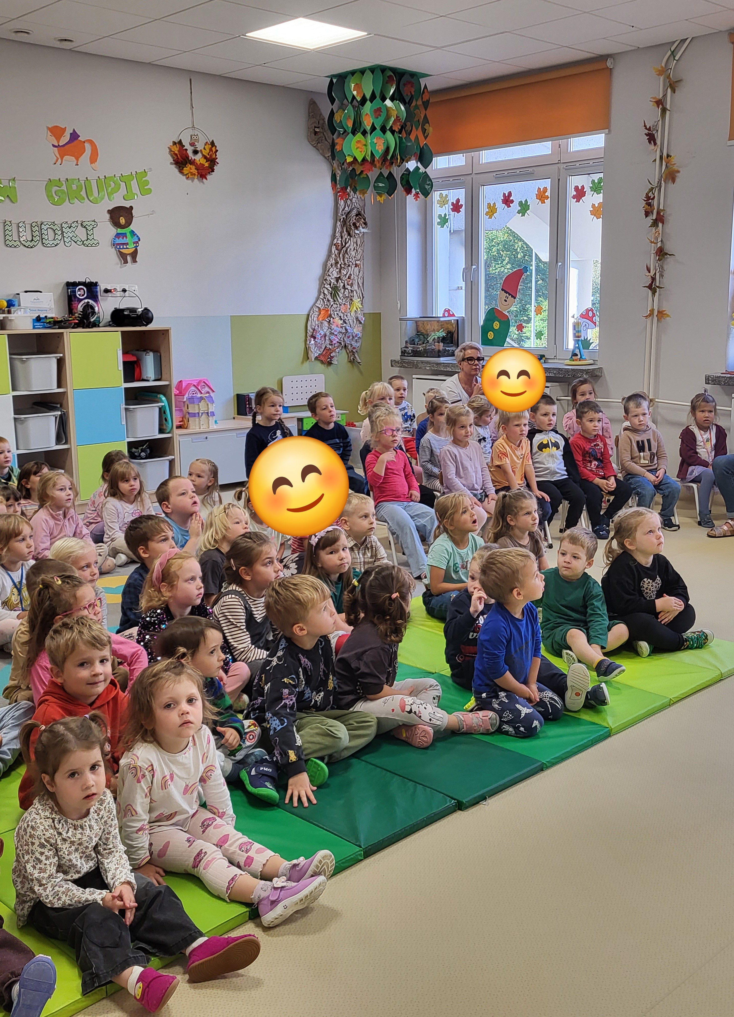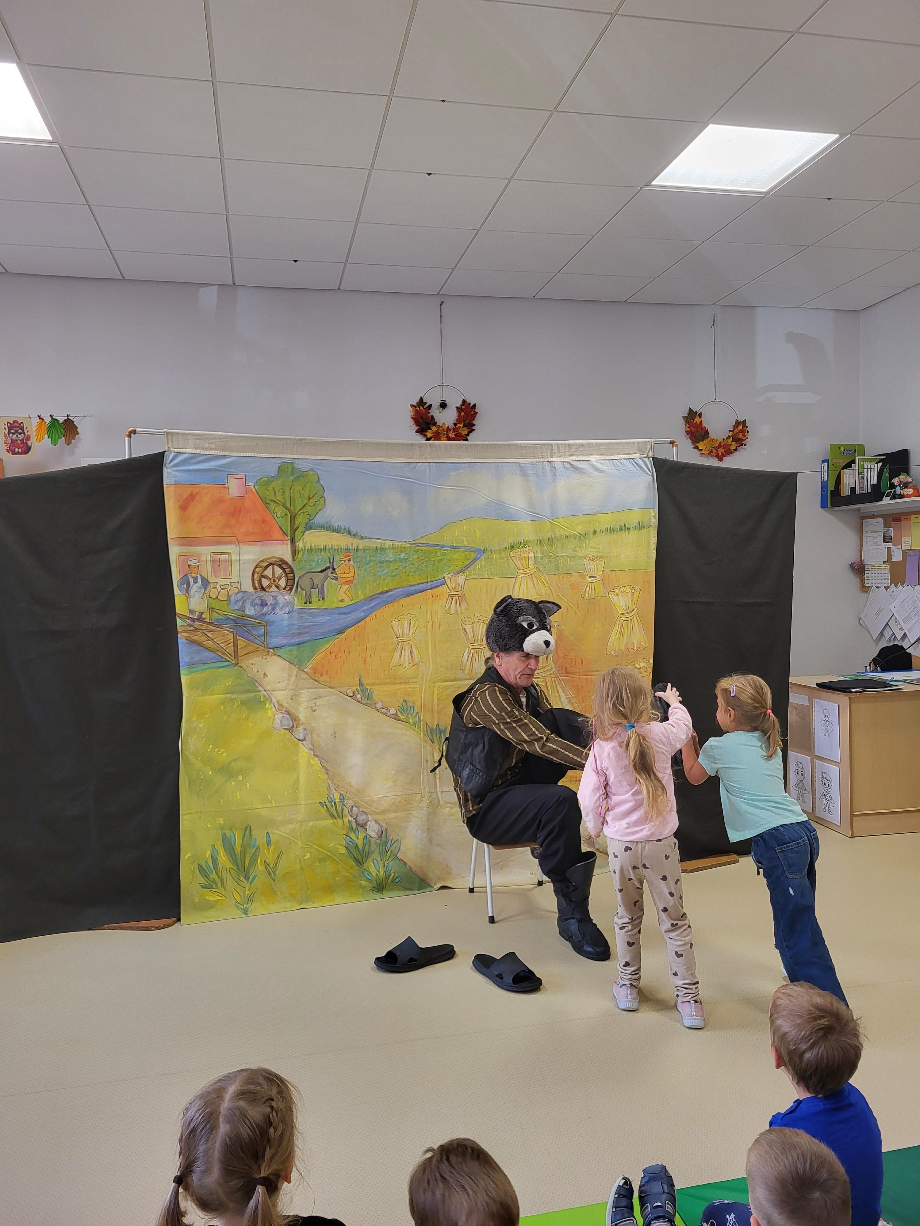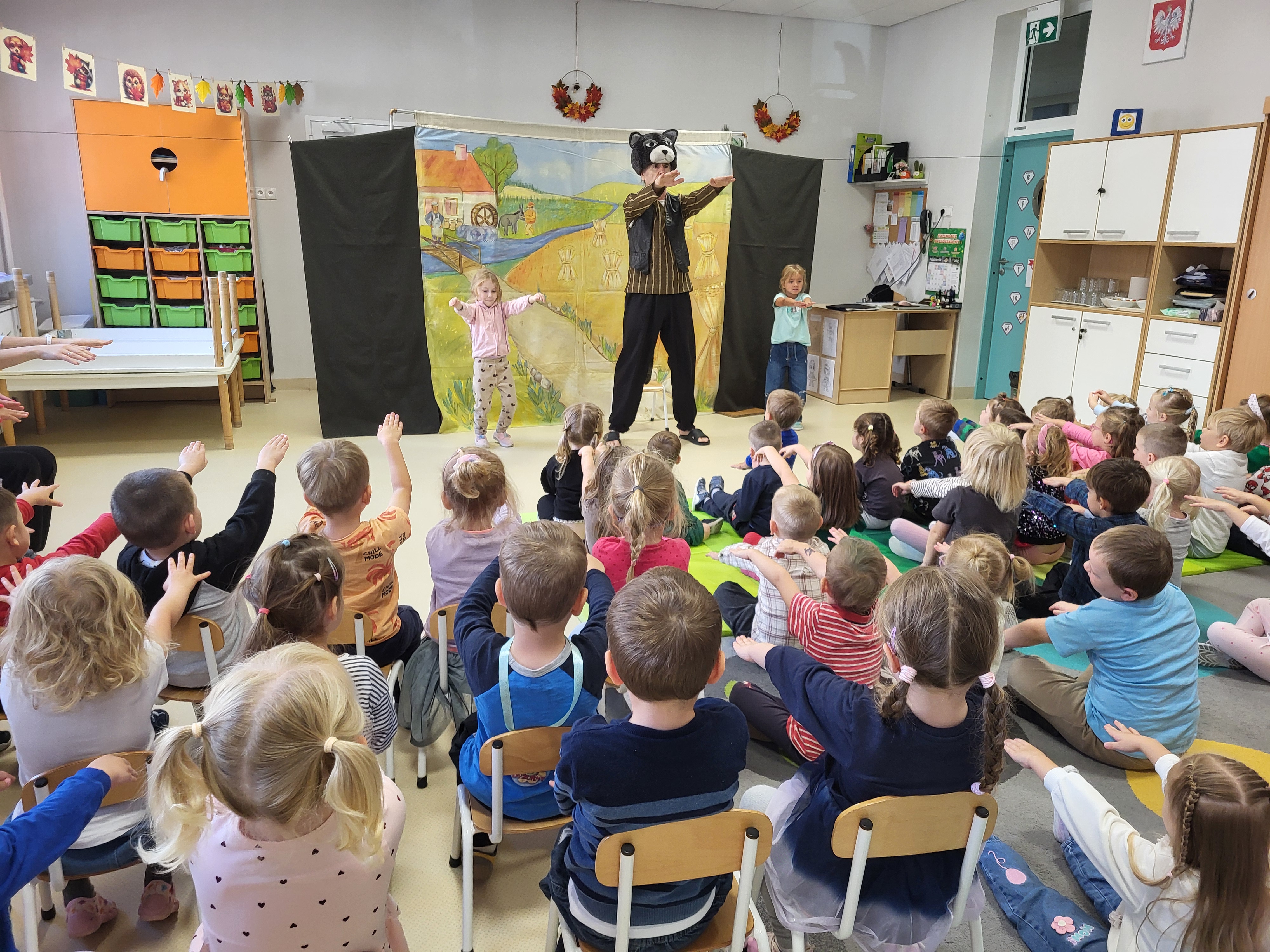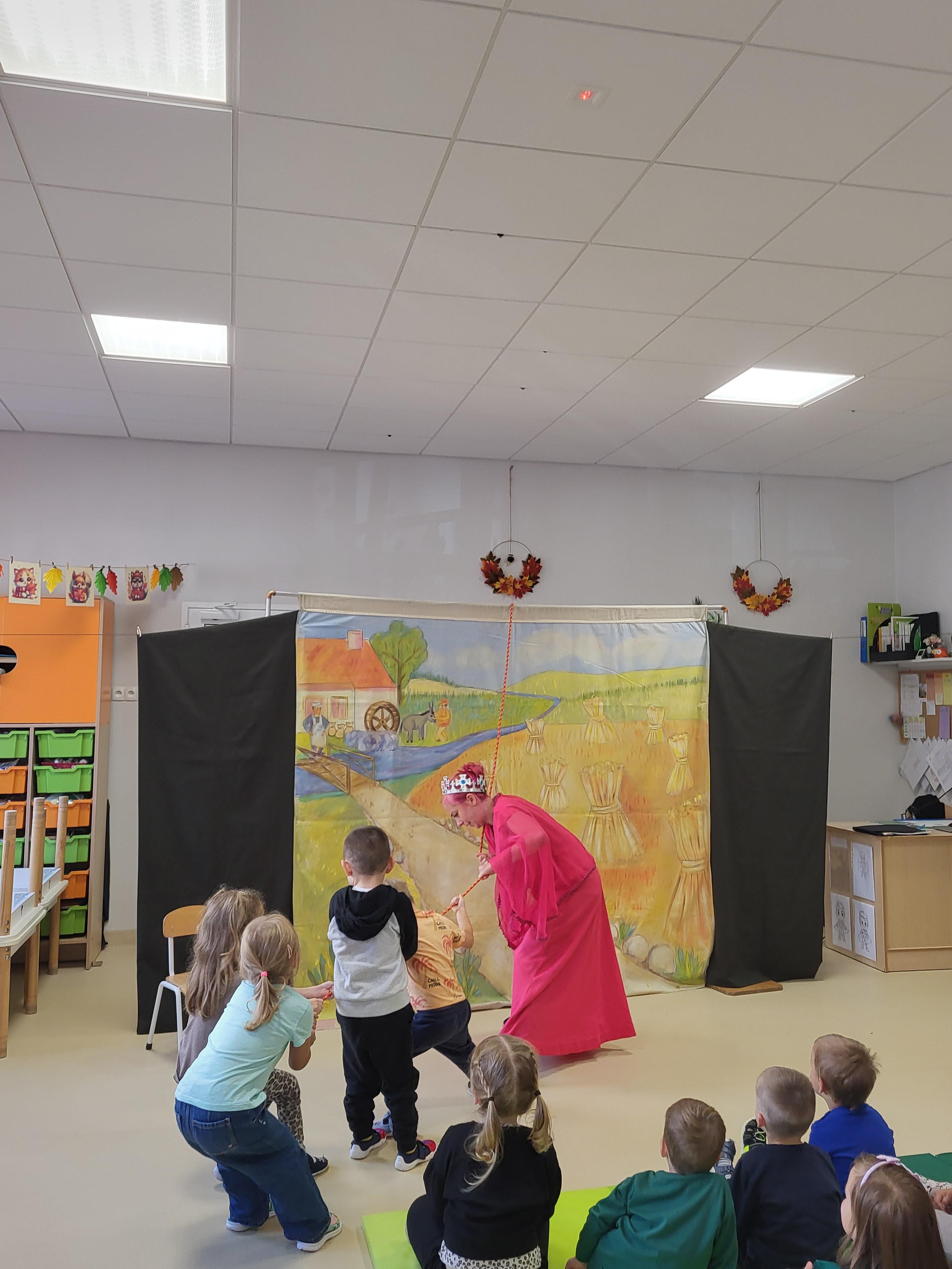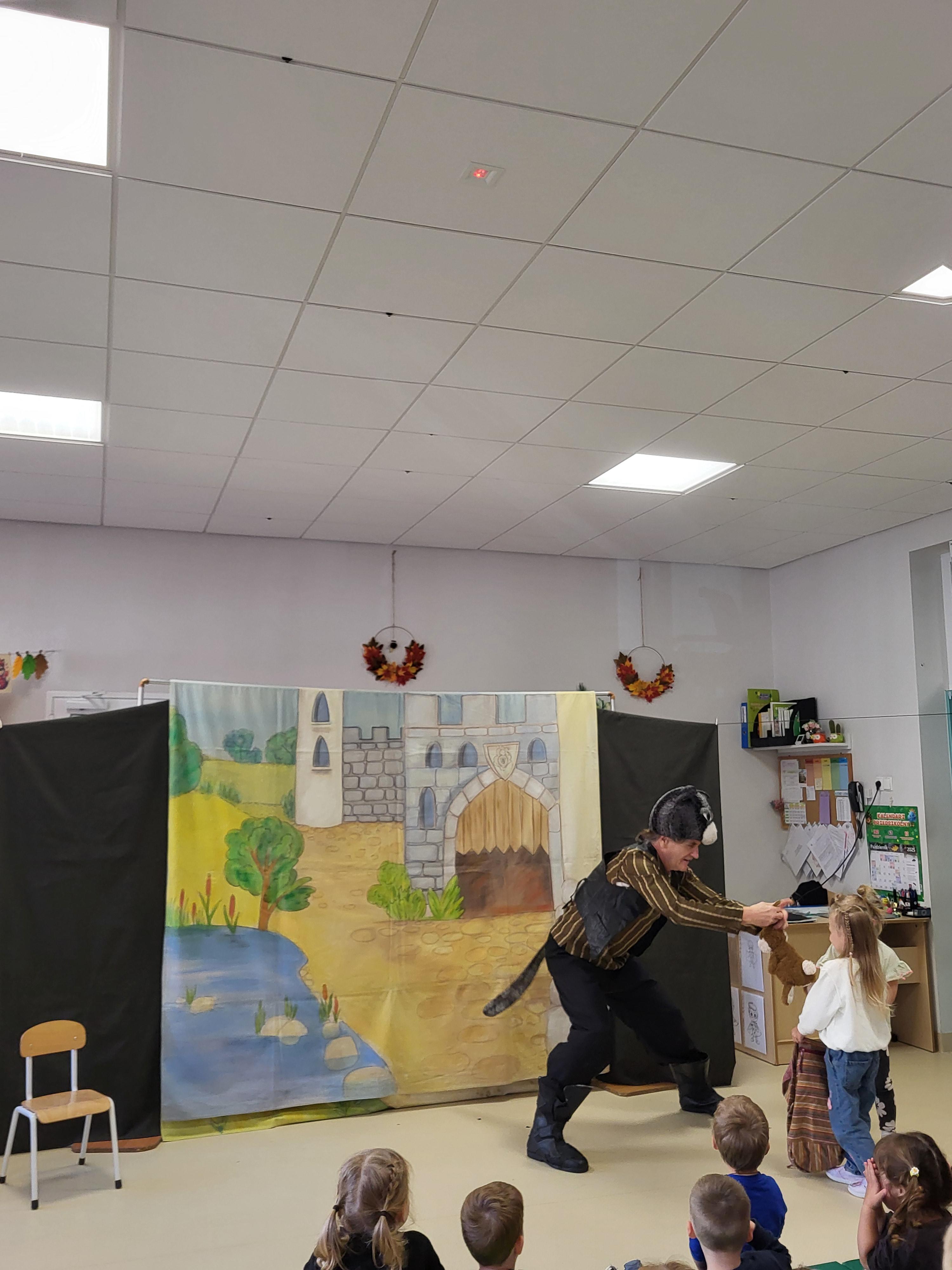 02.10.25 r. w nasze przedszkole odwiedził teatr Duet z przedstawienie m pt. "Kot w butach". Myślą przewodnią spektaklu była przyjaźń oraz wiara we własne marzenia. Wszyscy widzowie, zarówno przedszkolaki, jak i nauczycielki śmiali się podczas tego wydarzenia do rozpuku. Serdecznie dziękujemy aktorom za wizytę.