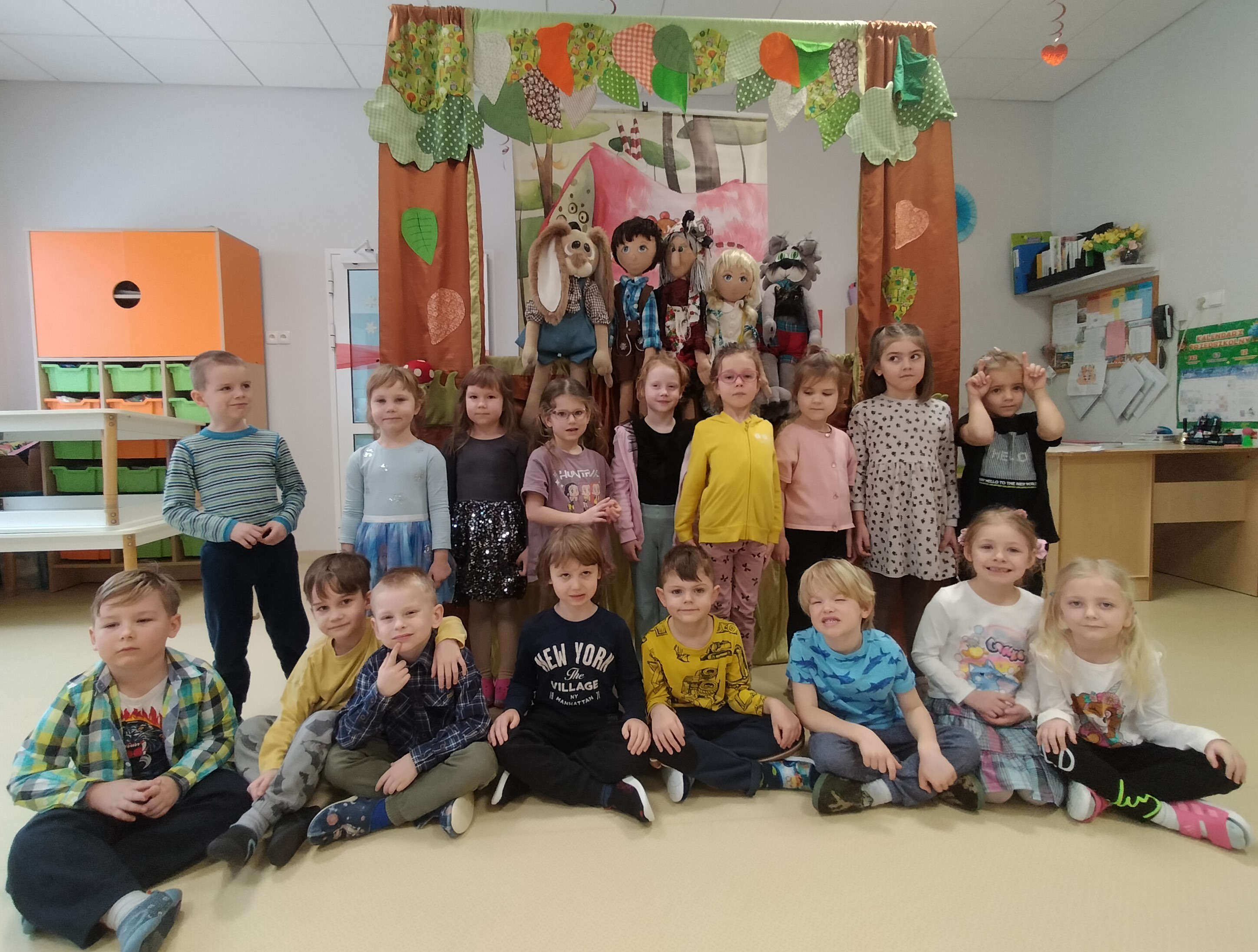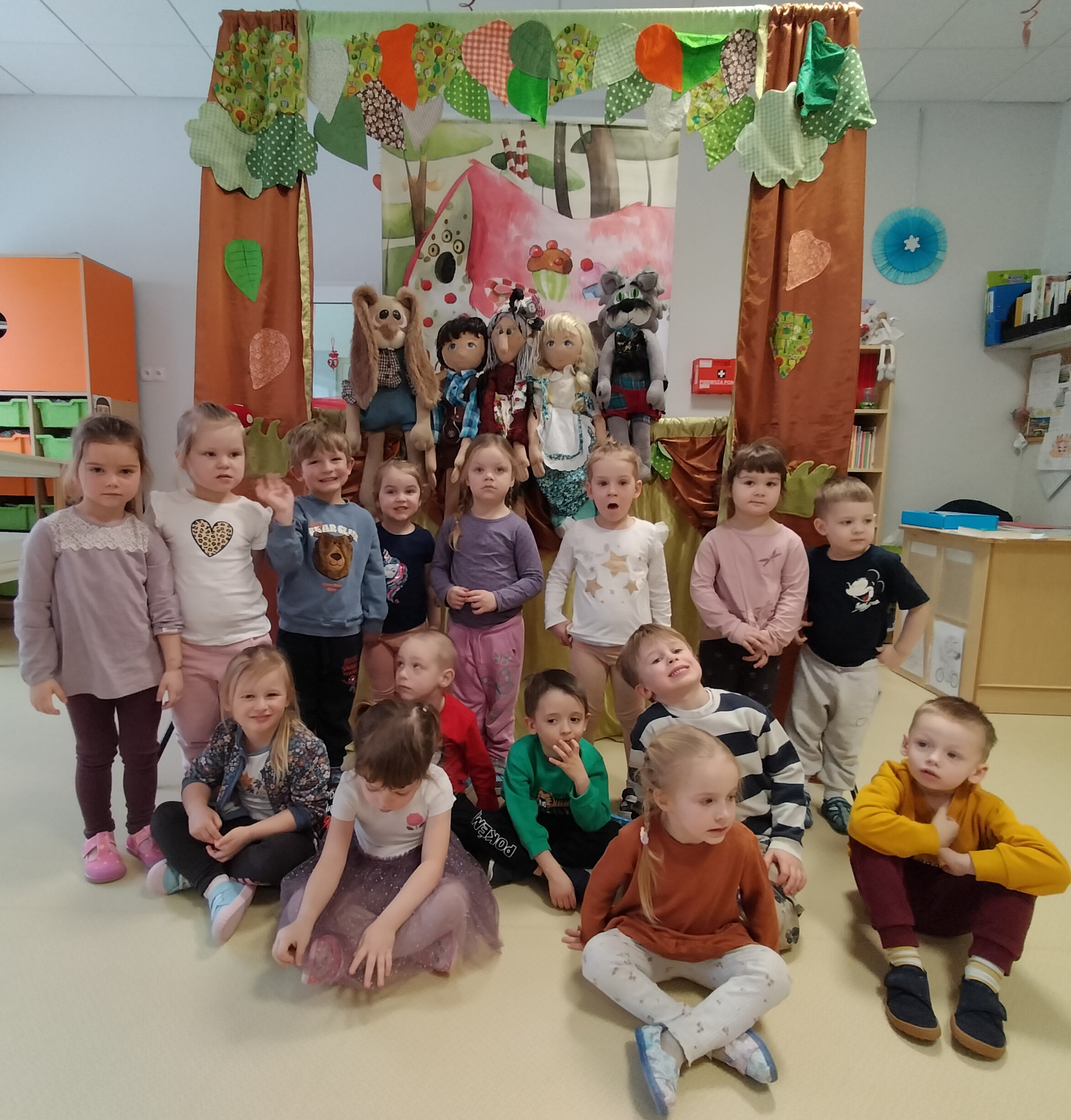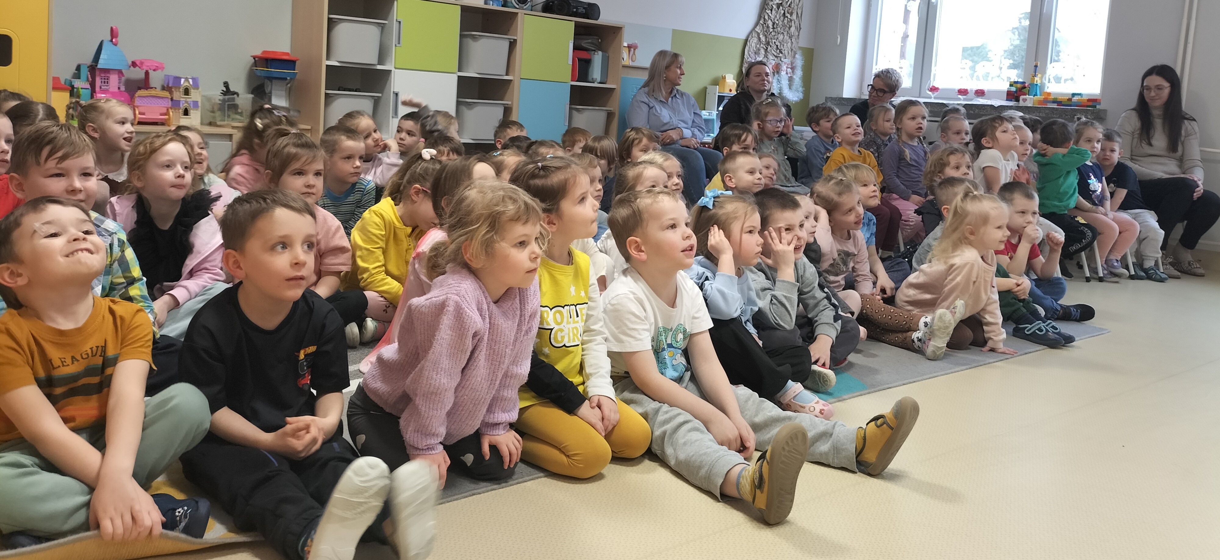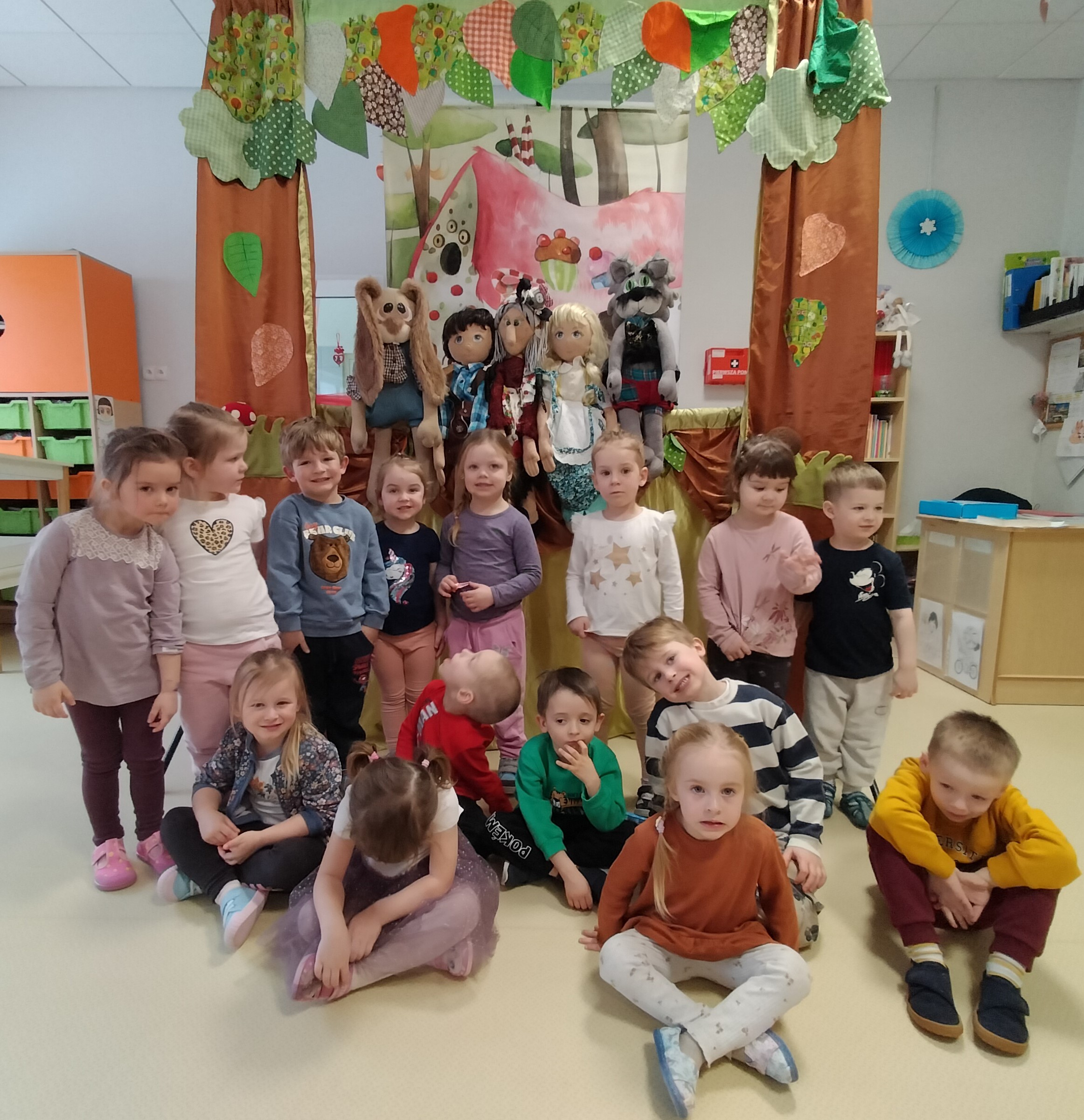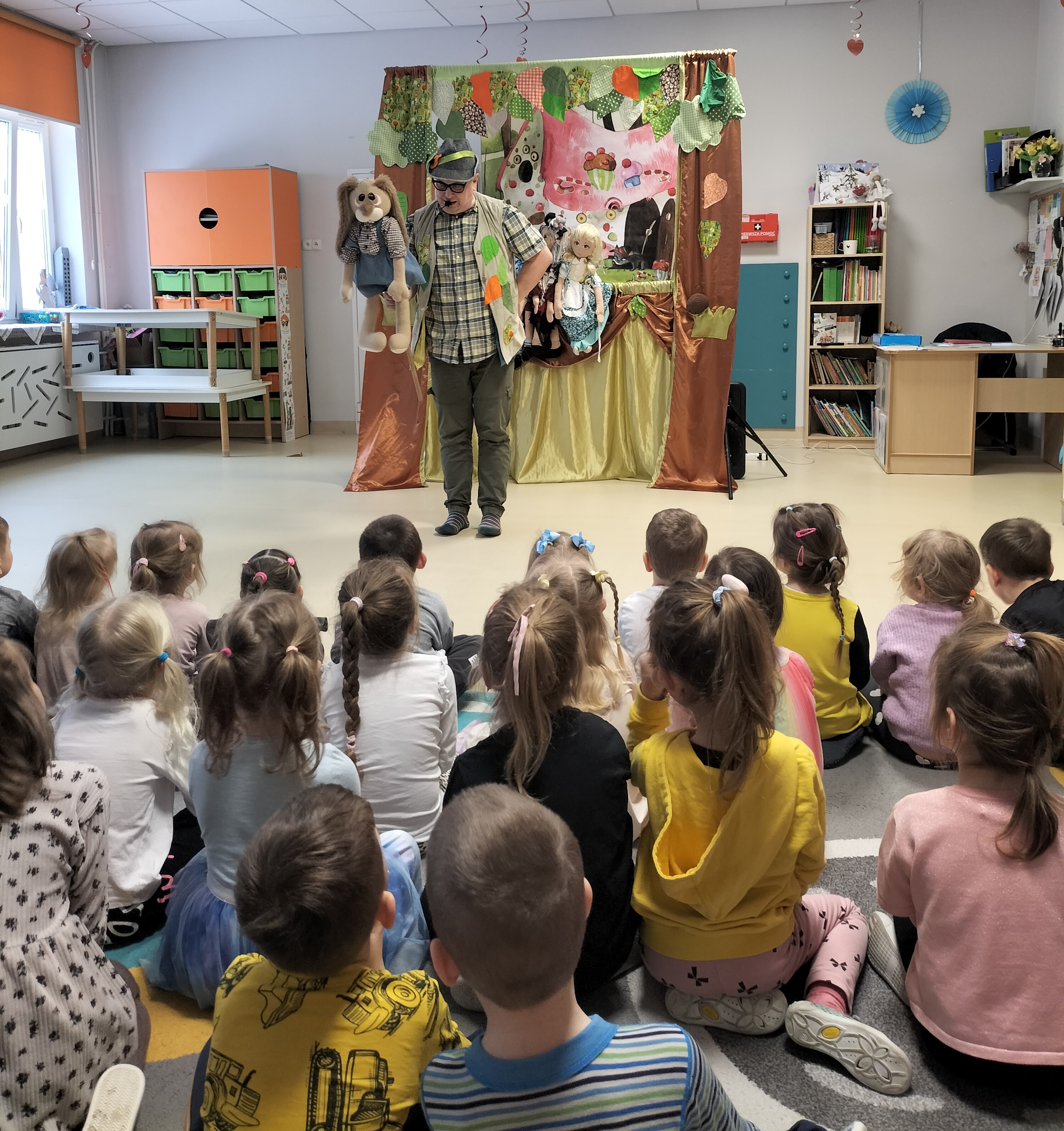 Poniedziałkowy ranek był pełen emocji i radości za sprawą występu Teatru LOKOMOTYWA. Dzieci miały okazję obejrzeć teatrzyk kukiełkowy „Jaś i Małgosia”, który od pierwszych chwil wprowadził je w niezwykły, leśny świat przygód.