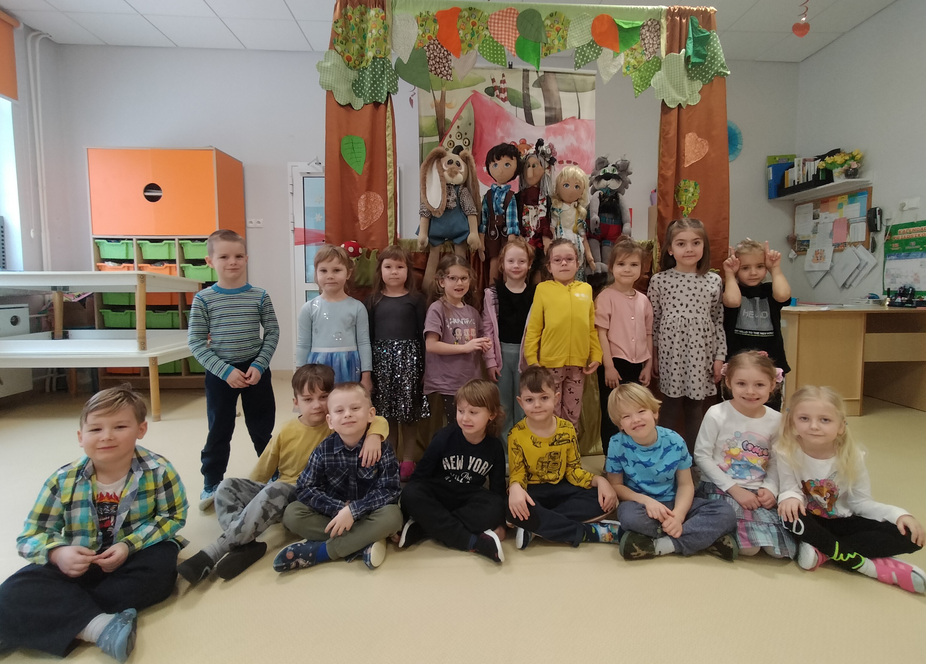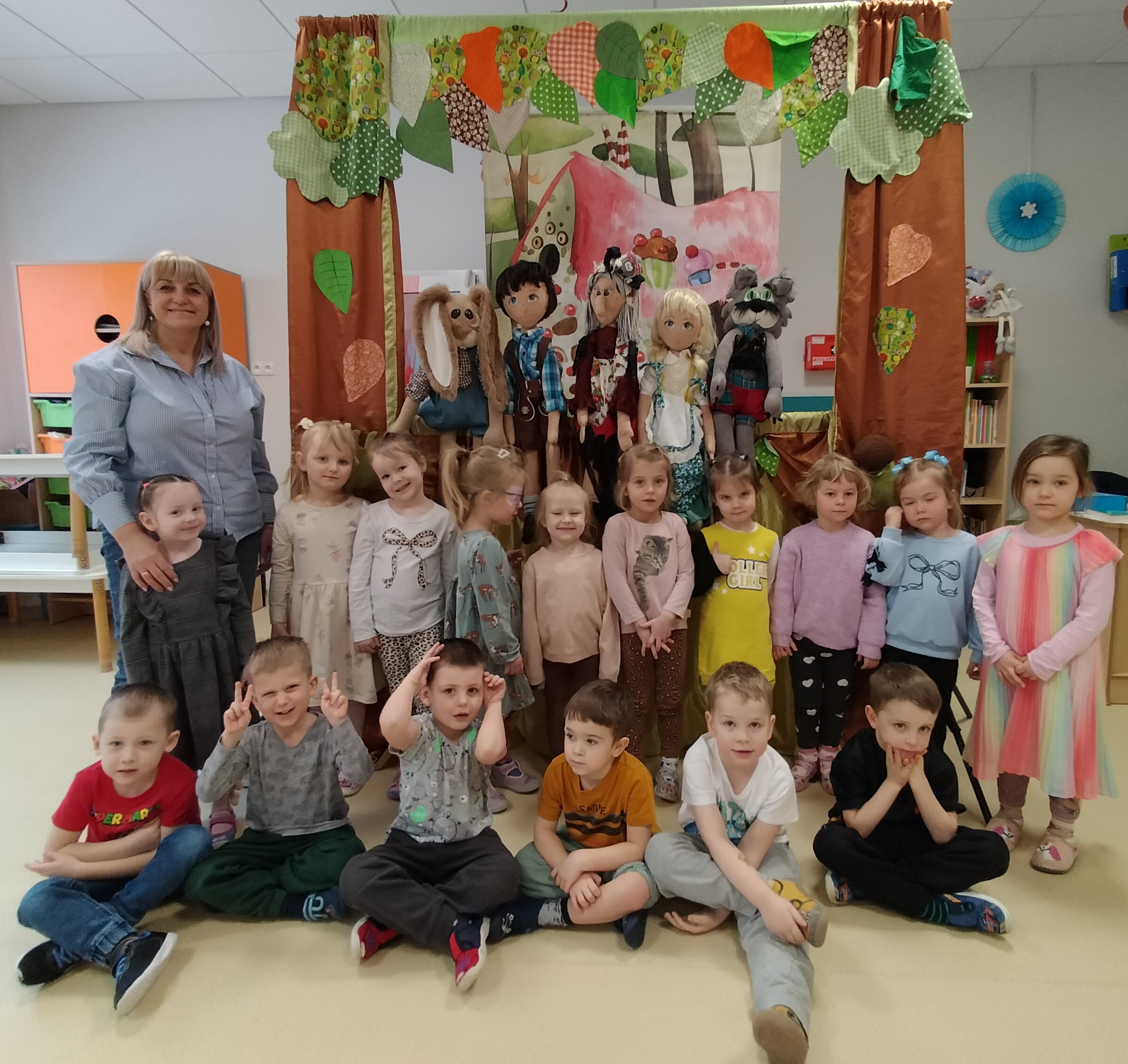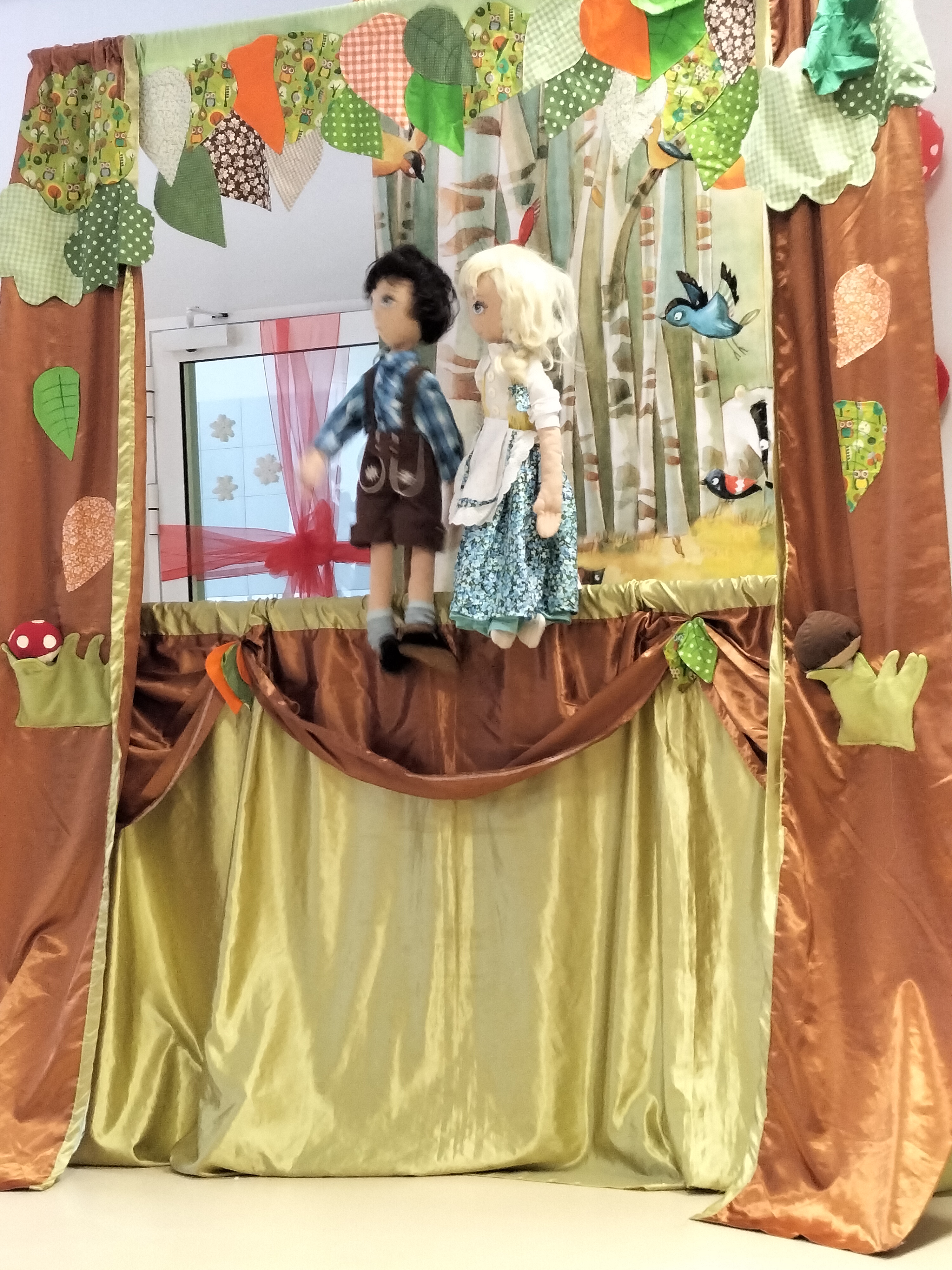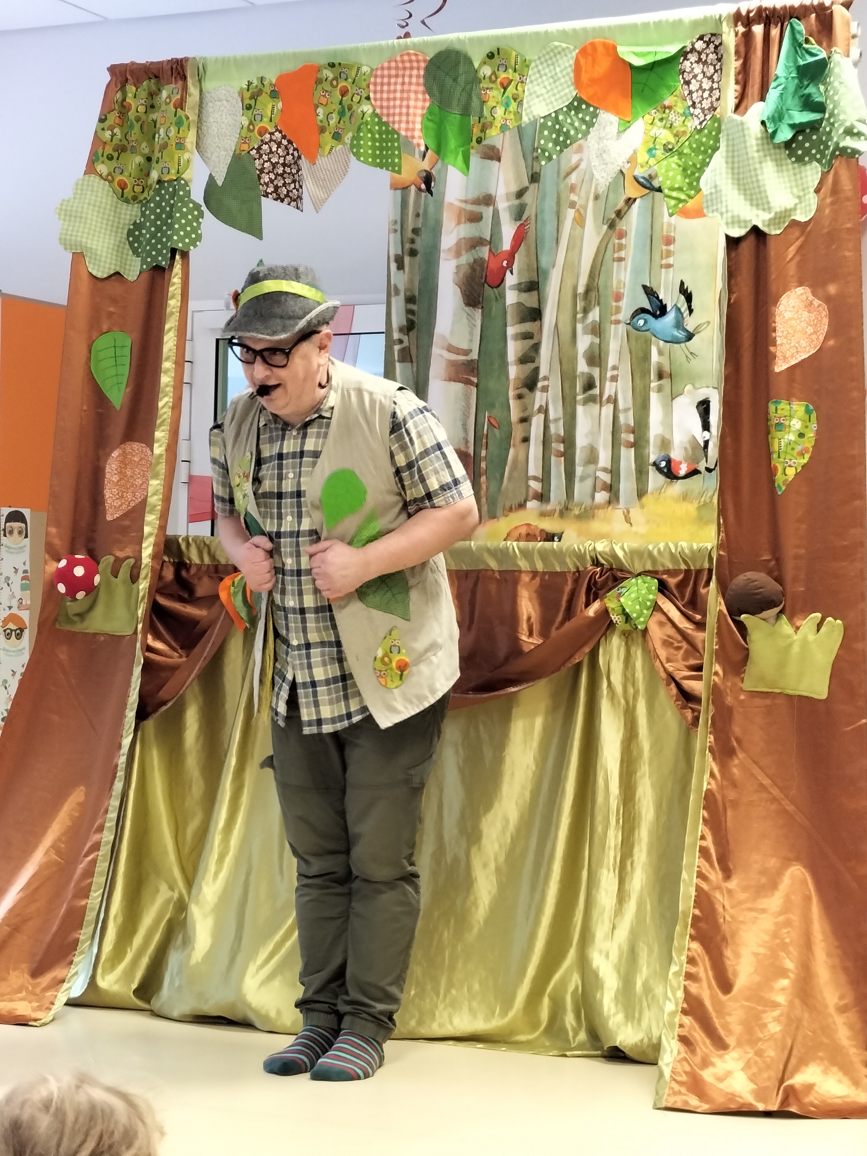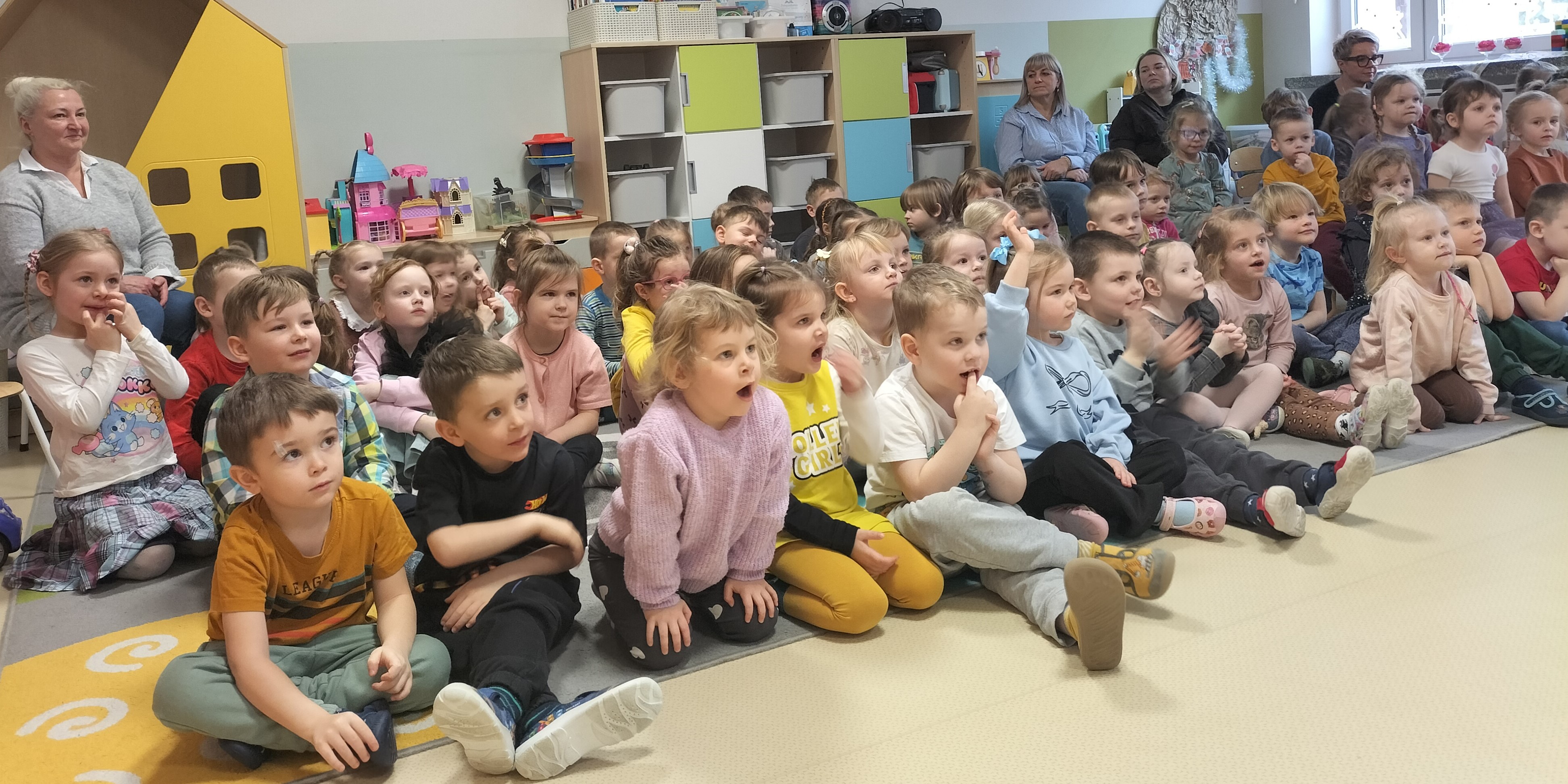 Poniedziałkowy ranek był pełen emocji i radości za sprawą występu Teatru LOKOMOTYWA. Dzieci miały okazję obejrzeć teatrzyk kukiełkowy „Jaś i Małgosia”, który od pierwszych chwil wprowadził je w niezwykły, leśny świat przygód.