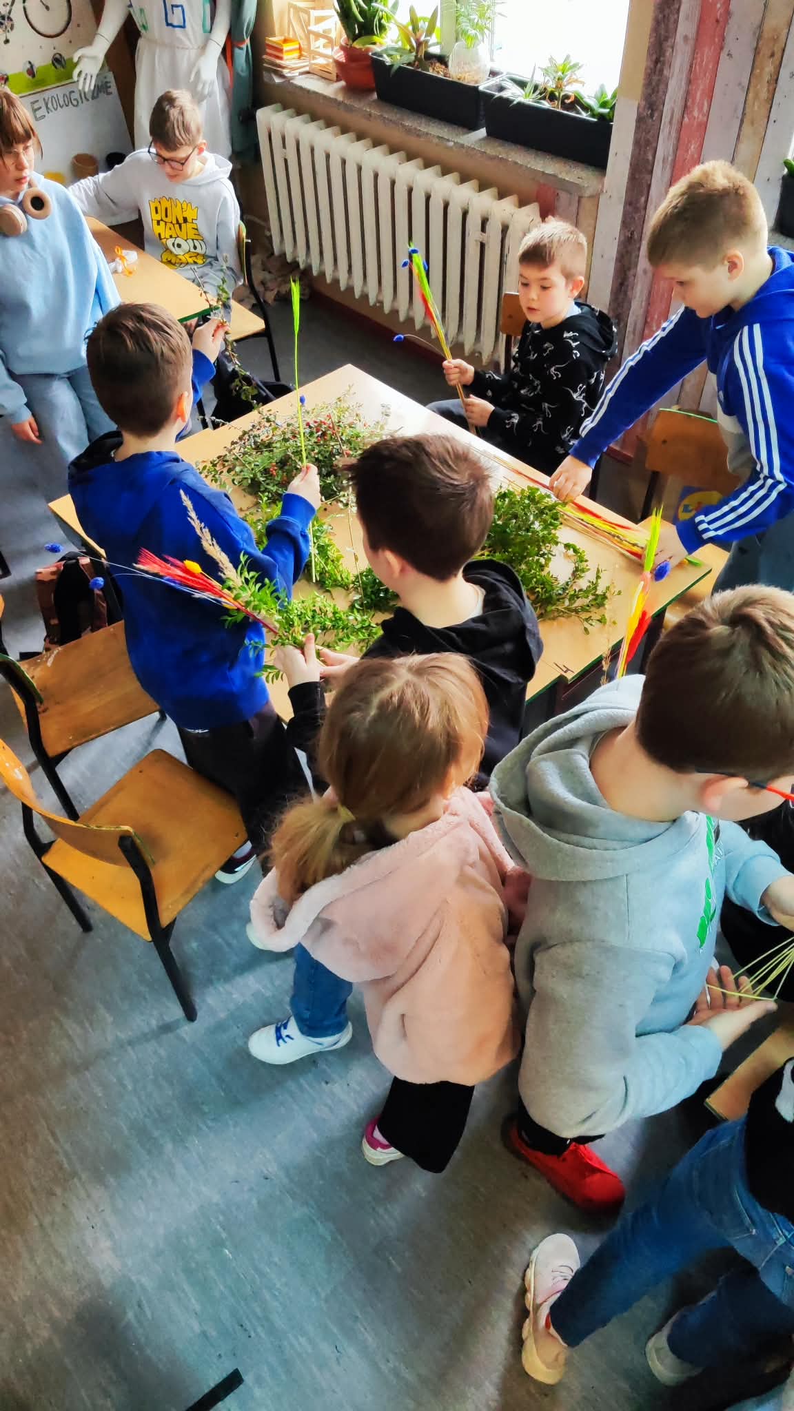 Dzięki zaangażowaniu Rodziców, każdy uczeń mógł samodzielnie wykonać przepiękną palemkę wielkanocną.