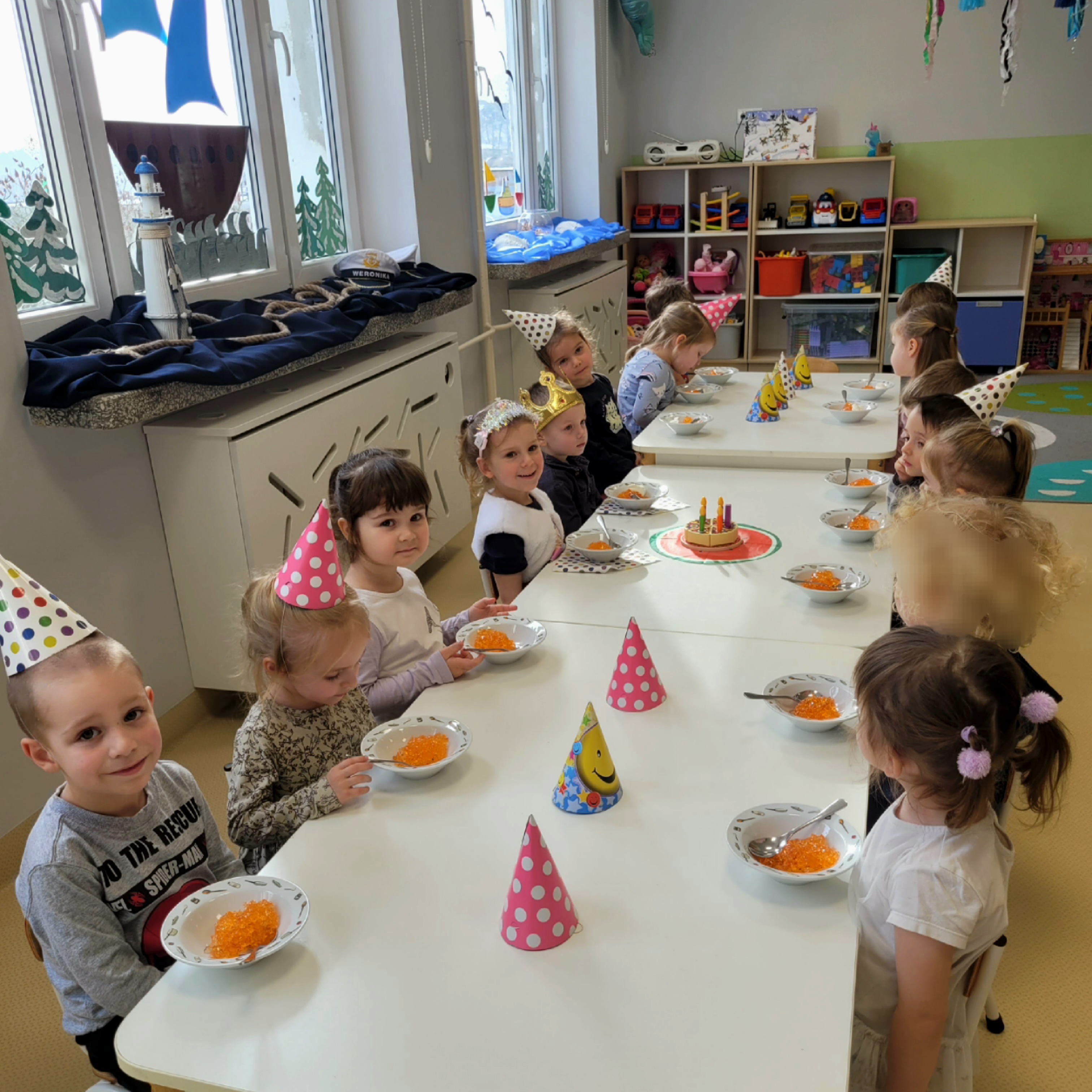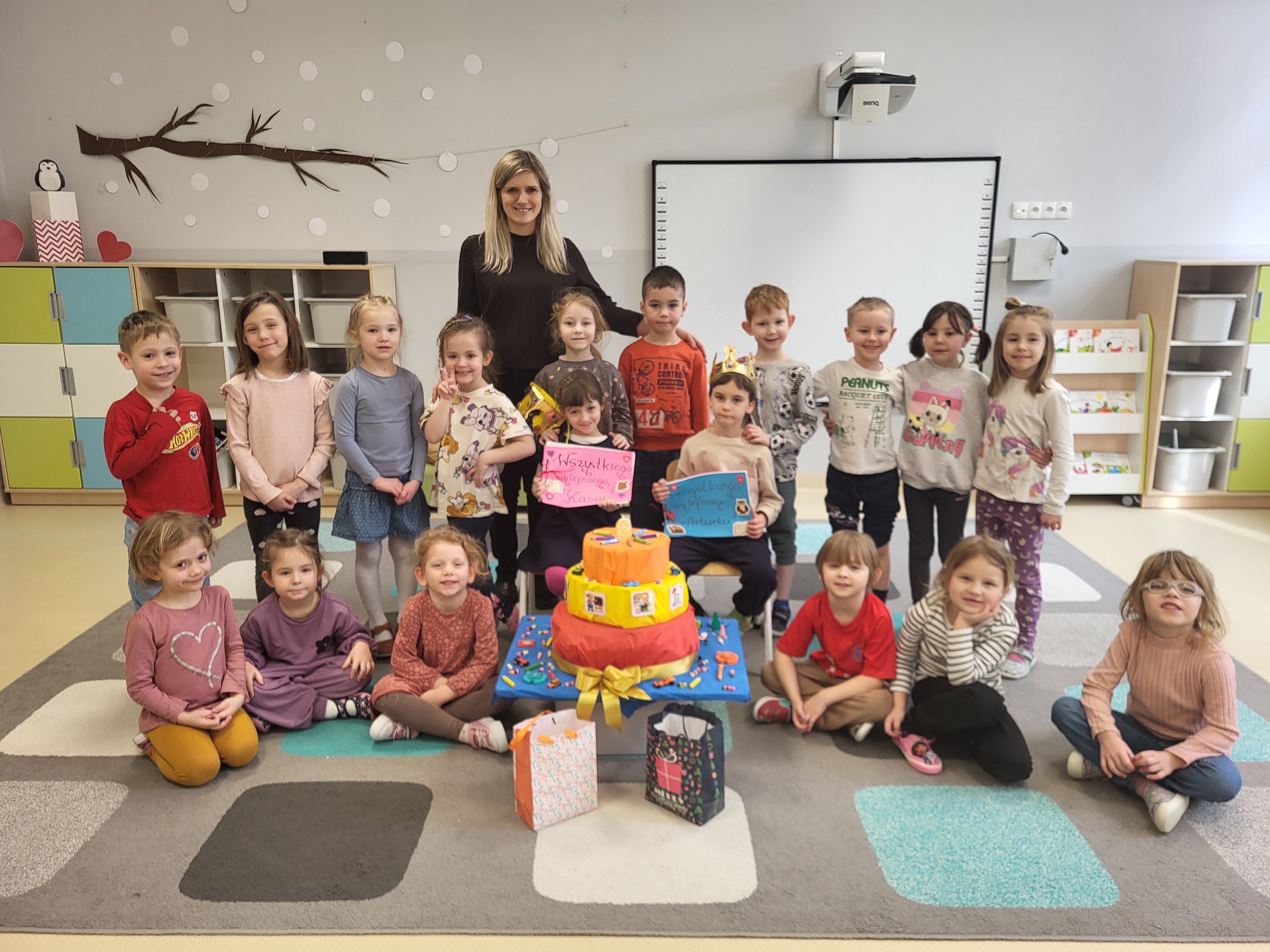 W ostatni piątek miesiąca, we wszystkich grupach naszego przedszkola, świętowaliśmy urodziny Dzieci urodzonych w lutym. Był to wyjątkowy czas pełen serdecznych życzeń, wspólnie odśpiewanego „100 lat”, słodkiego poczęstunku oraz radosnej zabawy.