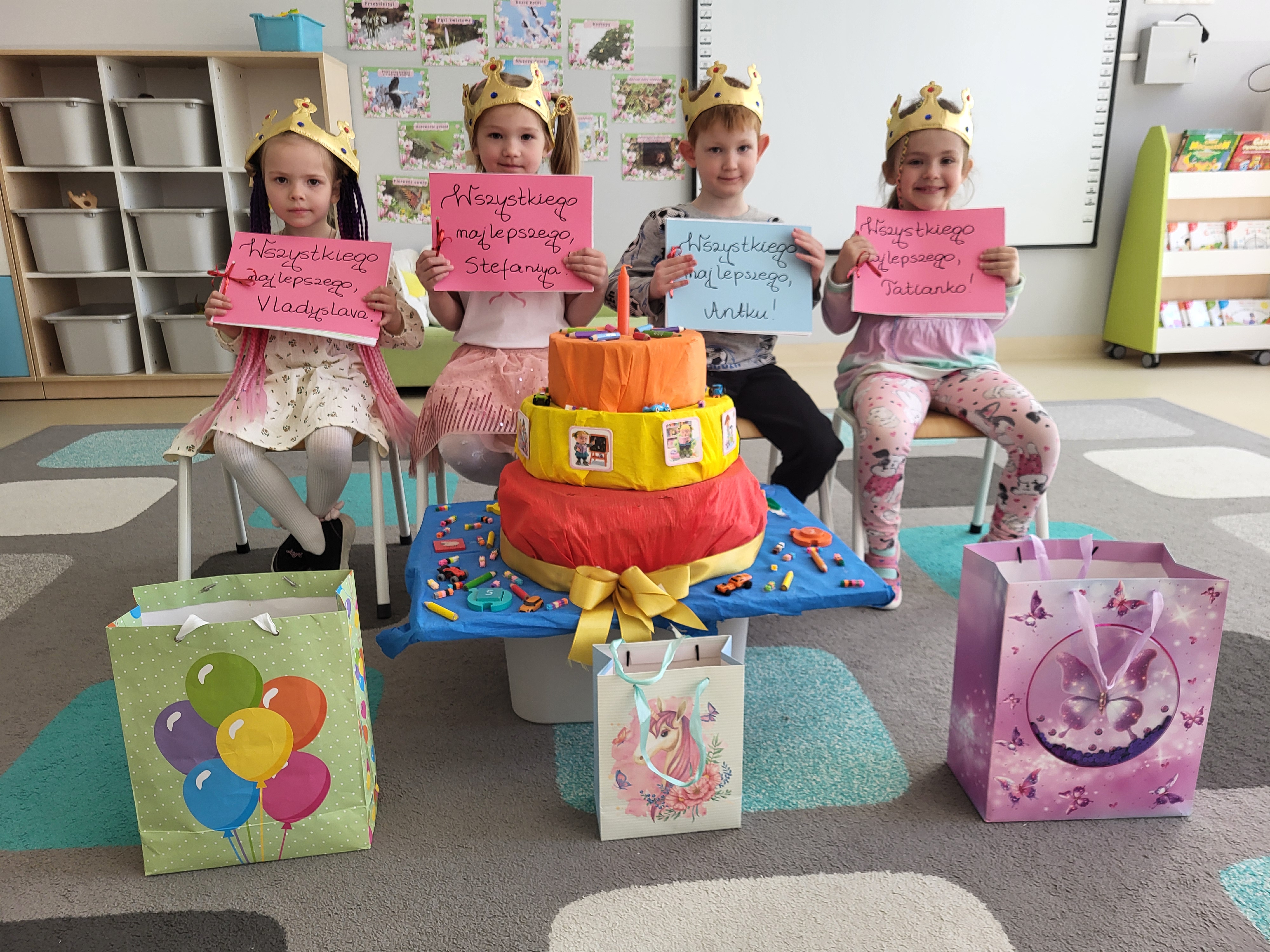 W piątek, w naszym przedszkolu świętowaliśmy urodziny dzieci urodzonych w kwietniu. Byli to: Lena, Milena, Maks oraz Jeremi ze Skrzatów, Oskar z Leśnych Ludków oraz Tatiana, Stefaniya, Vladyslava oraz Antek ze Świetlików. Wszystkim solenizantkom oraz solentantom życzymy dużo uśmiechu, radości, spełnienia marzeń i wszystkiego najlepszego.